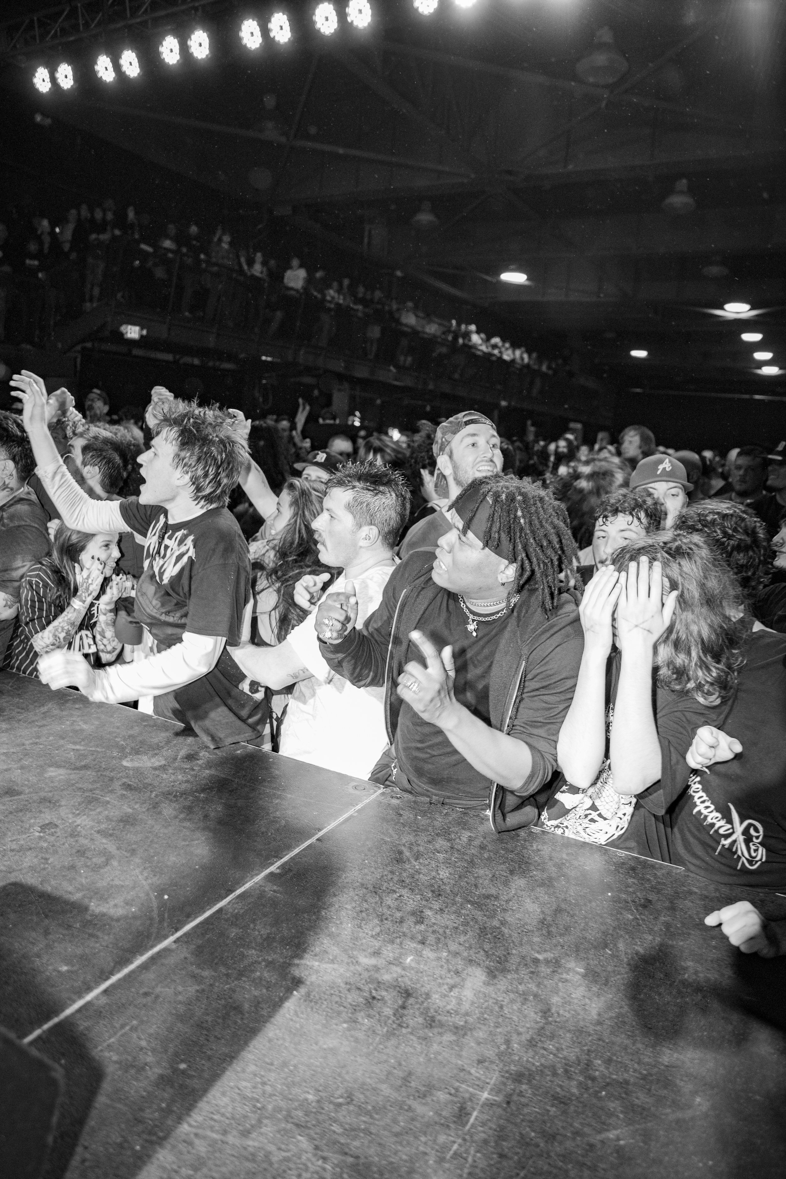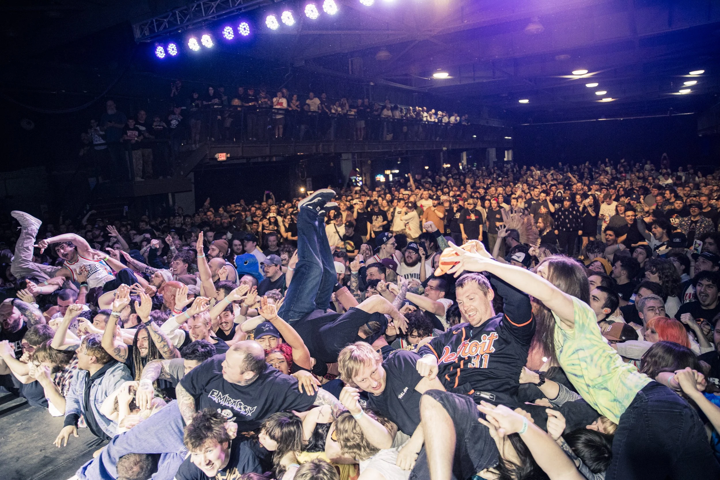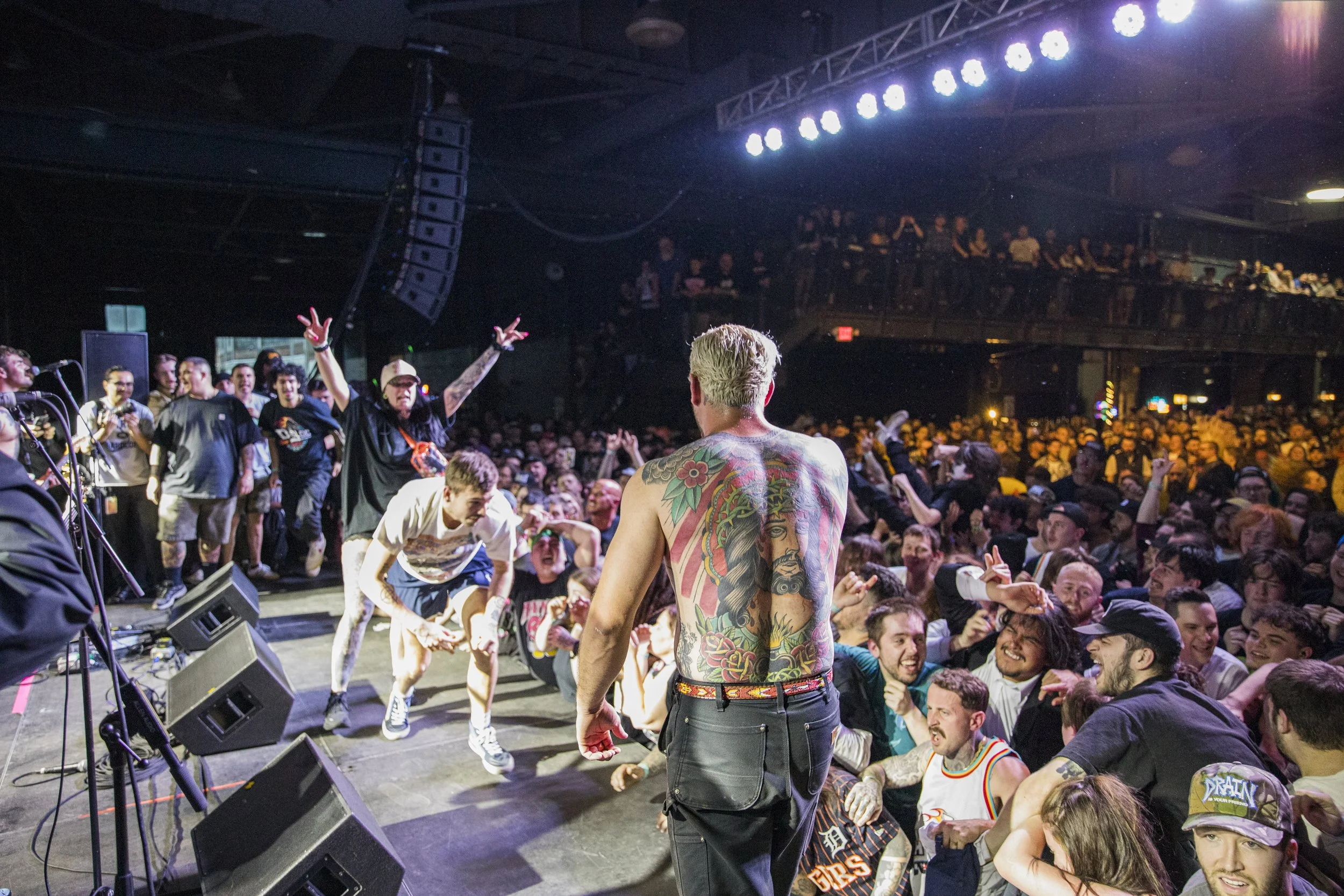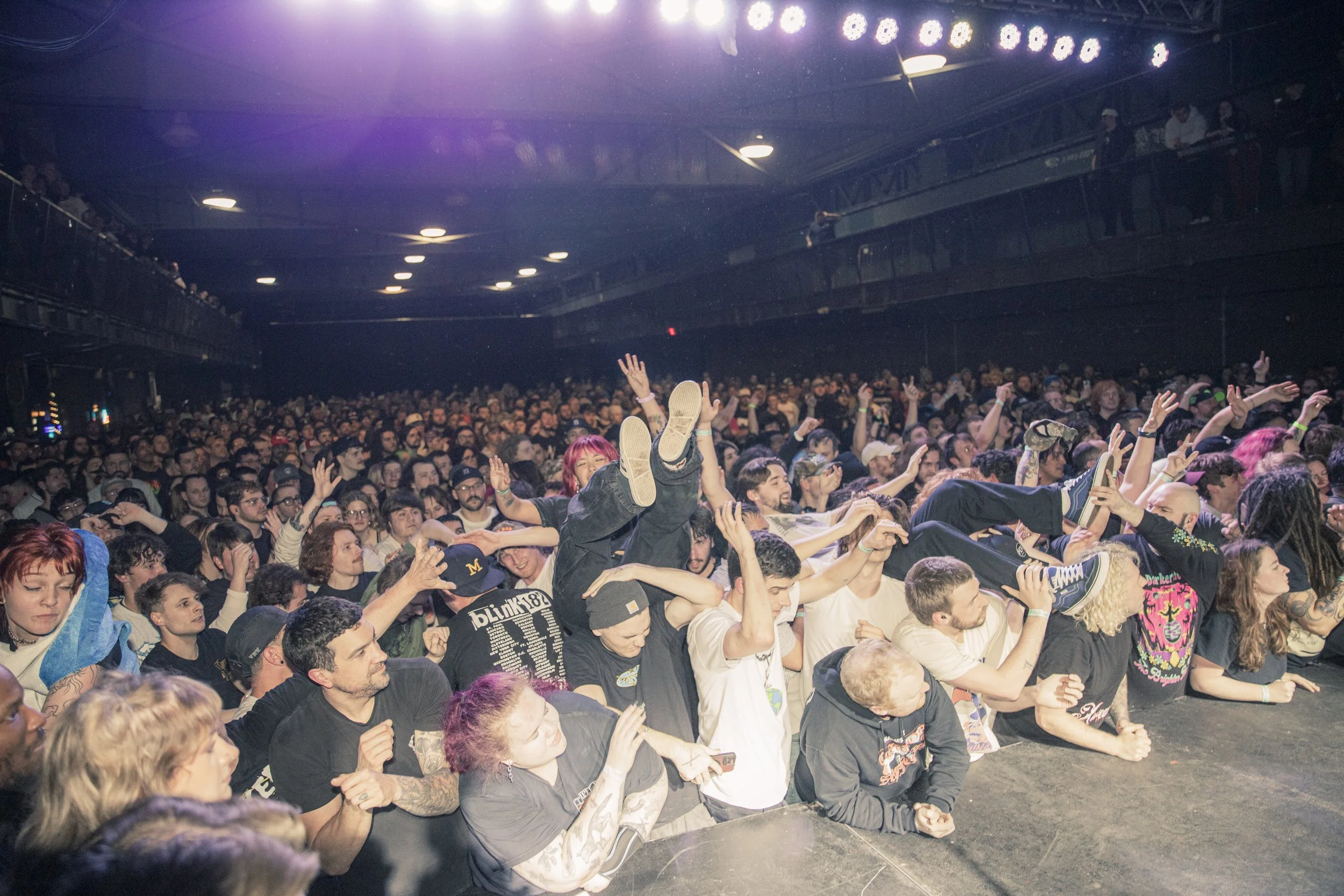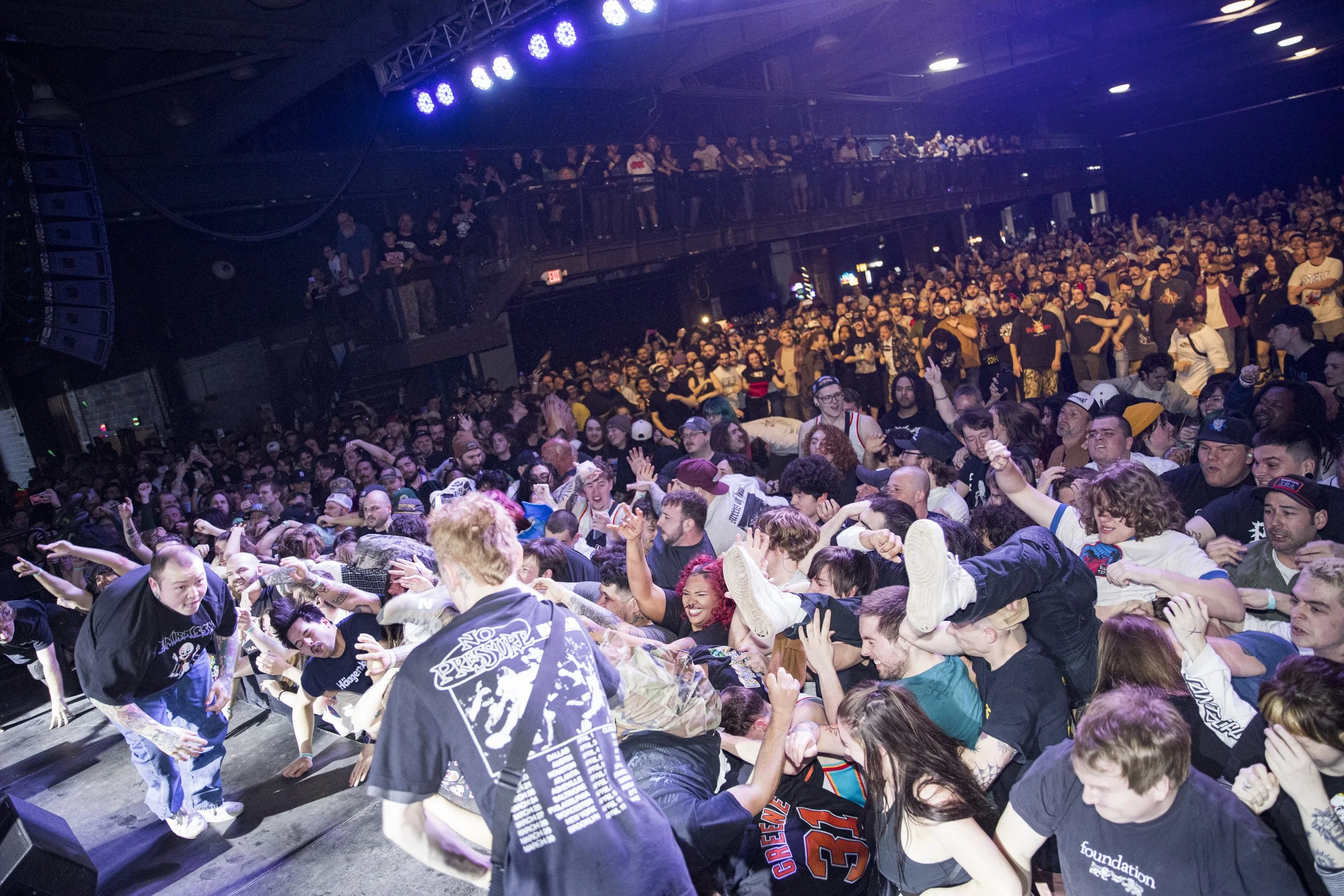 No Pressure brought so many stage dives. I took a moment to just count the stage dives for a moment, and it was laughable how many SUCCESSFUL dives there were. Made me proud, Detroit. Not too many people βlaying downβ or βWaving at people to catch themβ. After watching videos this week of other shows, it made me feel better about things in that regard.