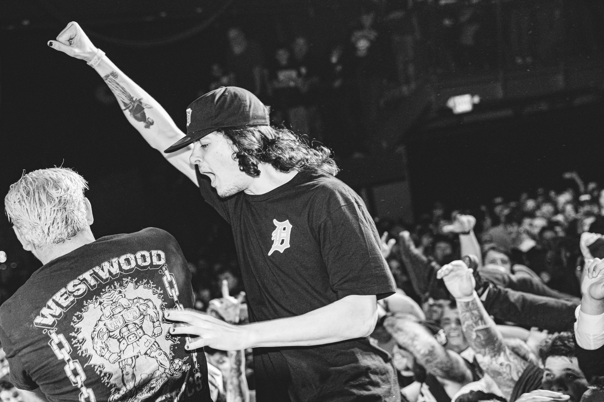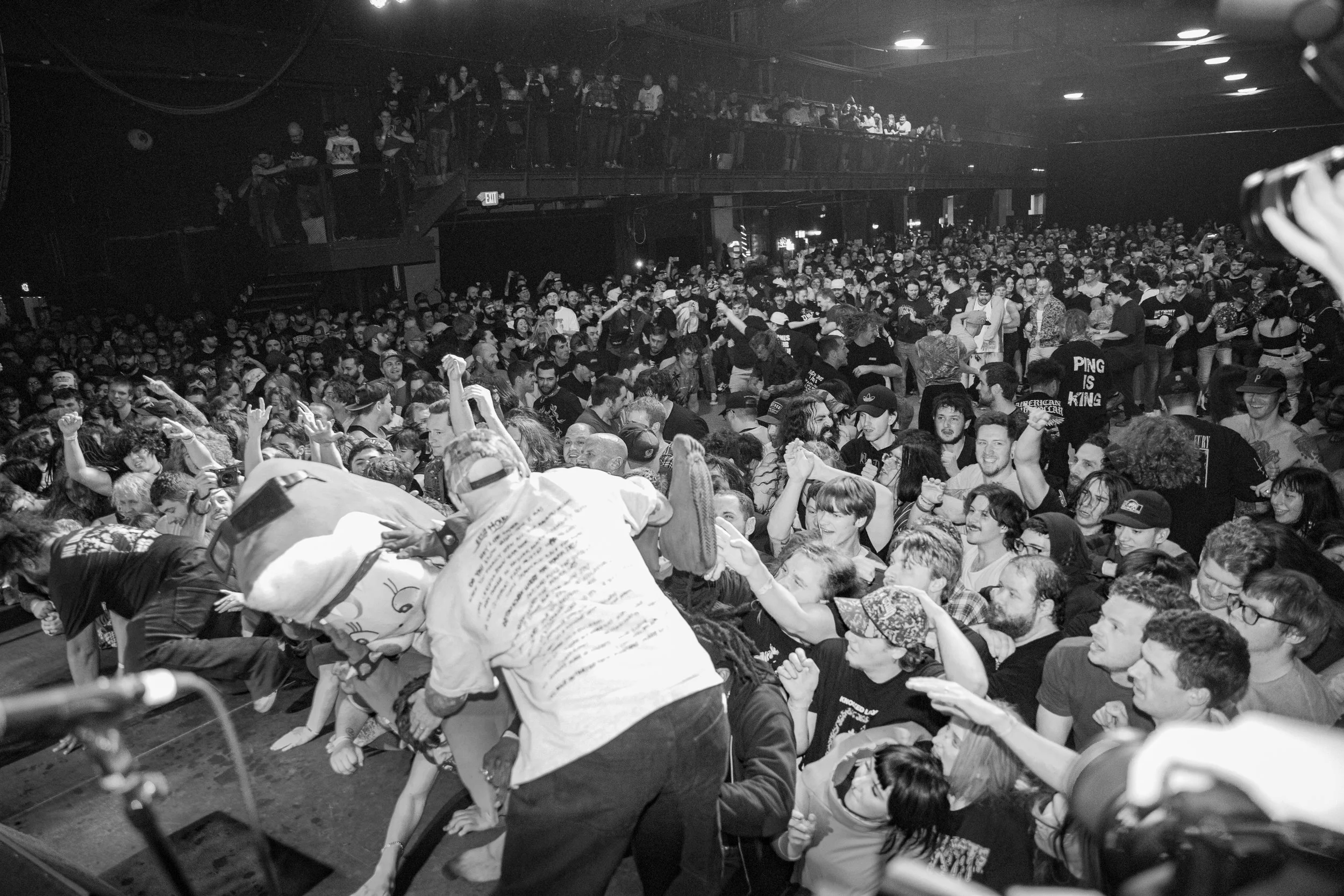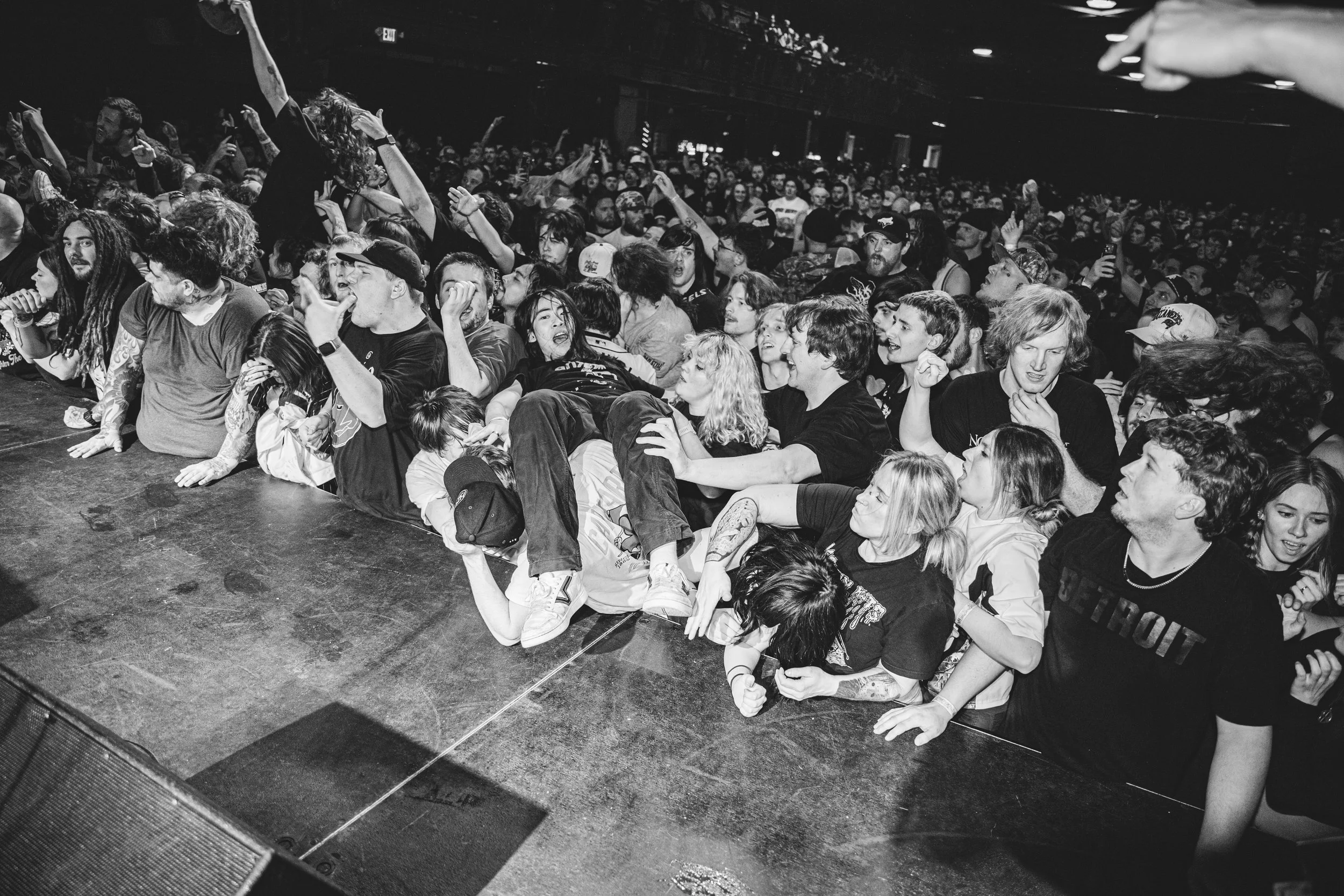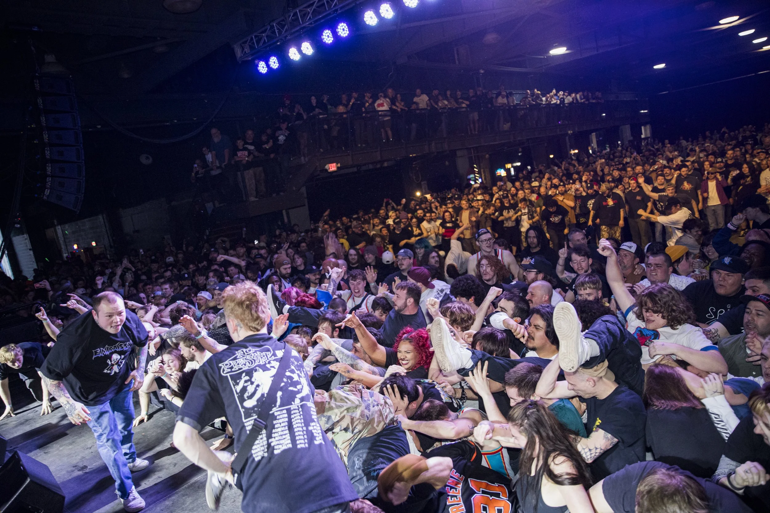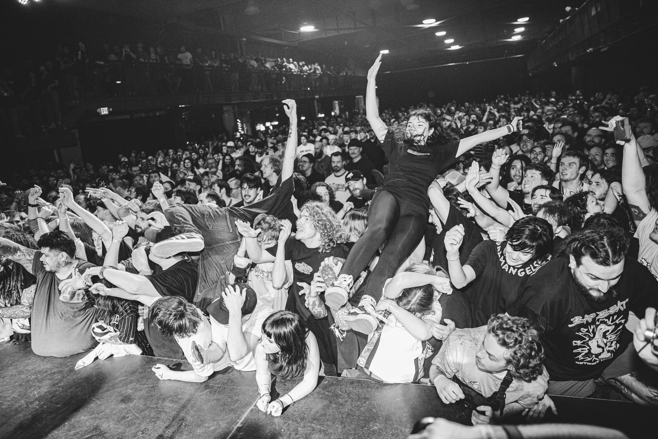 No Pressure brought so many stage dives. I took a moment to just count the stage dives for a moment, and it was laughable how many SUCCESSFUL dives there were. Made me proud, Detroit. Not too many people βlaying downβ or βWaving at people to catch themβ. After watching videos this week of other shows, it made me feel better about things in that regard.