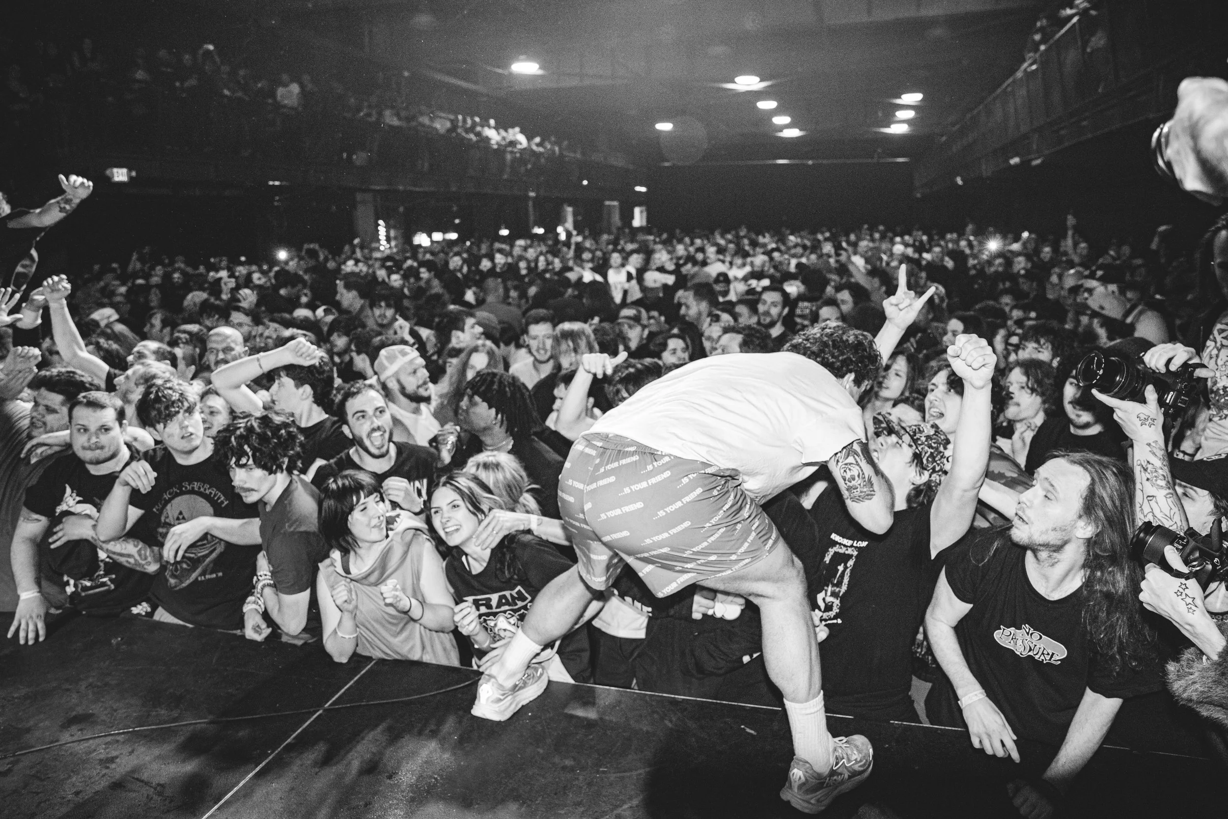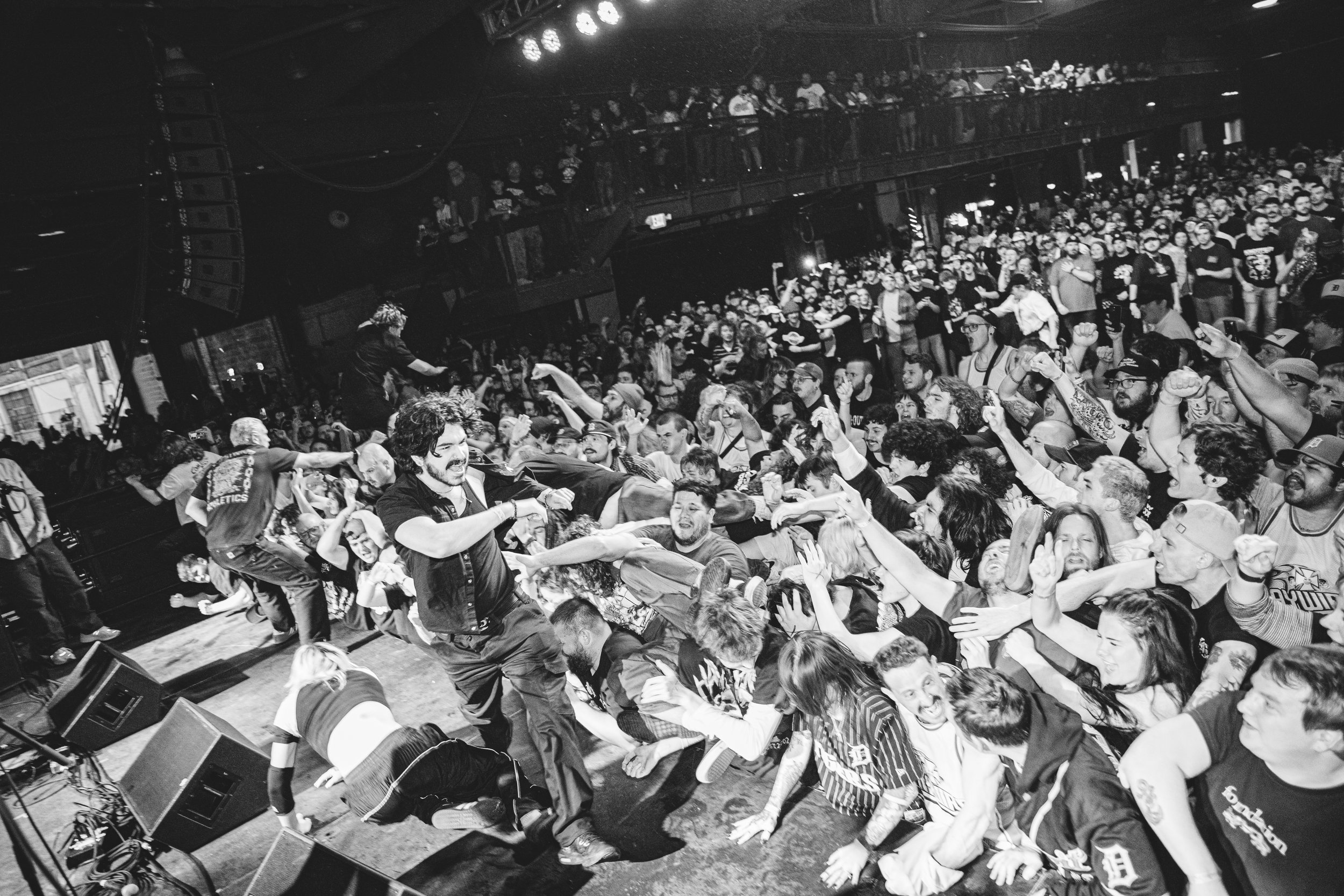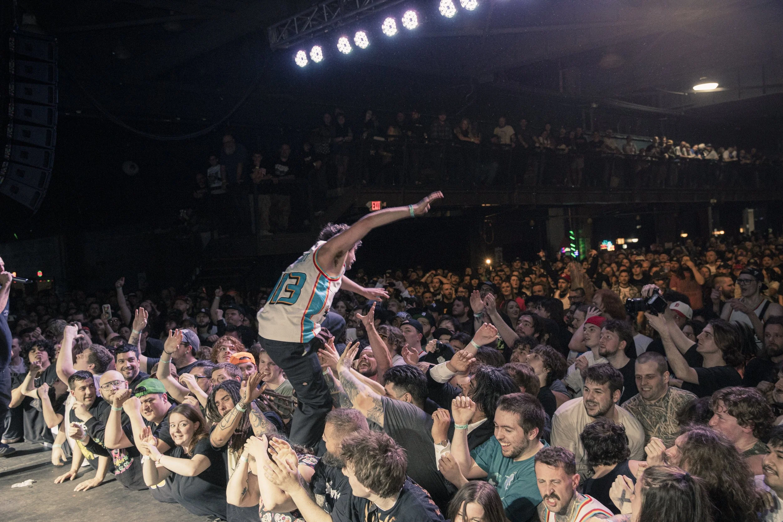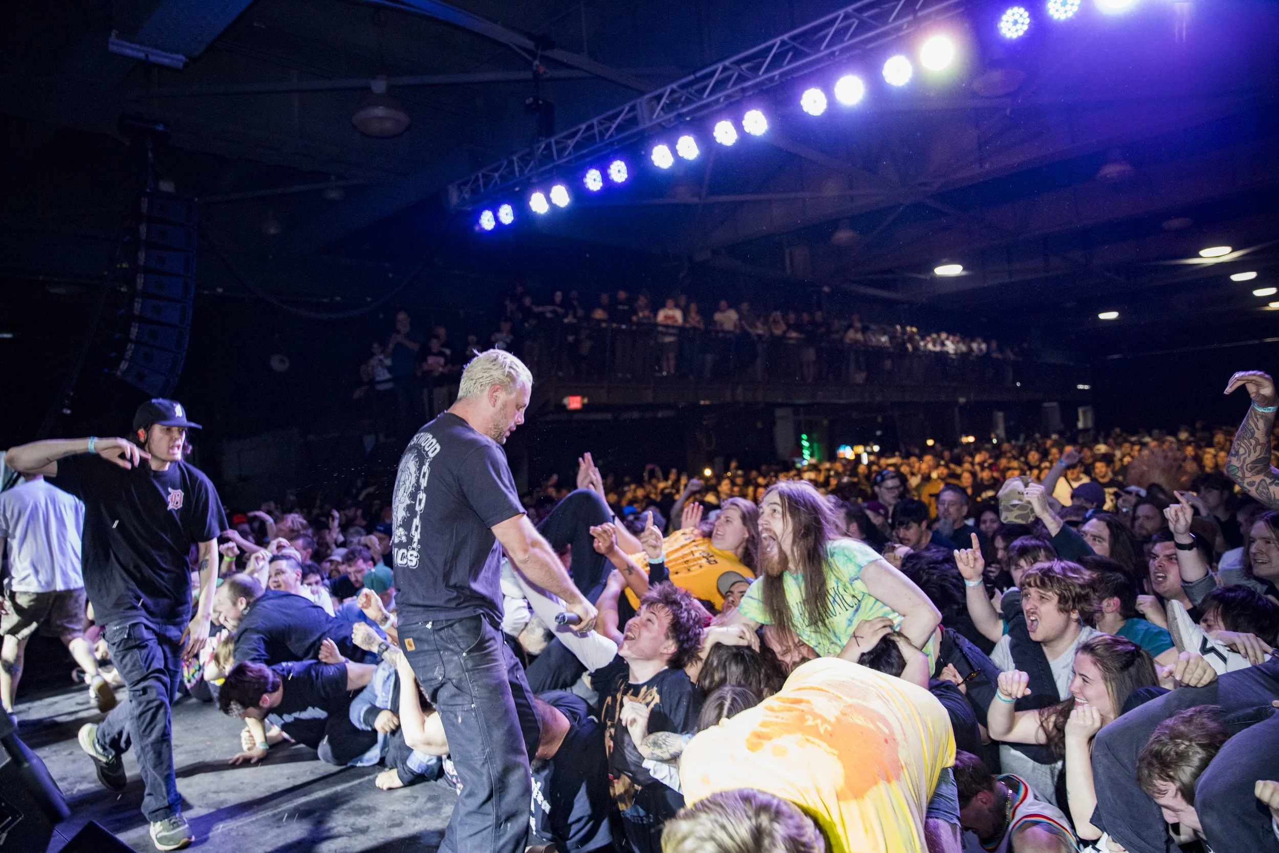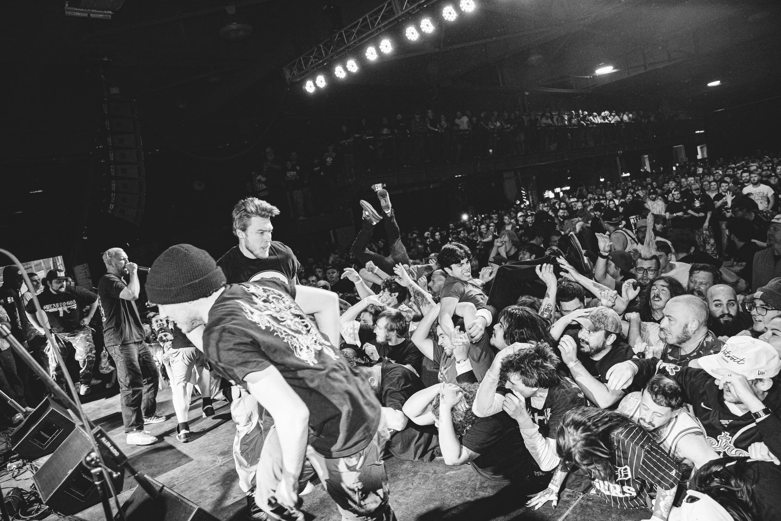 No Pressure brought so many stage dives. I took a moment to just count the stage dives for a moment, and it was laughable how many SUCCESSFUL dives there were. Made me proud, Detroit. Not too many people βlaying downβ or βWaving at people to catch themβ. After watching videos this week of other shows, it made me feel better about things in that regard.