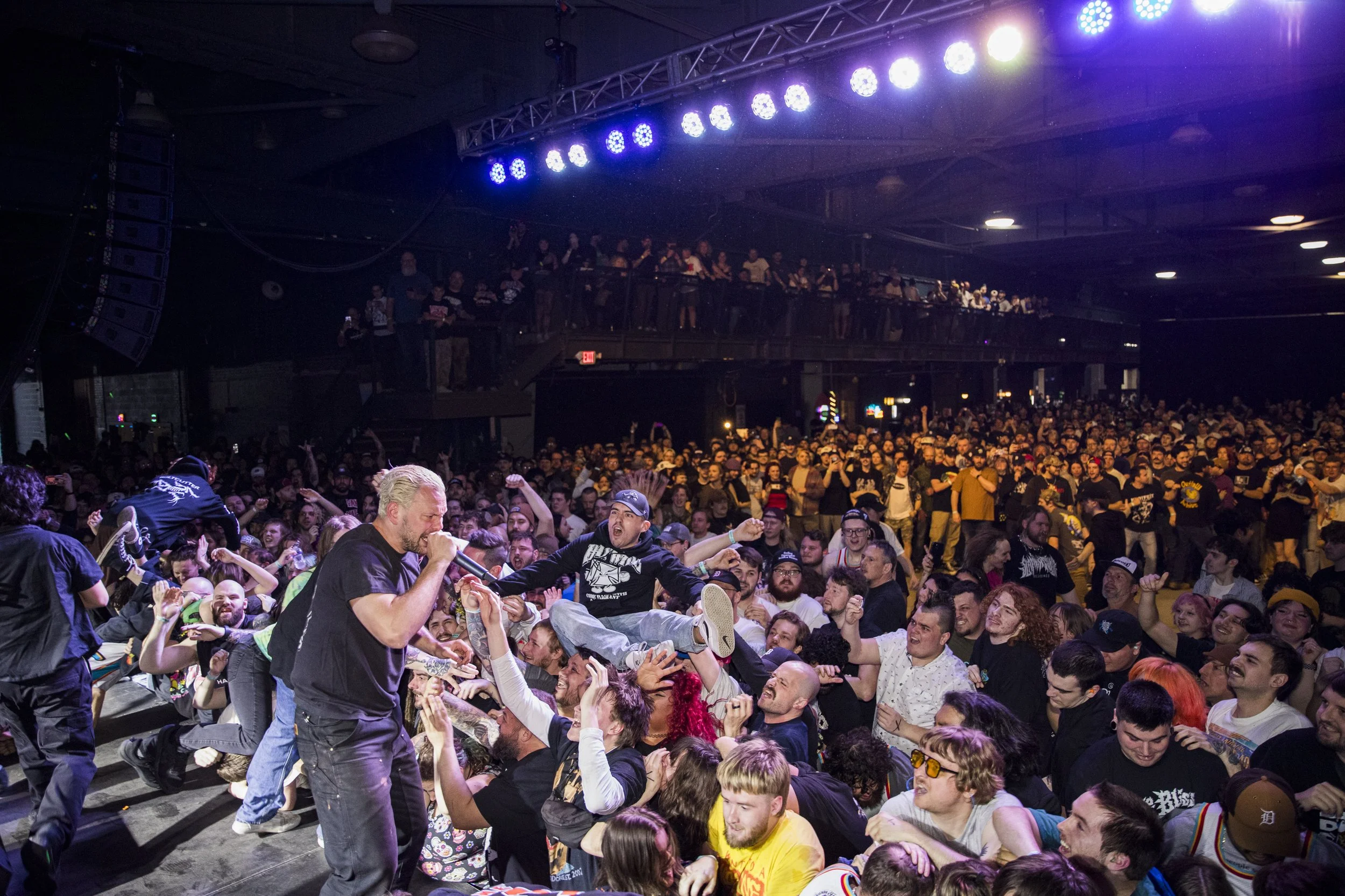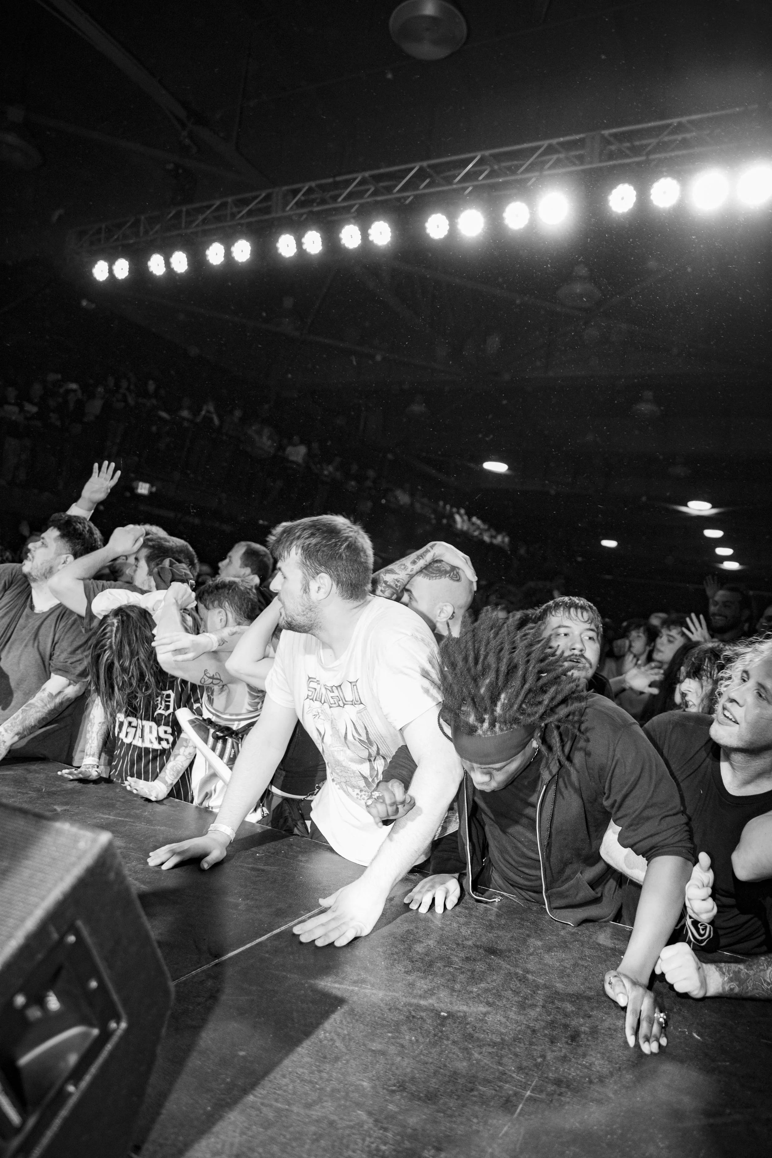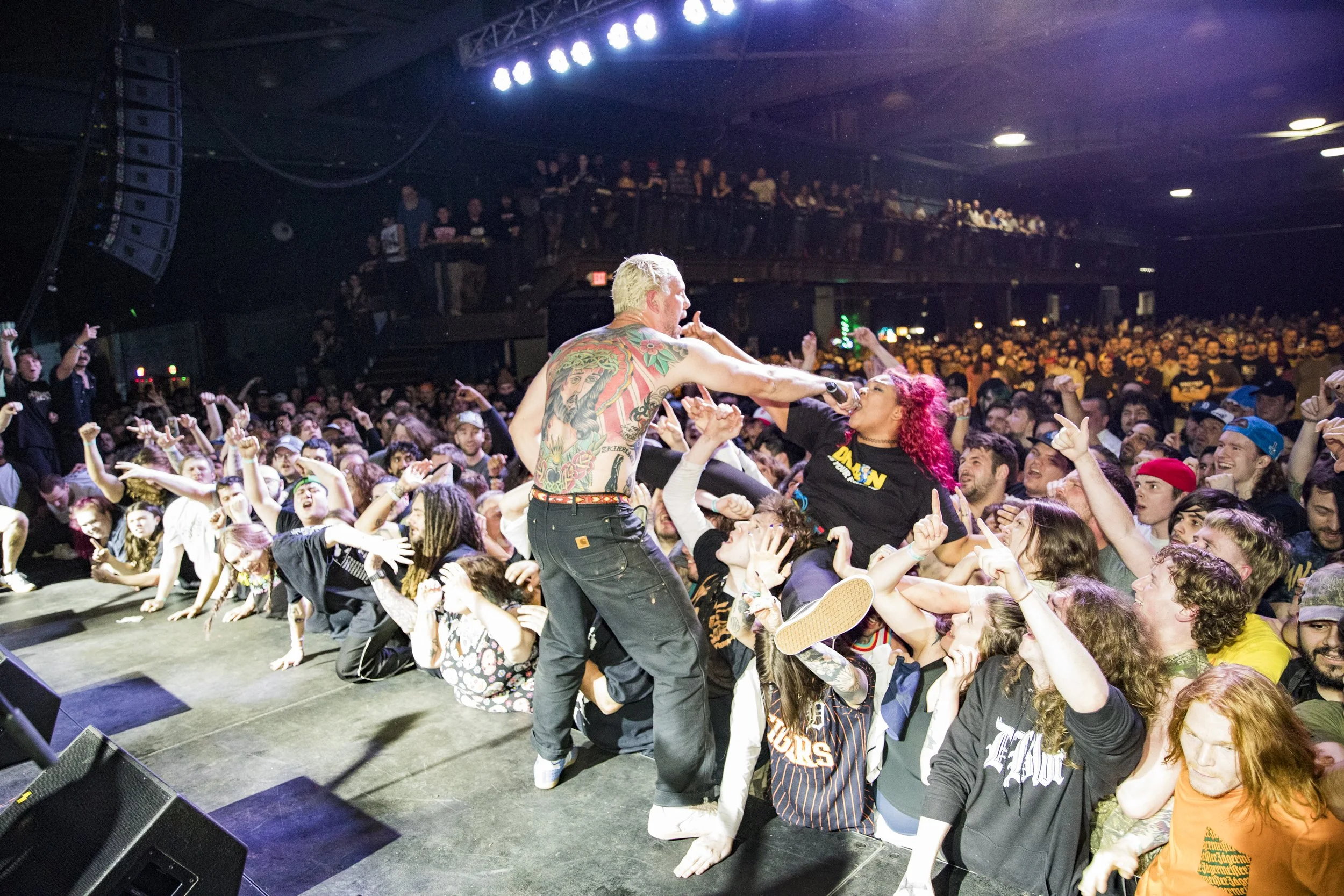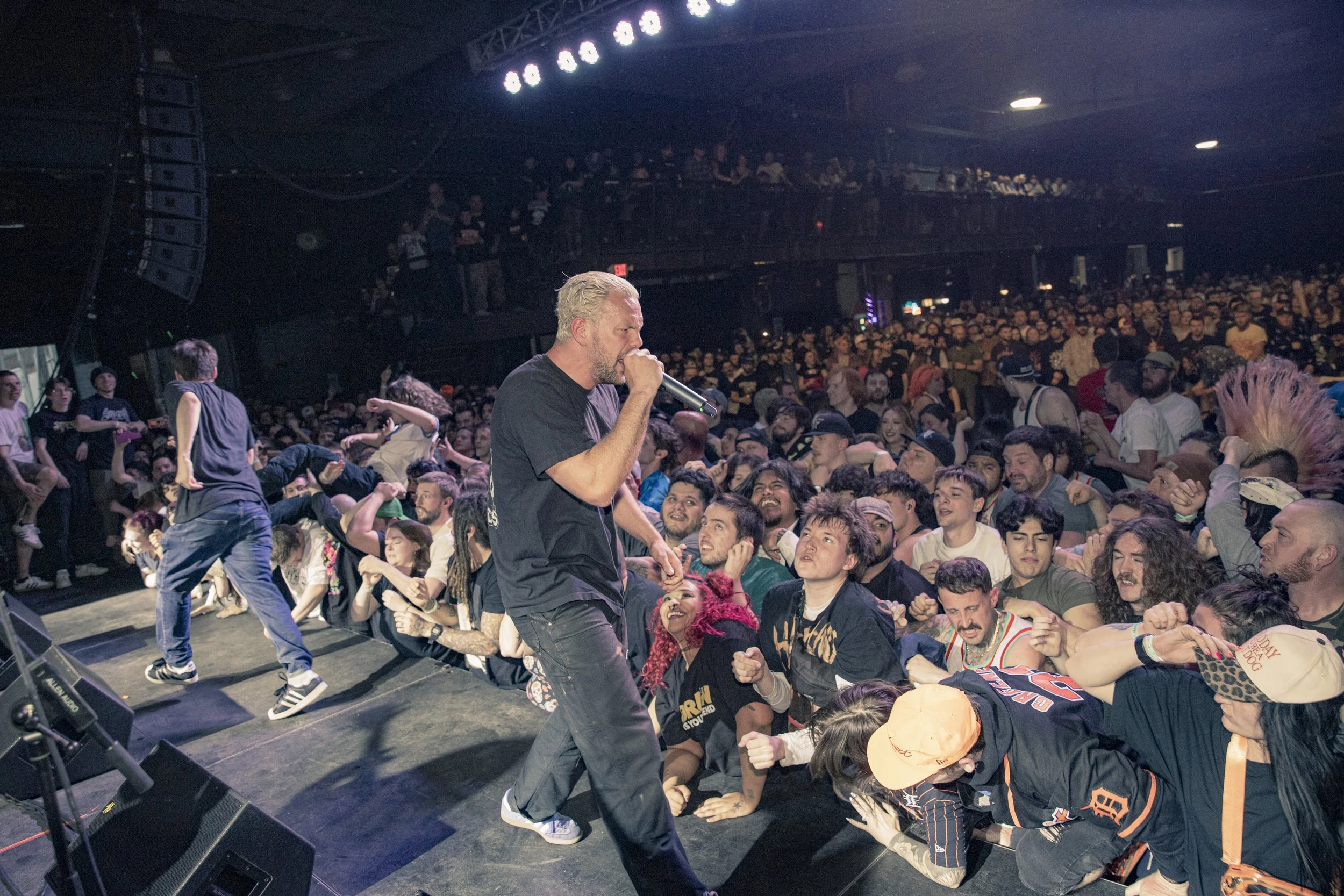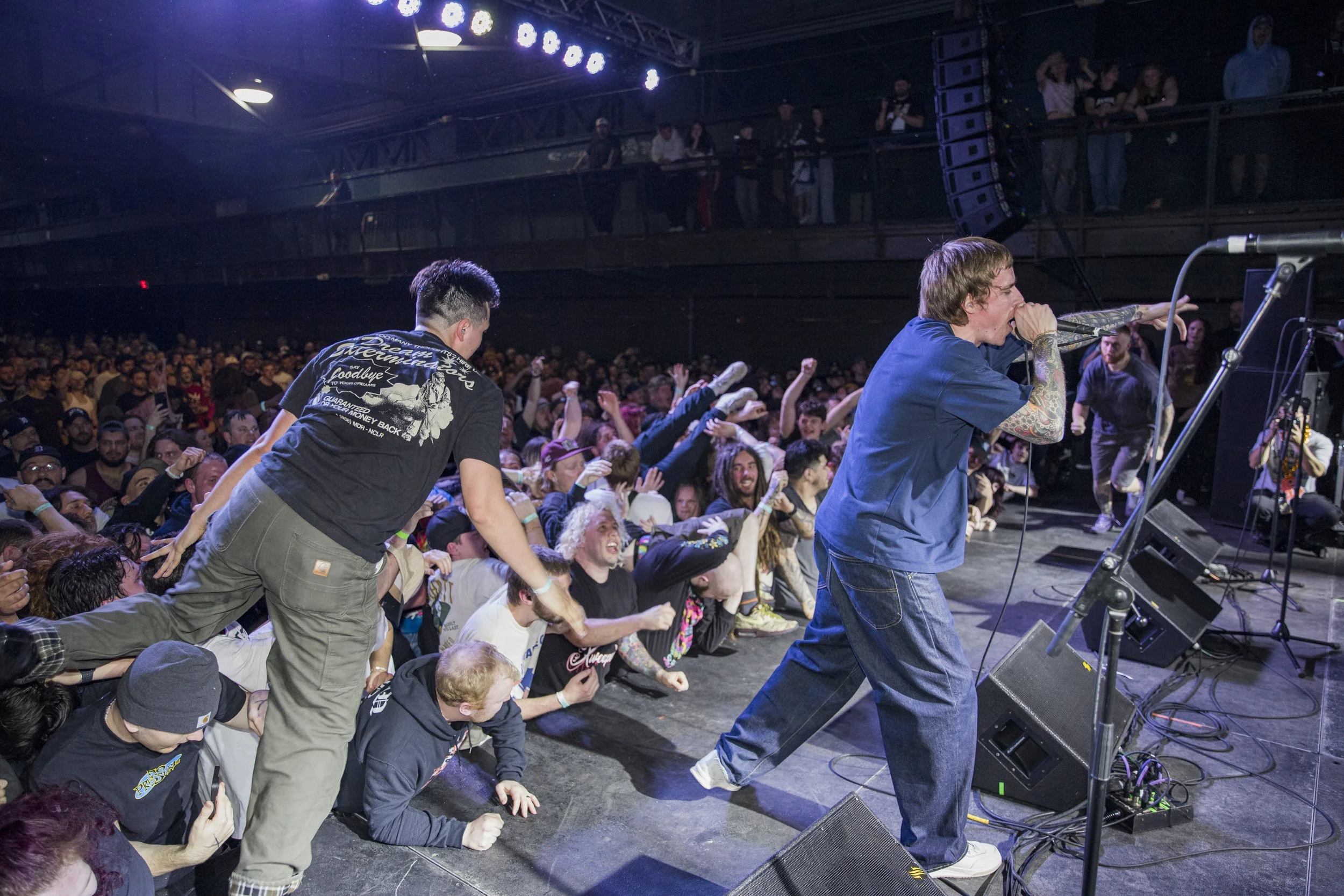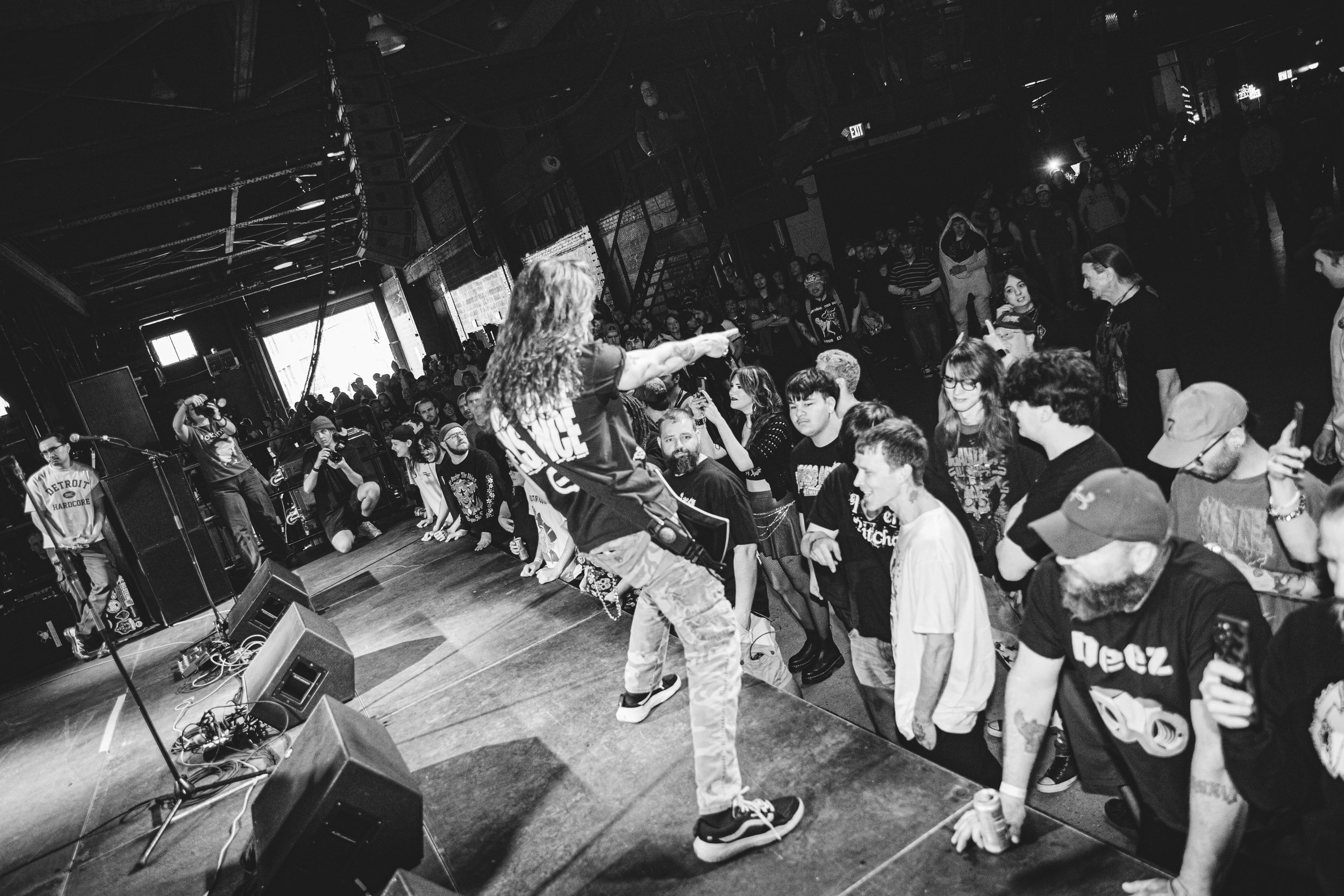 No Pressure brought so many stage dives. I took a moment to just count the stage dives for a moment, and it was laughable how many SUCCESSFUL dives there were. Made me proud, Detroit. Not too many people βlaying downβ or βWaving at people to catch themβ. After watching videos this week of other shows, it made me feel better about things in that regard.