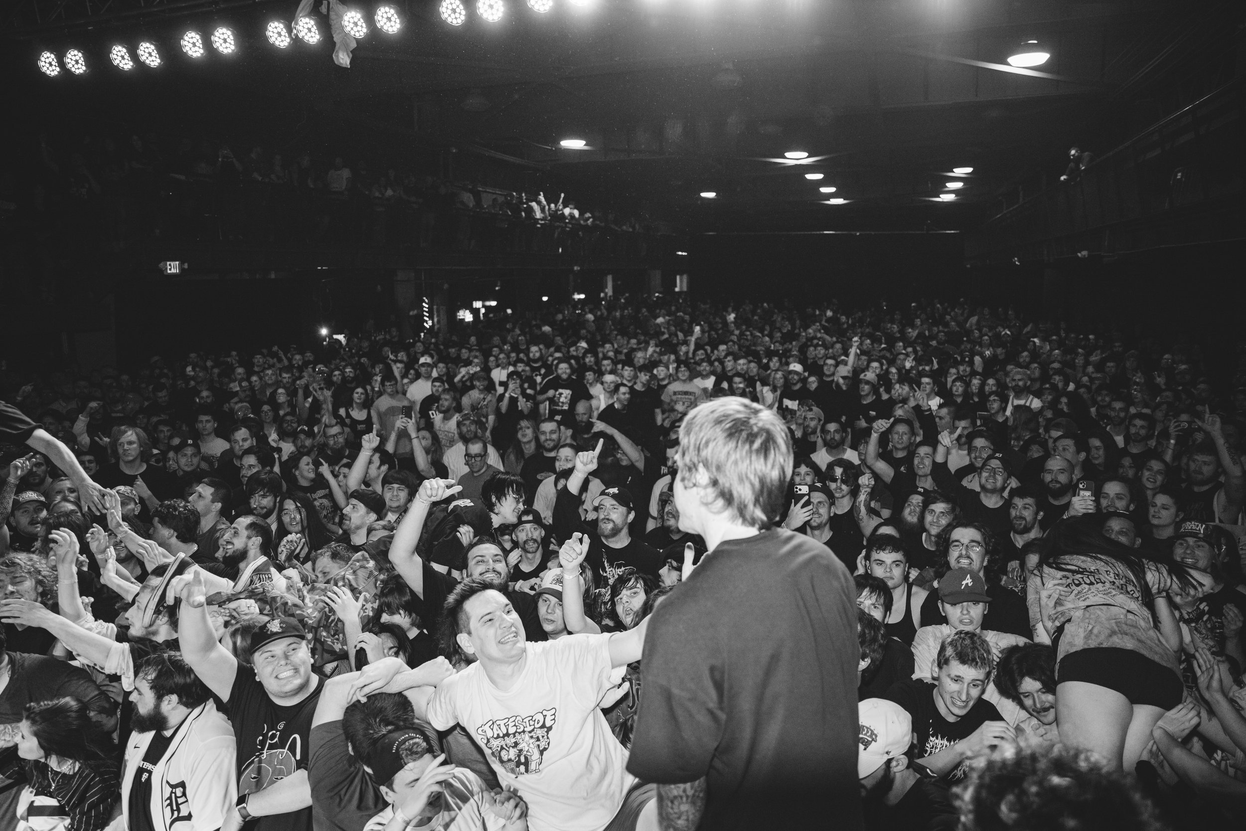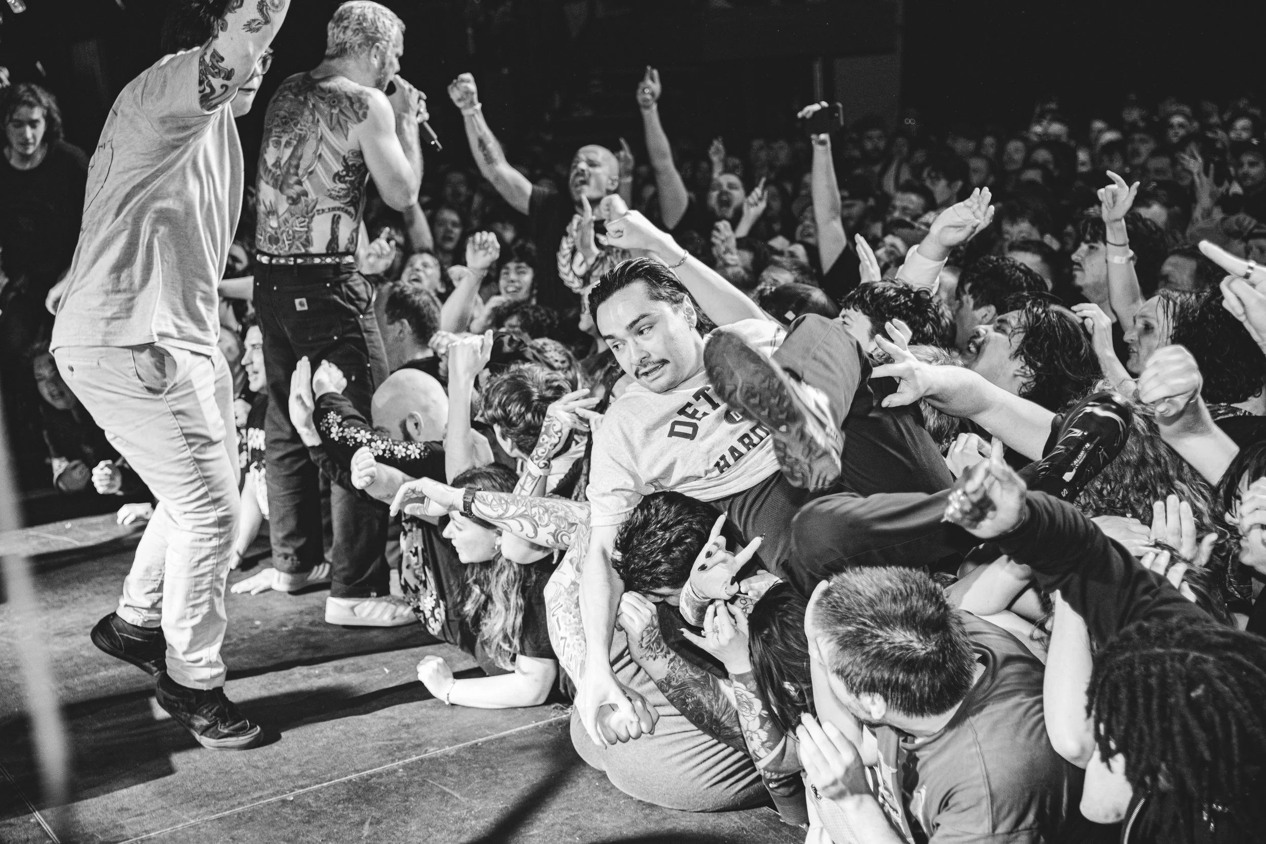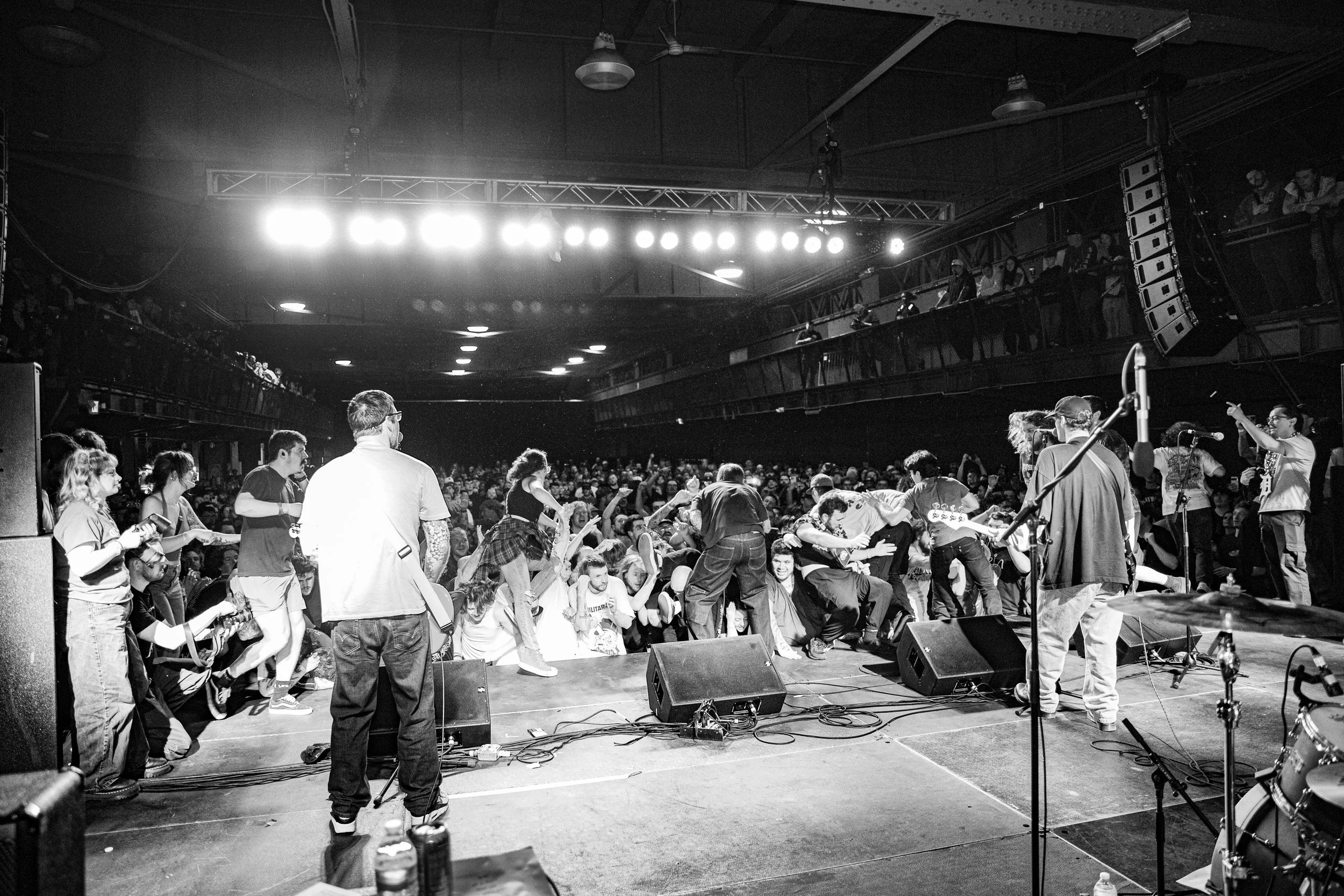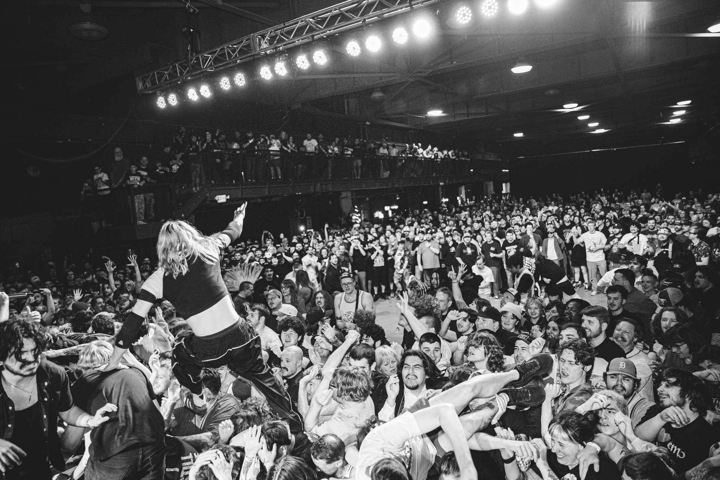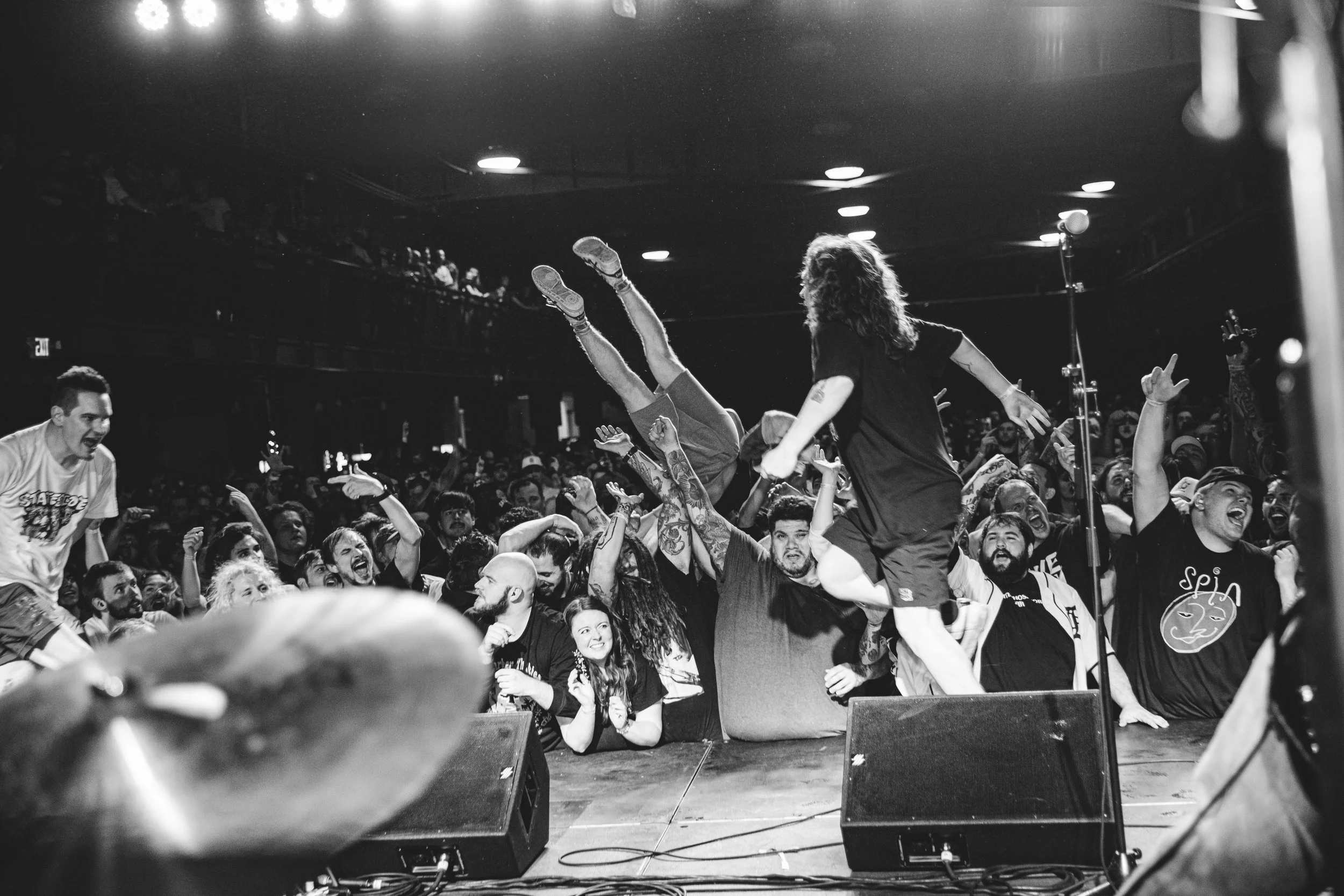 No Pressure brought so many stage dives. I took a moment to just count the stage dives for a moment, and it was laughable how many SUCCESSFUL dives there were. Made me proud, Detroit. Not too many people βlaying downβ or βWaving at people to catch themβ. After watching videos this week of other shows, it made me feel better about things in that regard.