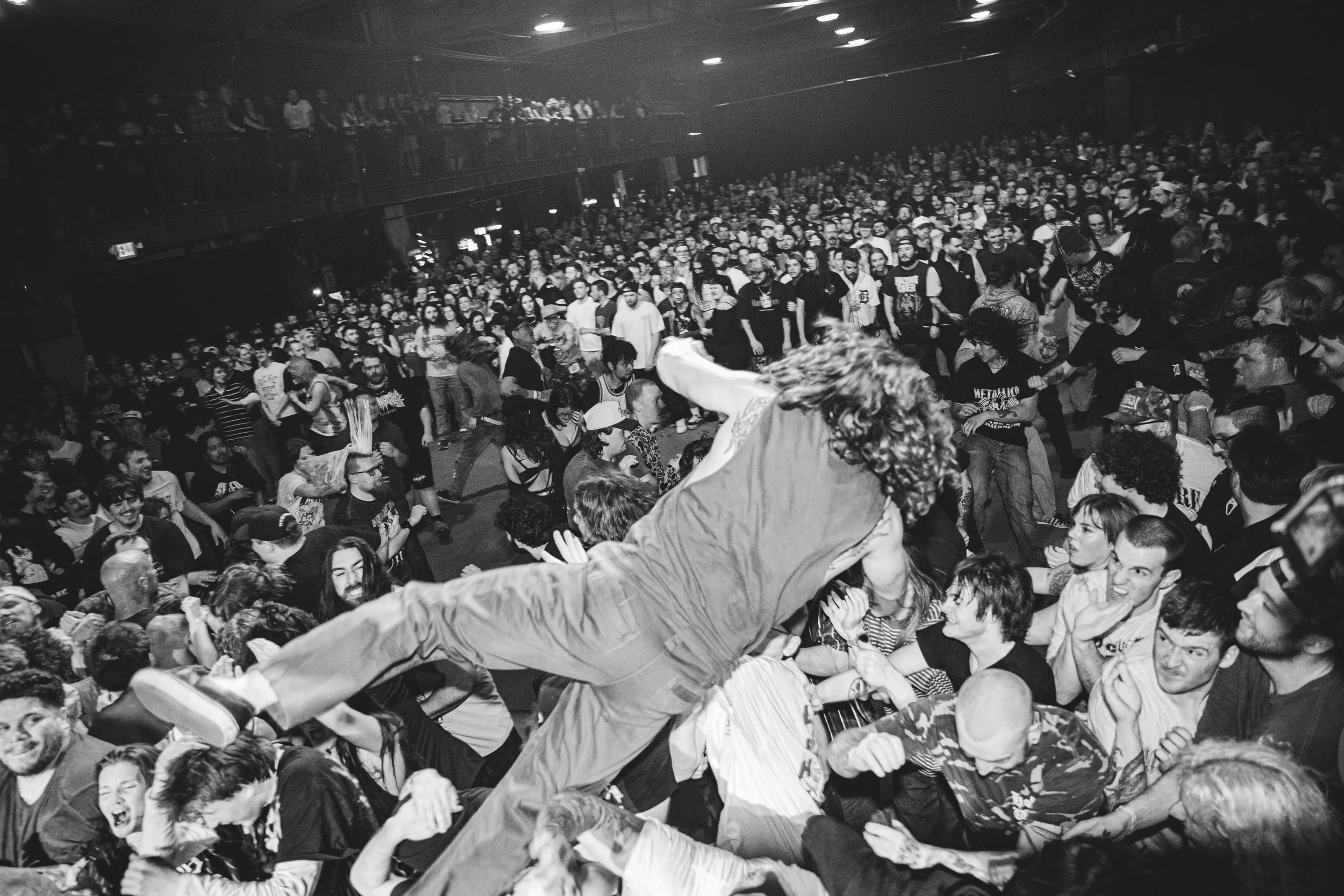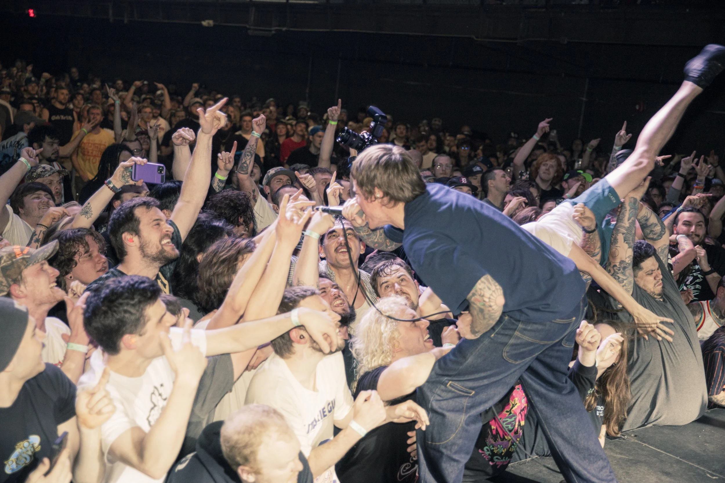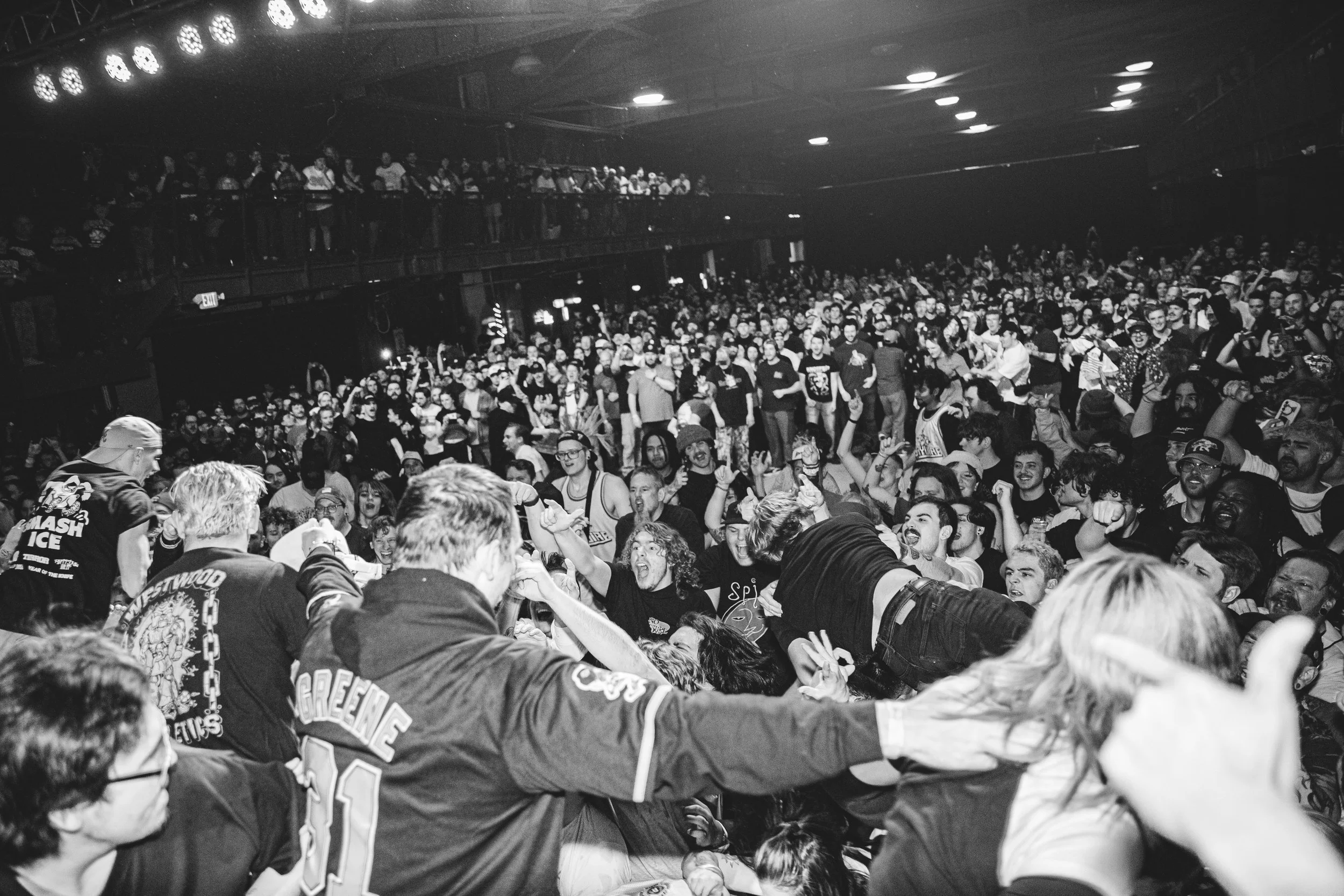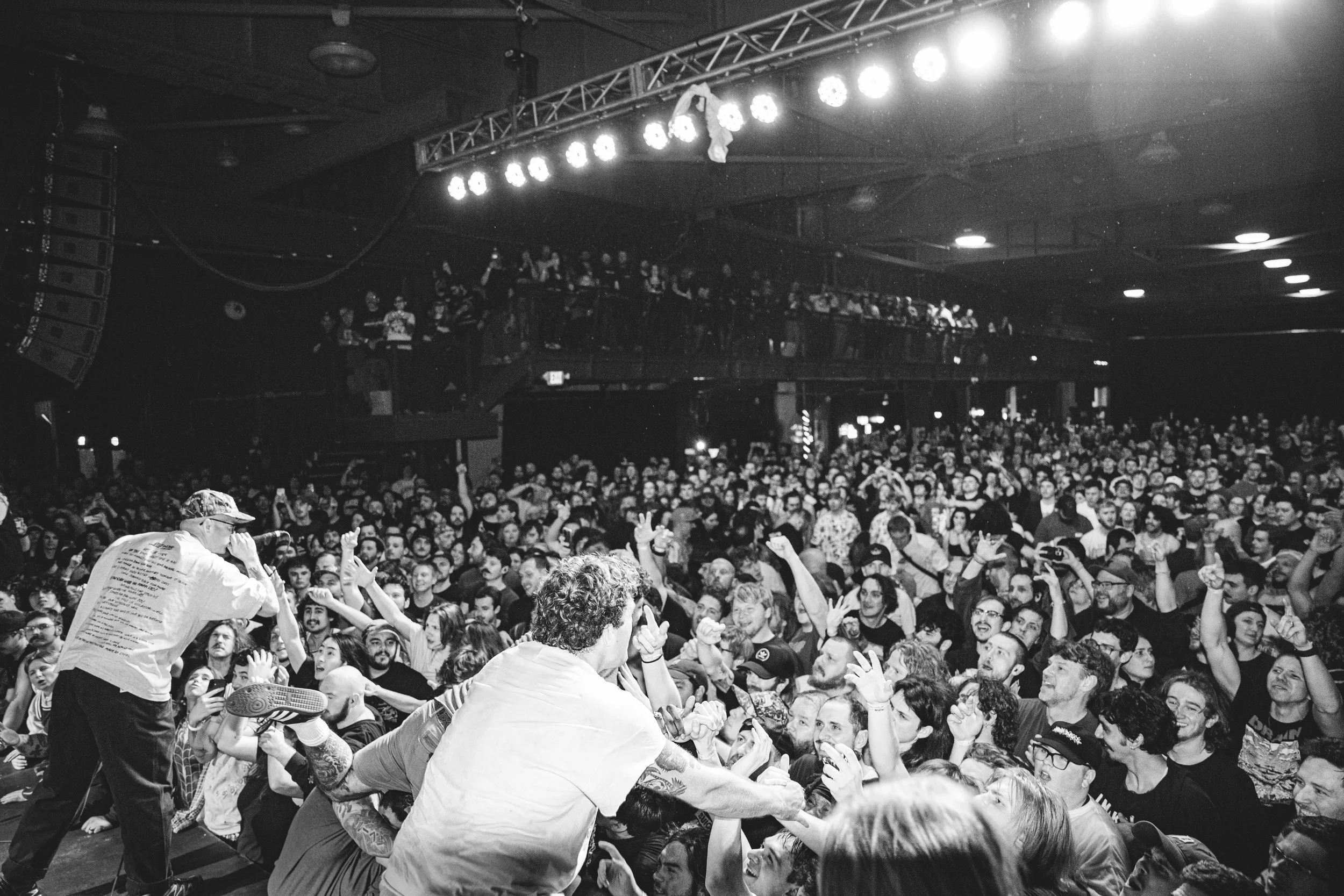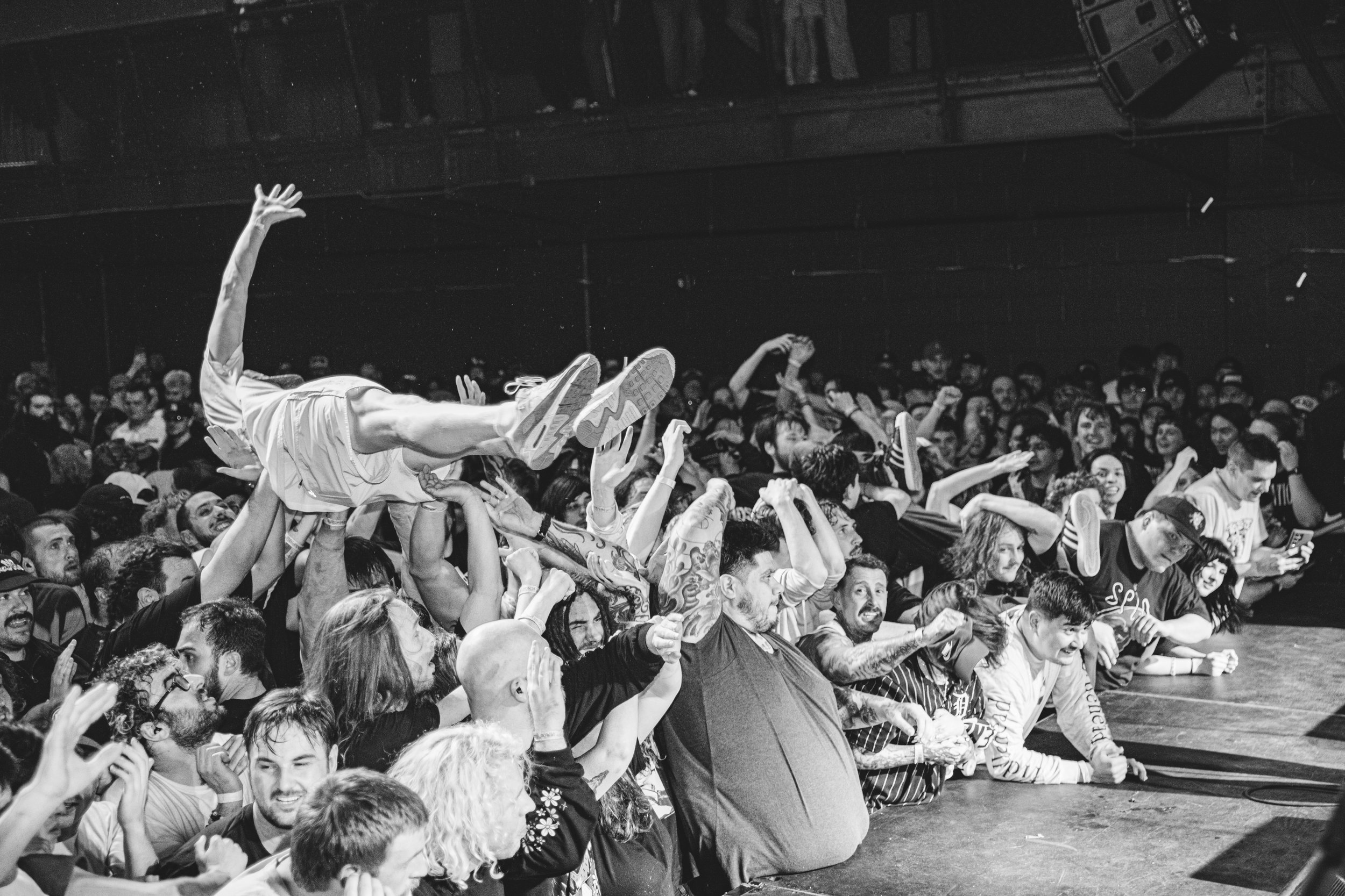 No Pressure brought so many stage dives. I took a moment to just count the stage dives for a moment, and it was laughable how many SUCCESSFUL dives there were. Made me proud, Detroit. Not too many people βlaying downβ or βWaving at people to catch themβ. After watching videos this week of other shows, it made me feel better about things in that regard.
