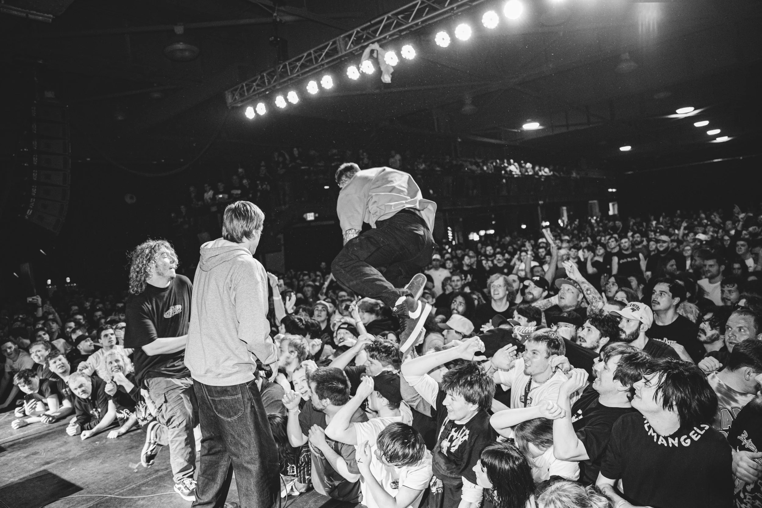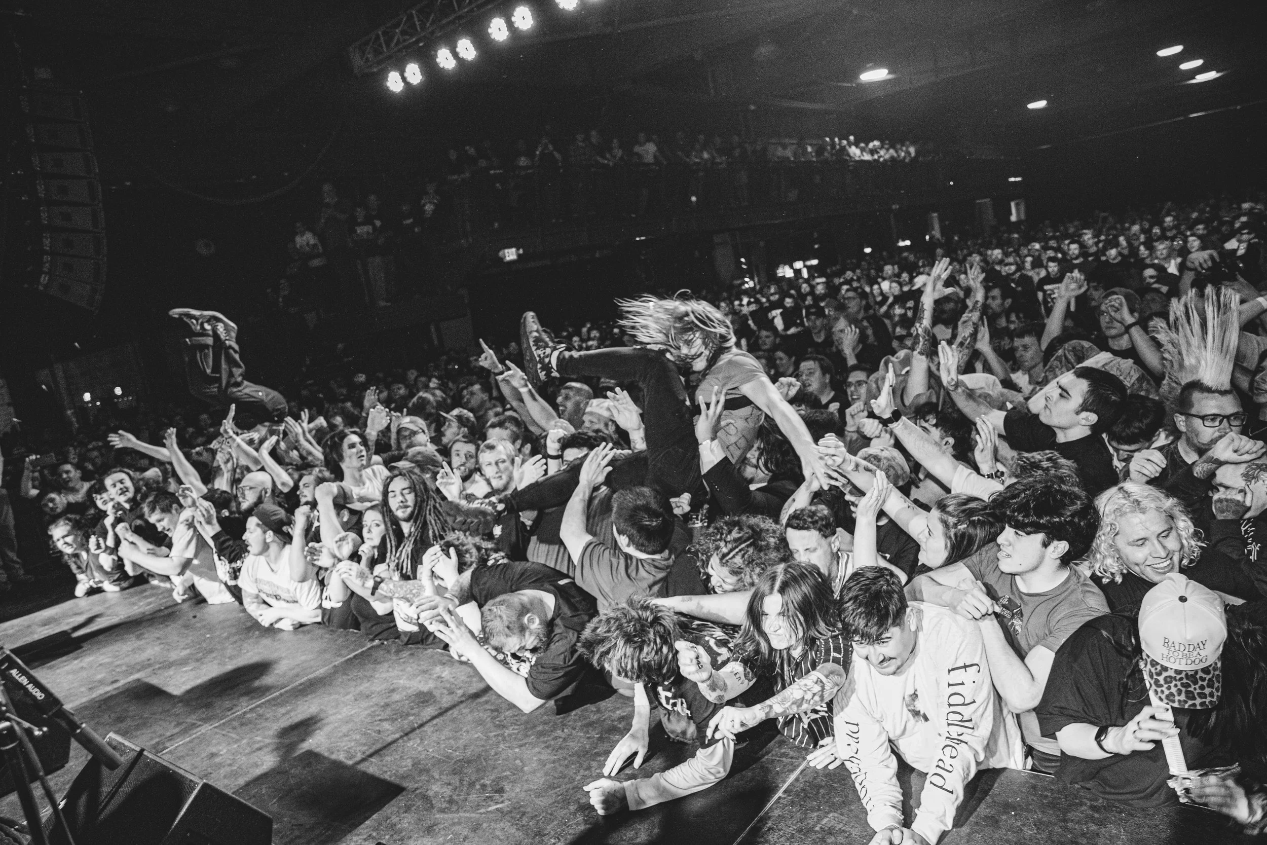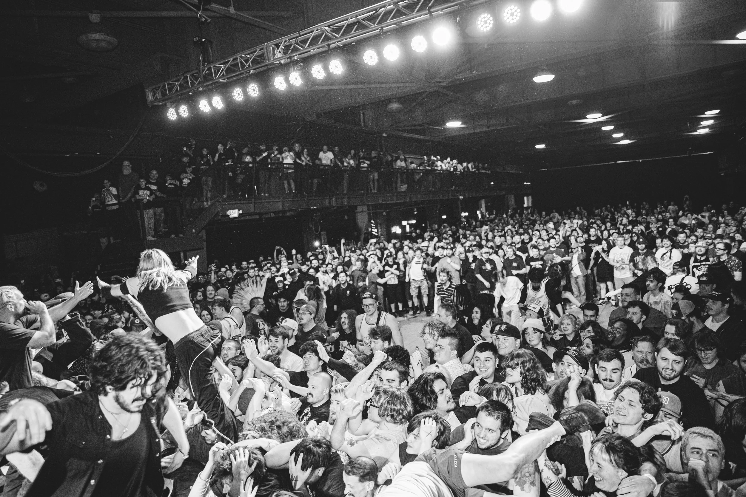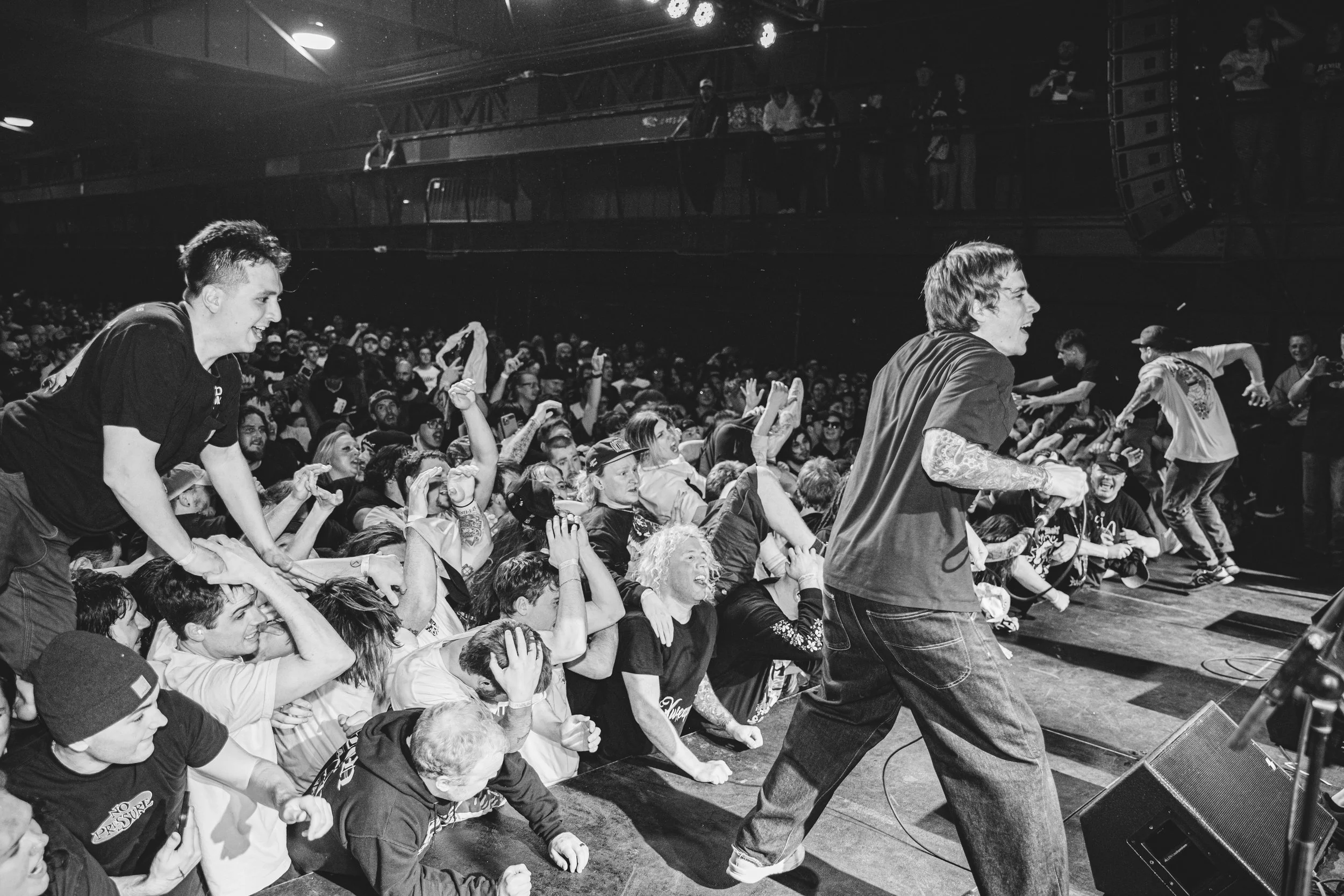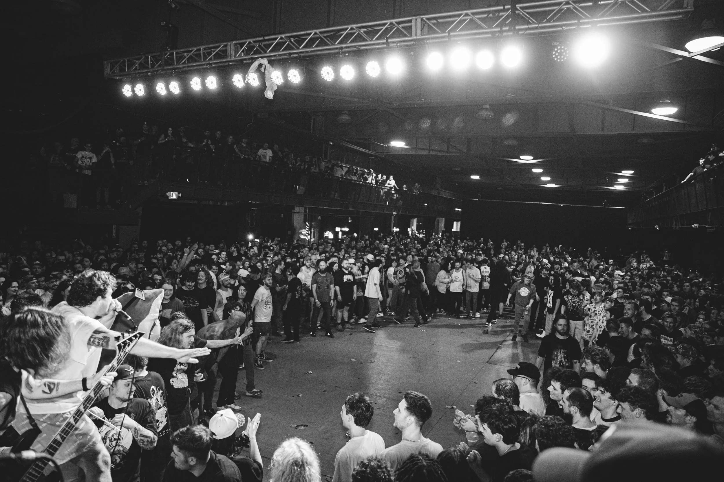 No Pressure brought so many stage dives. I took a moment to just count the stage dives for a moment, and it was laughable how many SUCCESSFUL dives there were. Made me proud, Detroit. Not too many people βlaying downβ or βWaving at people to catch themβ. After watching videos this week of other shows, it made me feel better about things in that regard.