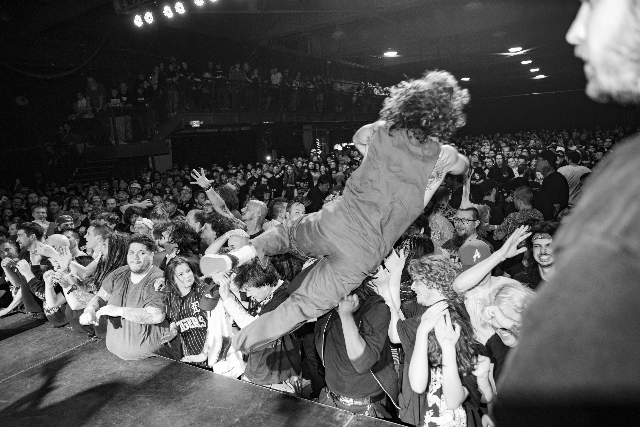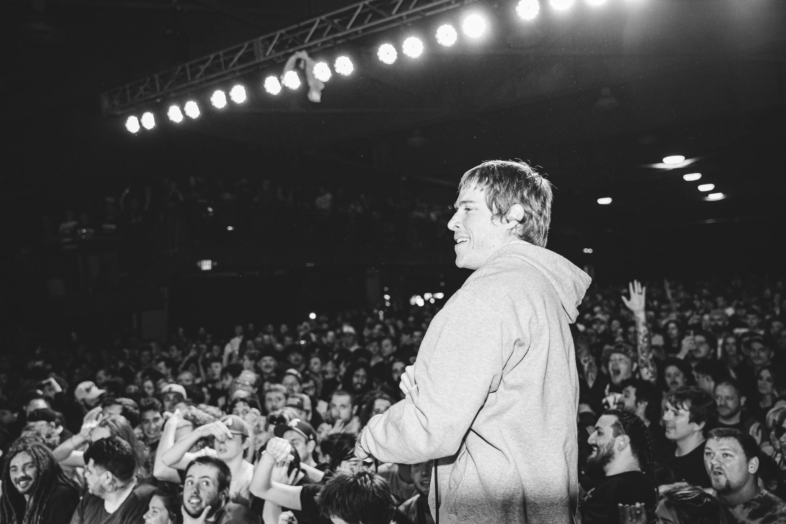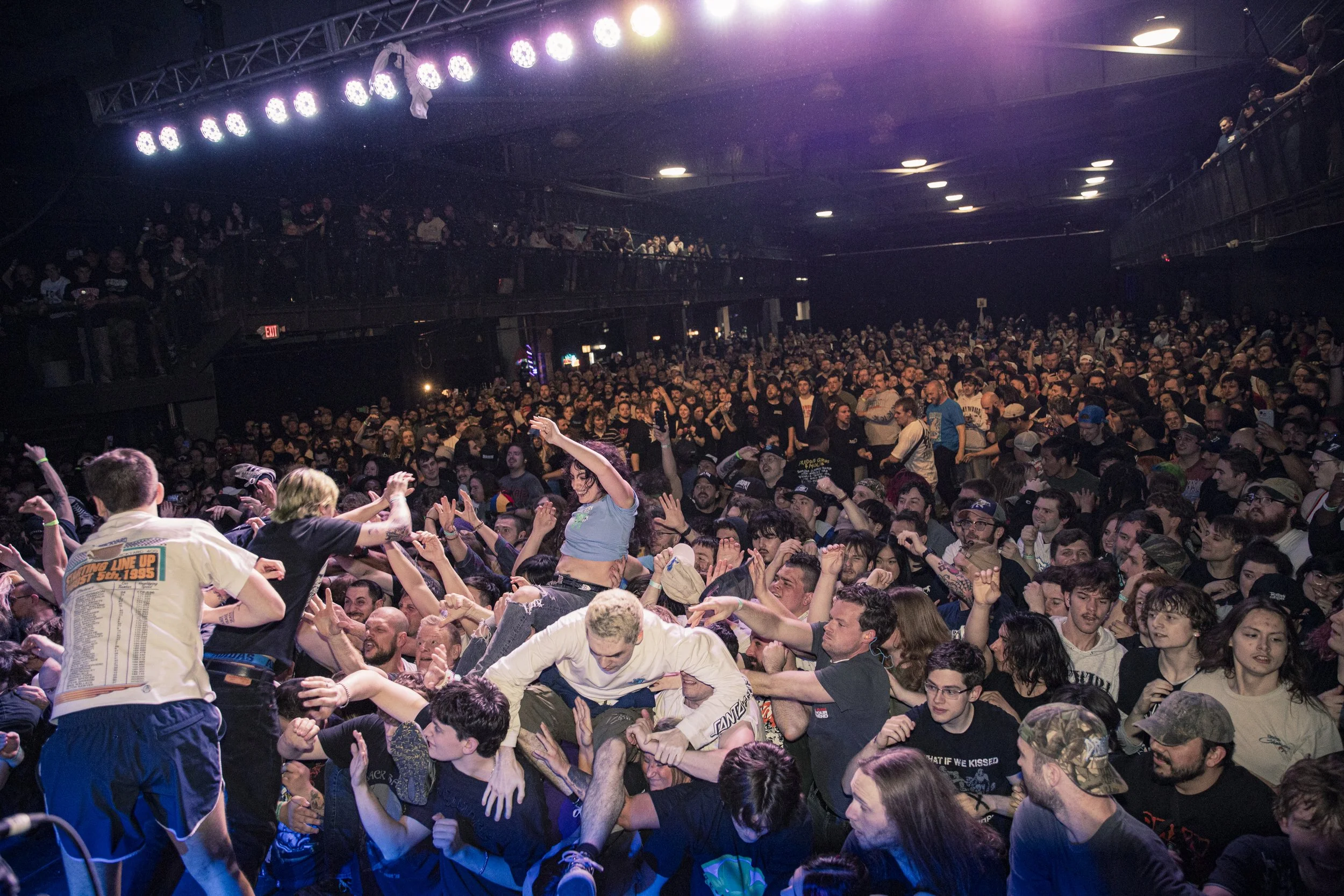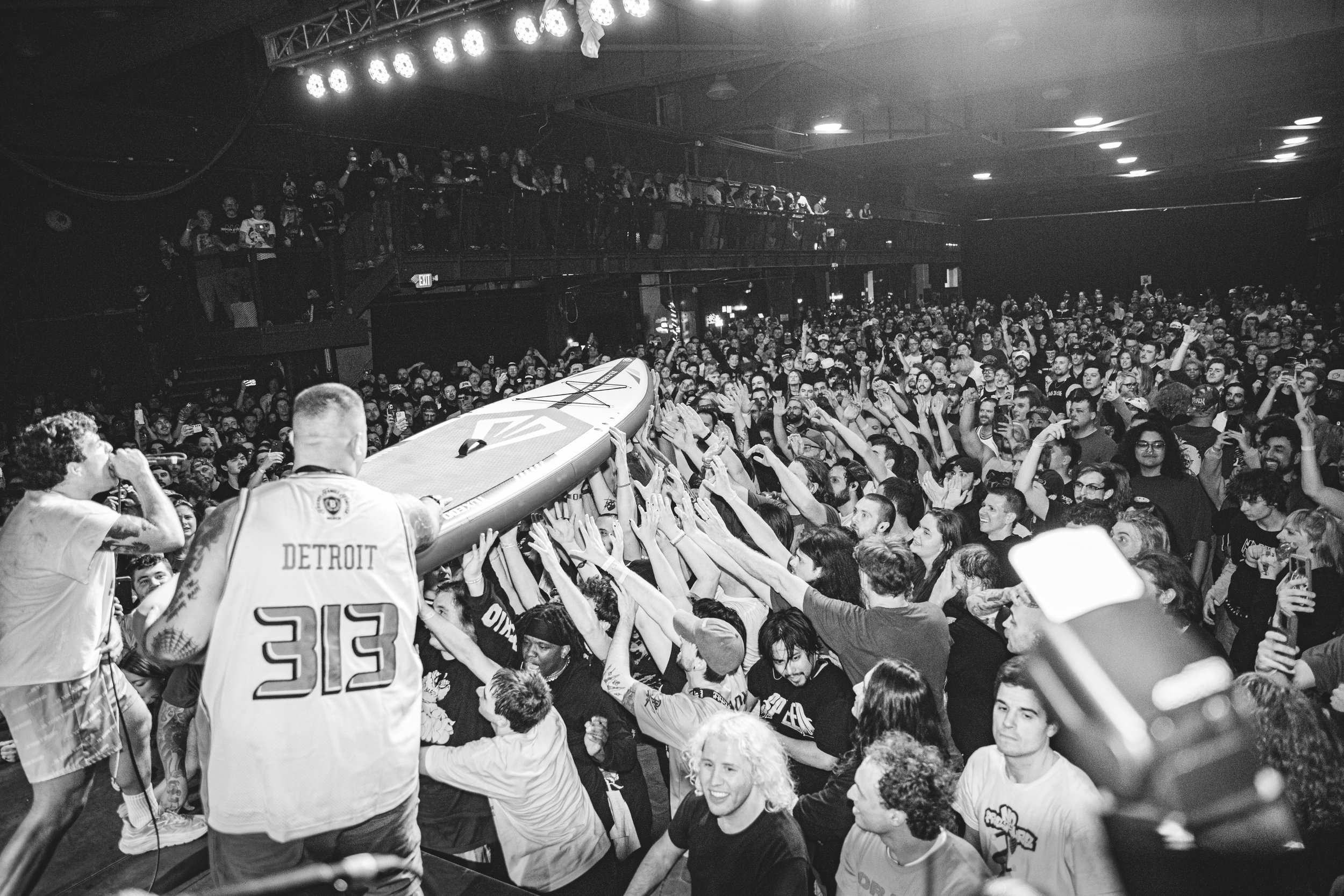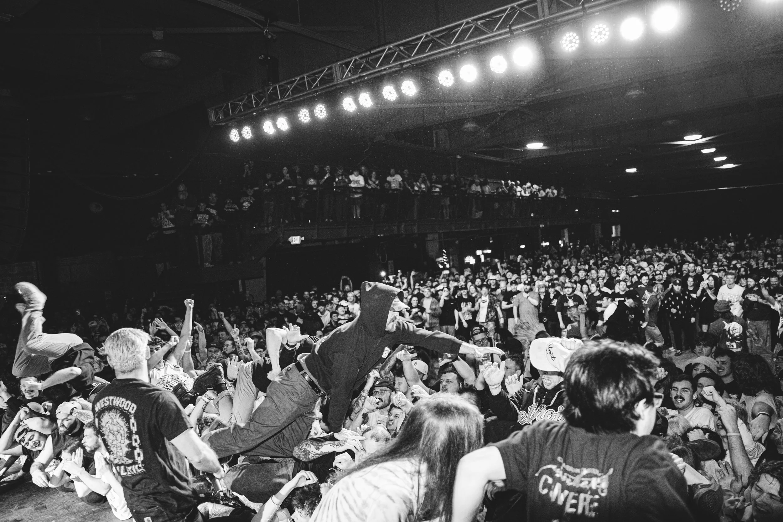 No Pressure brought so many stage dives. I took a moment to just count the stage dives for a moment, and it was laughable how many SUCCESSFUL dives there were. Made me proud, Detroit. Not too many people βlaying downβ or βWaving at people to catch themβ. After watching videos this week of other shows, it made me feel better about things in that regard.