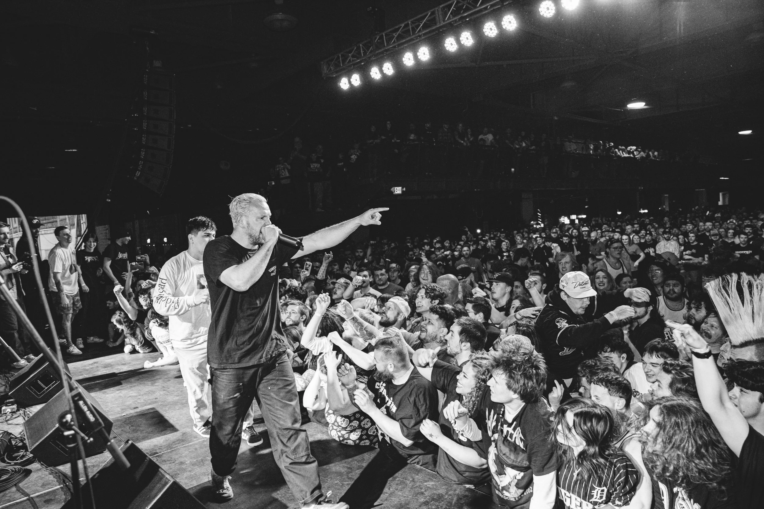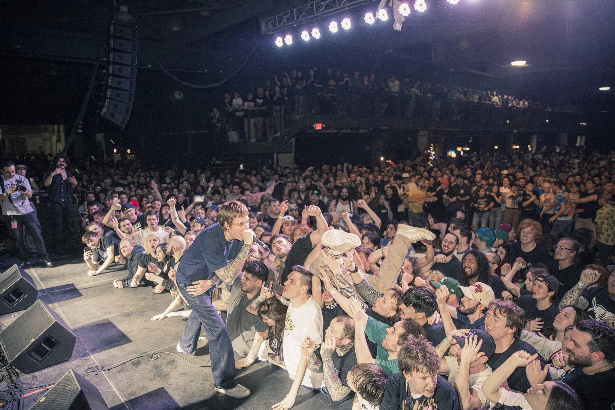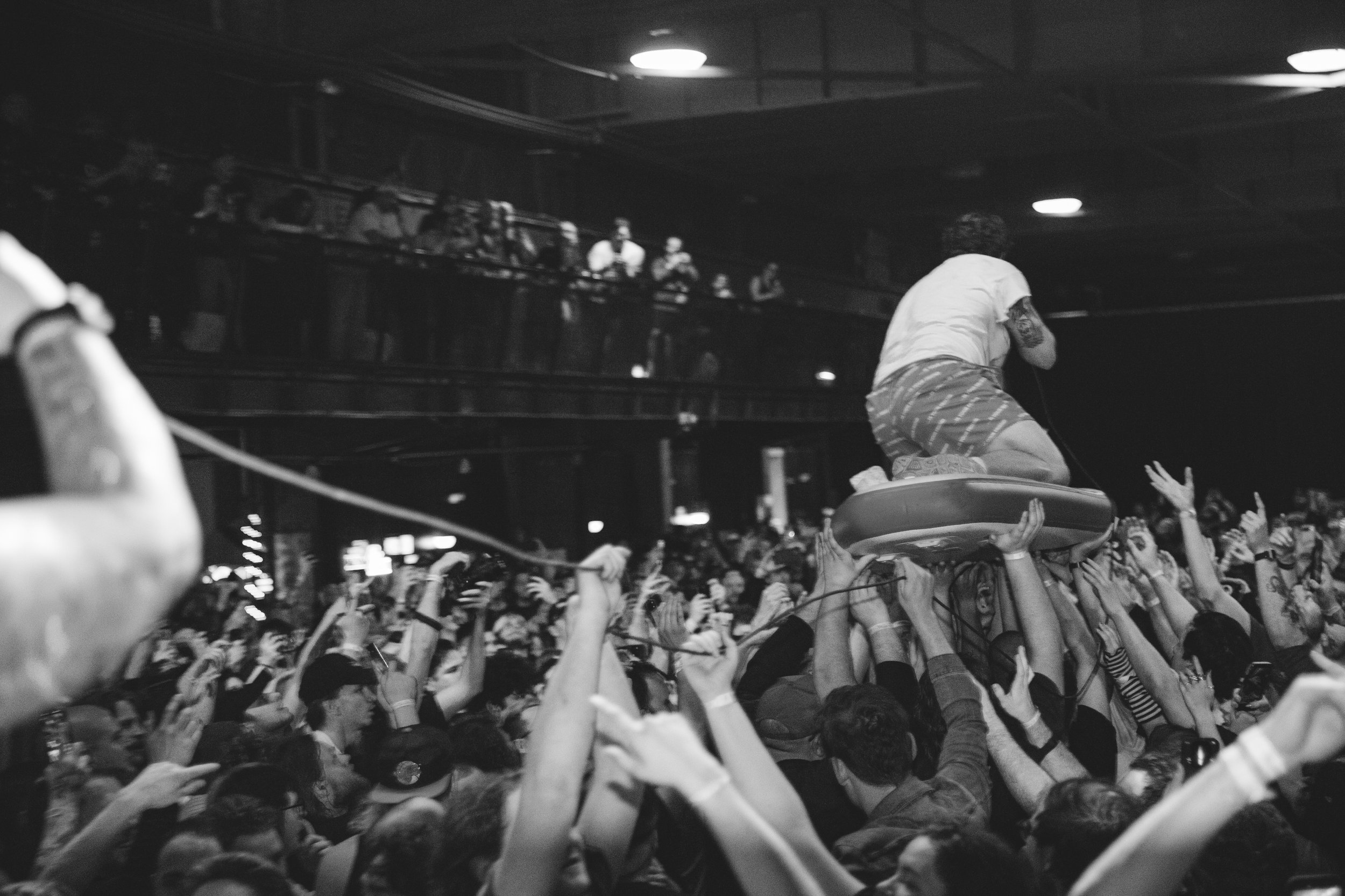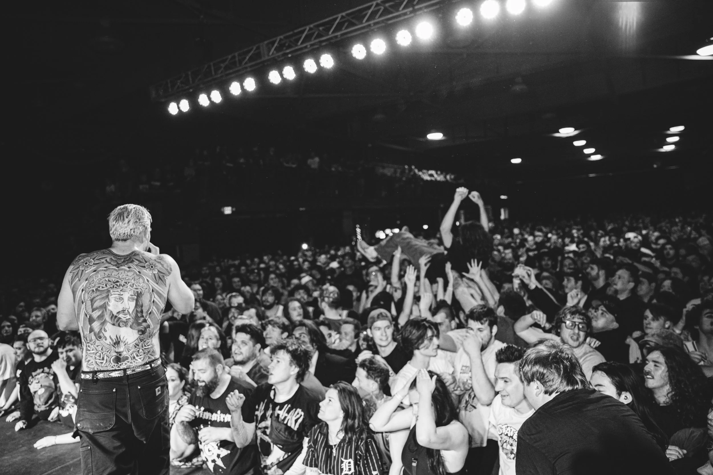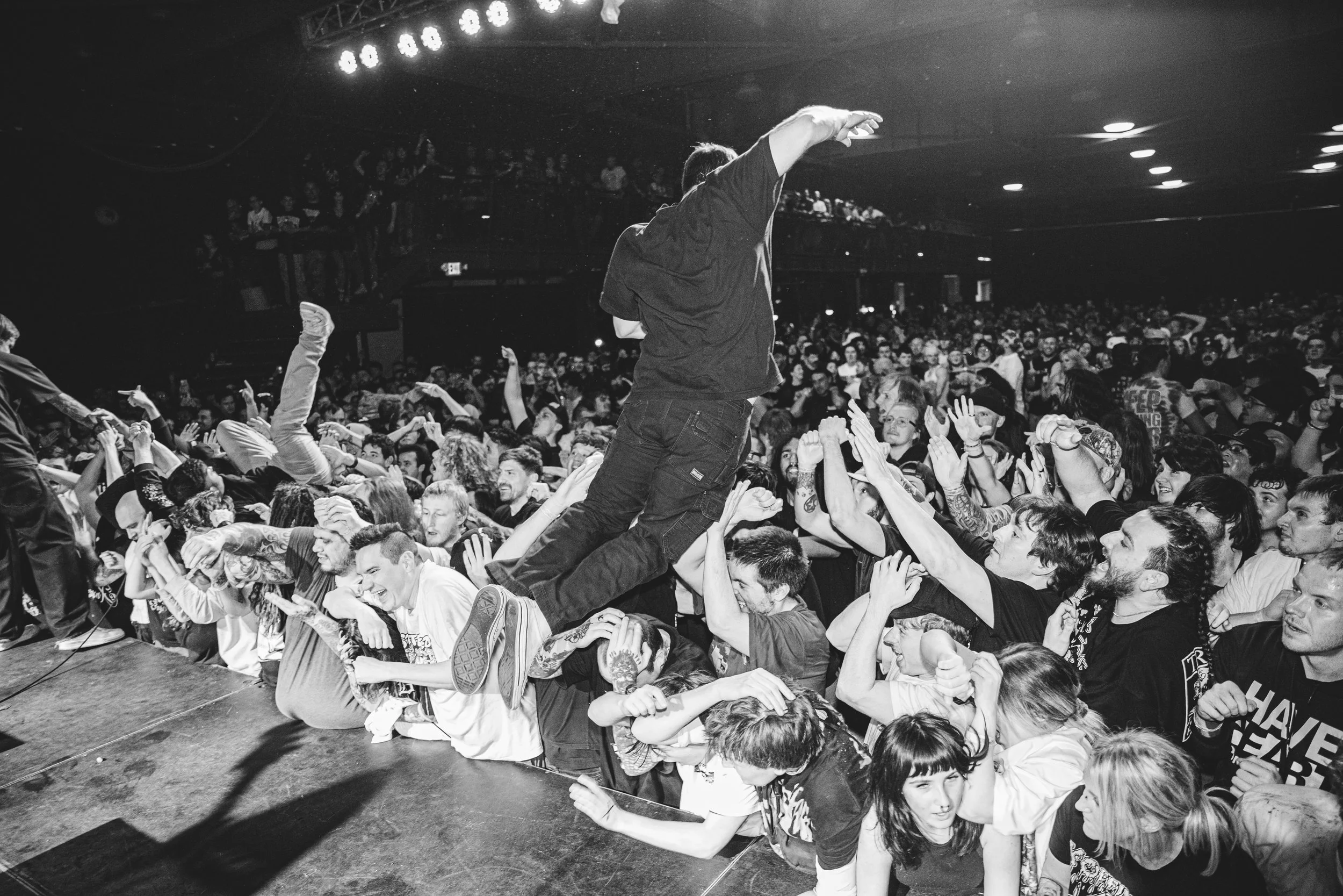 No Pressure brought so many stage dives. I took a moment to just count the stage dives for a moment, and it was laughable how many SUCCESSFUL dives there were. Made me proud, Detroit. Not too many people βlaying downβ or βWaving at people to catch themβ. After watching videos this week of other shows, it made me feel better about things in that regard.