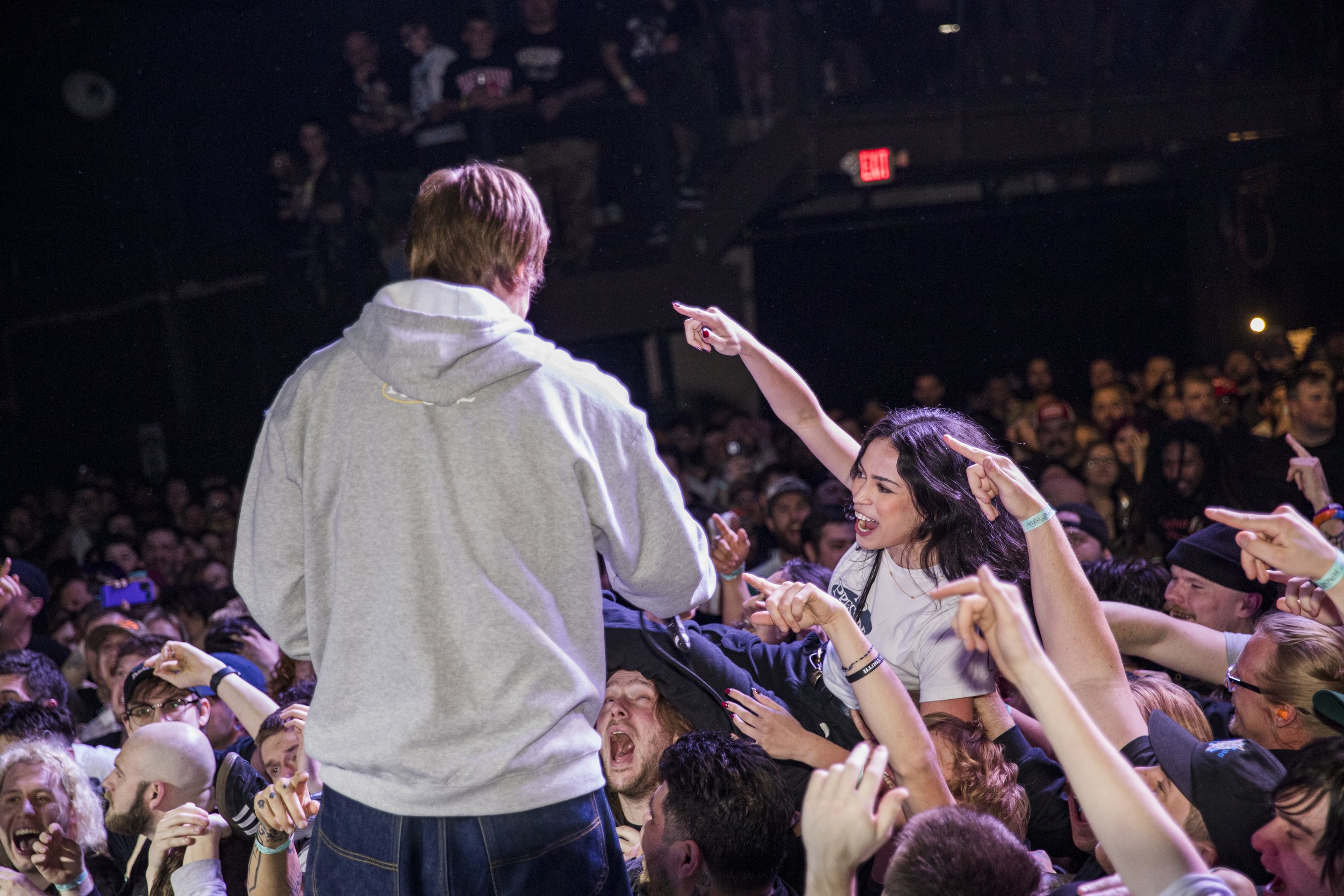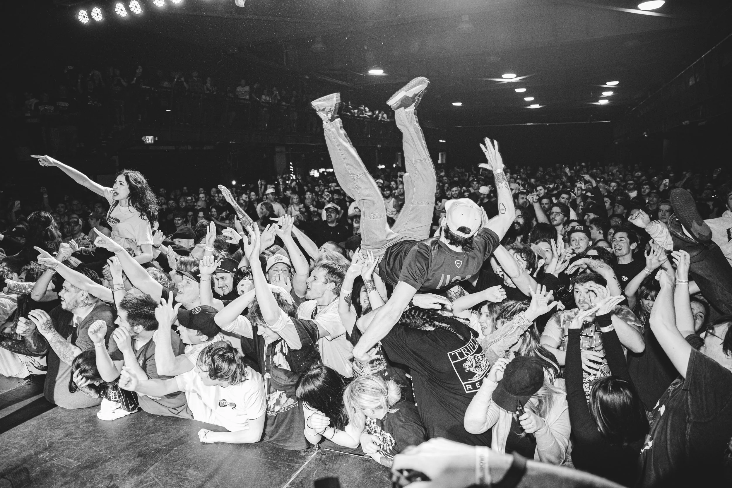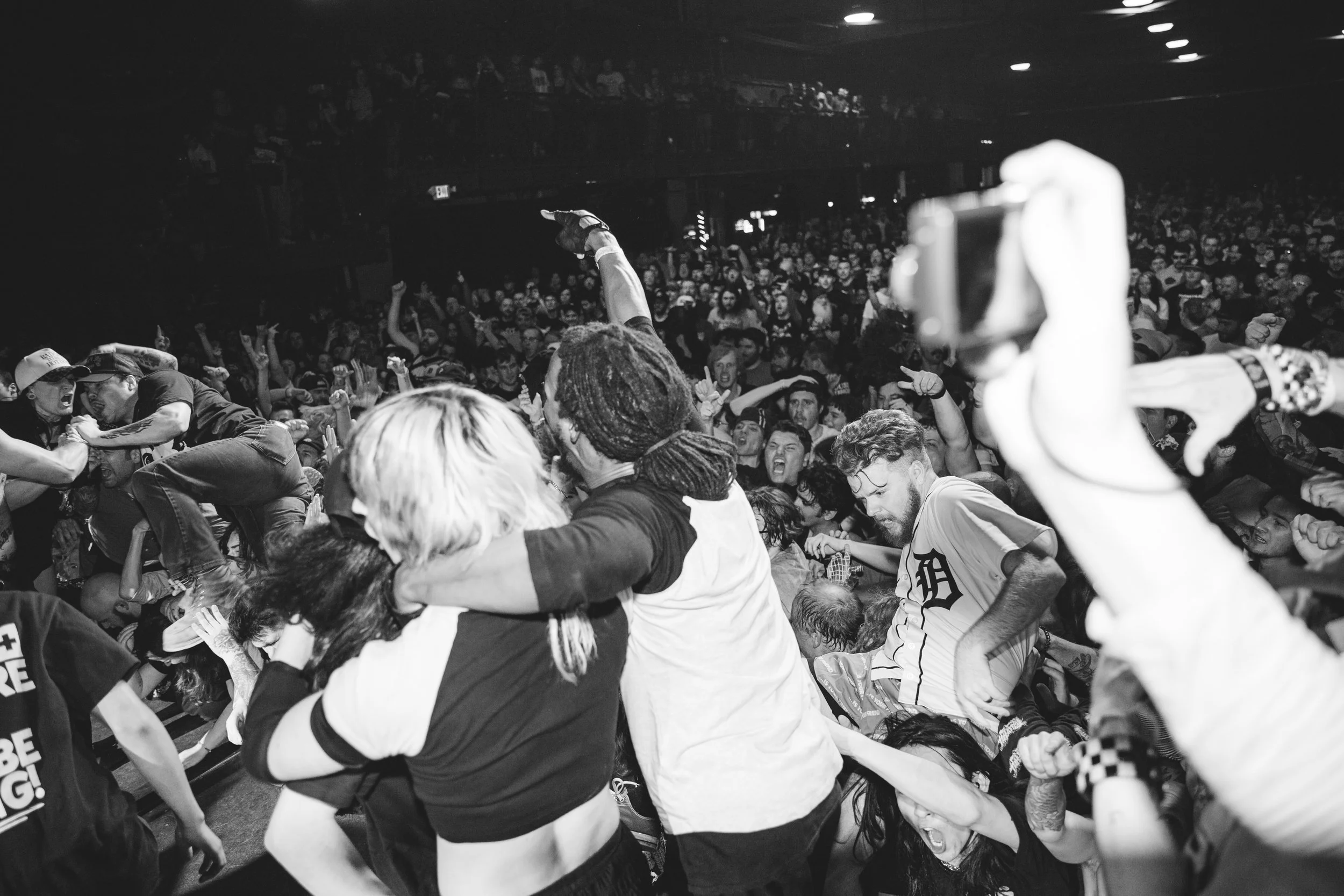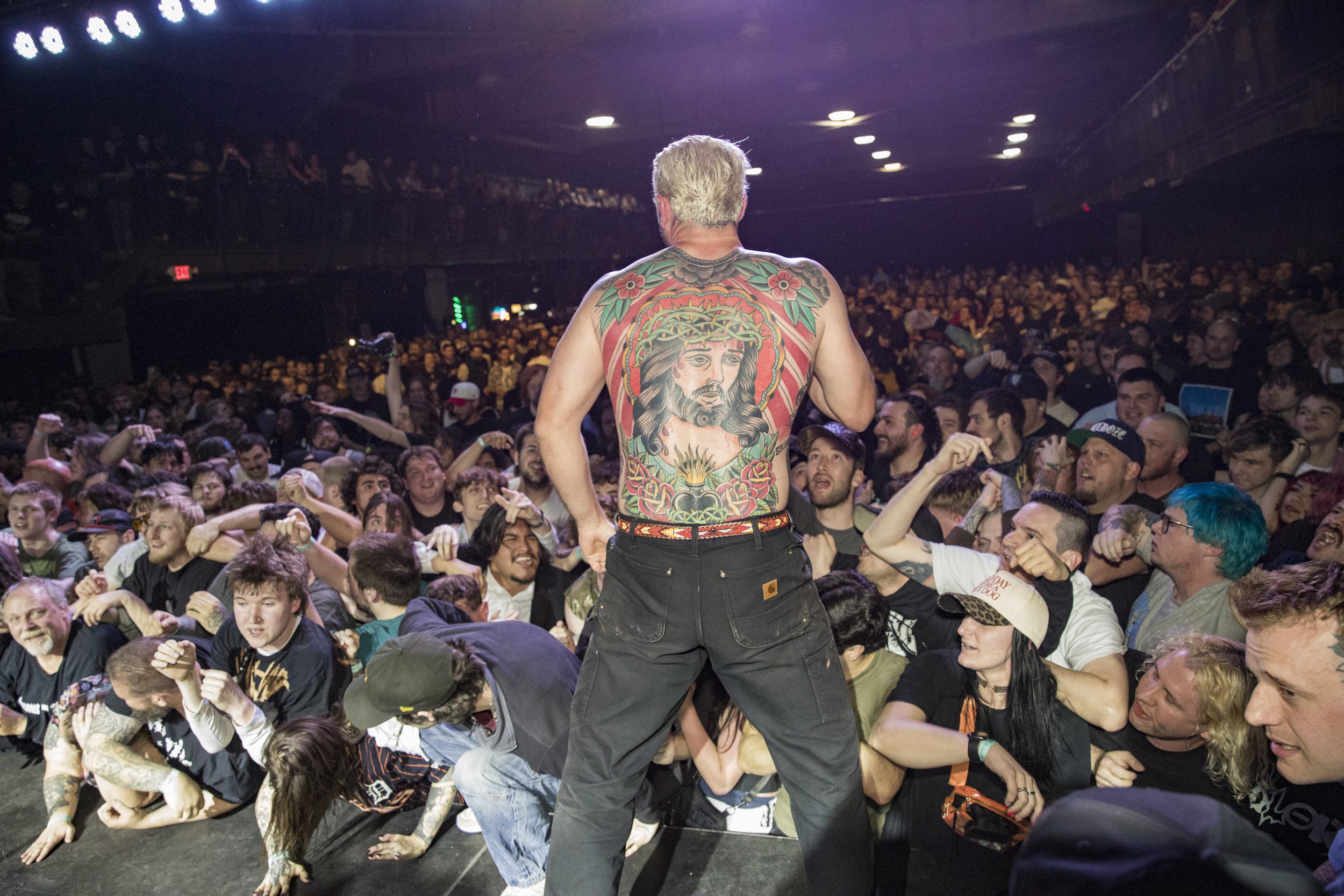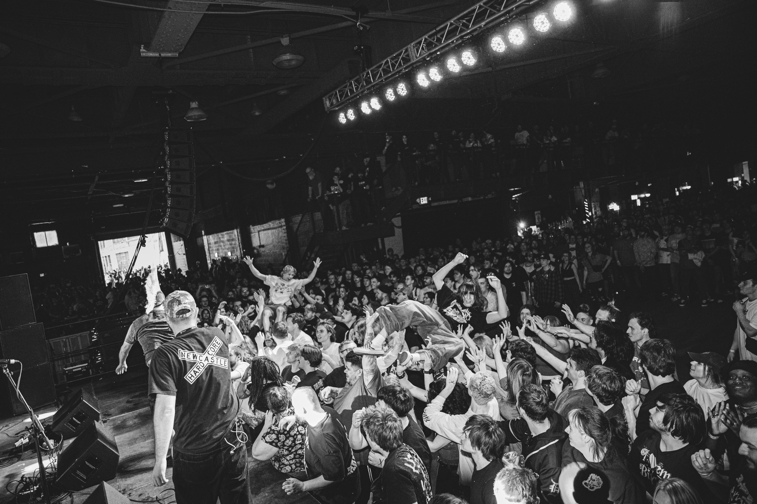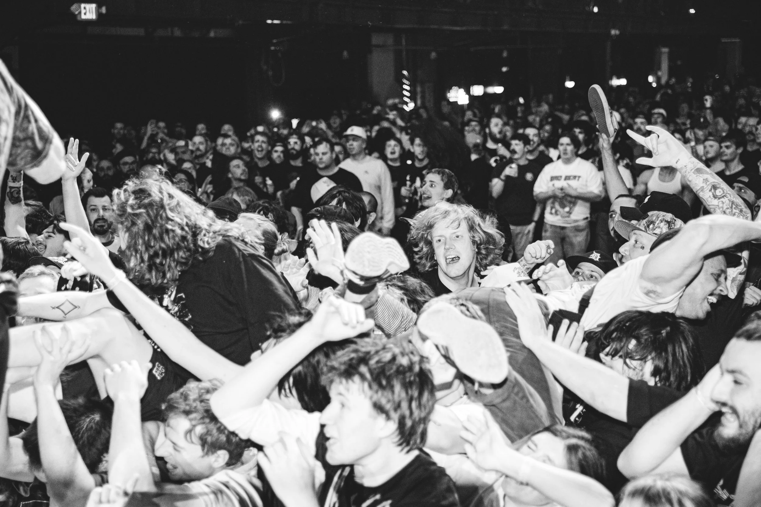No Pressure brought so many stage dives. I took a moment to just count the stage dives for a moment, and it was laughable how many SUCCESSFUL dives there were. Made me proud, Detroit. Not too many people βlaying downβ or βWaving at people to catch themβ. After watching videos this week of other shows, it made me feel better about things in that regard.