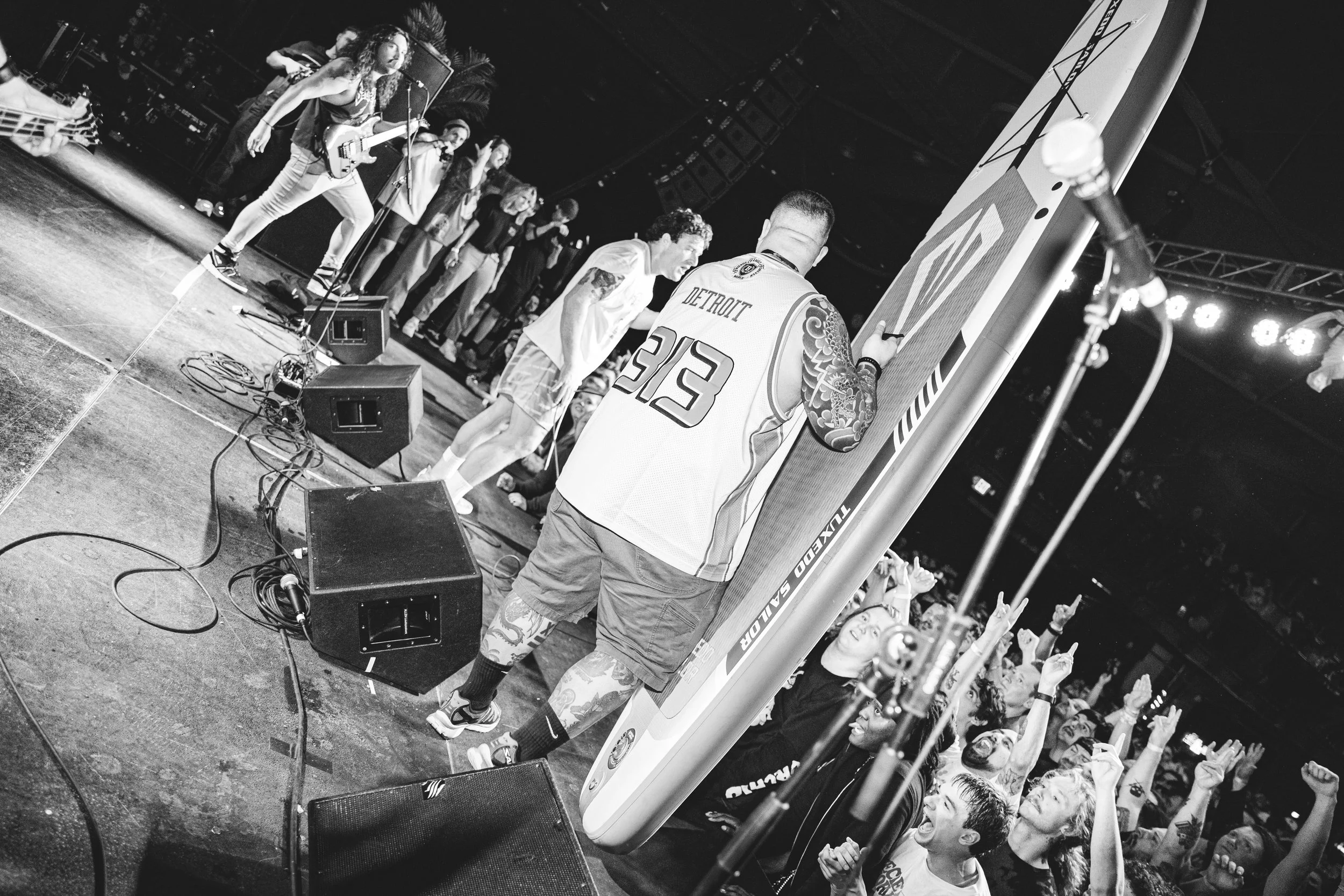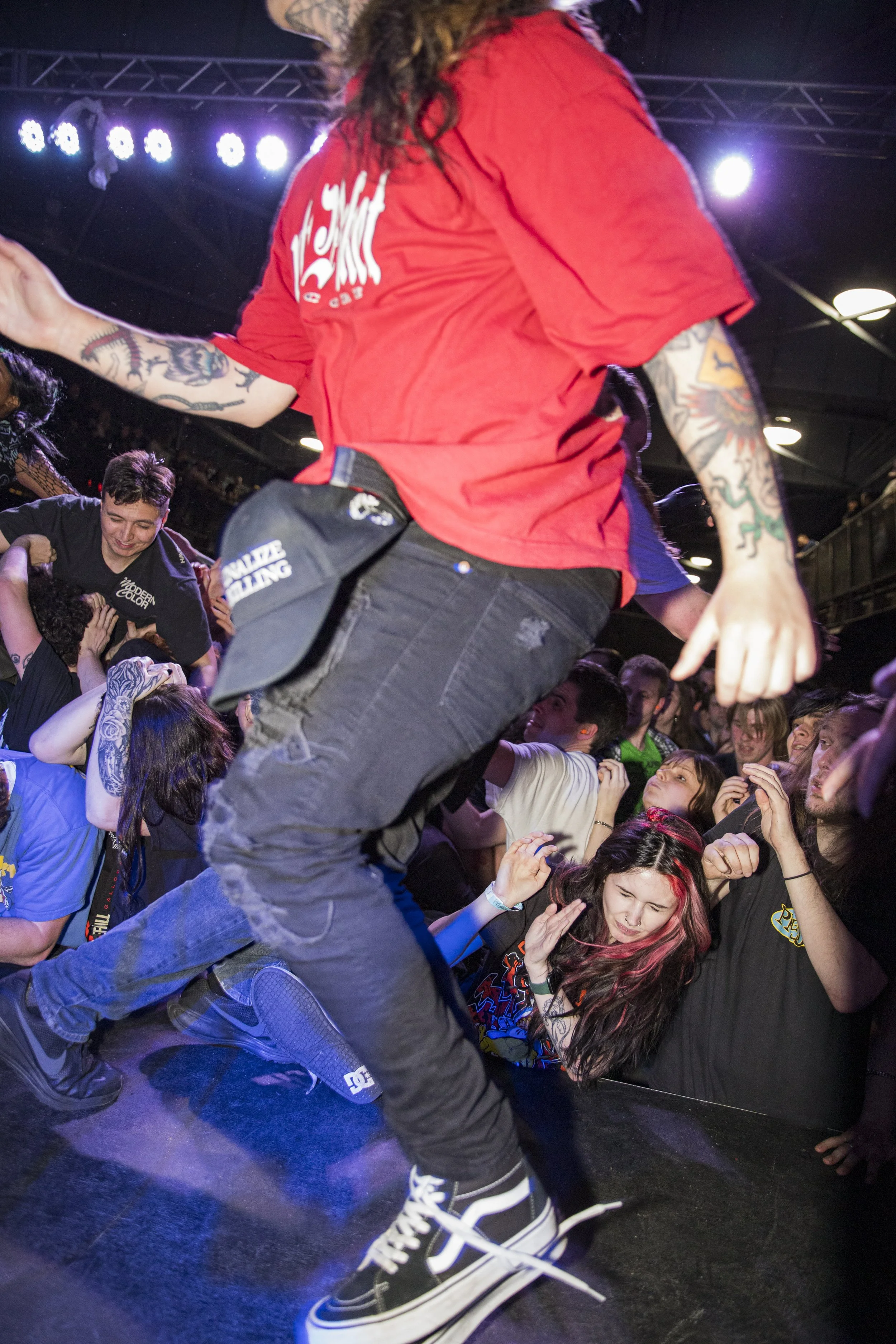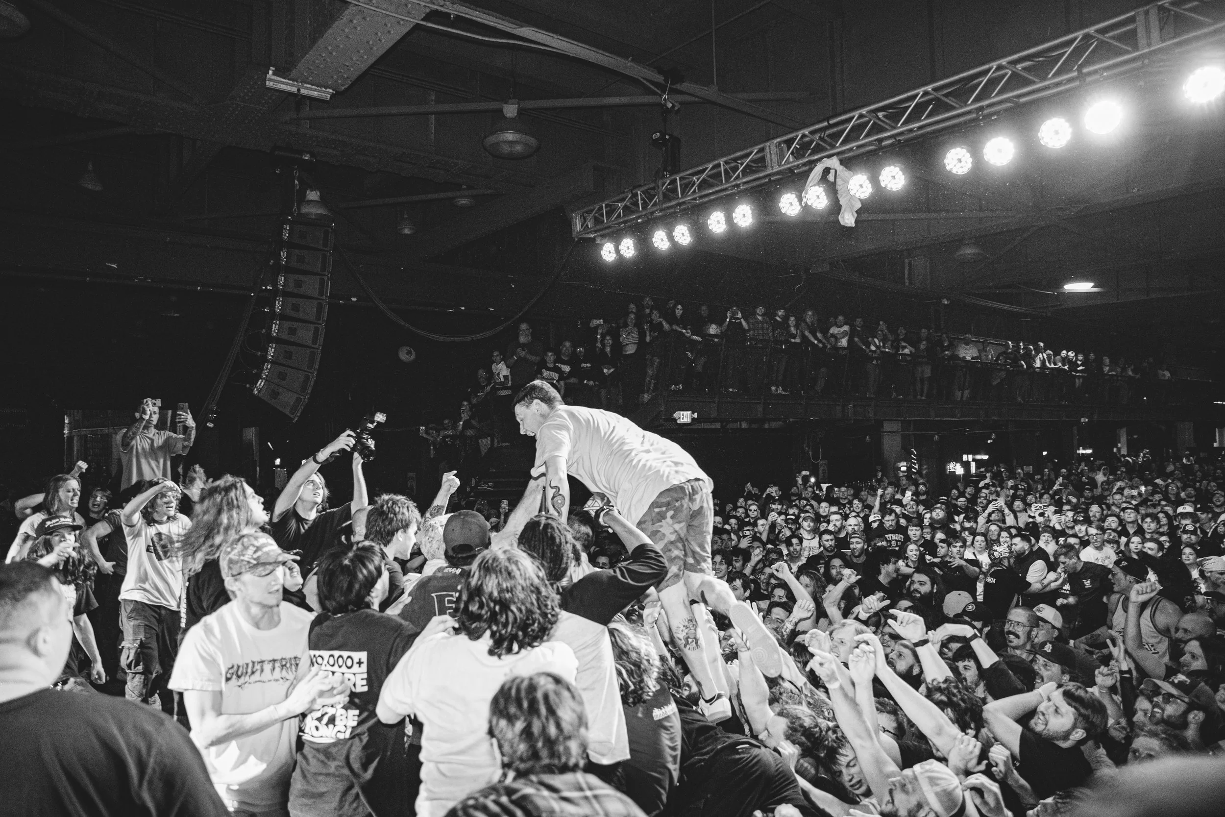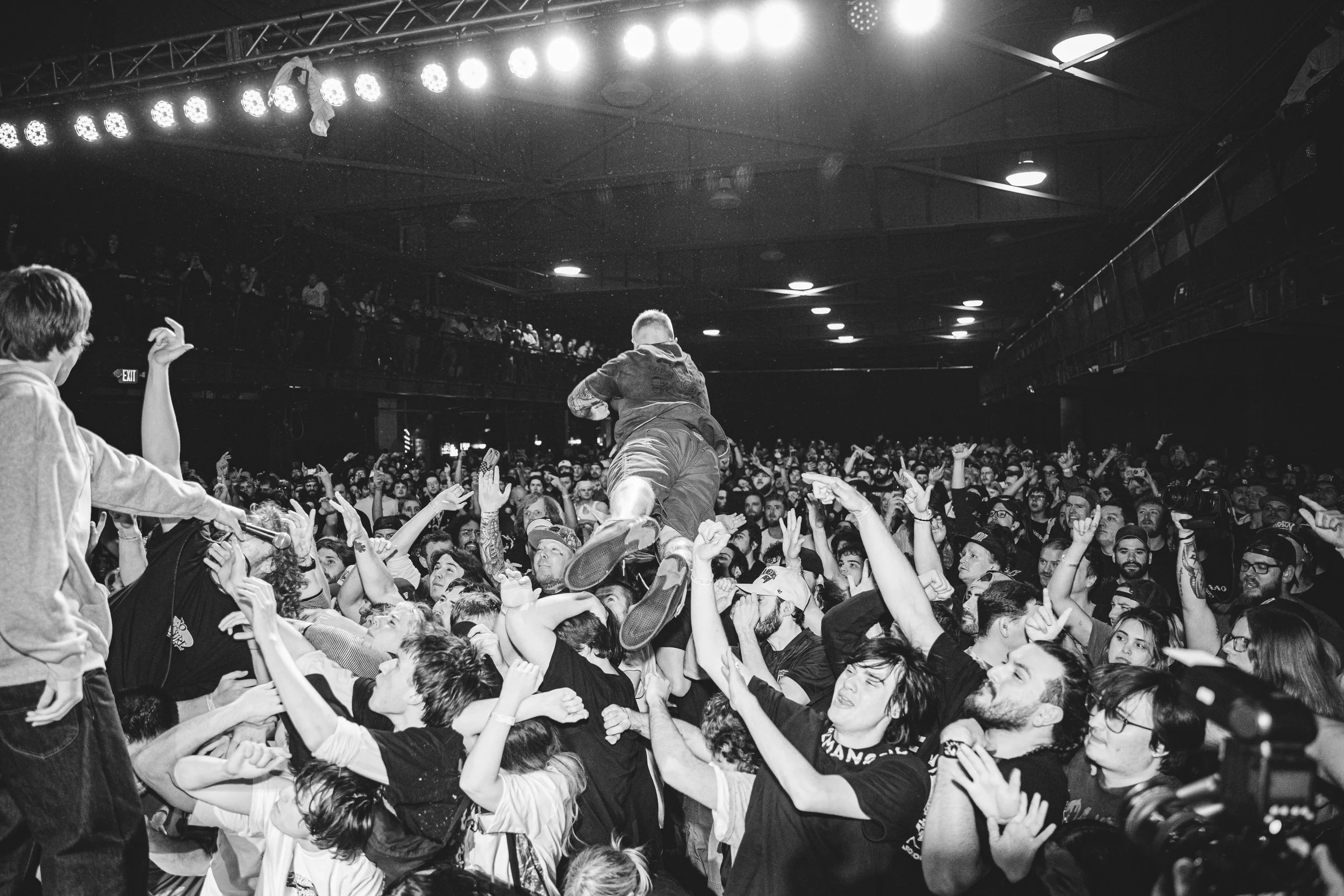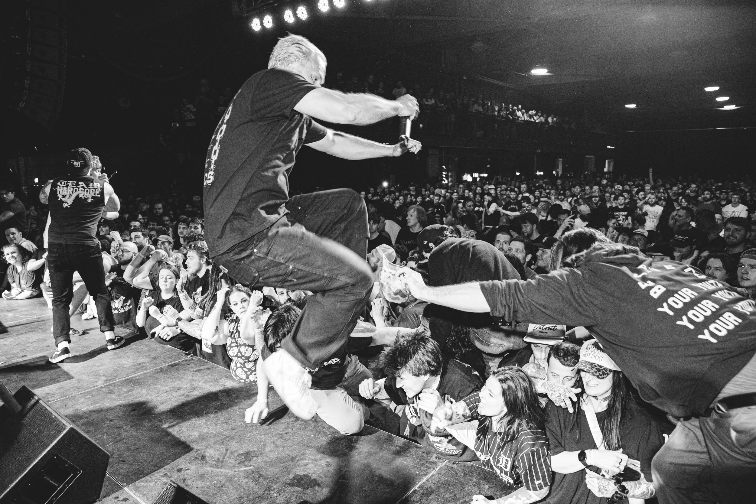 No Pressure brought so many stage dives. I took a moment to just count the stage dives for a moment, and it was laughable how many SUCCESSFUL dives there were. Made me proud, Detroit. Not too many people βlaying downβ or βWaving at people to catch themβ. After watching videos this week of other shows, it made me feel better about things in that regard.