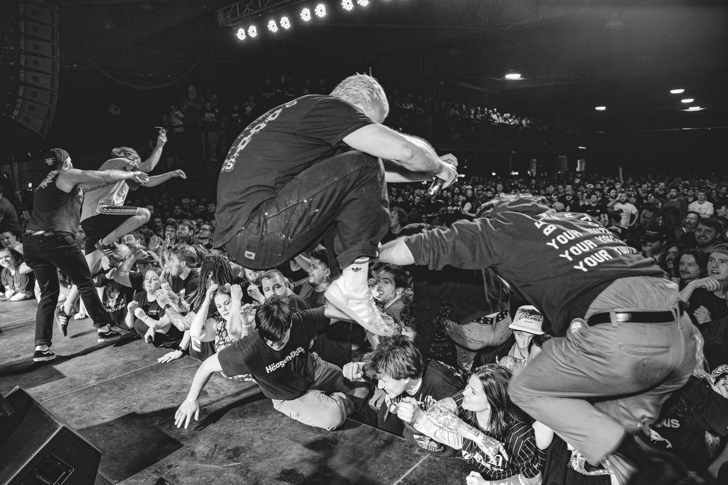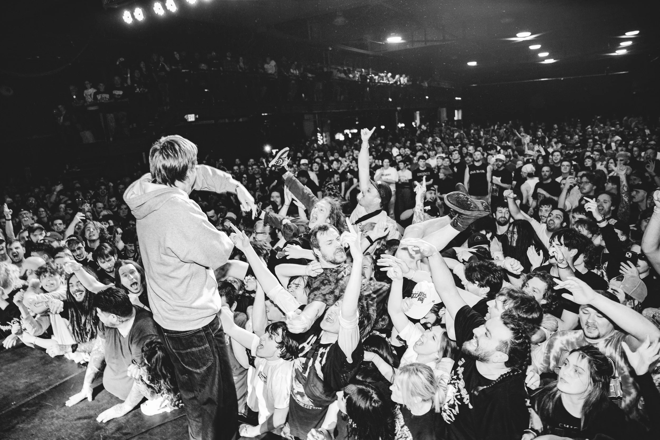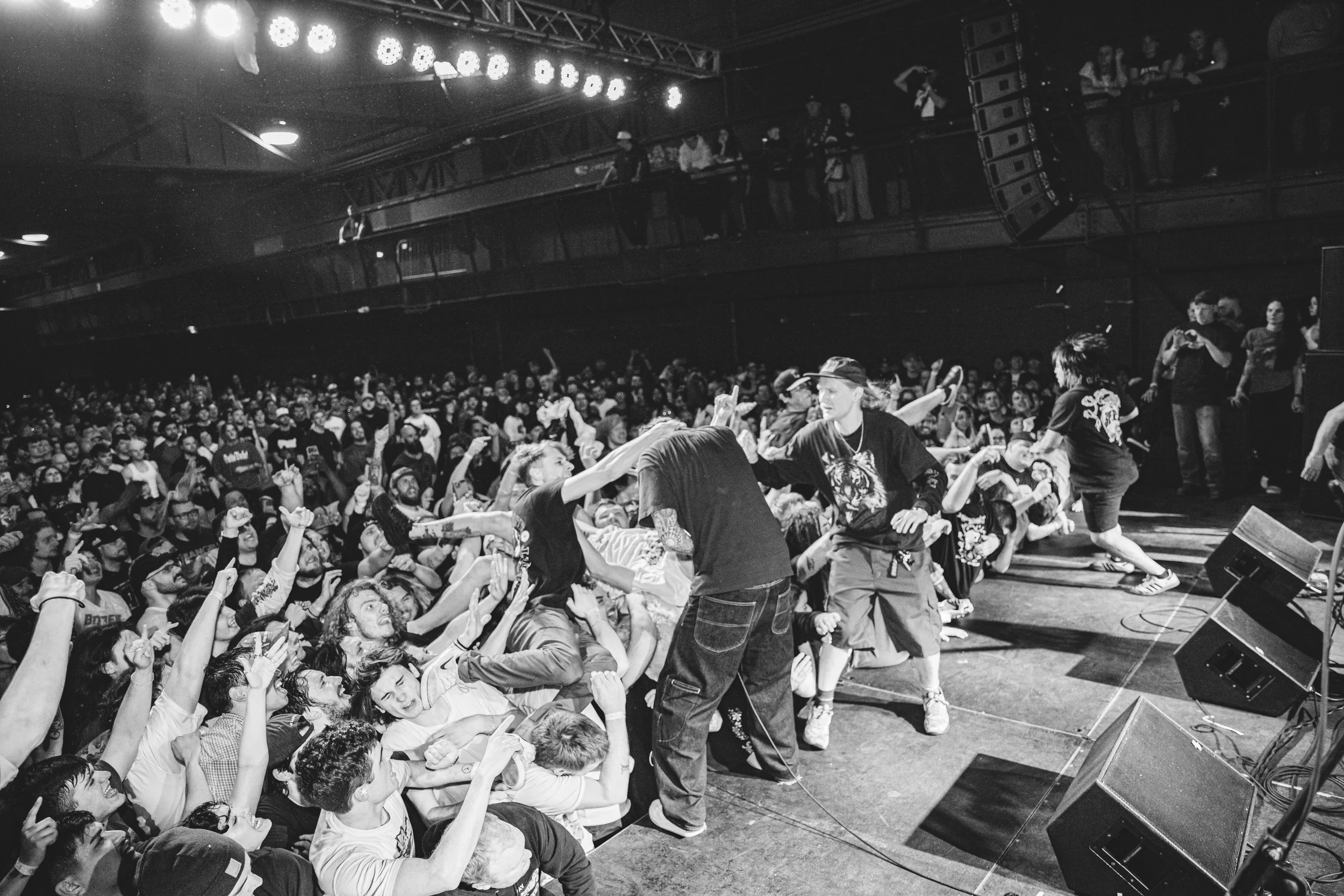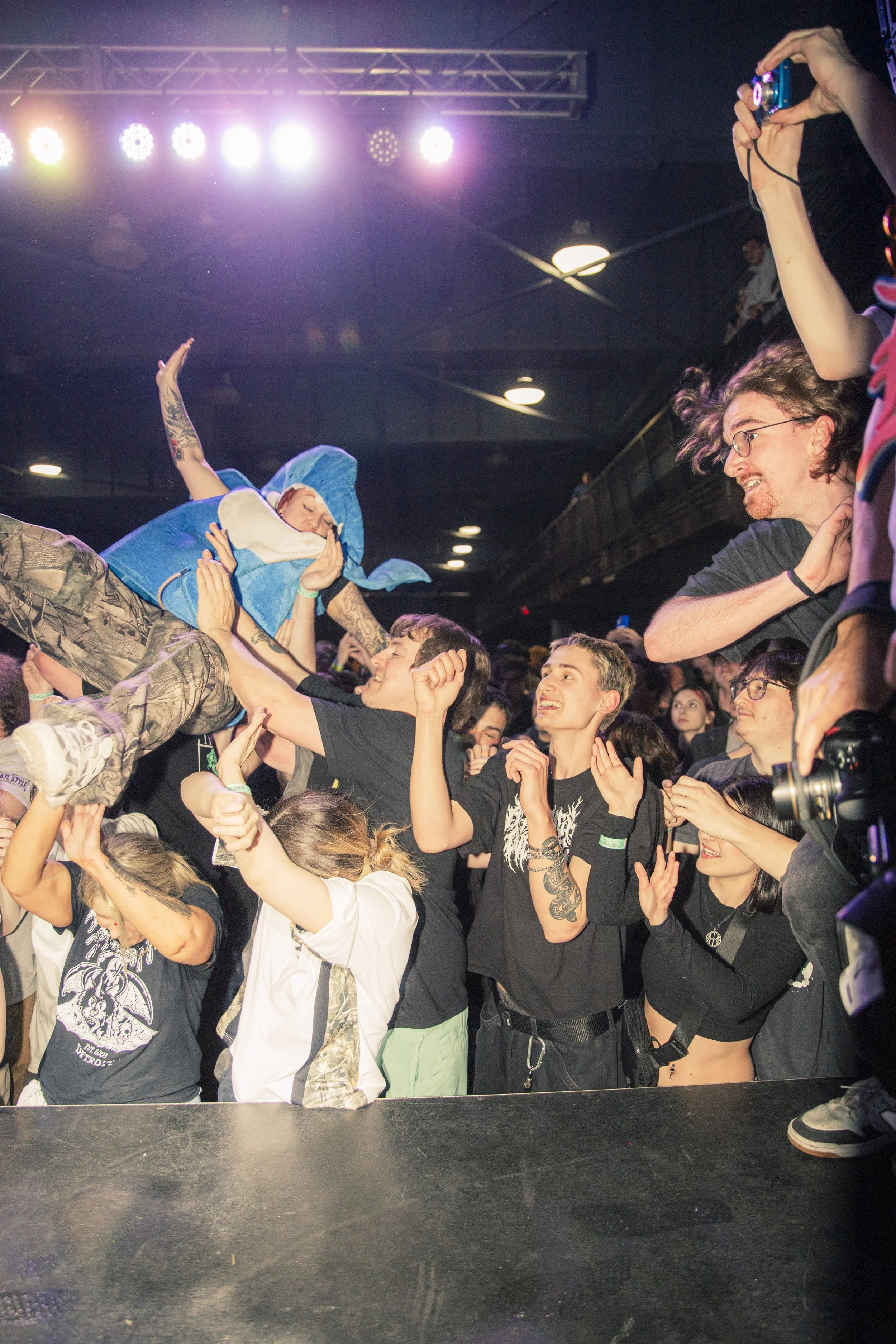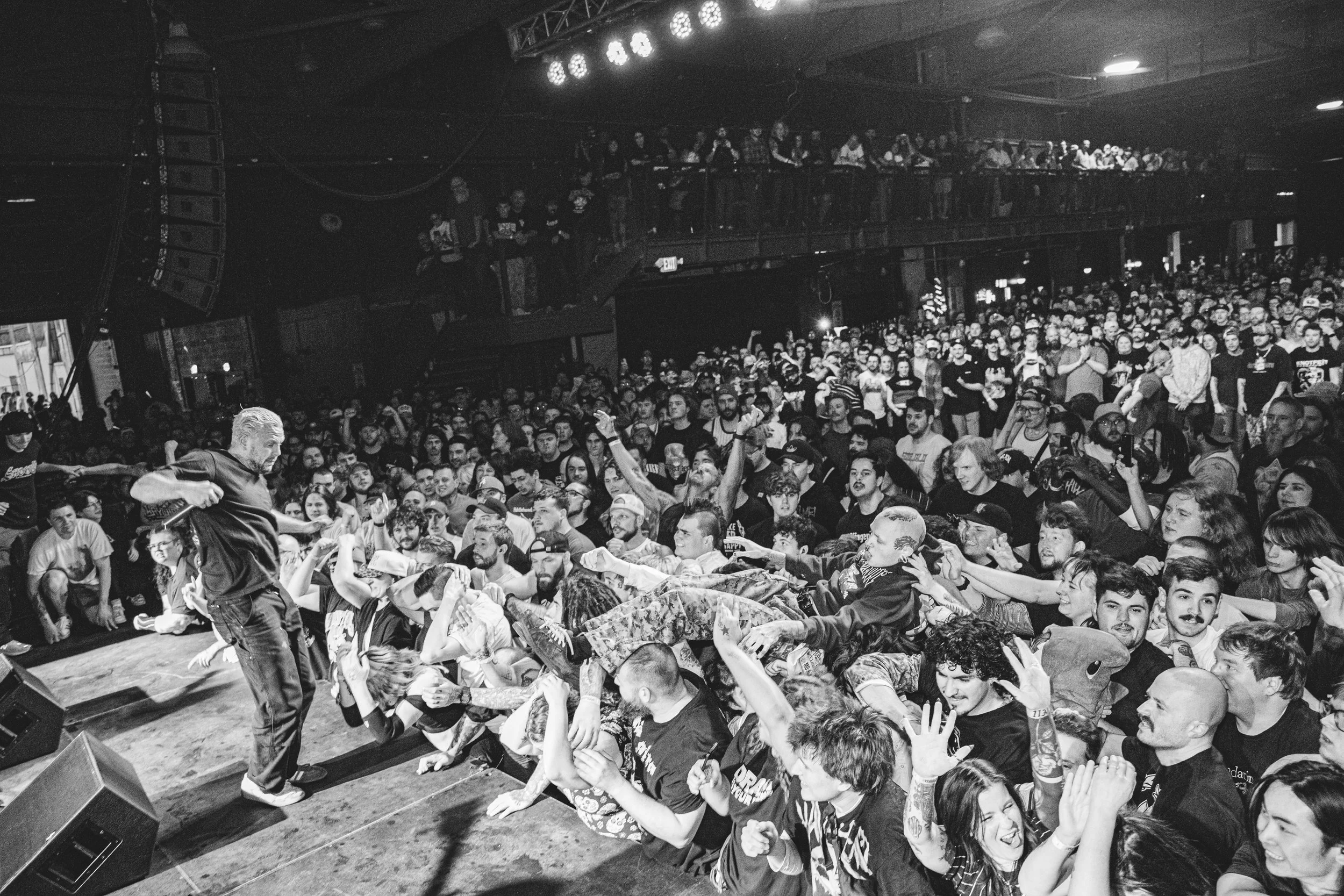 No Pressure brought so many stage dives. I took a moment to just count the stage dives for a moment, and it was laughable how many SUCCESSFUL dives there were. Made me proud, Detroit. Not too many people βlaying downβ or βWaving at people to catch themβ. After watching videos this week of other shows, it made me feel better about things in that regard.