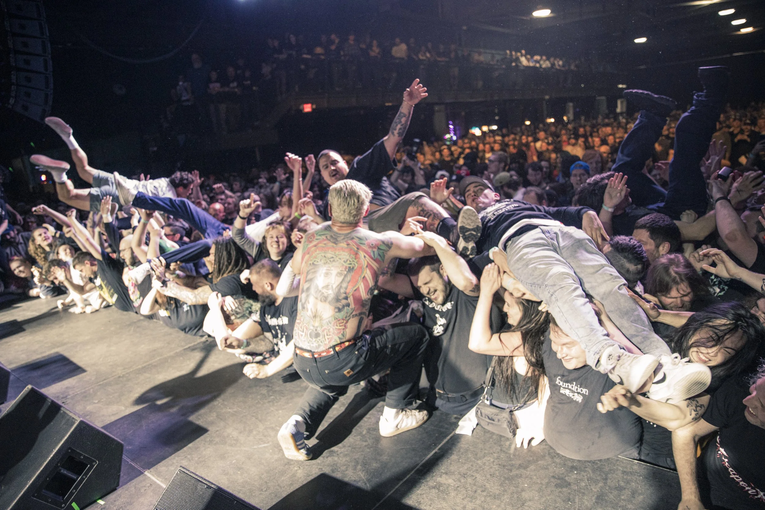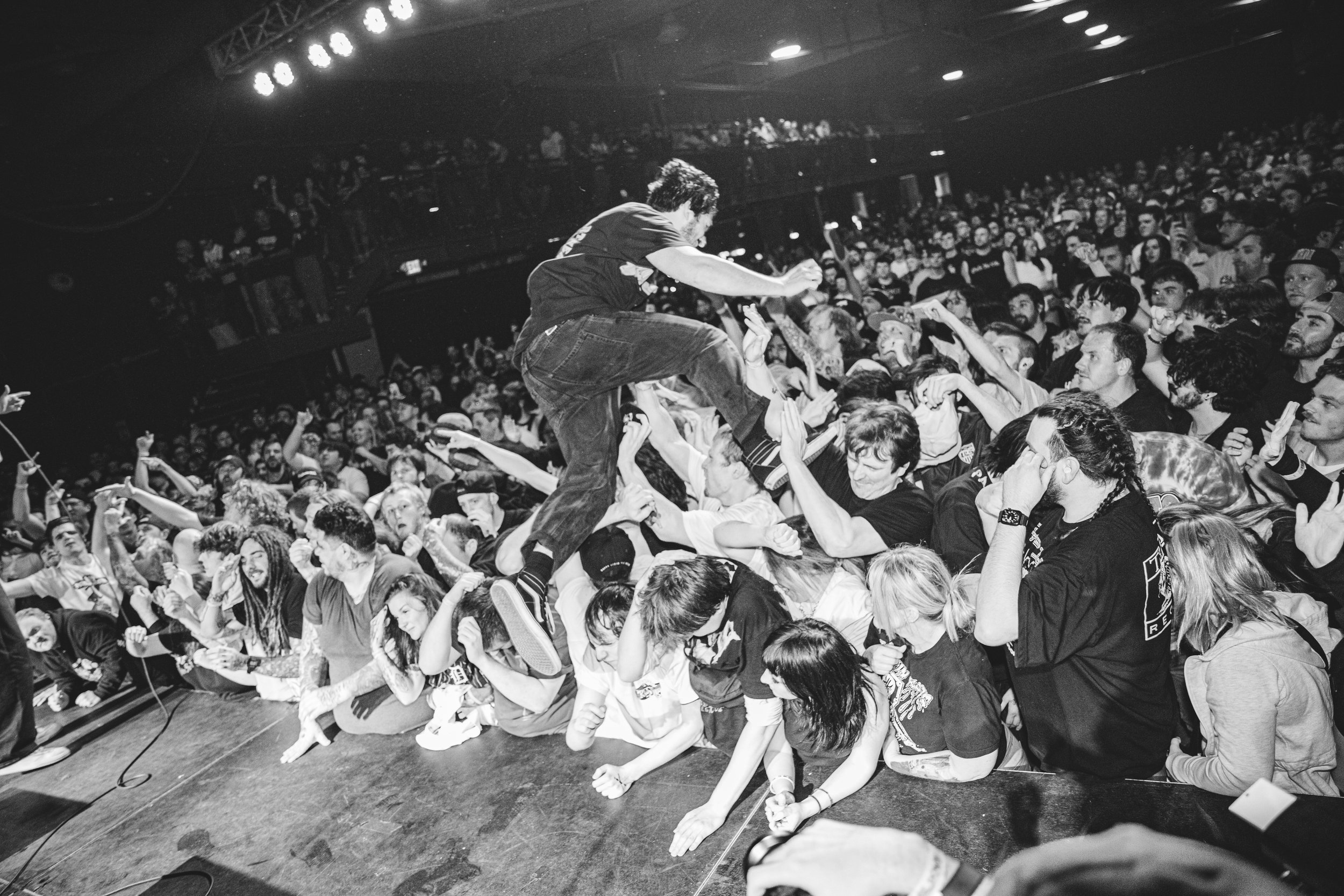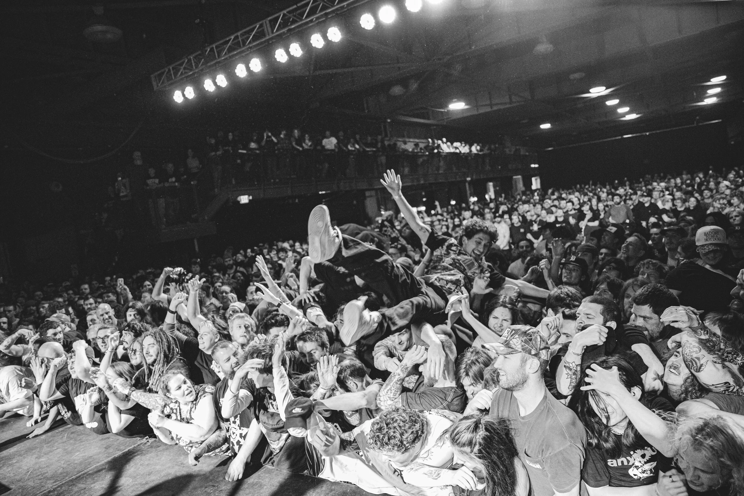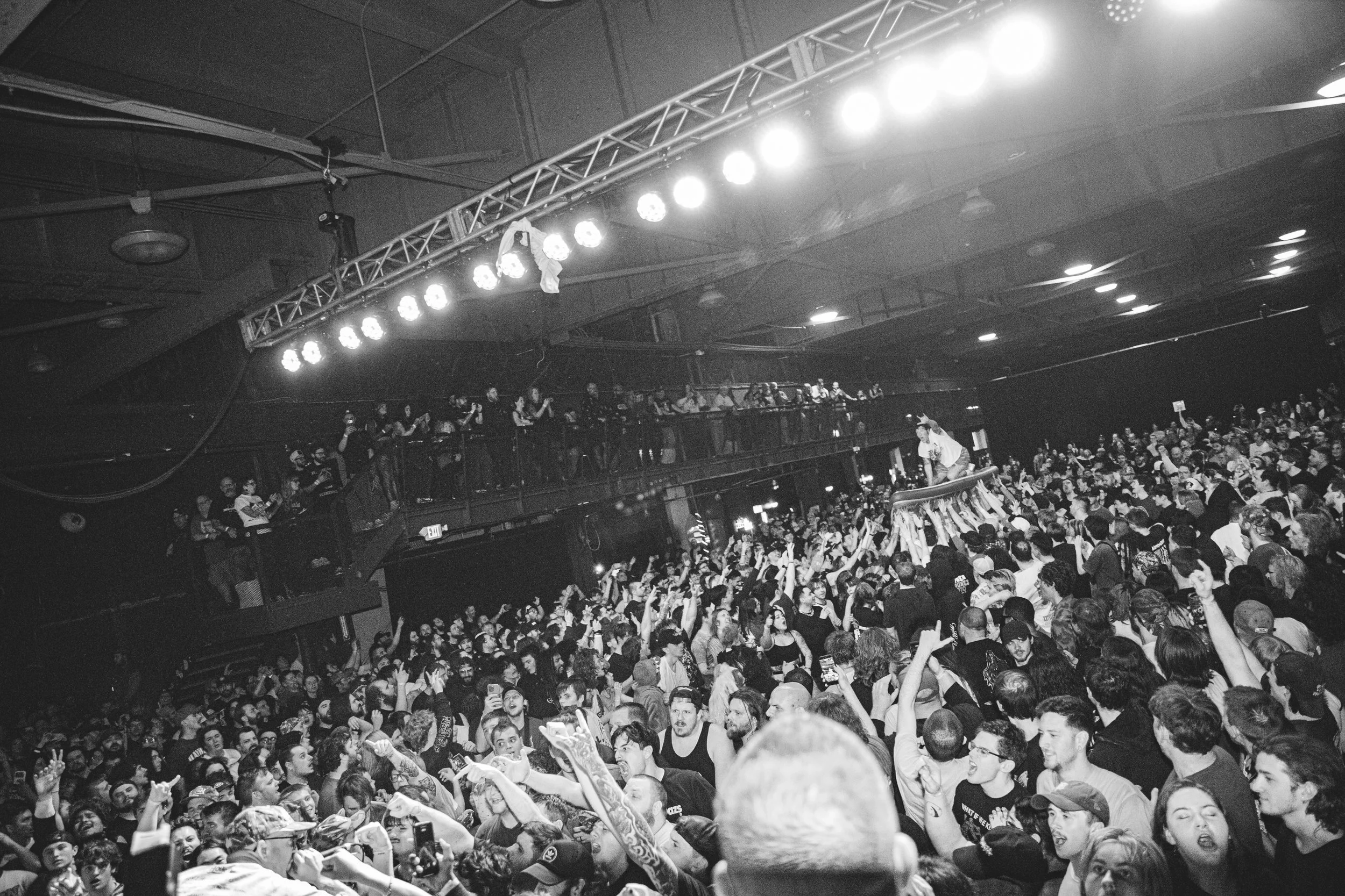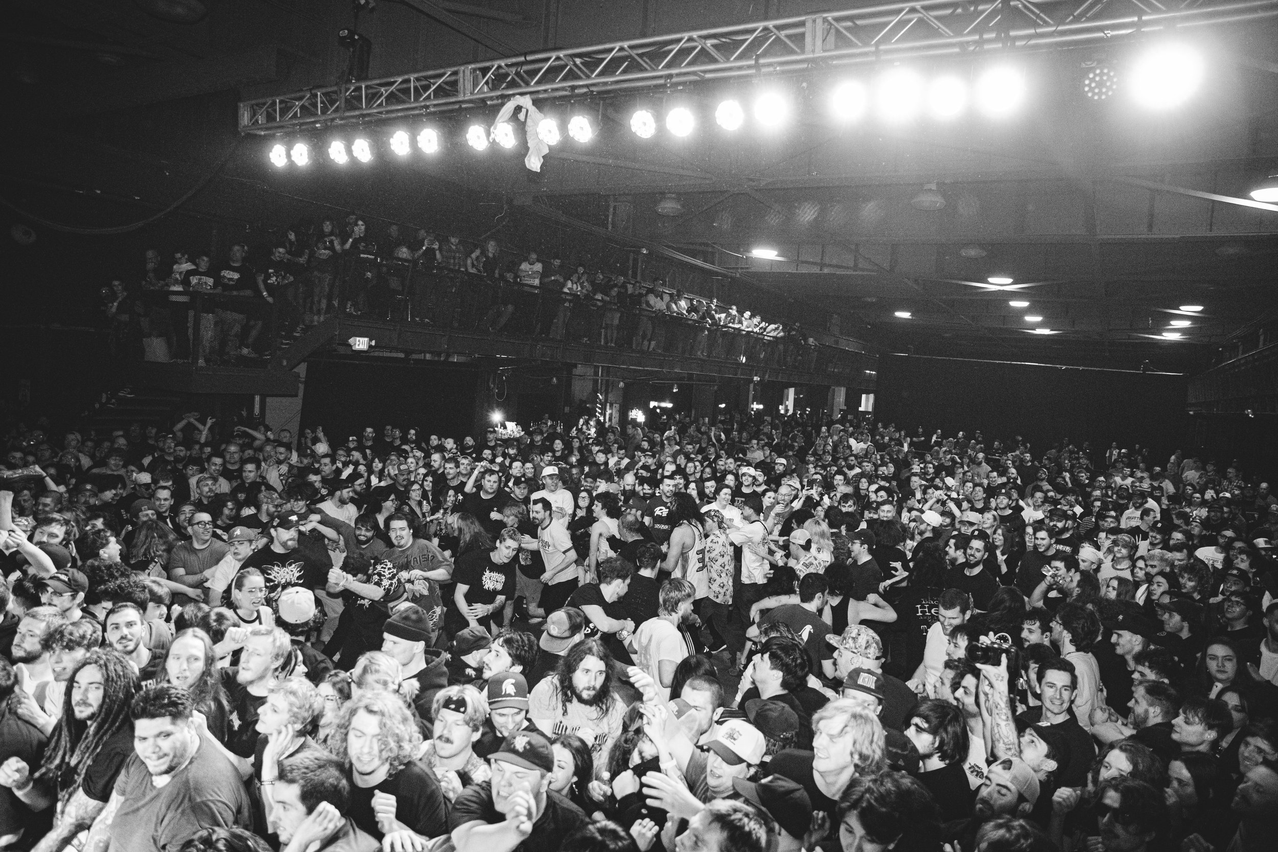 No Pressure brought so many stage dives. I took a moment to just count the stage dives for a moment, and it was laughable how many SUCCESSFUL dives there were. Made me proud, Detroit. Not too many people βlaying downβ or βWaving at people to catch themβ. After watching videos this week of other shows, it made me feel better about things in that regard.