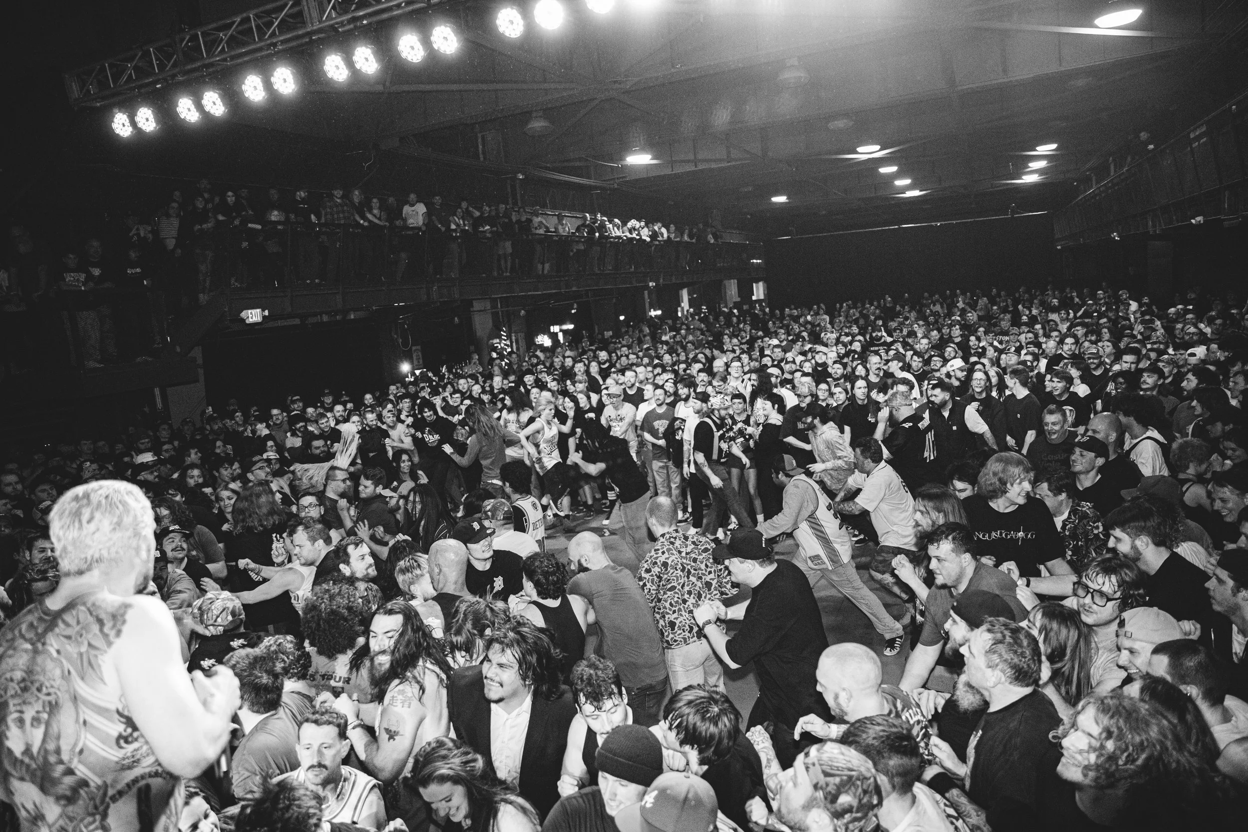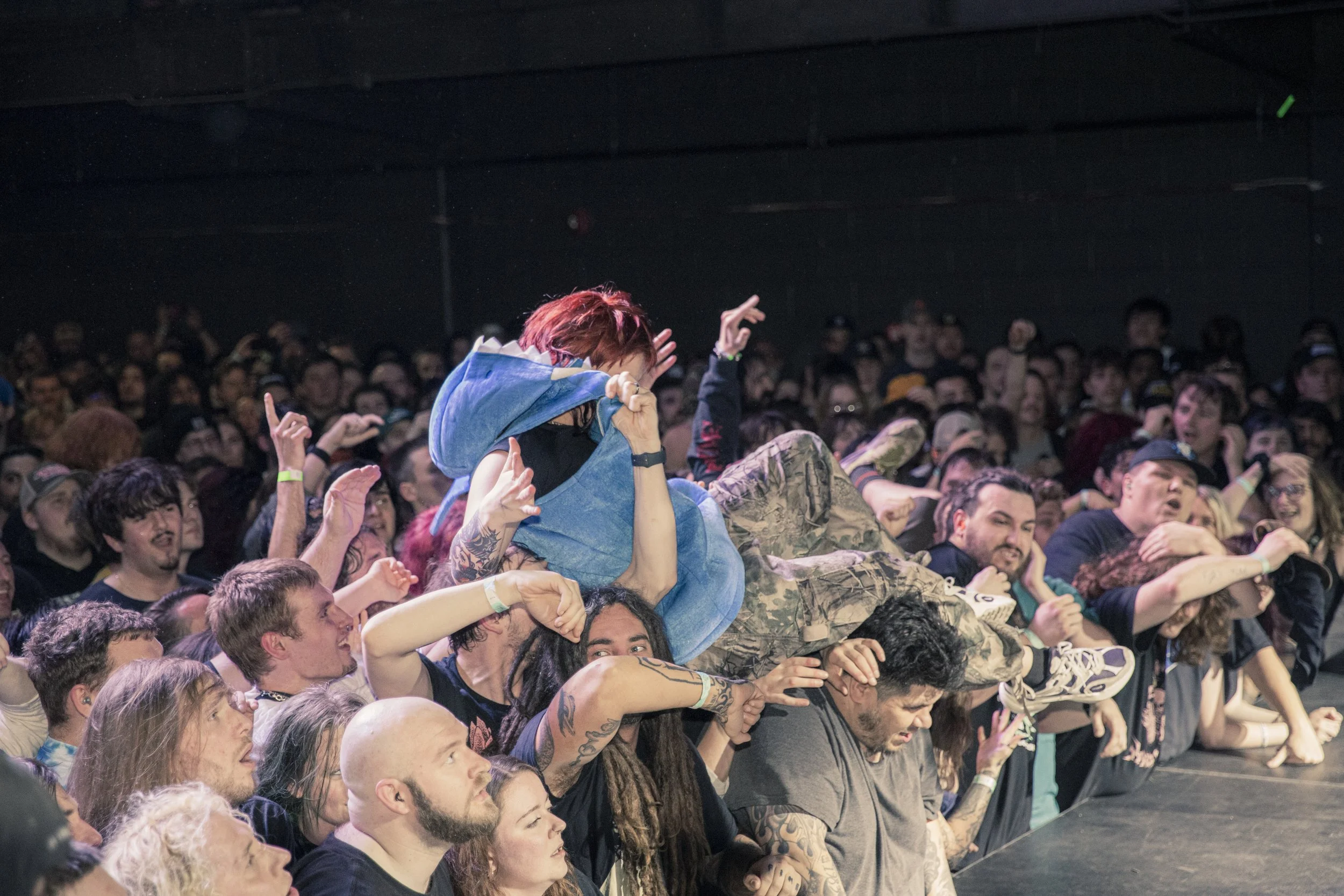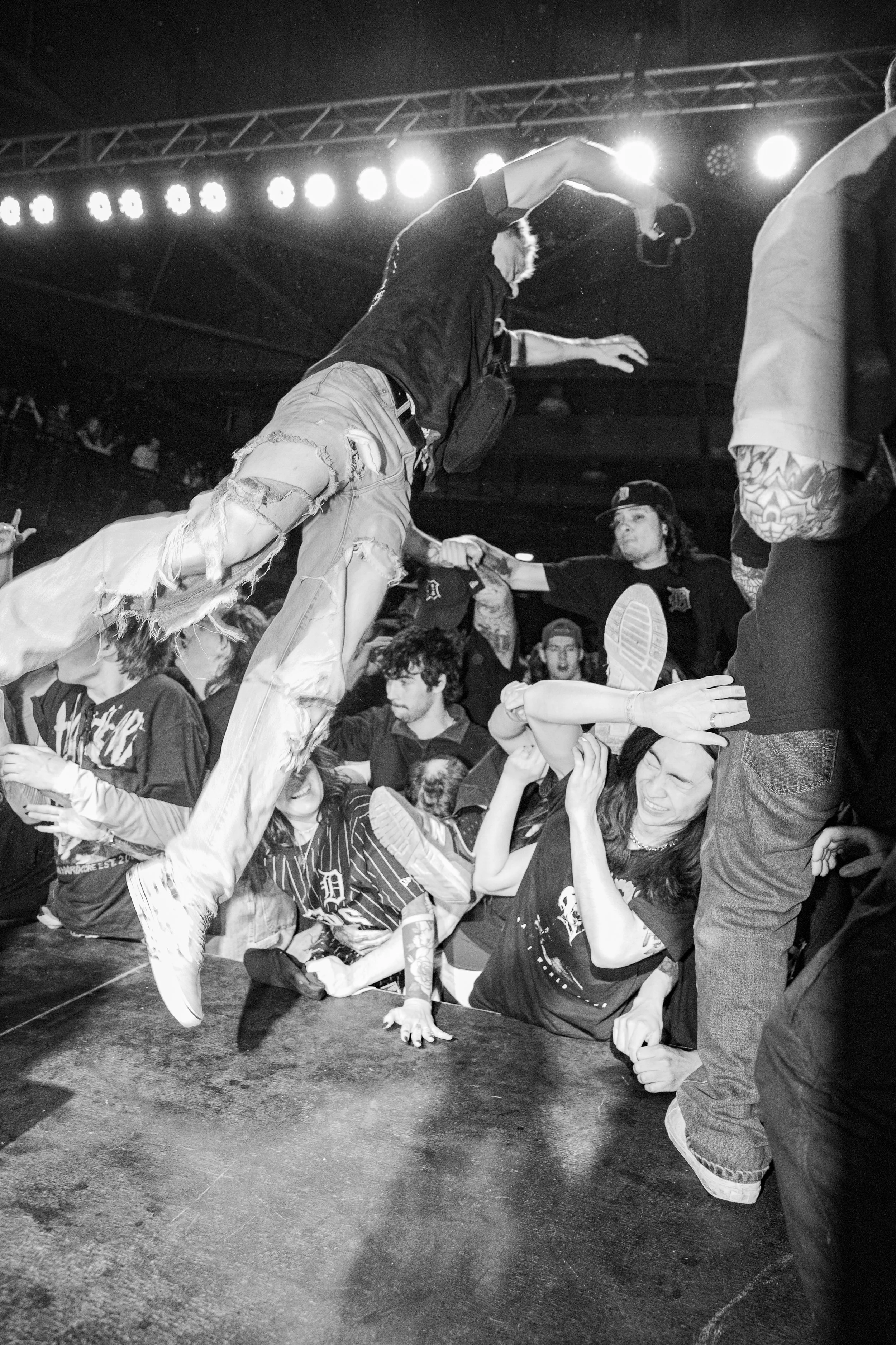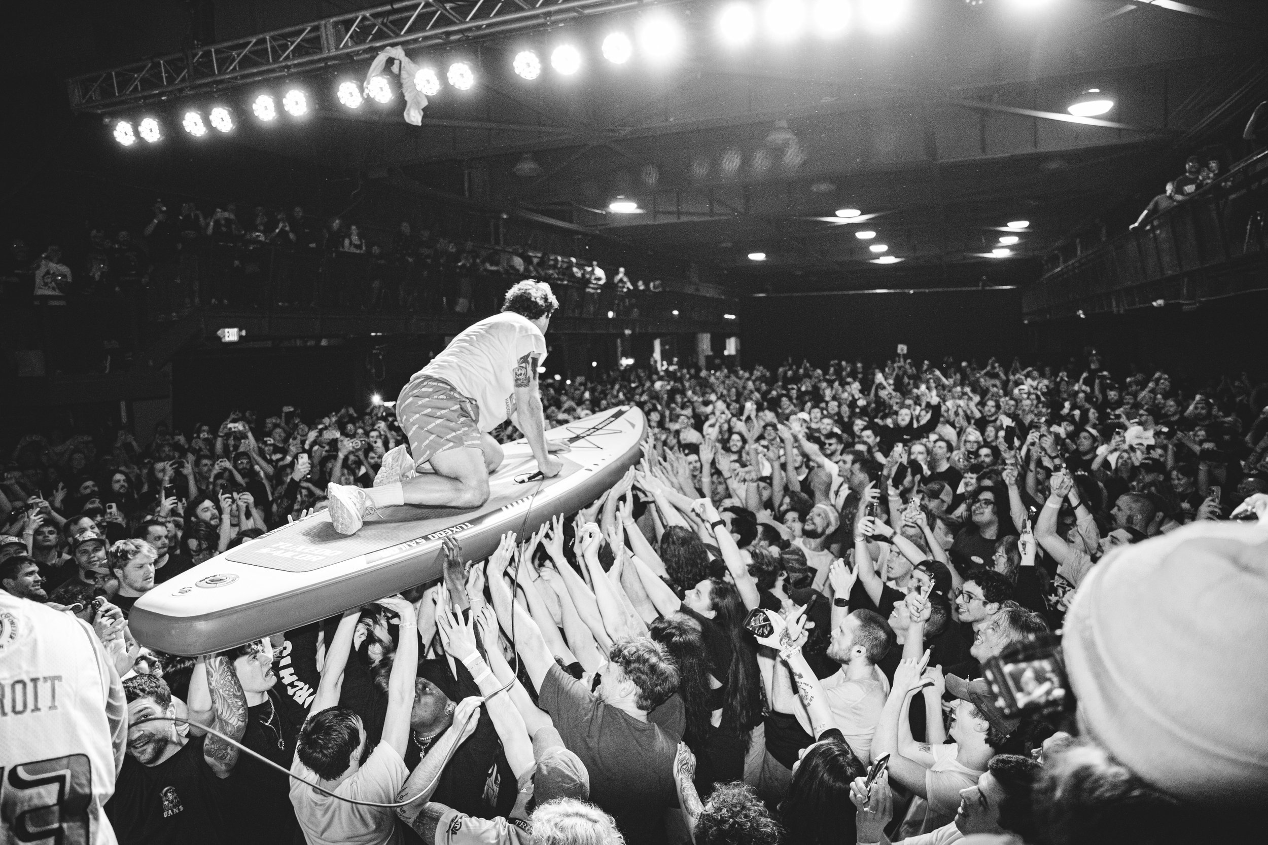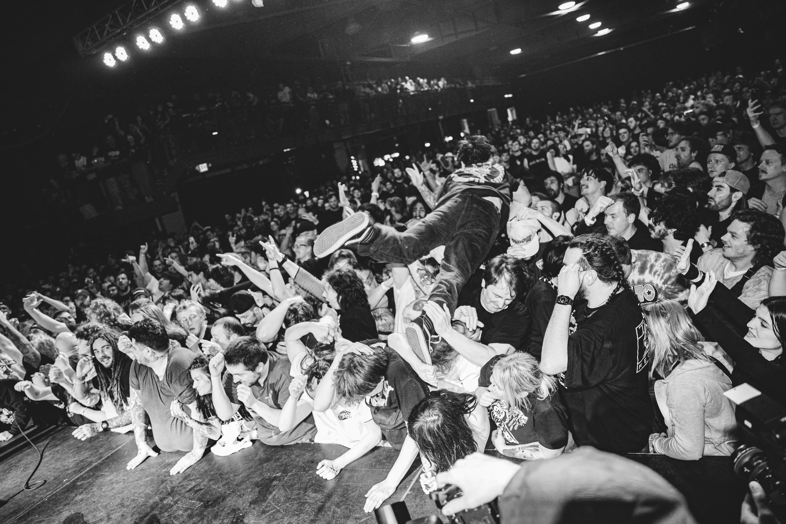 No Pressure brought so many stage dives. I took a moment to just count the stage dives for a moment, and it was laughable how many SUCCESSFUL dives there were. Made me proud, Detroit. Not too many people βlaying downβ or βWaving at people to catch themβ. After watching videos this week of other shows, it made me feel better about things in that regard.