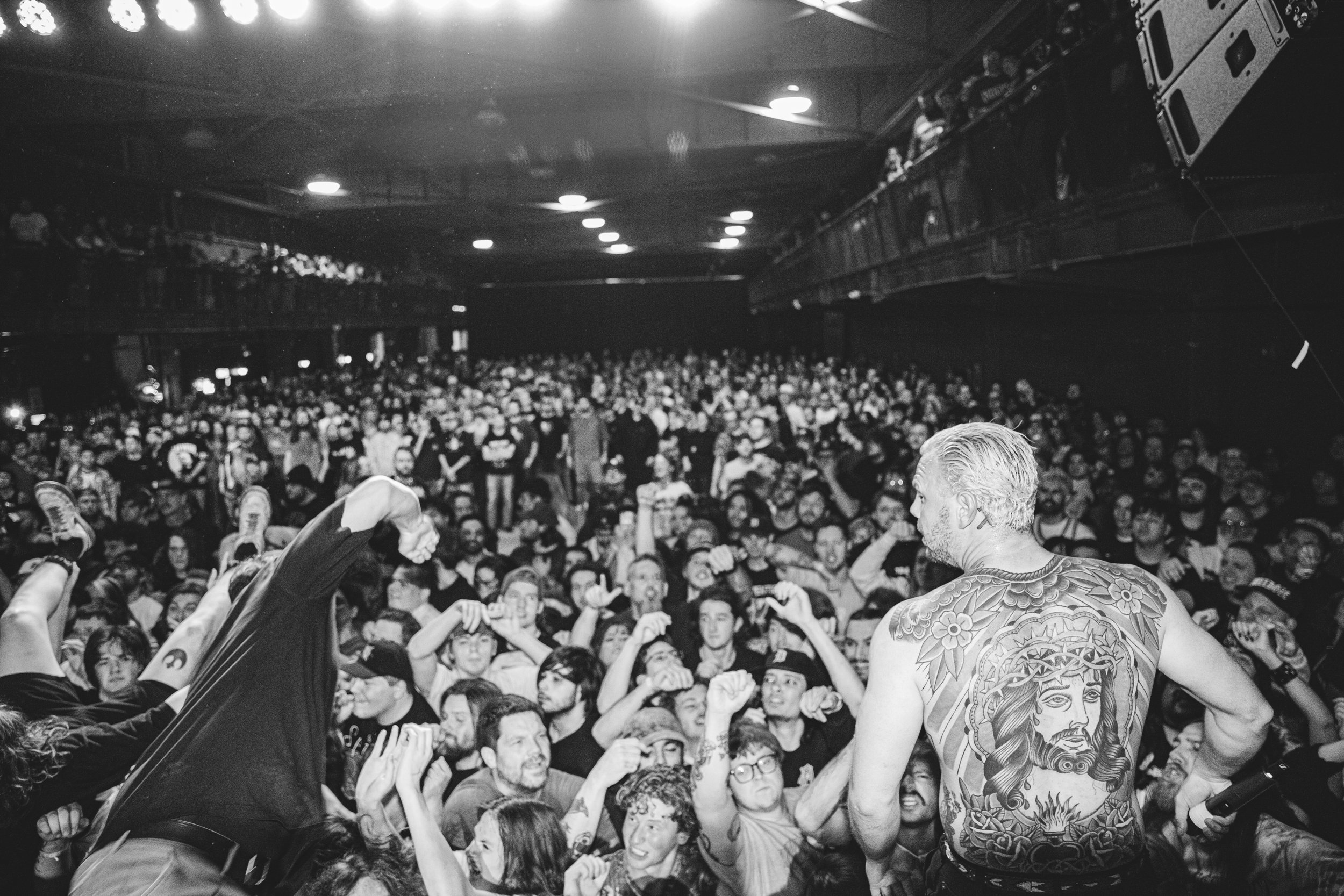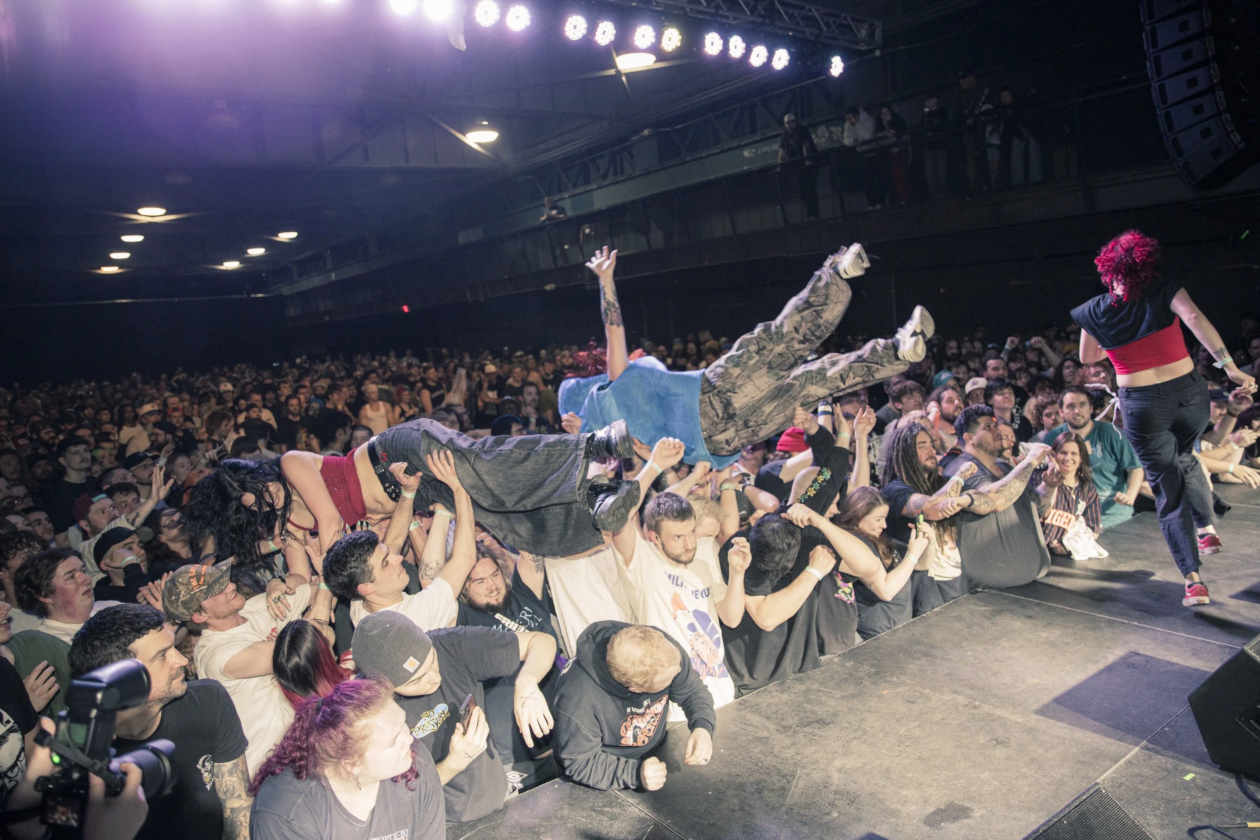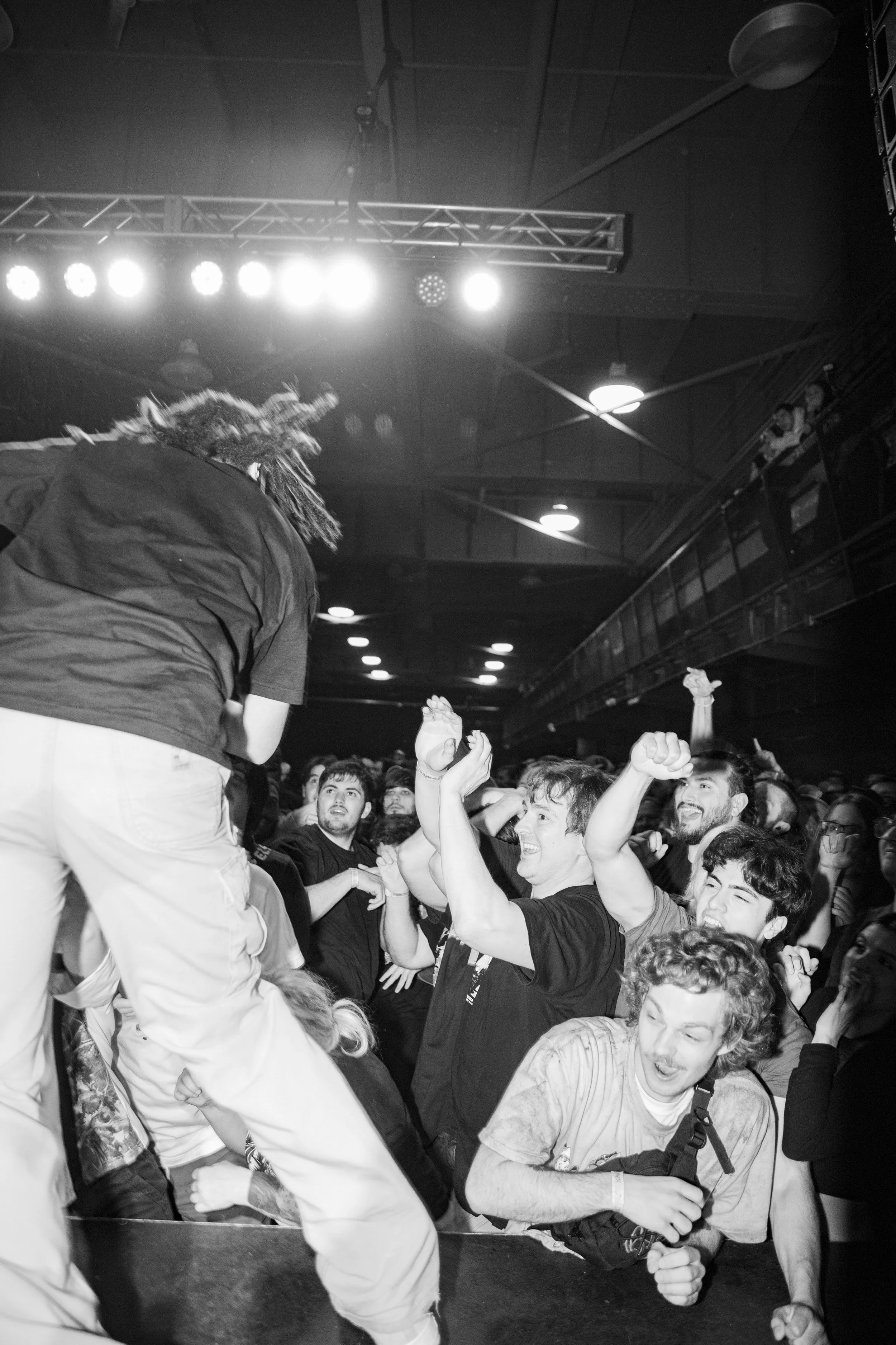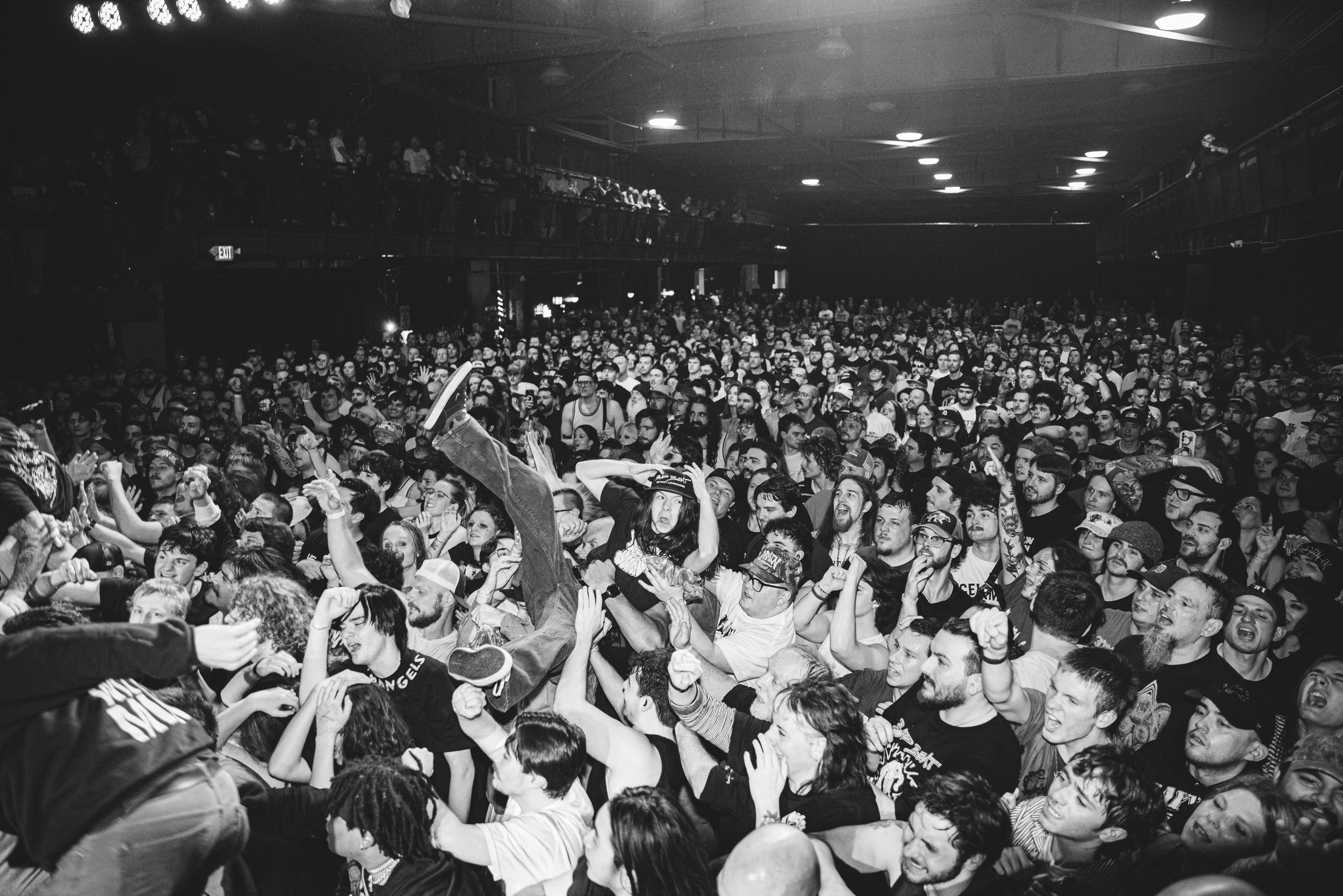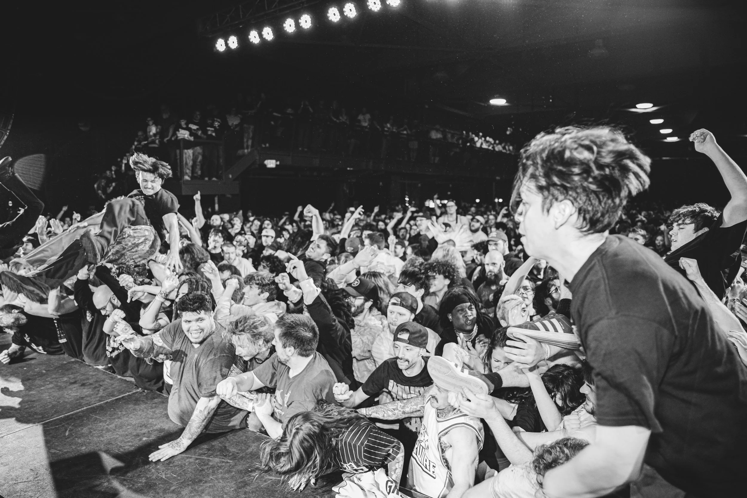 No Pressure brought so many stage dives. I took a moment to just count the stage dives for a moment, and it was laughable how many SUCCESSFUL dives there were. Made me proud, Detroit. Not too many people βlaying downβ or βWaving at people to catch themβ. After watching videos this week of other shows, it made me feel better about things in that regard.