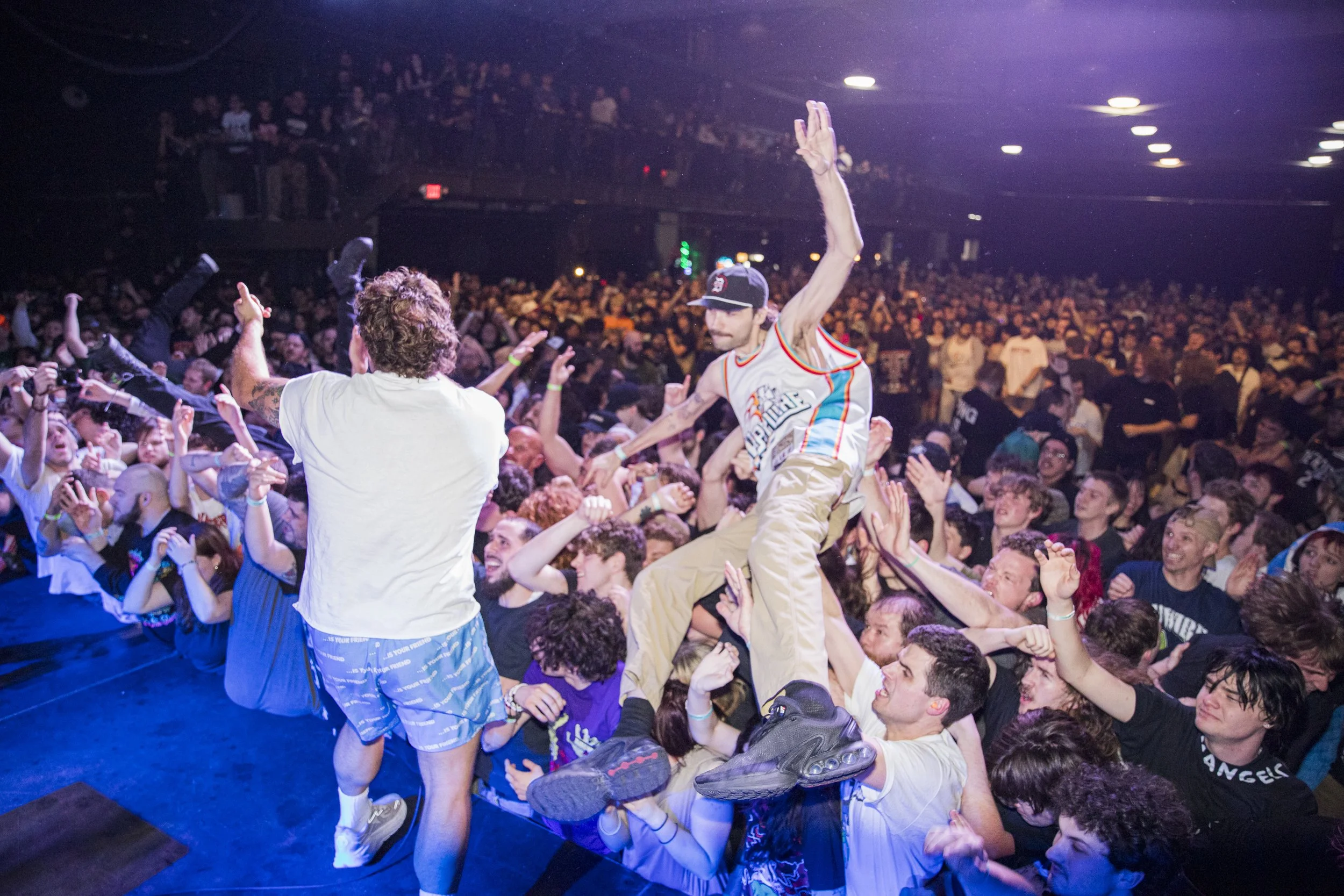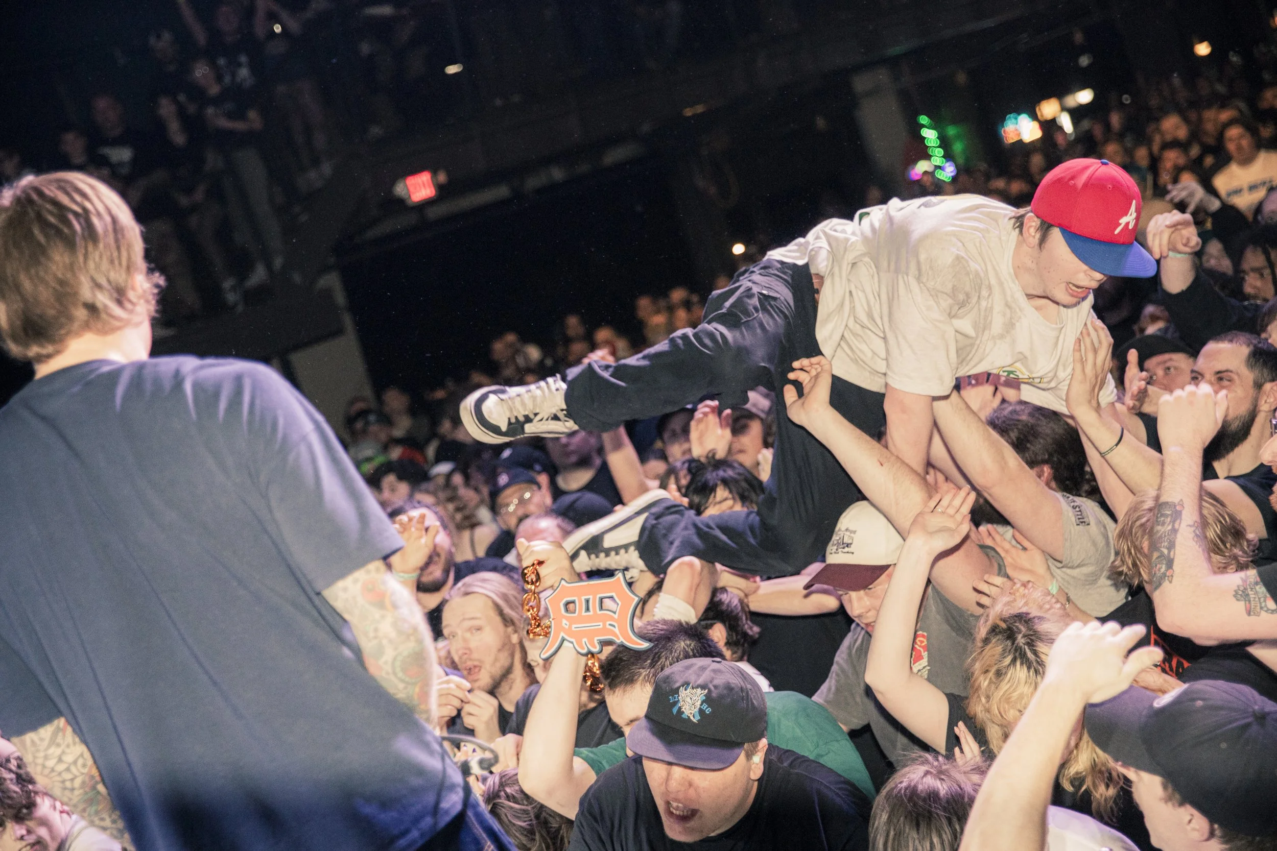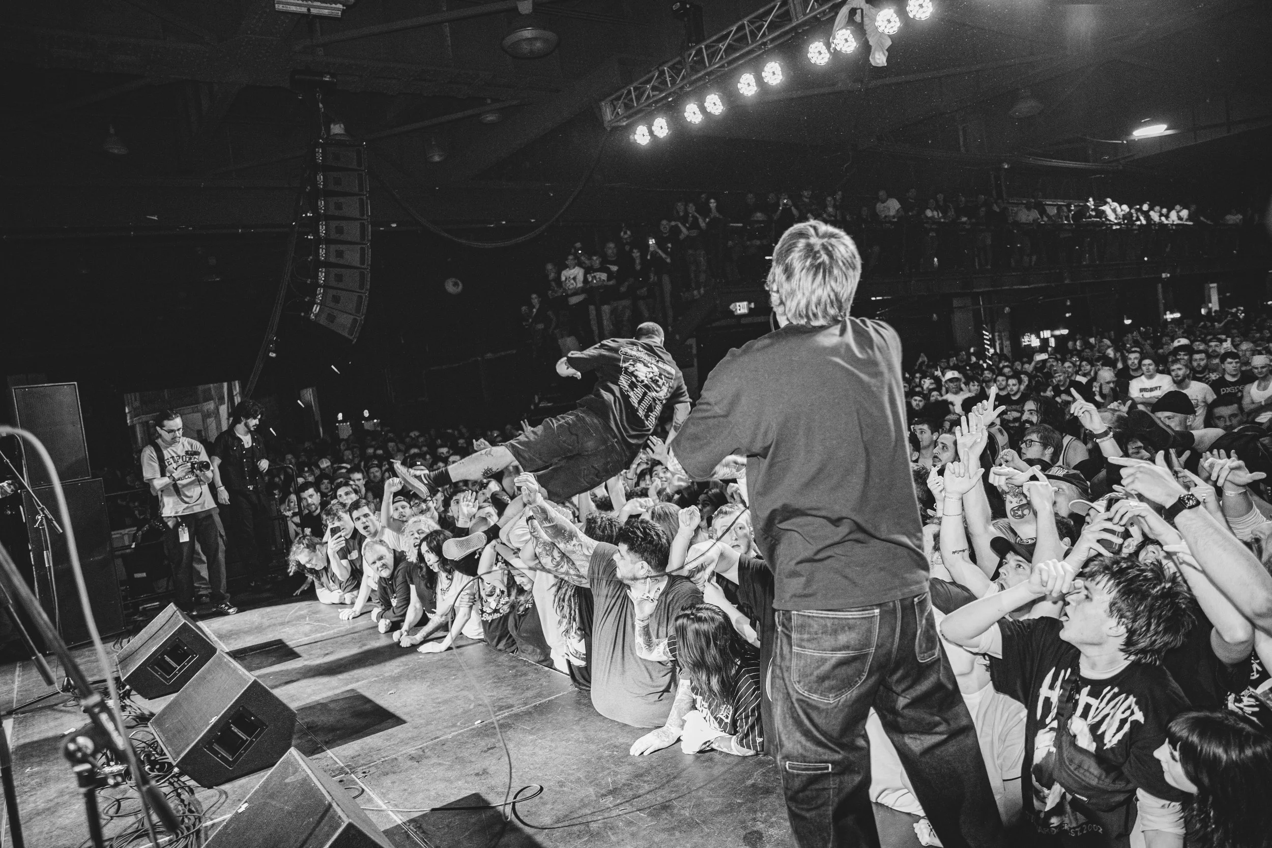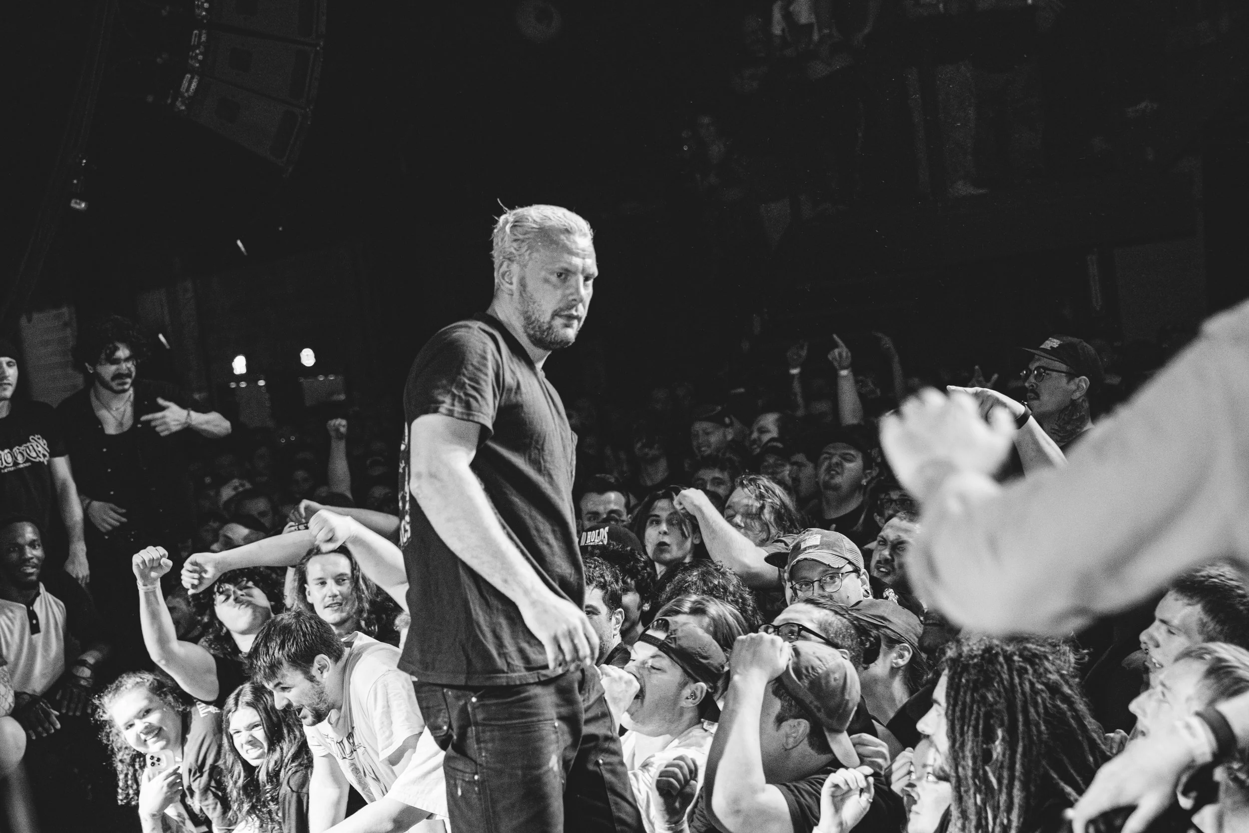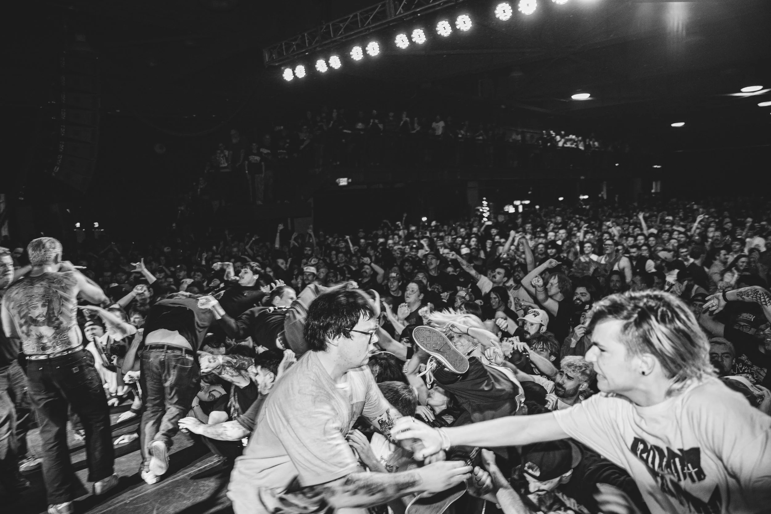 No Pressure brought so many stage dives. I took a moment to just count the stage dives for a moment, and it was laughable how many SUCCESSFUL dives there were. Made me proud, Detroit. Not too many people βlaying downβ or βWaving at people to catch themβ. After watching videos this week of other shows, it made me feel better about things in that regard.