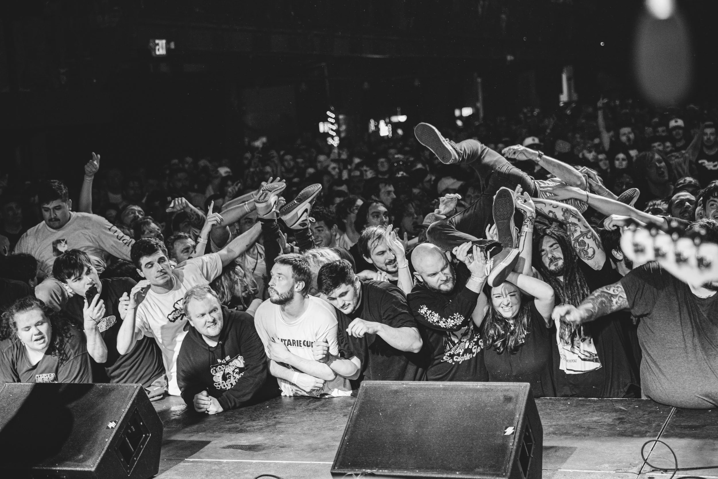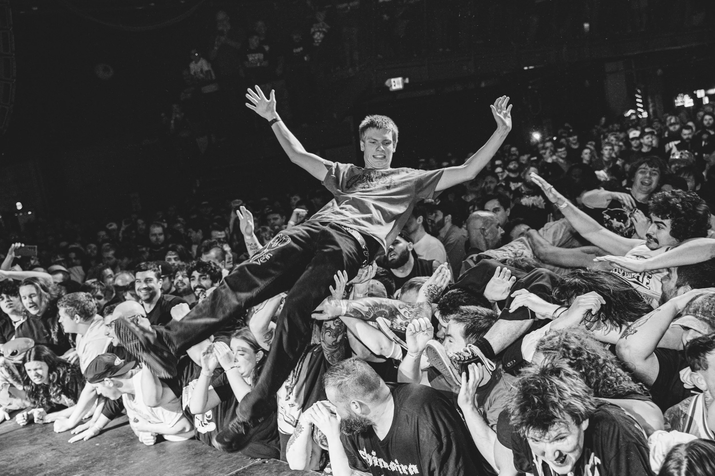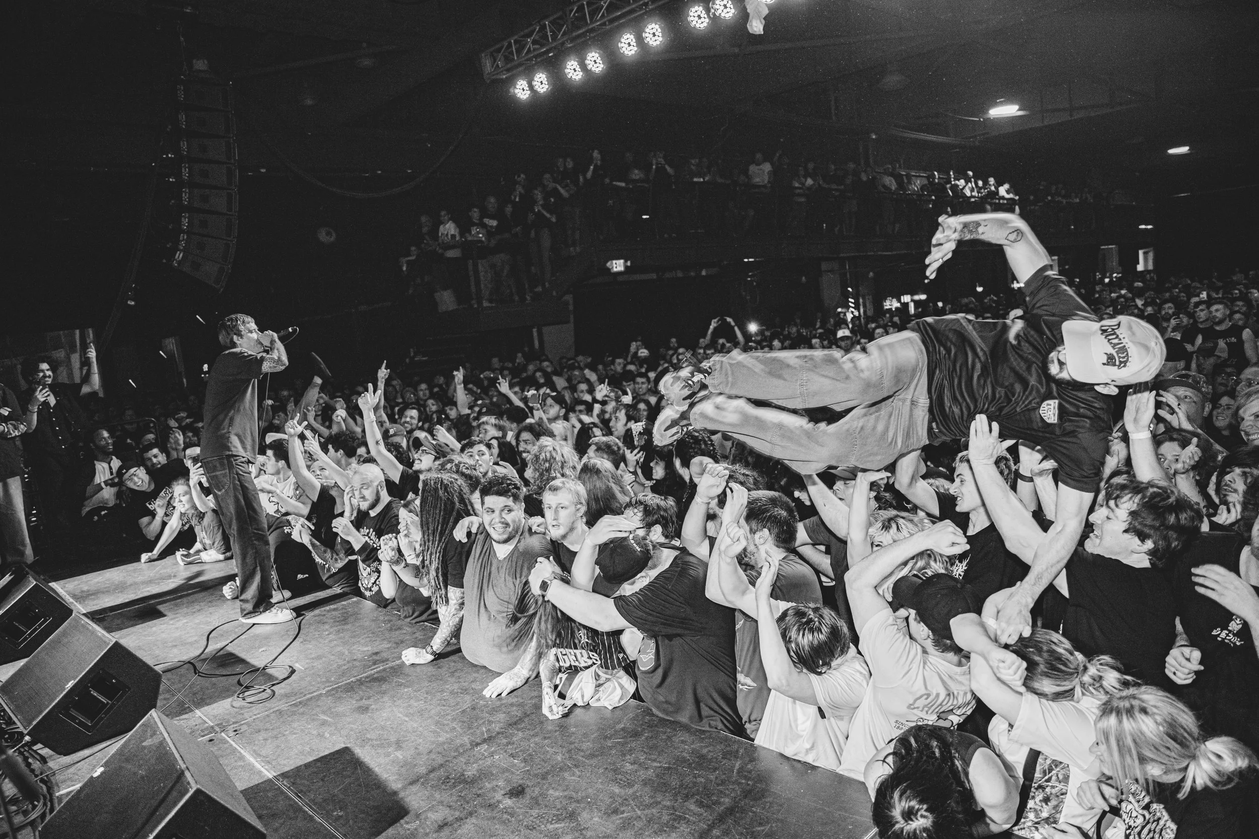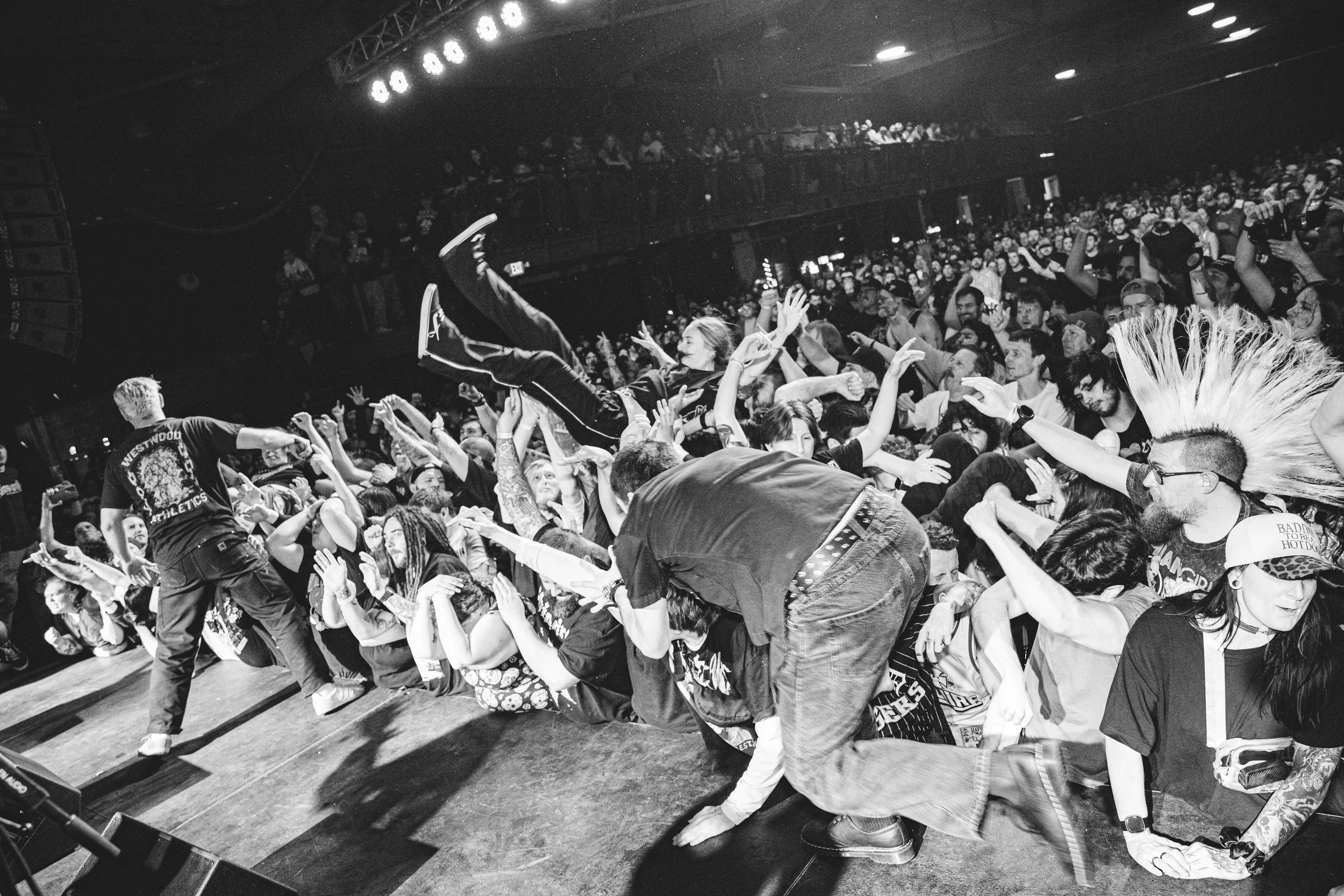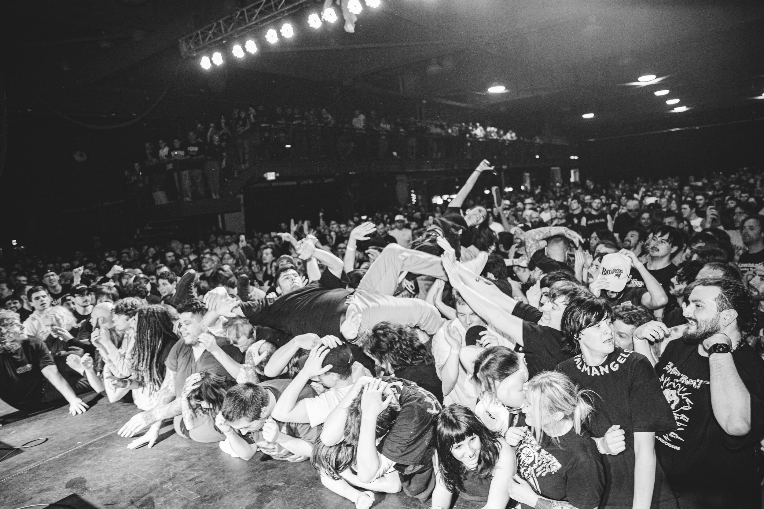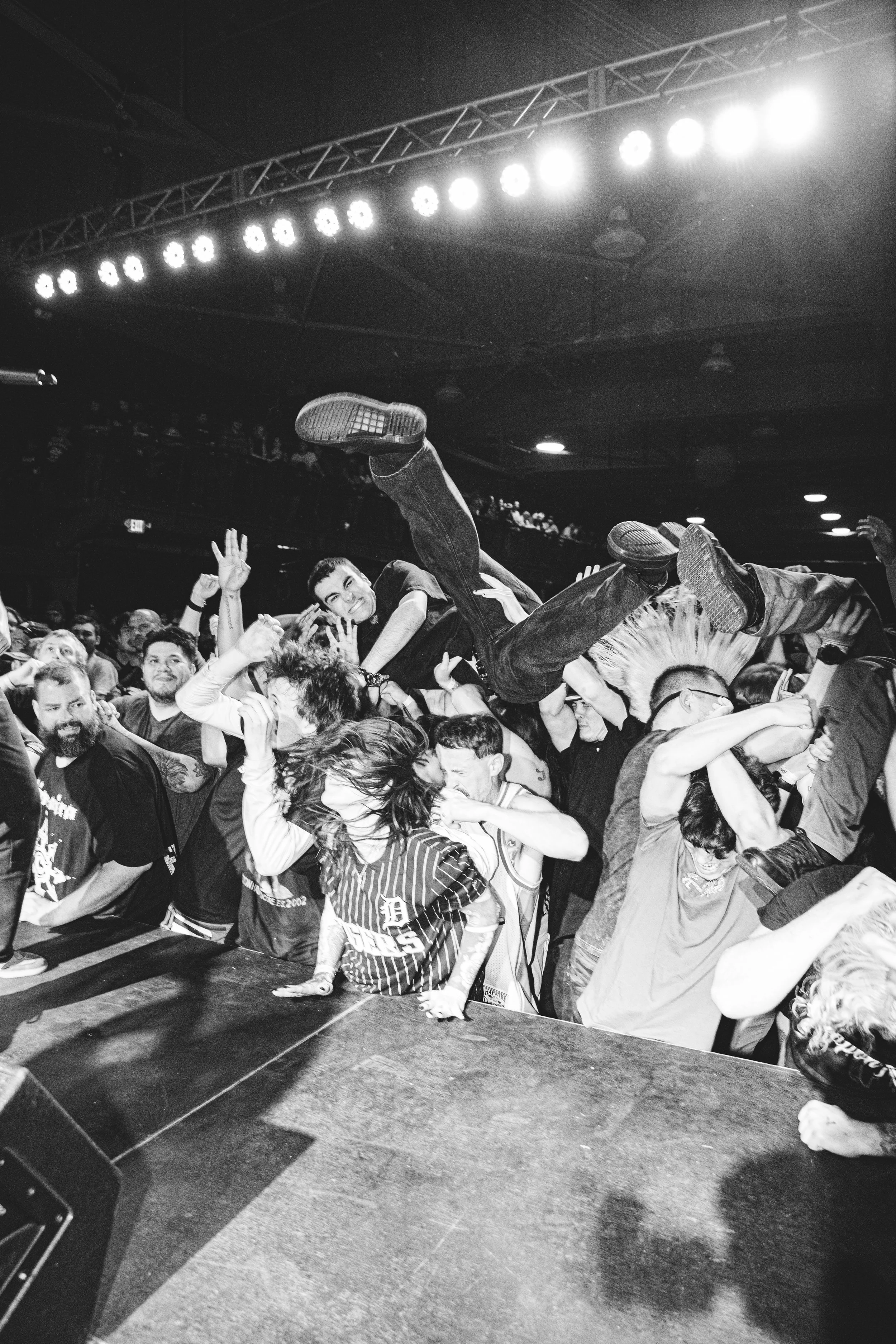 No Pressure brought so many stage dives. I took a moment to just count the stage dives for a moment, and it was laughable how many SUCCESSFUL dives there were. Made me proud, Detroit. Not too many people βlaying downβ or βWaving at people to catch themβ. After watching videos this week of other shows, it made me feel better about things in that regard.