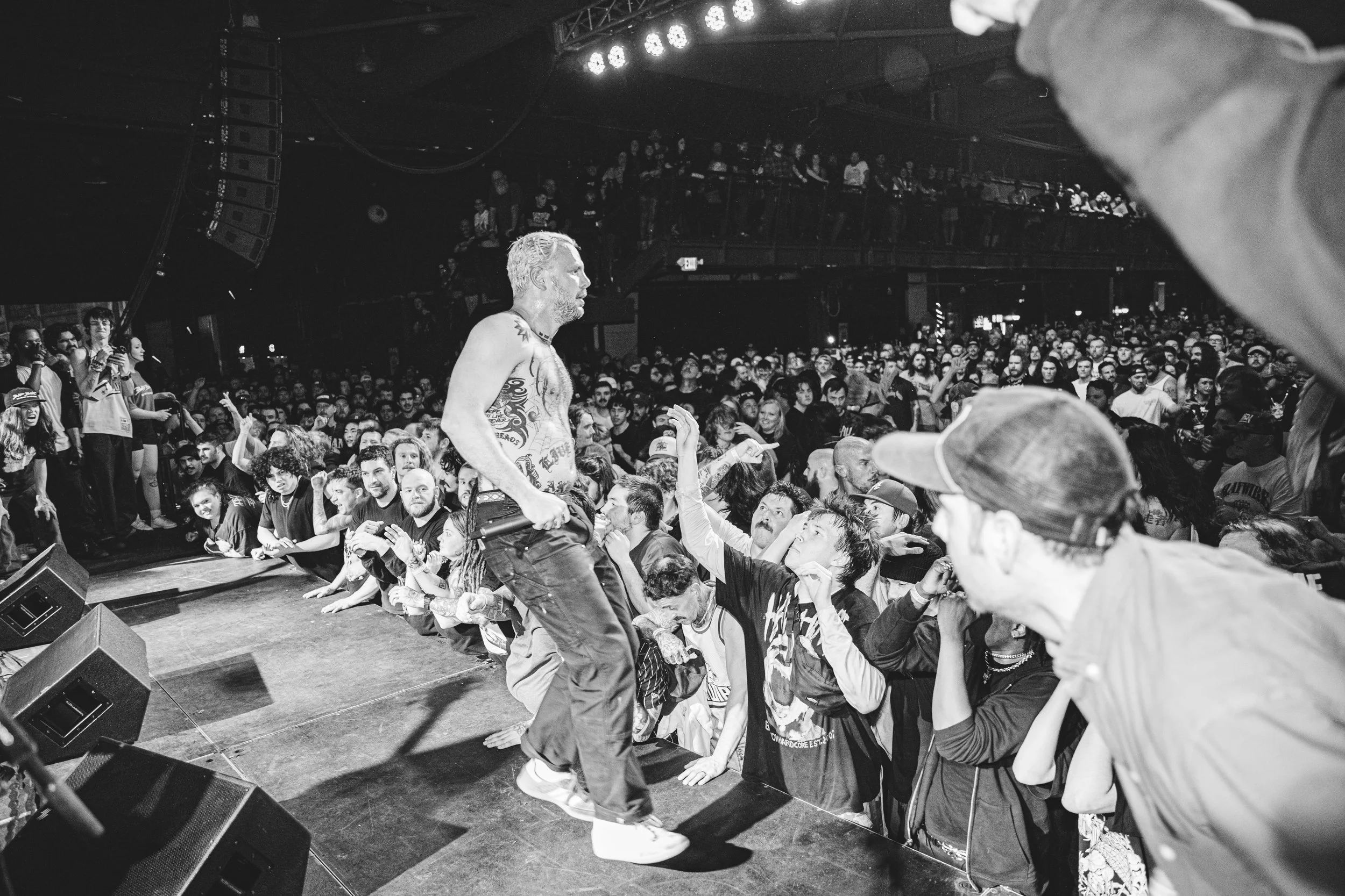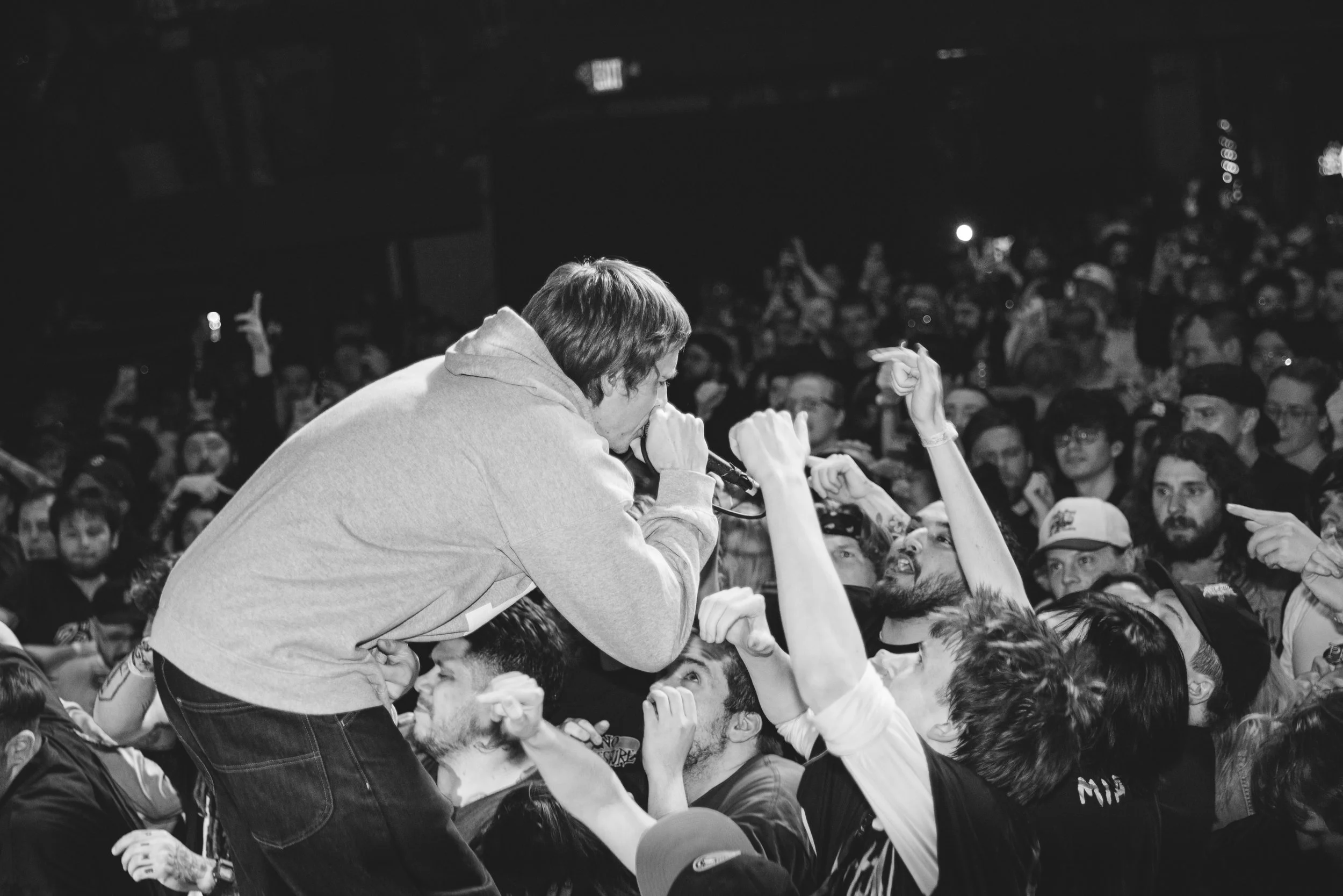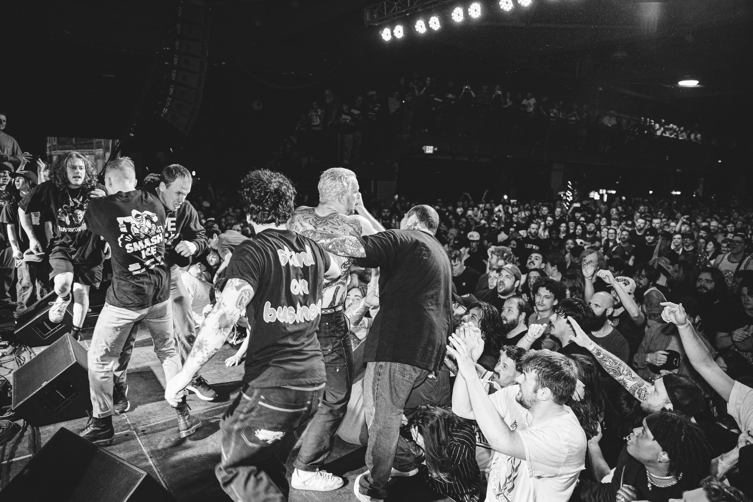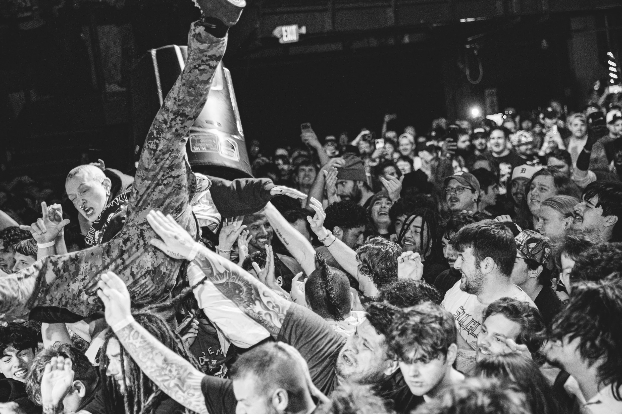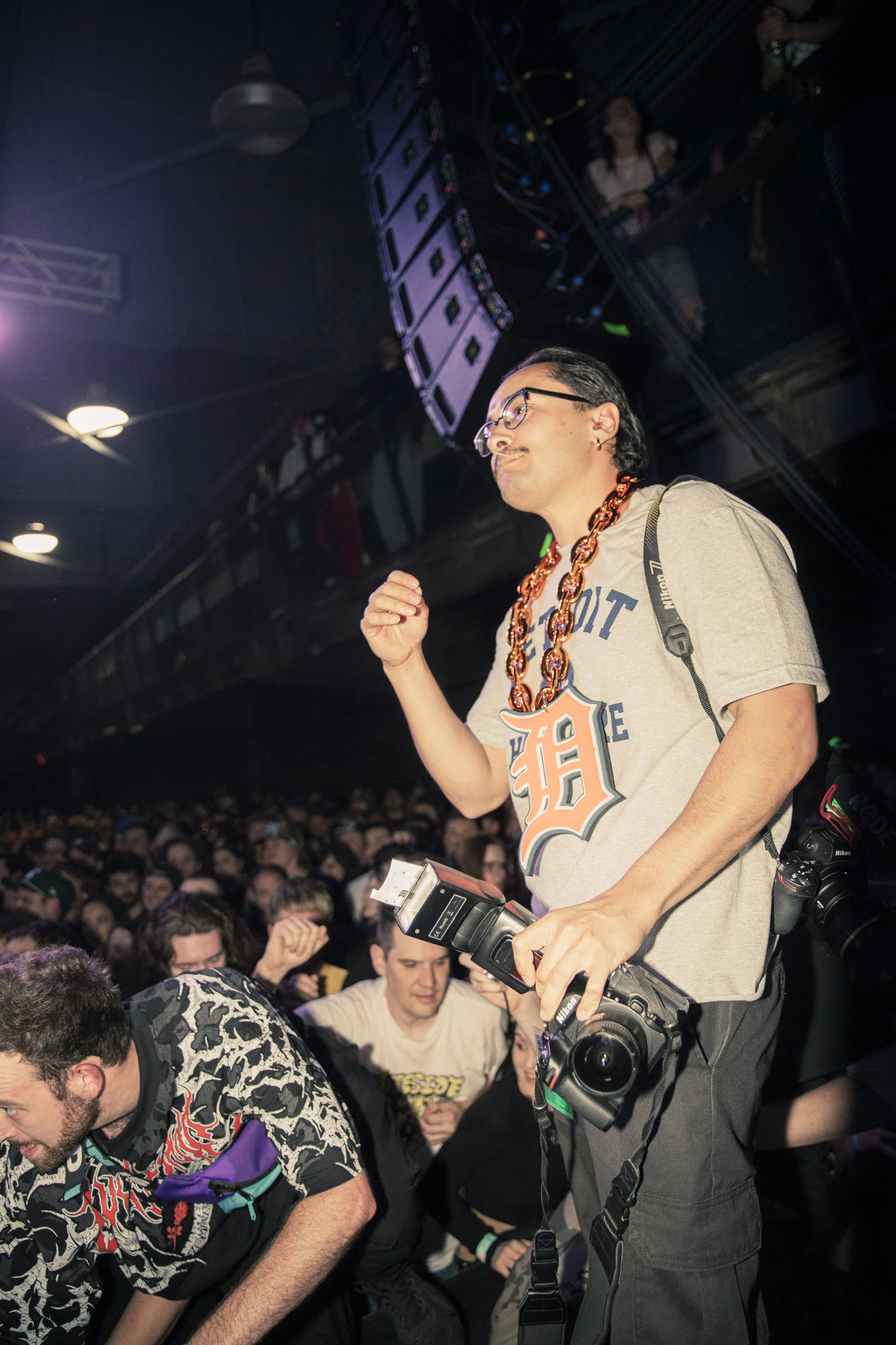 No Pressure brought so many stage dives. I took a moment to just count the stage dives for a moment, and it was laughable how many SUCCESSFUL dives there were. Made me proud, Detroit. Not too many people βlaying downβ or βWaving at people to catch themβ. After watching videos this week of other shows, it made me feel better about things in that regard.
