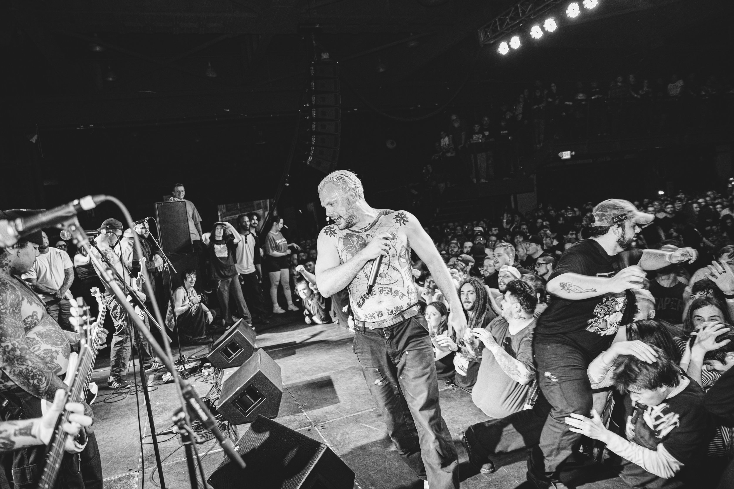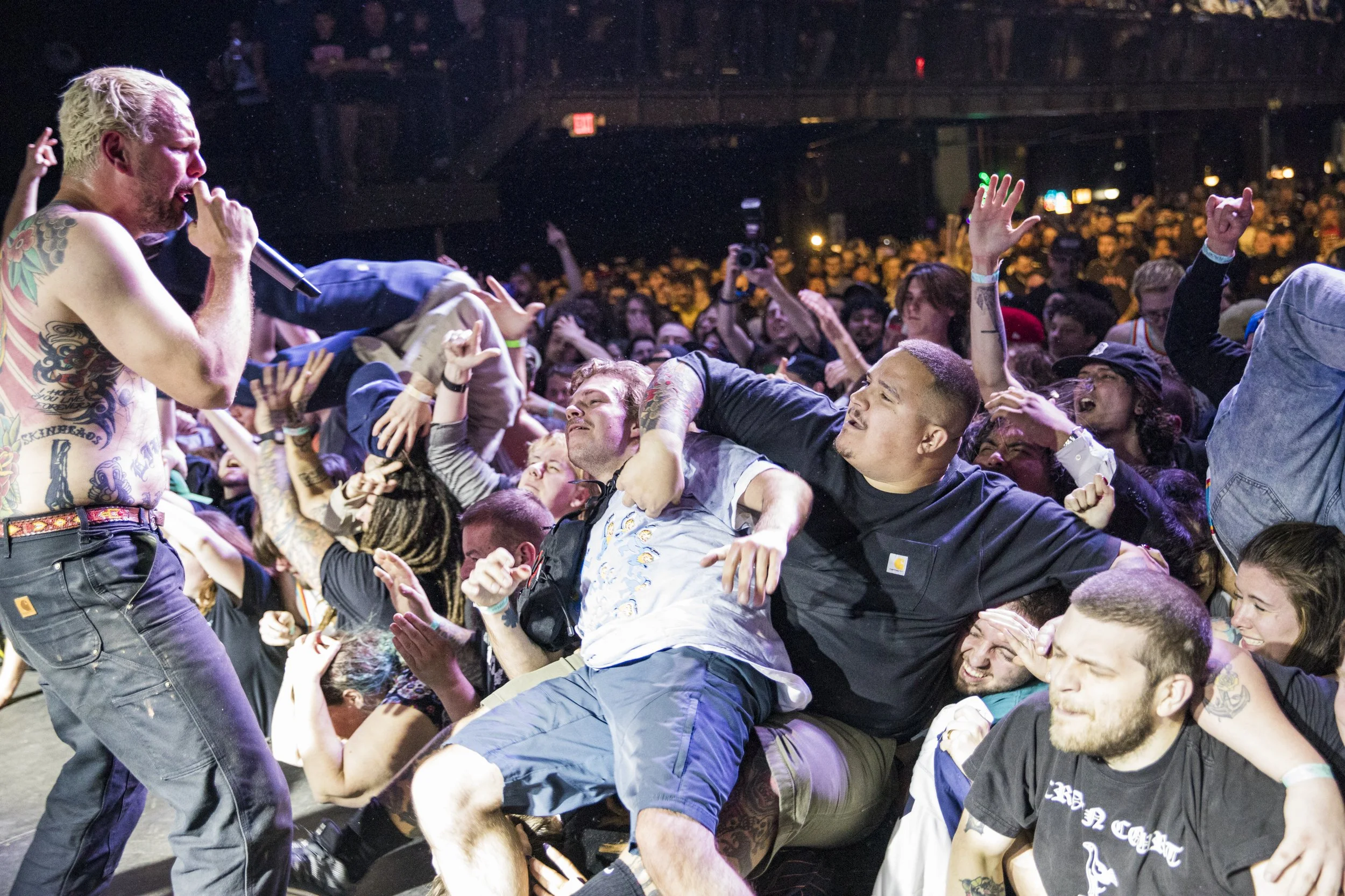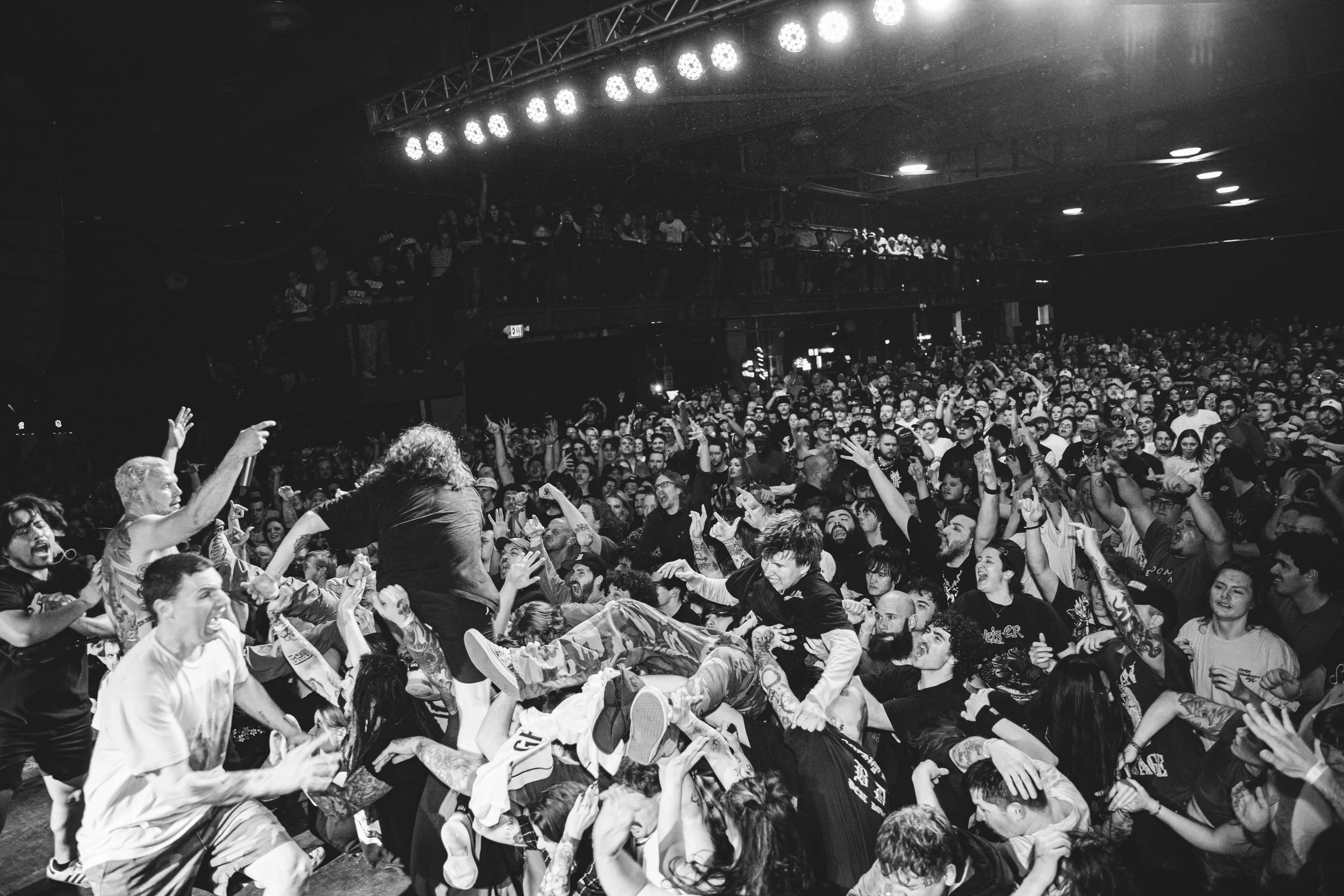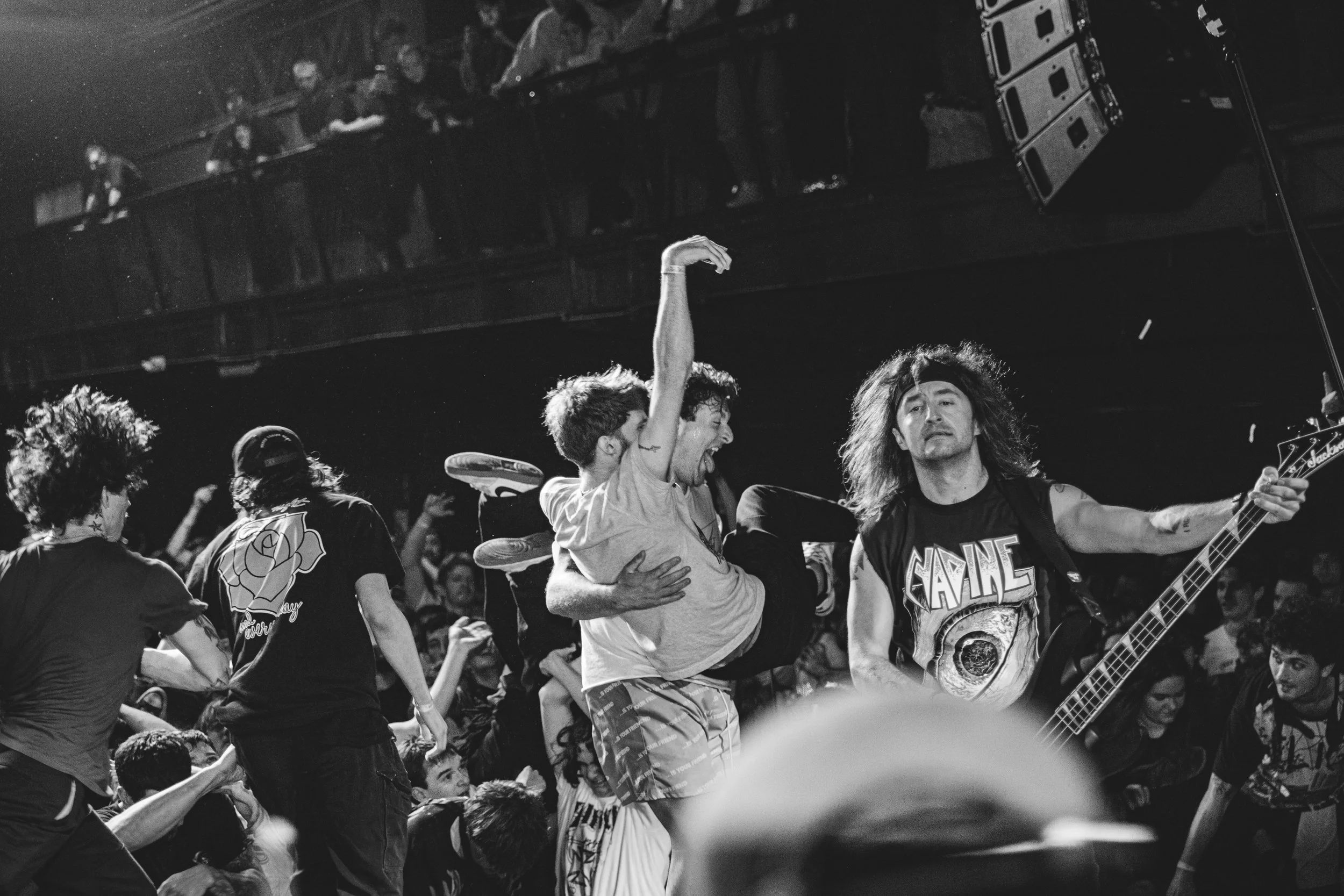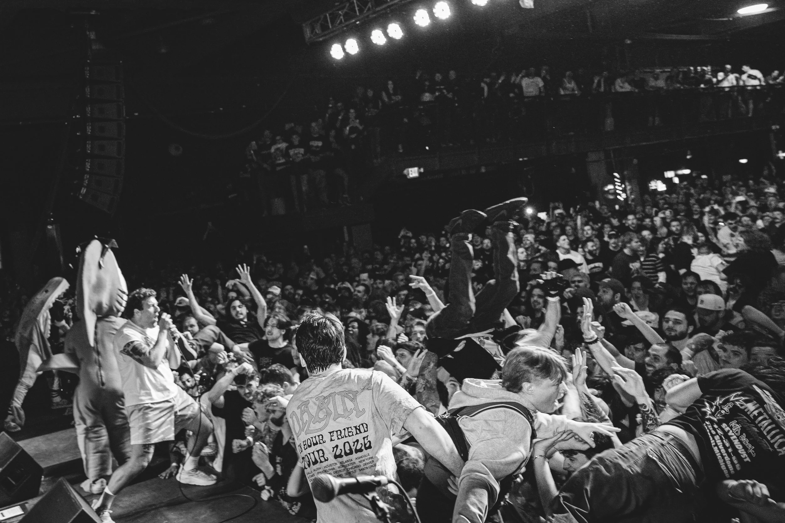 No Pressure brought so many stage dives. I took a moment to just count the stage dives for a moment, and it was laughable how many SUCCESSFUL dives there were. Made me proud, Detroit. Not too many people βlaying downβ or βWaving at people to catch themβ. After watching videos this week of other shows, it made me feel better about things in that regard.