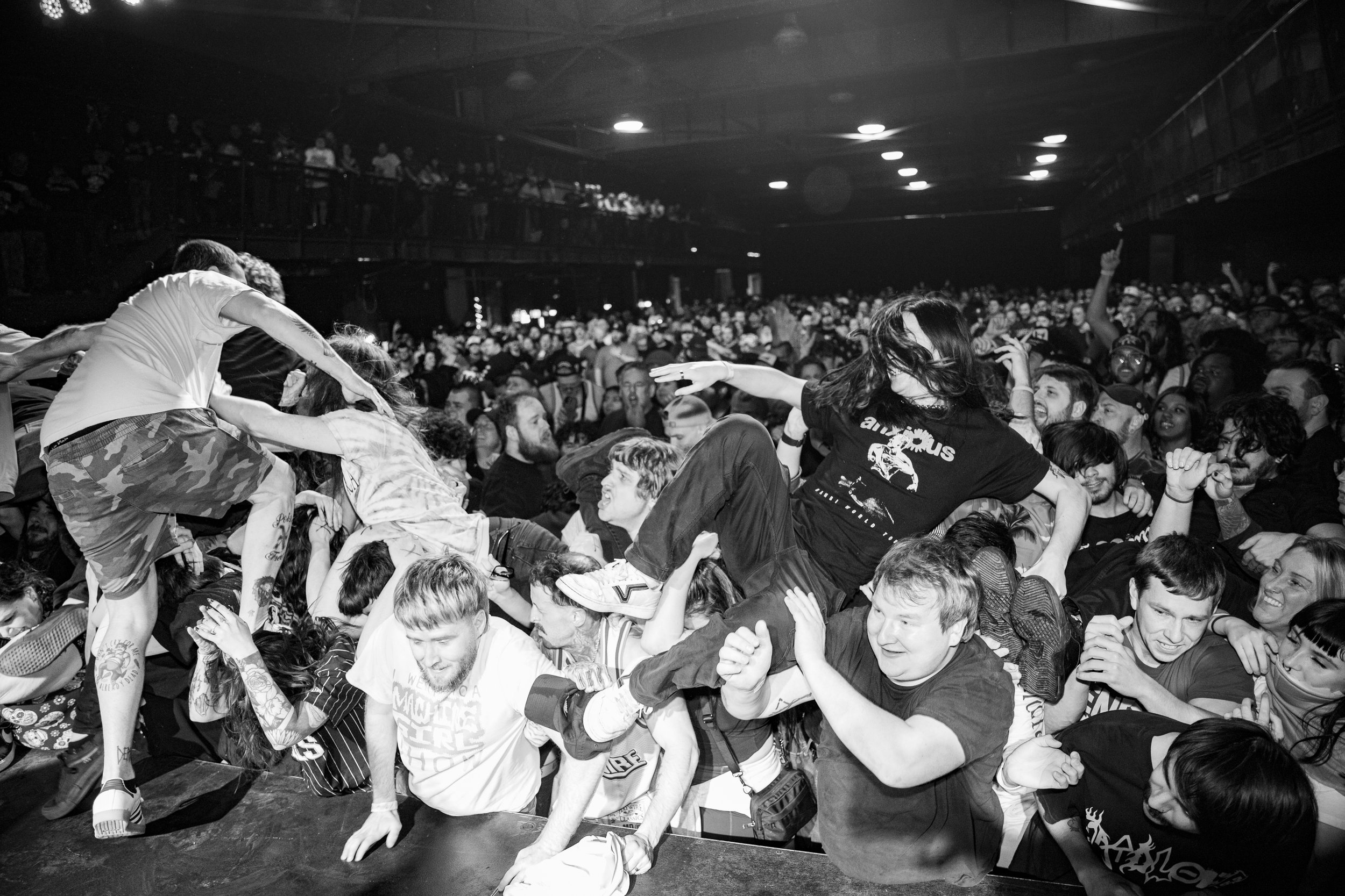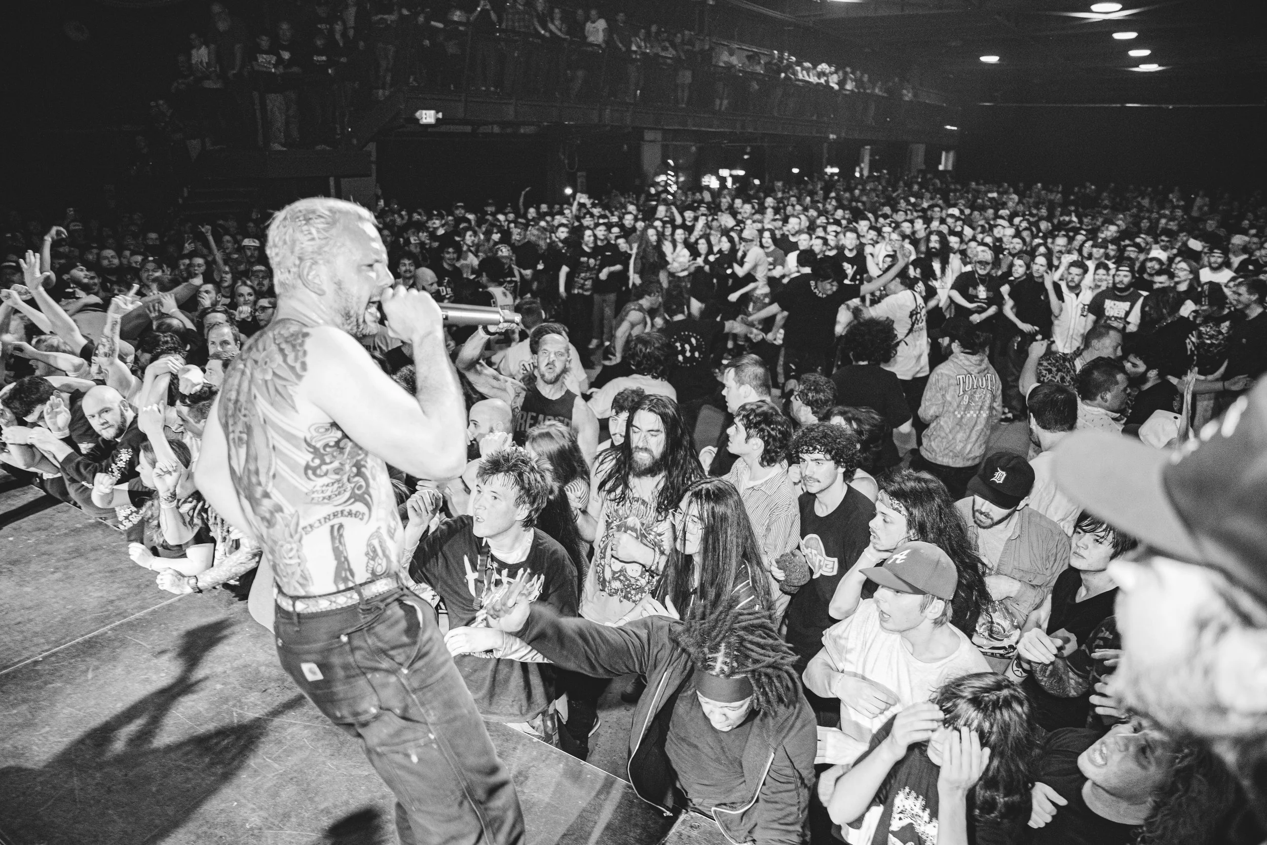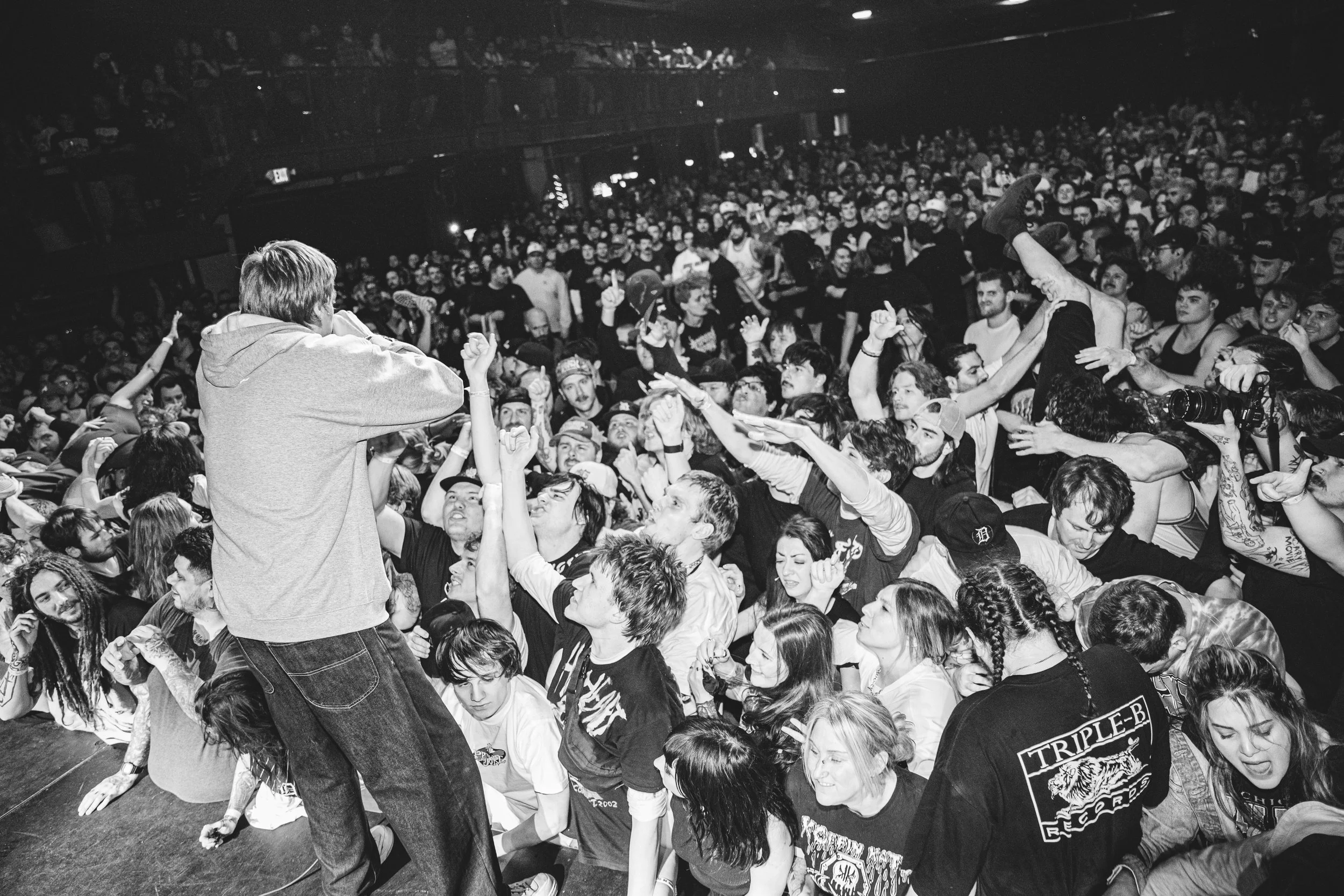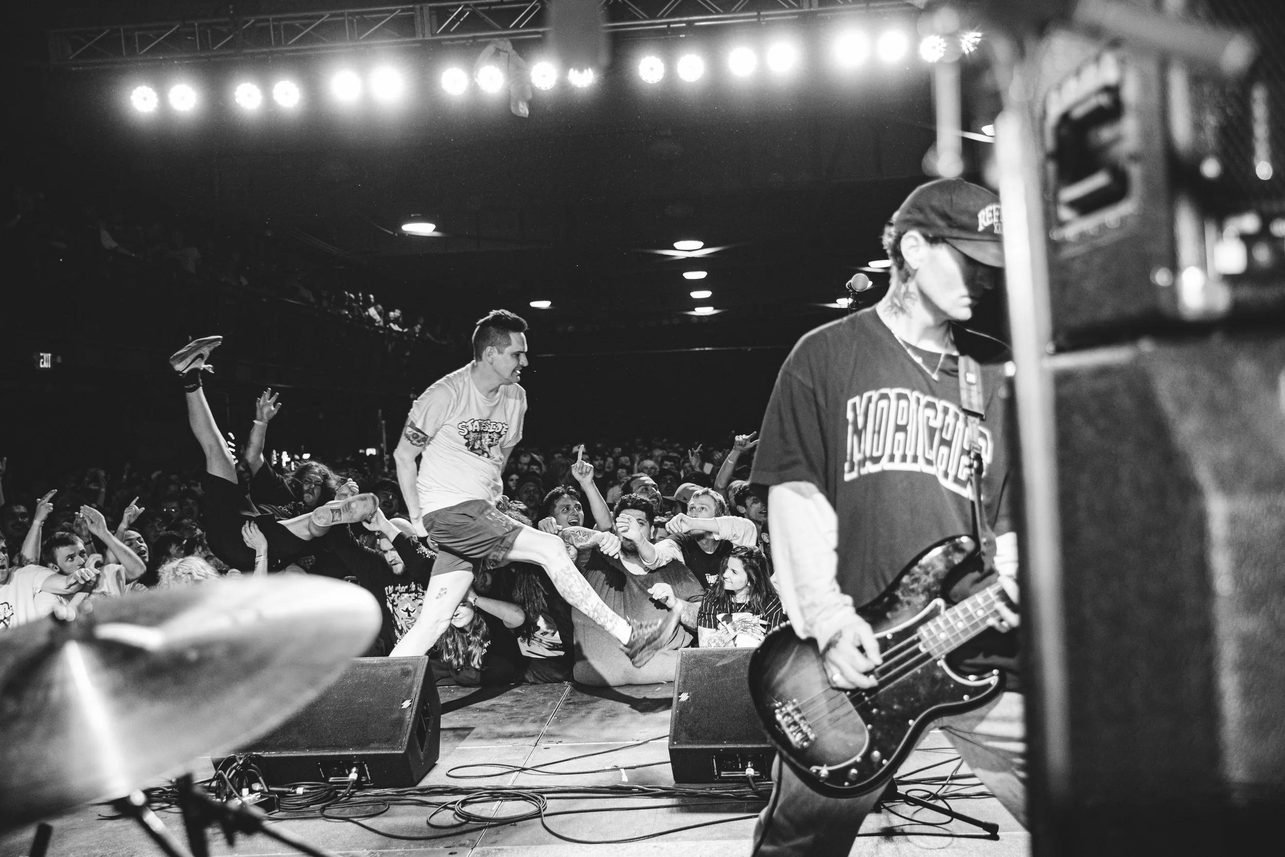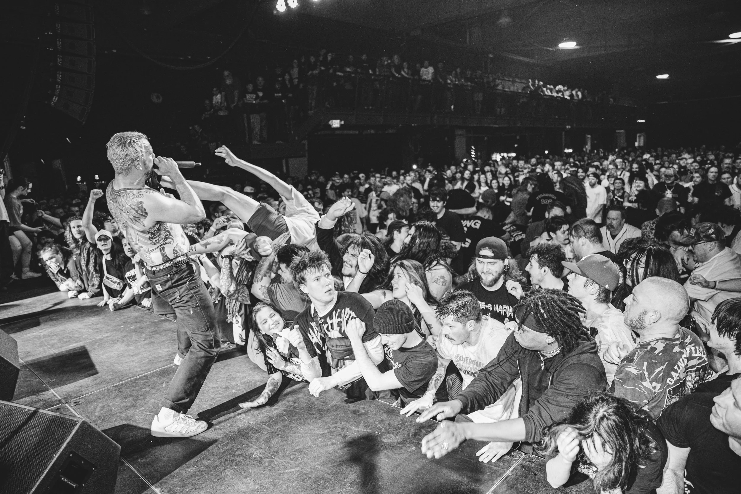 No Pressure brought so many stage dives. I took a moment to just count the stage dives for a moment, and it was laughable how many SUCCESSFUL dives there were. Made me proud, Detroit. Not too many people βlaying downβ or βWaving at people to catch themβ. After watching videos this week of other shows, it made me feel better about things in that regard.