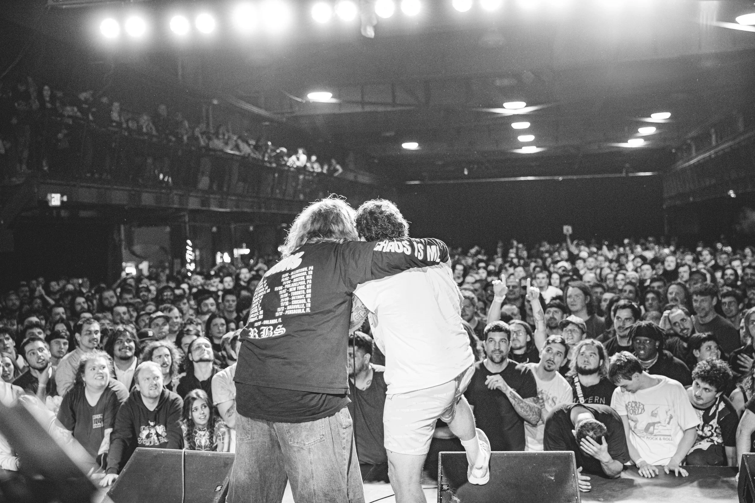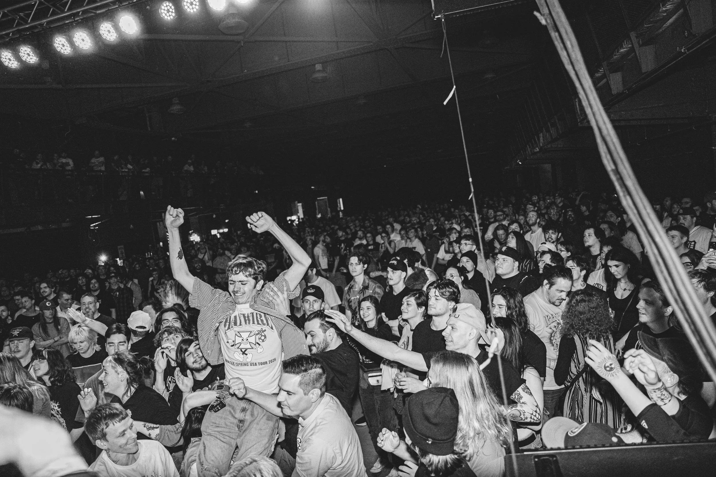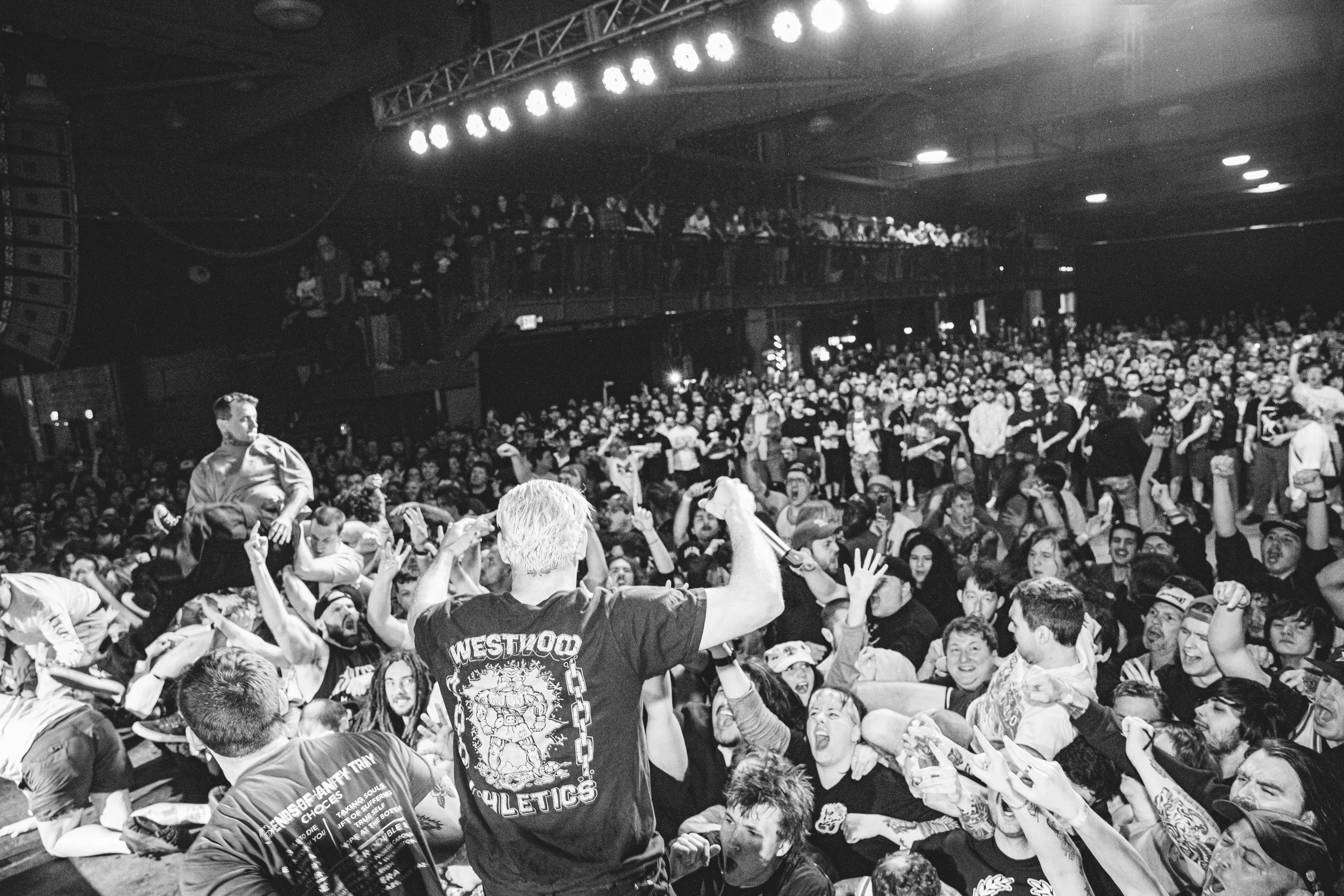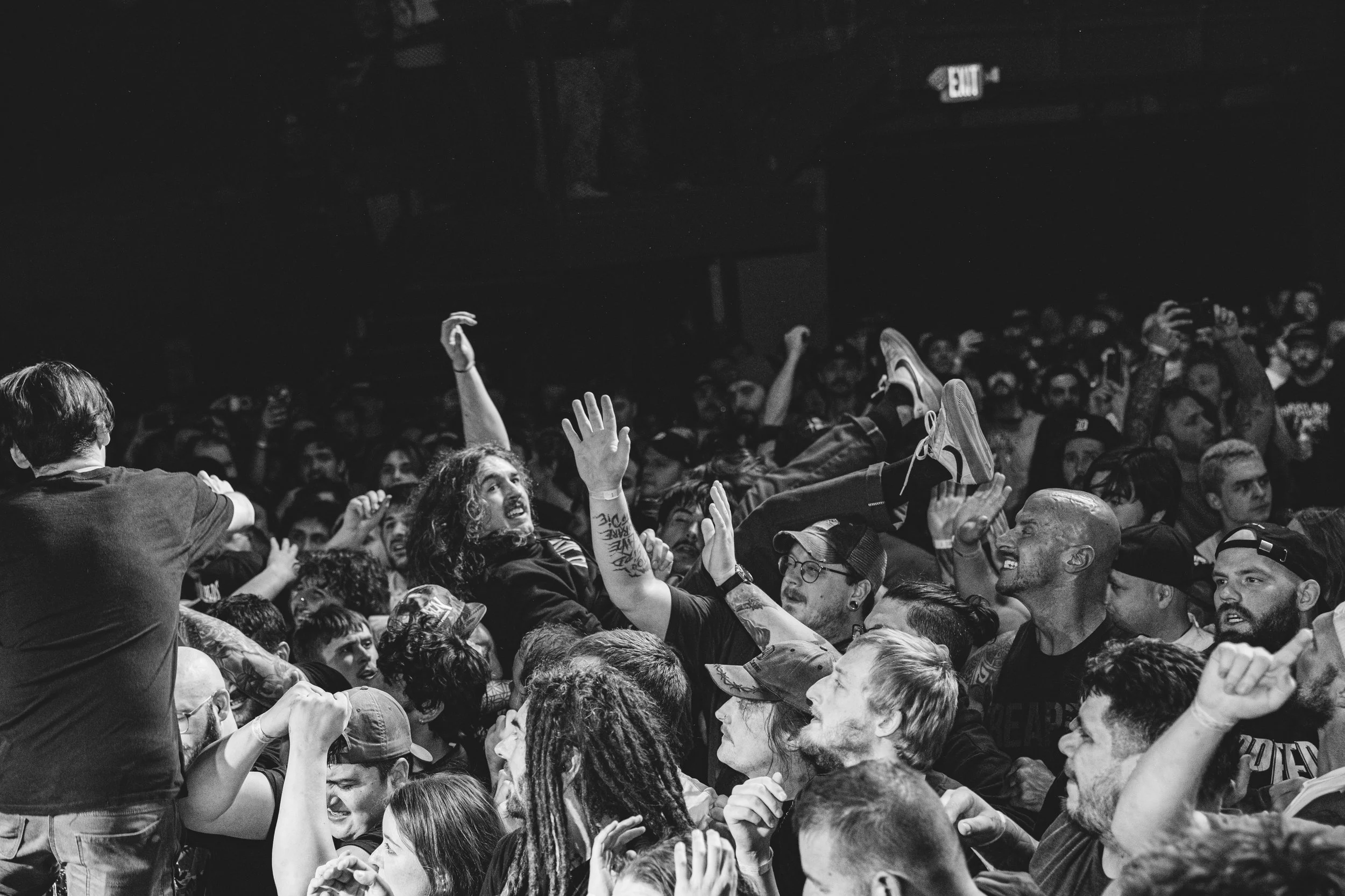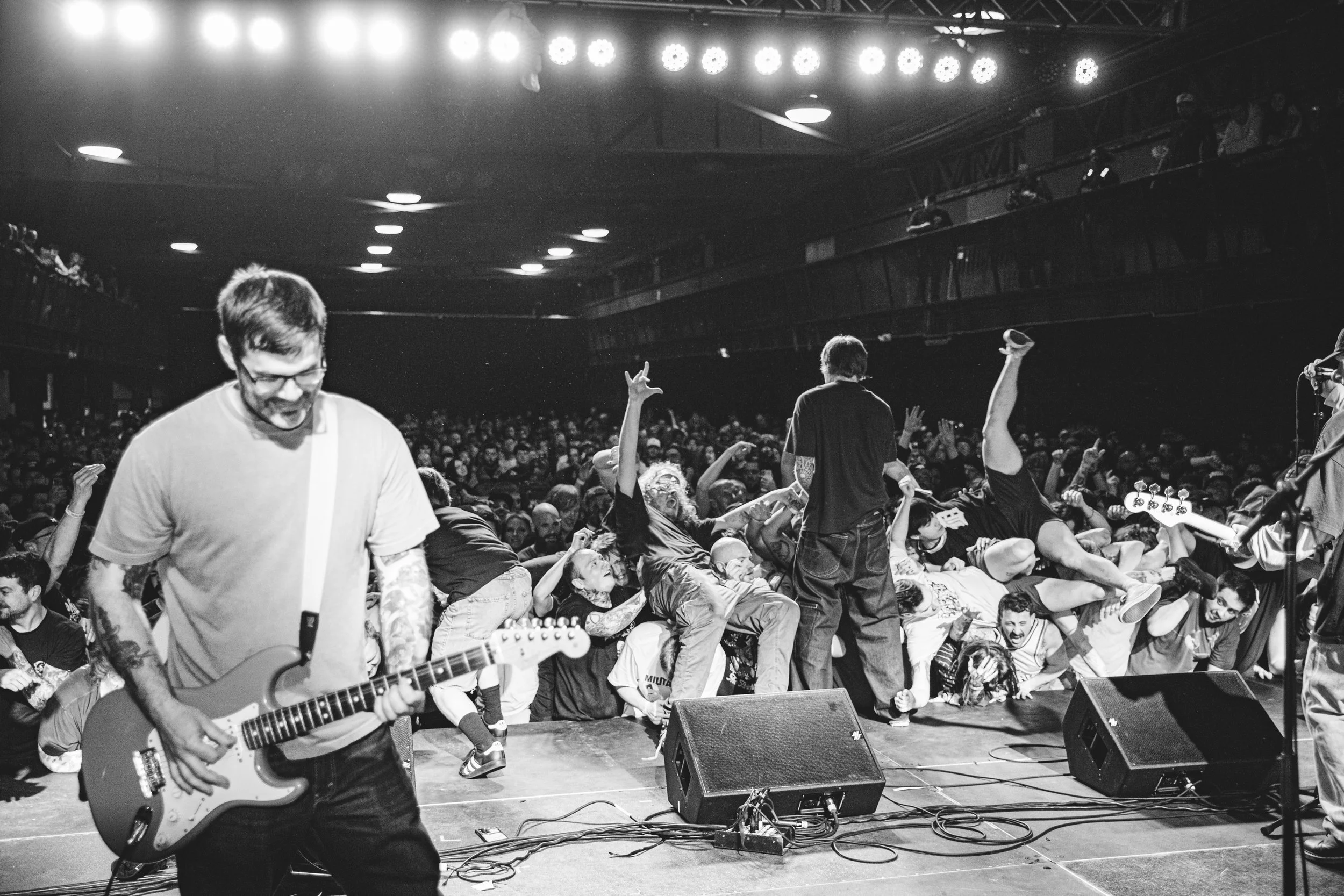 No Pressure brought so many stage dives. I took a moment to just count the stage dives for a moment, and it was laughable how many SUCCESSFUL dives there were. Made me proud, Detroit. Not too many people βlaying downβ or βWaving at people to catch themβ. After watching videos this week of other shows, it made me feel better about things in that regard.