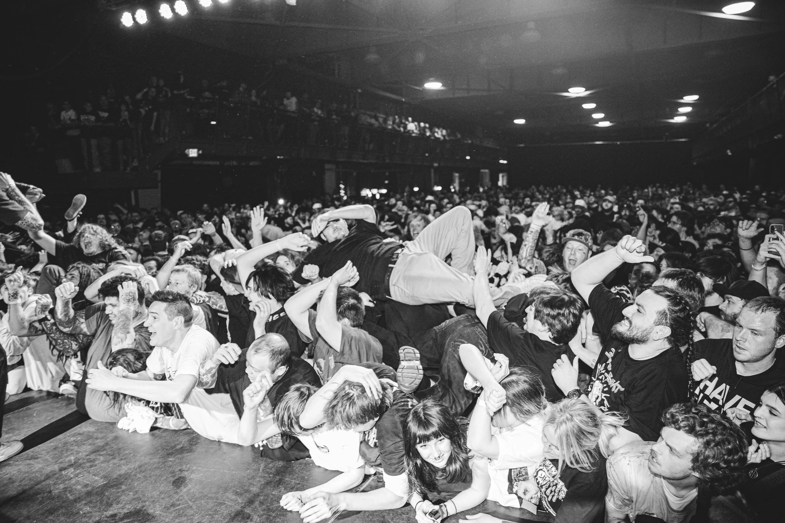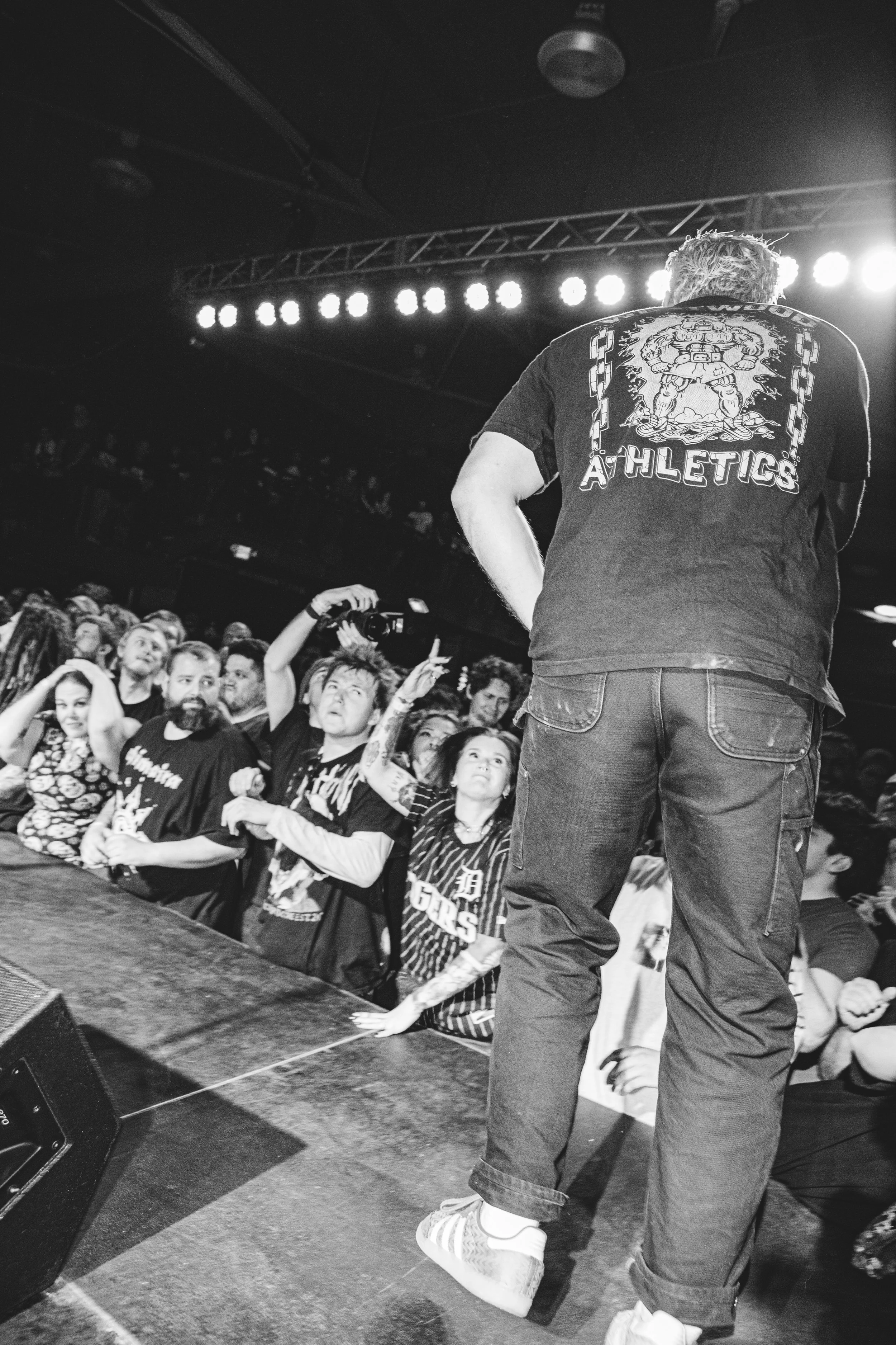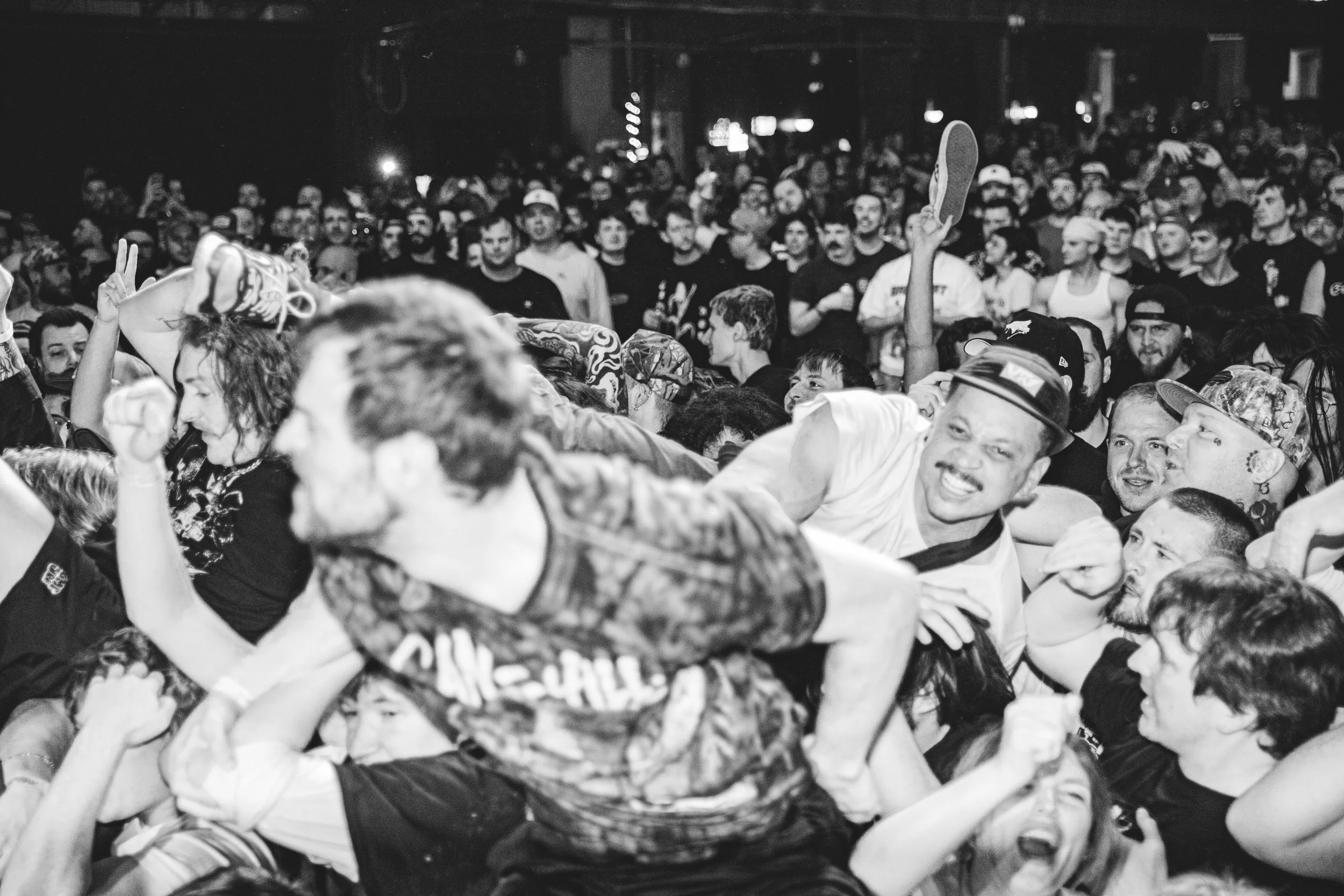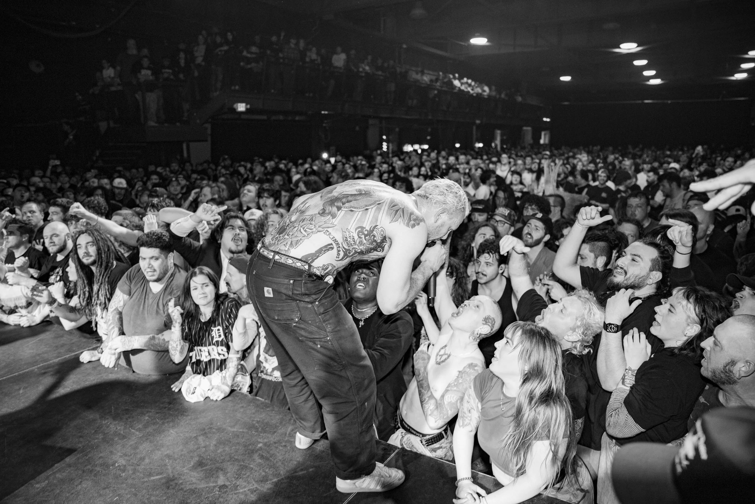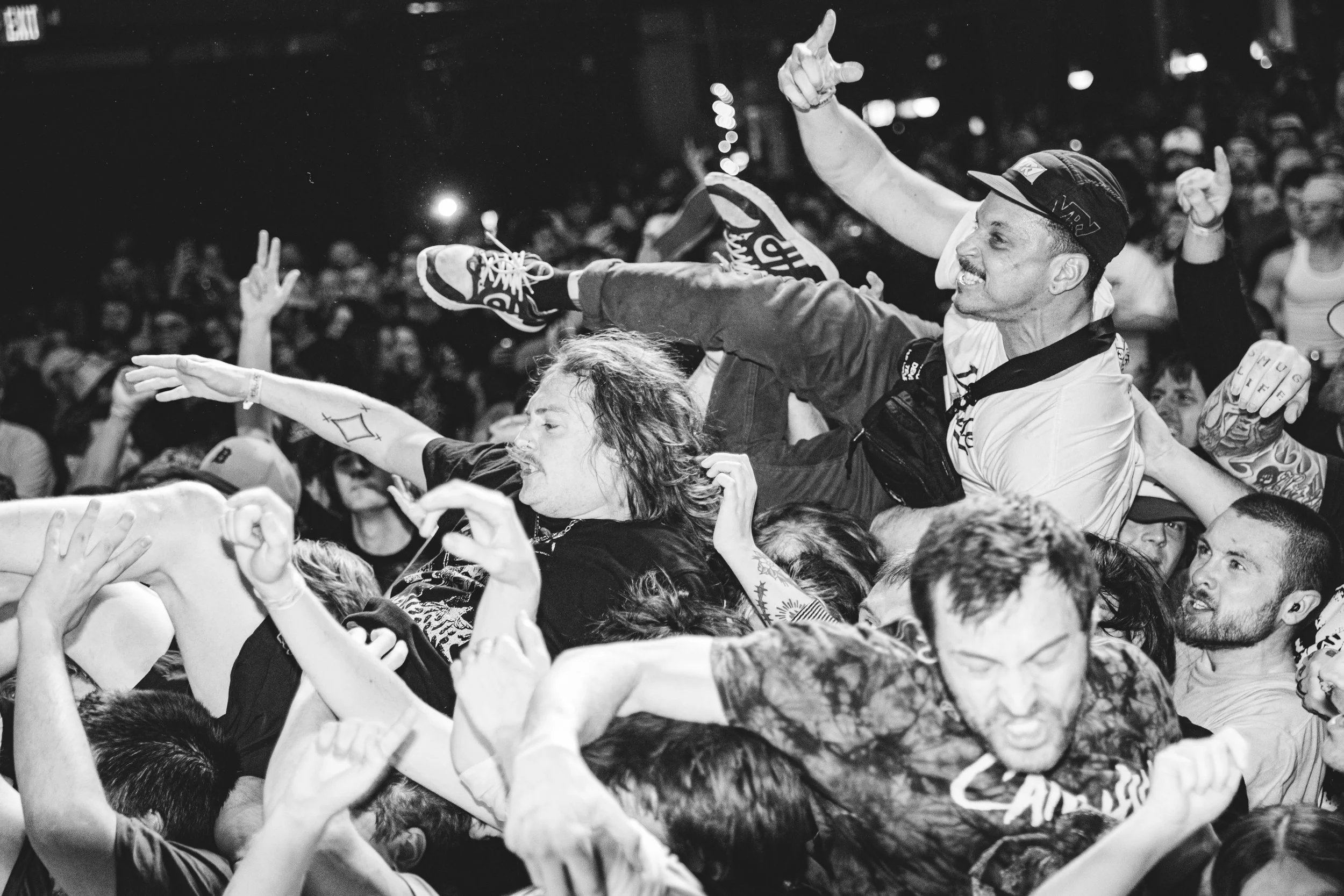 No Pressure brought so many stage dives. I took a moment to just count the stage dives for a moment, and it was laughable how many SUCCESSFUL dives there were. Made me proud, Detroit. Not too many people βlaying downβ or βWaving at people to catch themβ. After watching videos this week of other shows, it made me feel better about things in that regard.