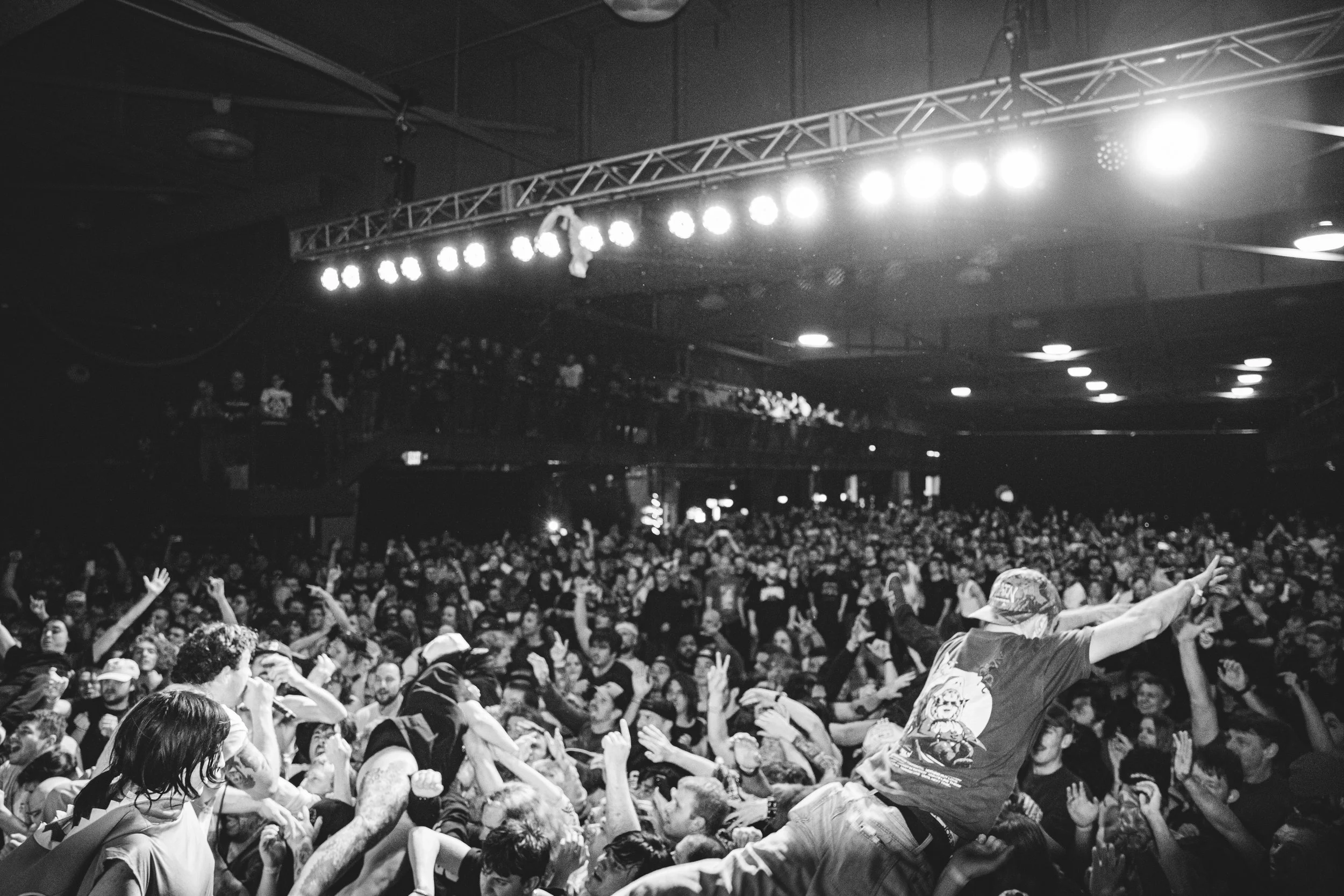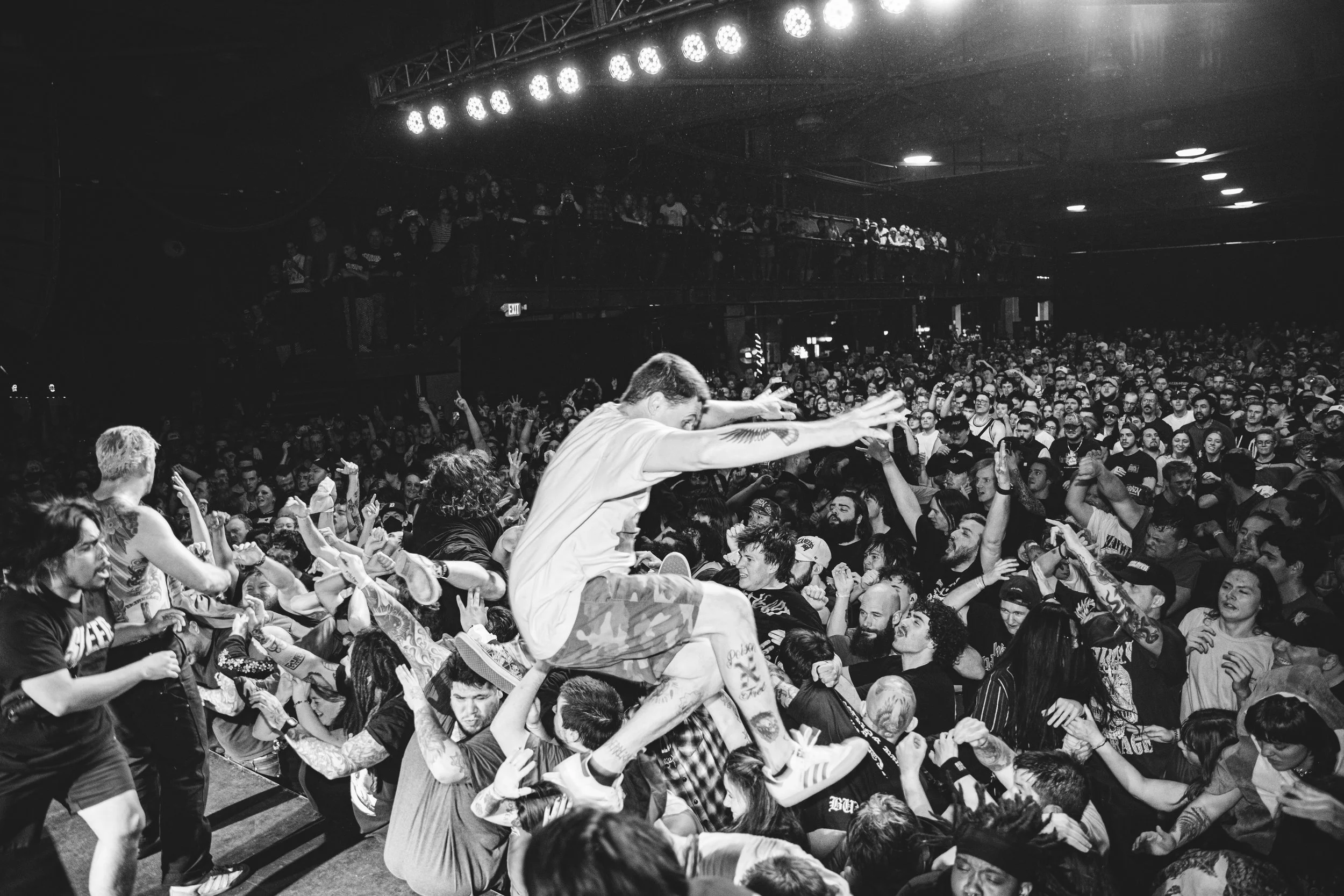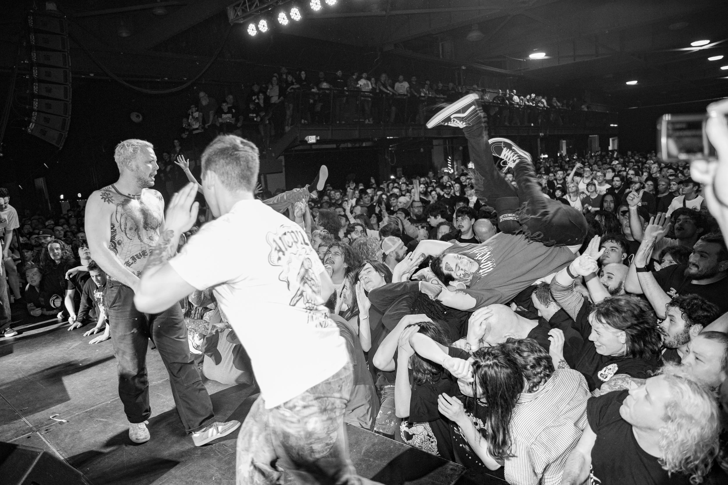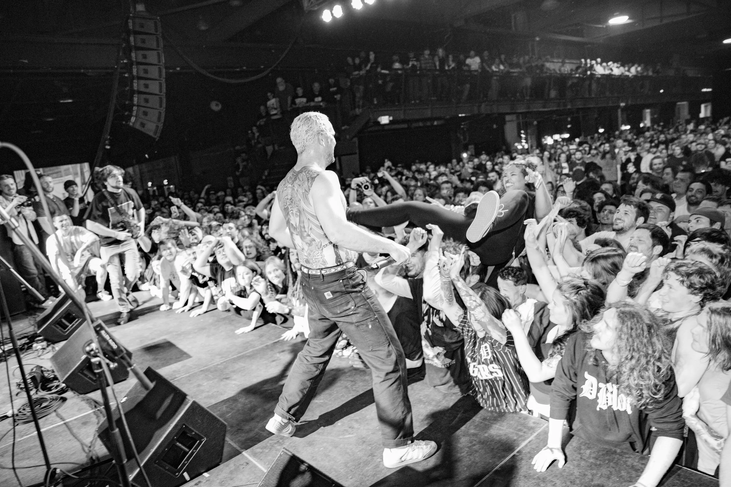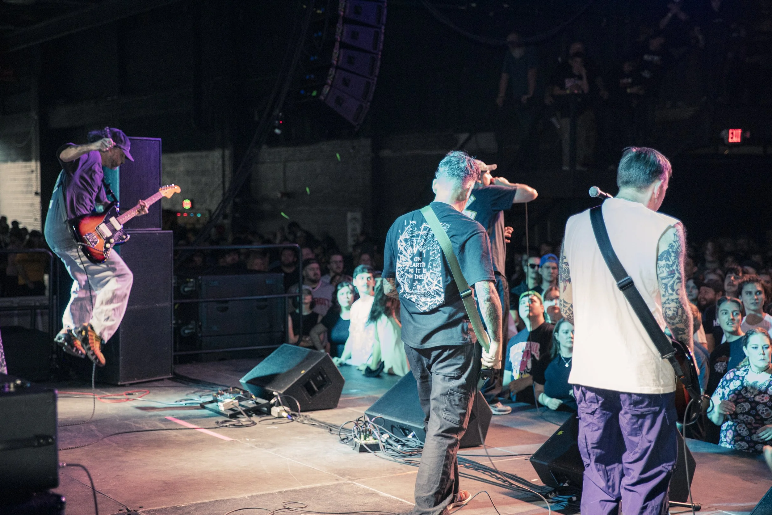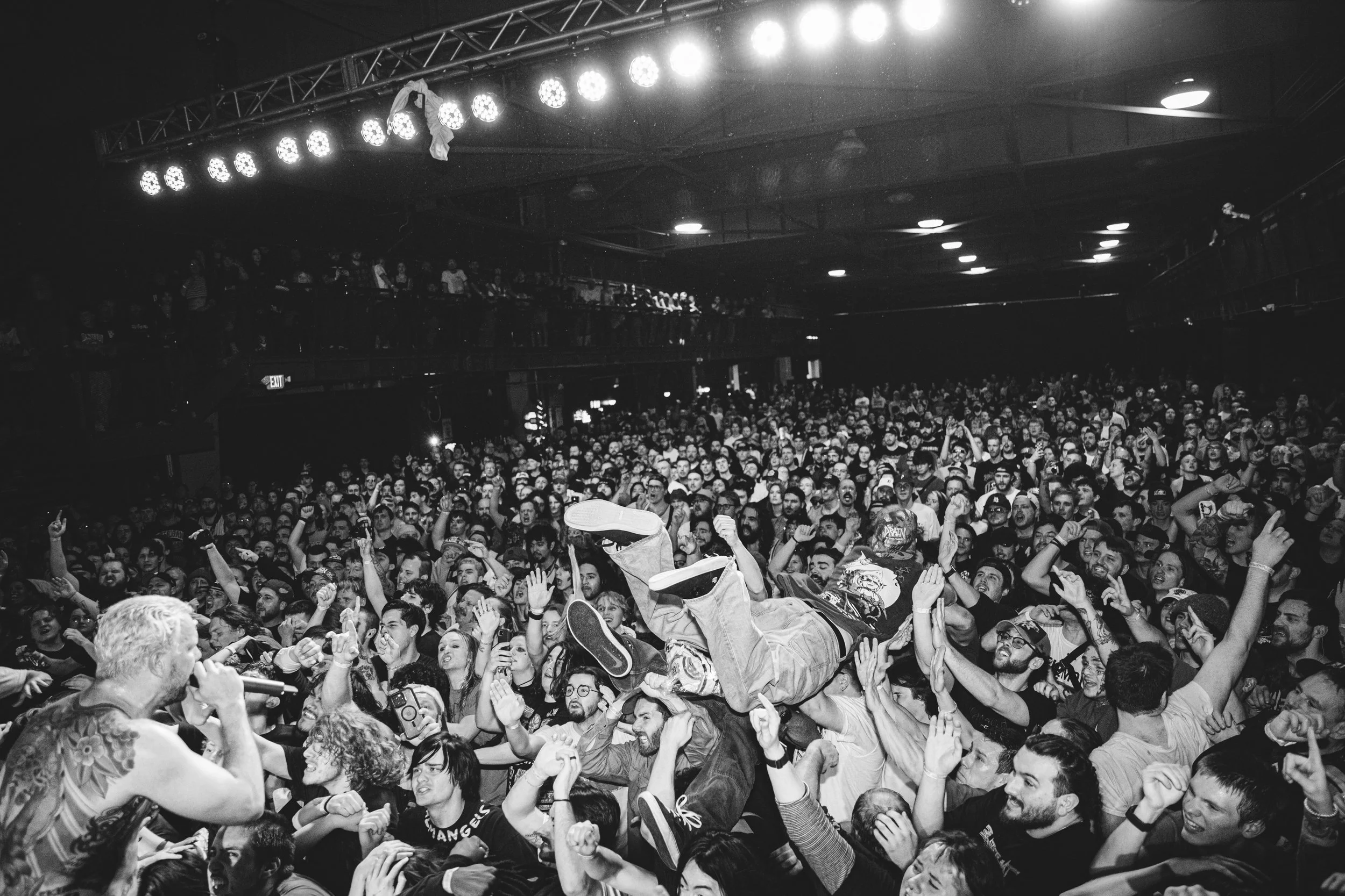 No Pressure brought so many stage dives. I took a moment to just count the stage dives for a moment, and it was laughable how many SUCCESSFUL dives there were. Made me proud, Detroit. Not too many people βlaying downβ or βWaving at people to catch themβ. After watching videos this week of other shows, it made me feel better about things in that regard.