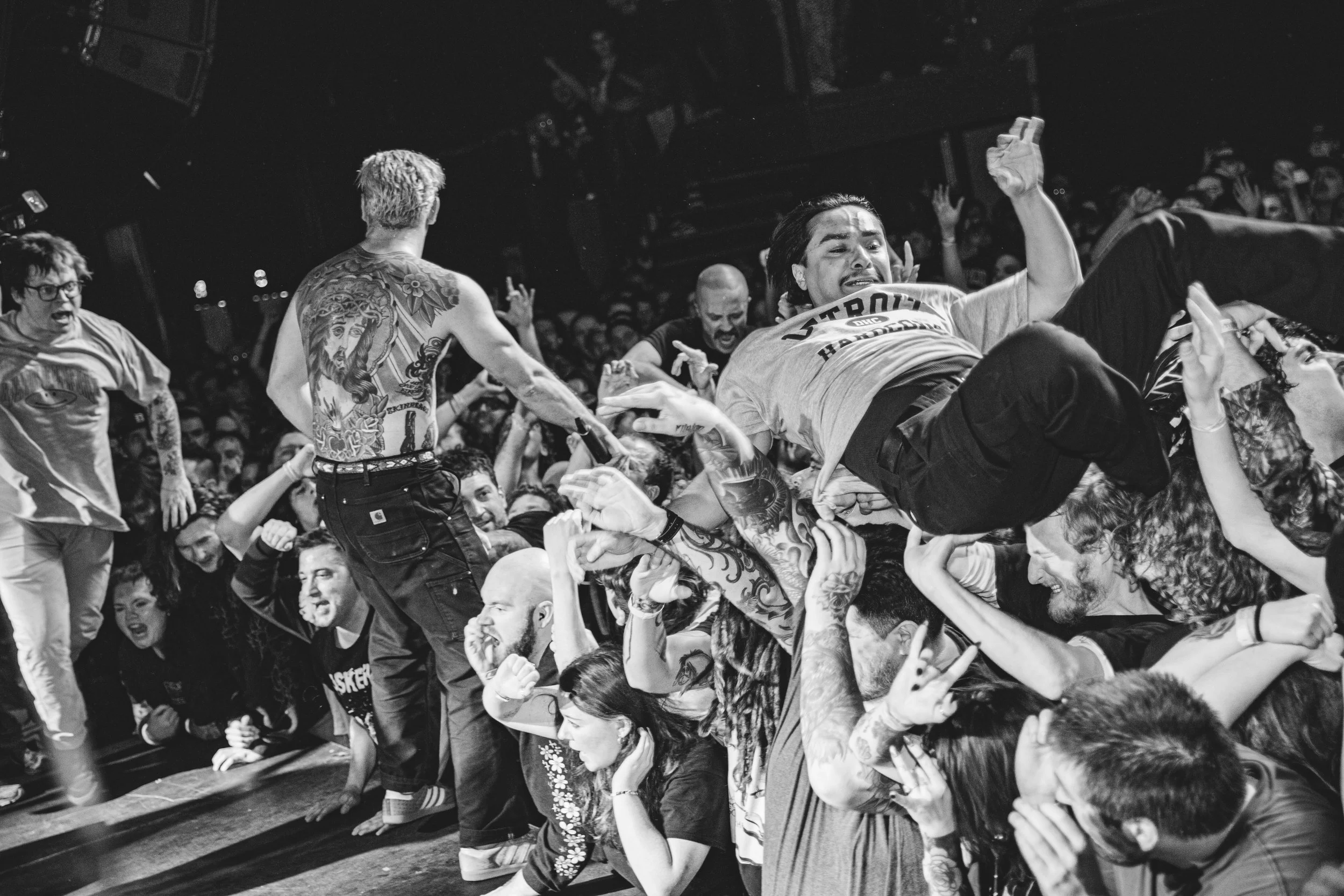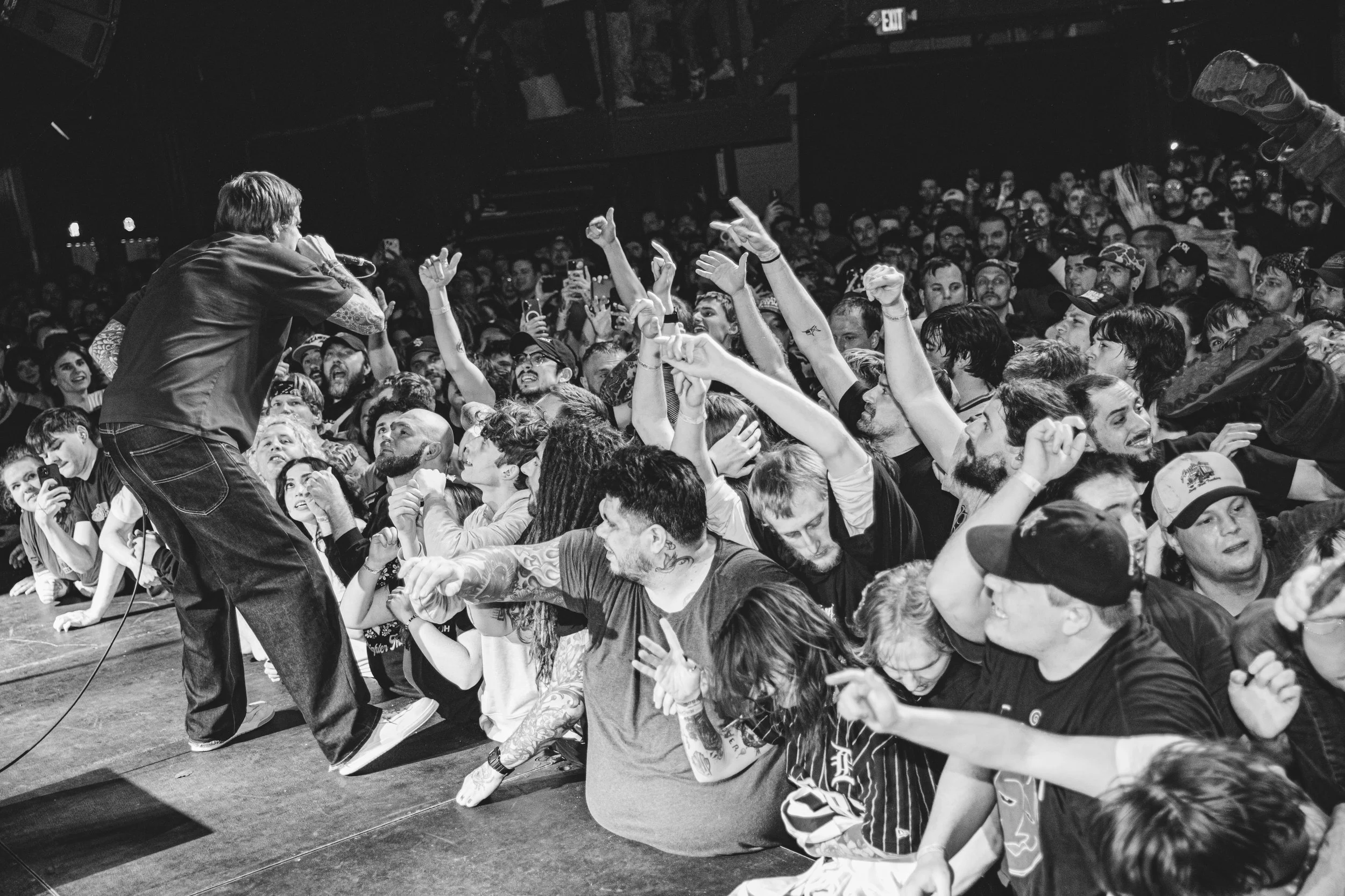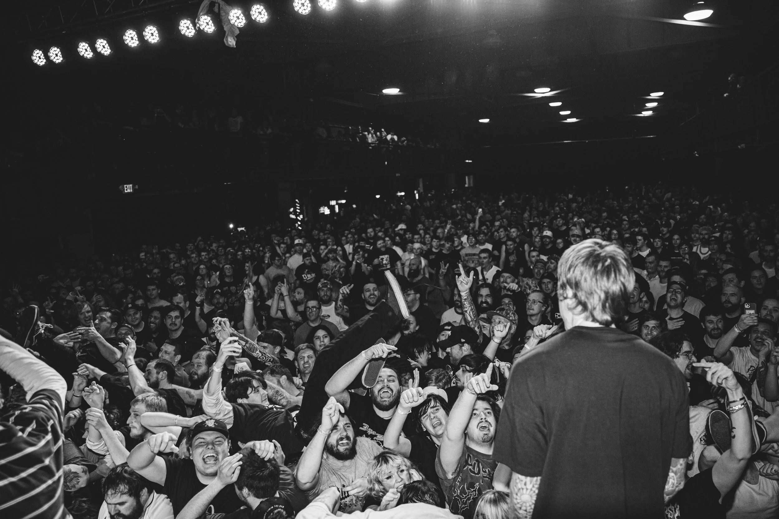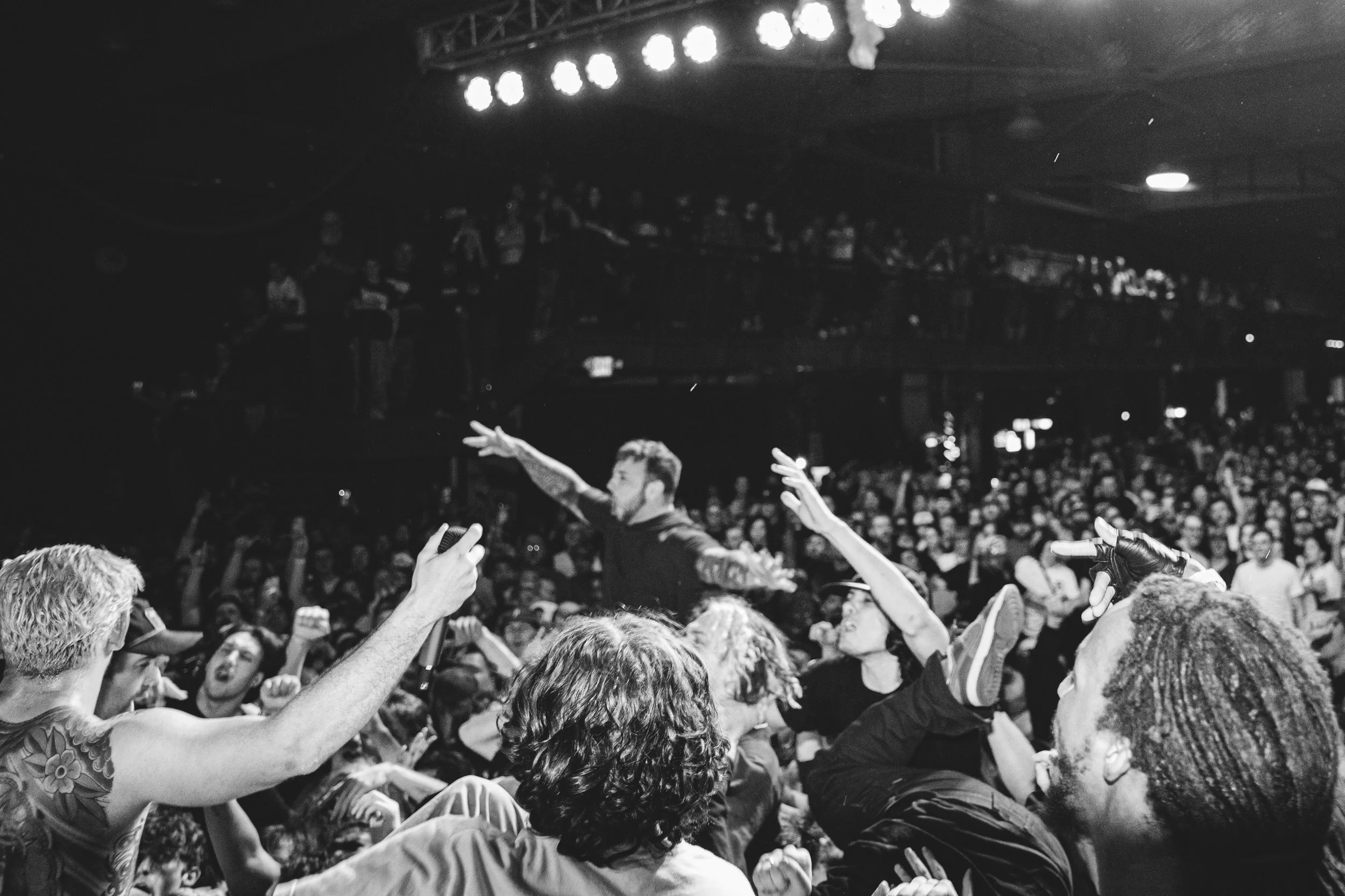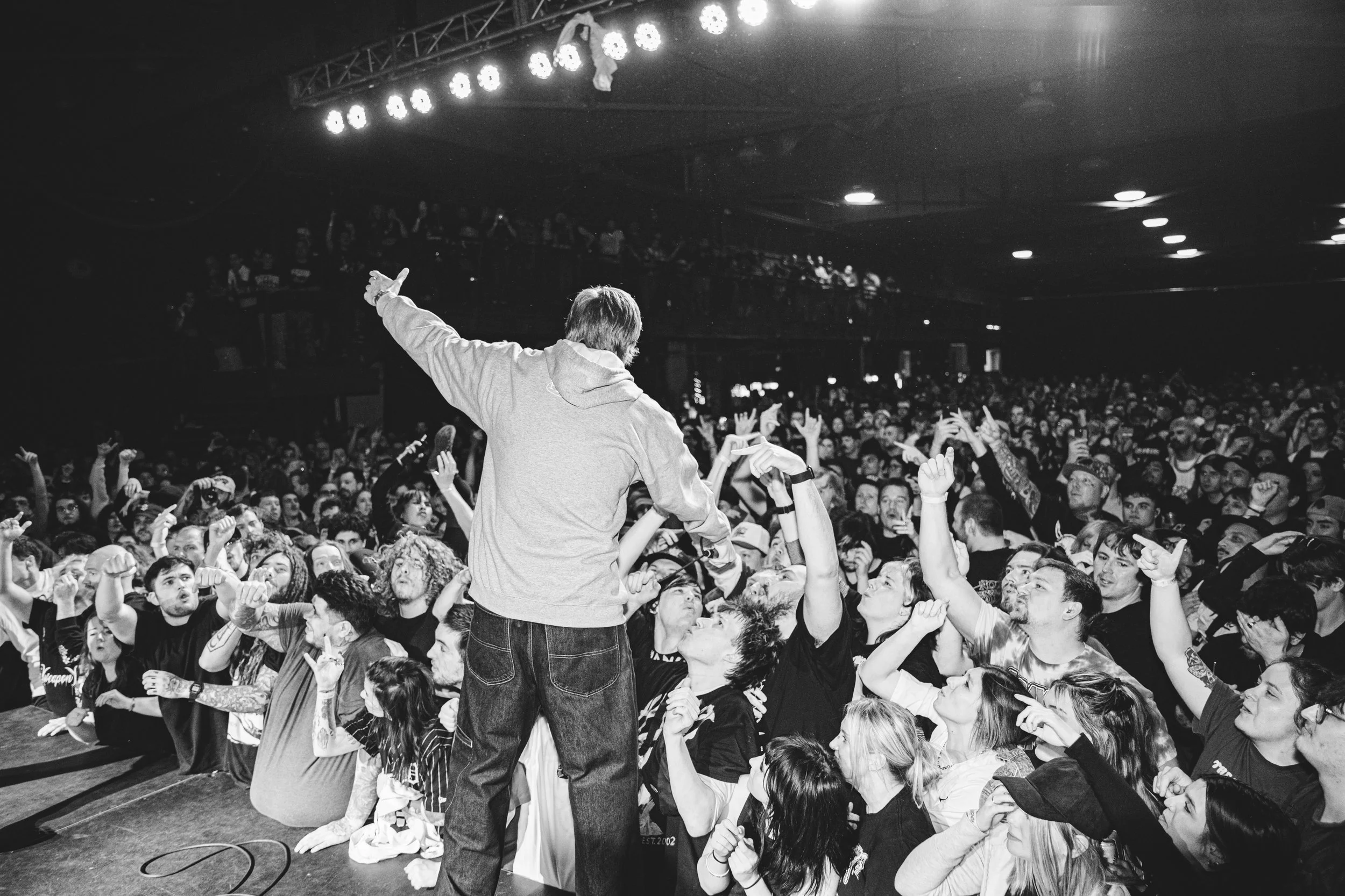 No Pressure brought so many stage dives. I took a moment to just count the stage dives for a moment, and it was laughable how many SUCCESSFUL dives there were. Made me proud, Detroit. Not too many people βlaying downβ or βWaving at people to catch themβ. After watching videos this week of other shows, it made me feel better about things in that regard.