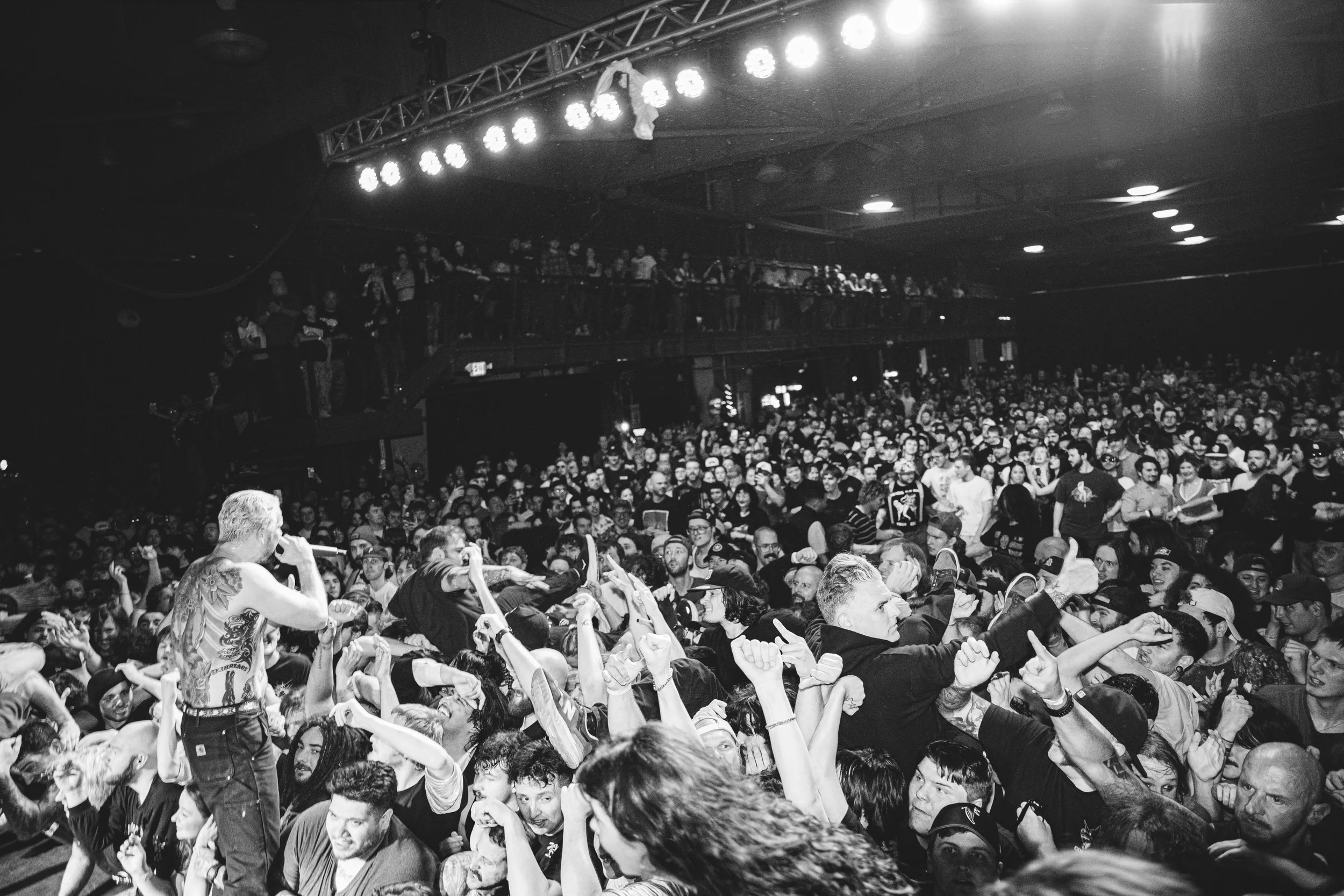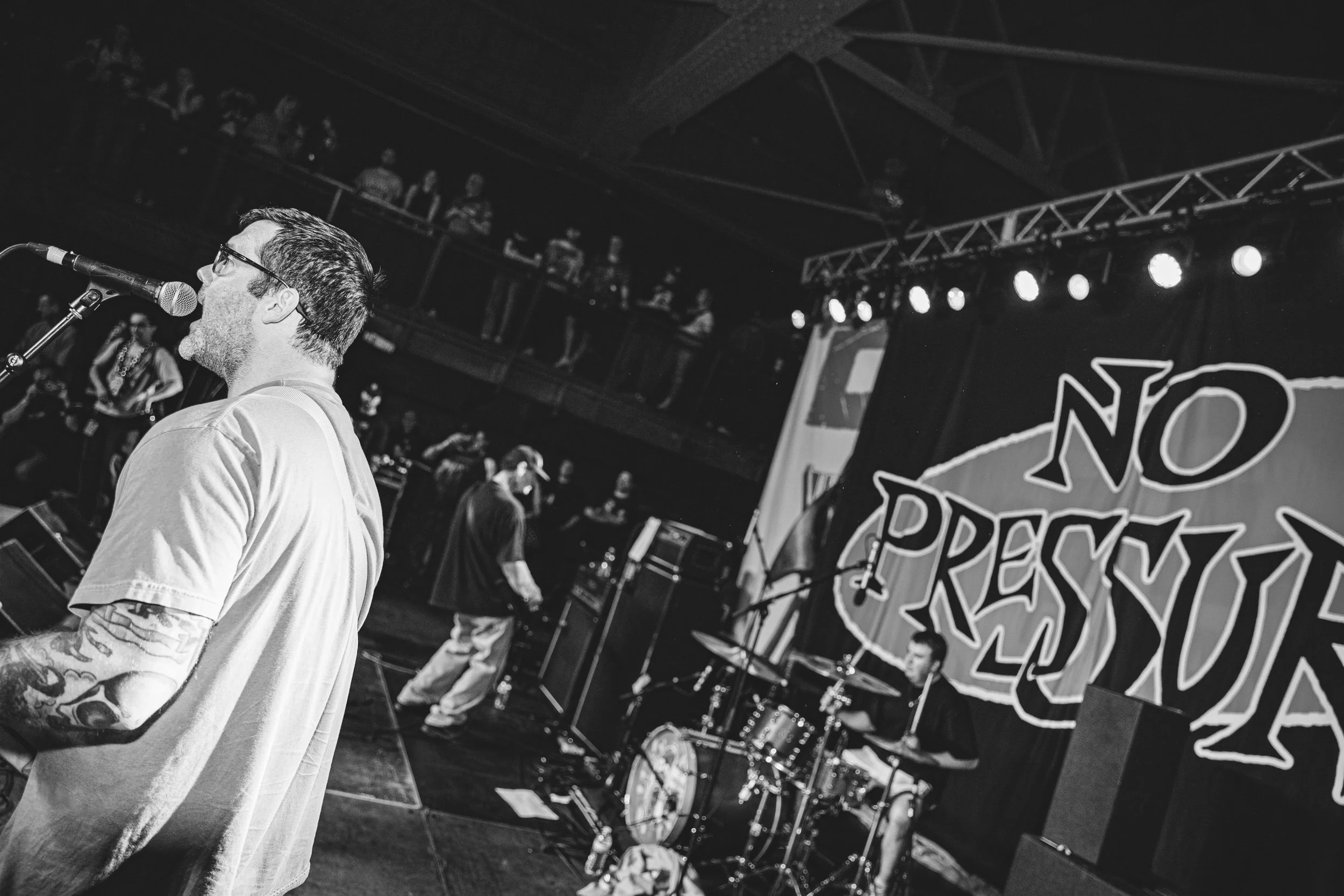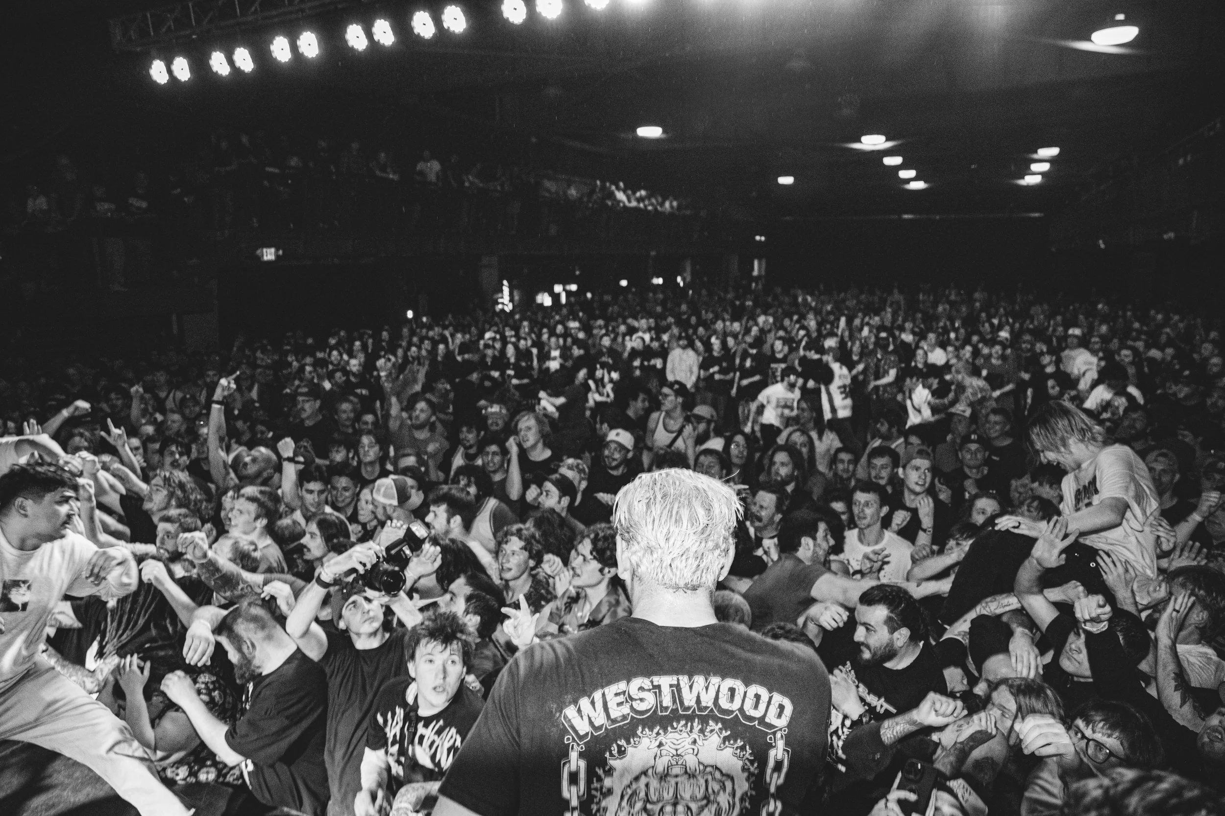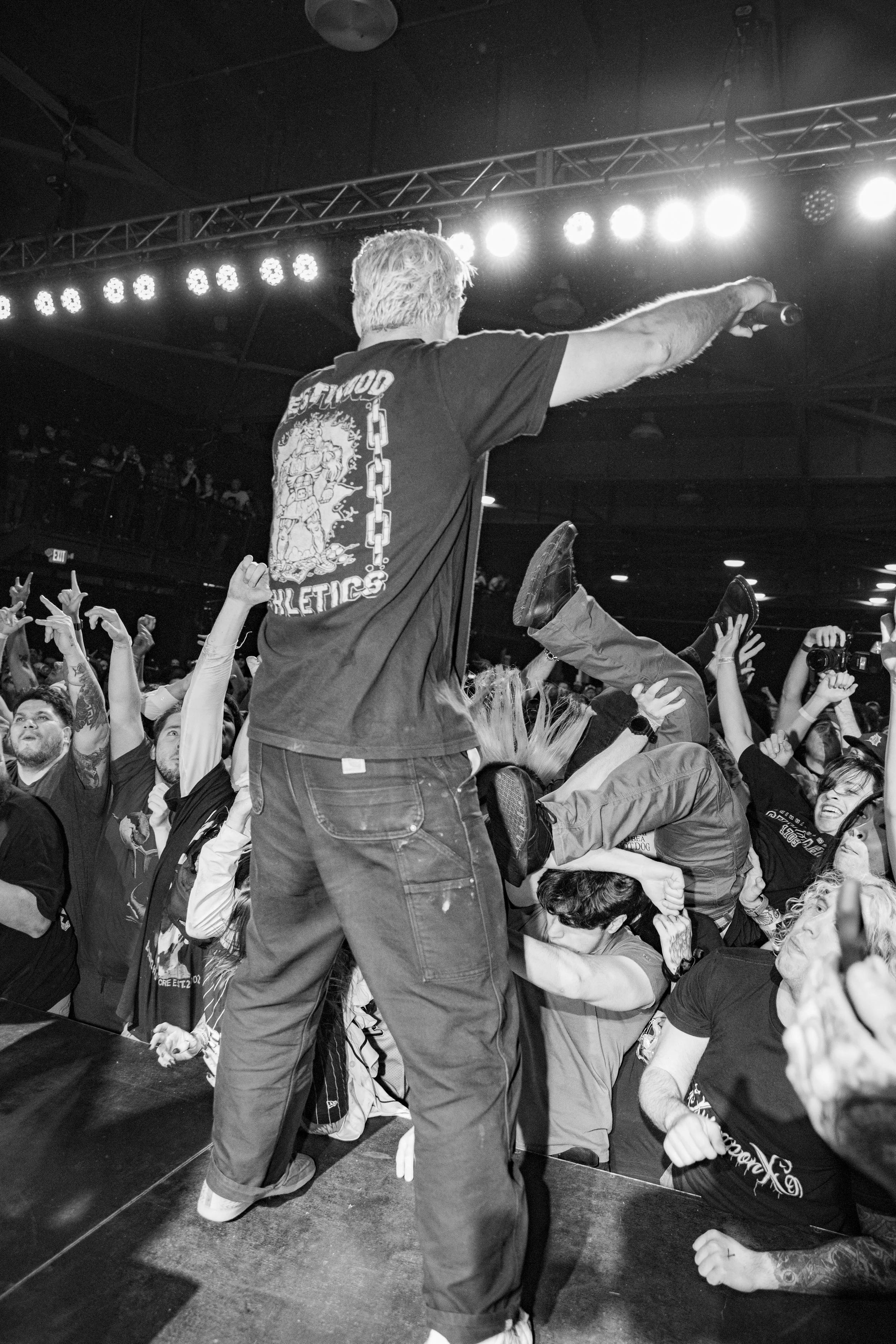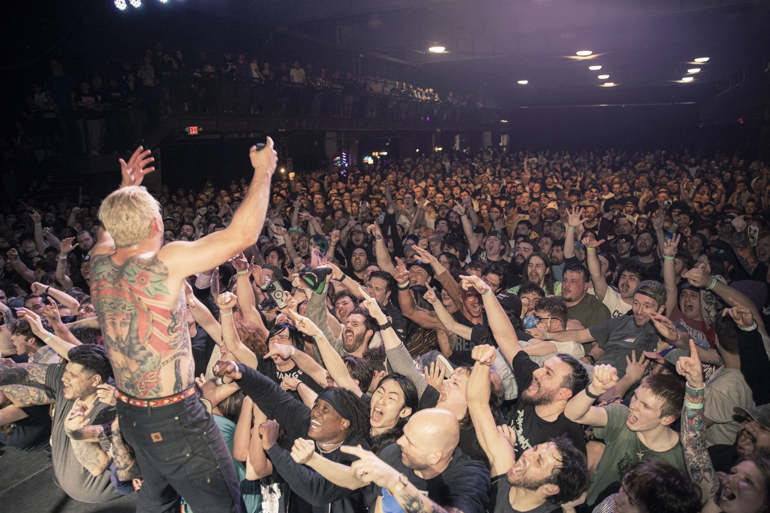 No Pressure brought so many stage dives. I took a moment to just count the stage dives for a moment, and it was laughable how many SUCCESSFUL dives there were. Made me proud, Detroit. Not too many people βlaying downβ or βWaving at people to catch themβ. After watching videos this week of other shows, it made me feel better about things in that regard.