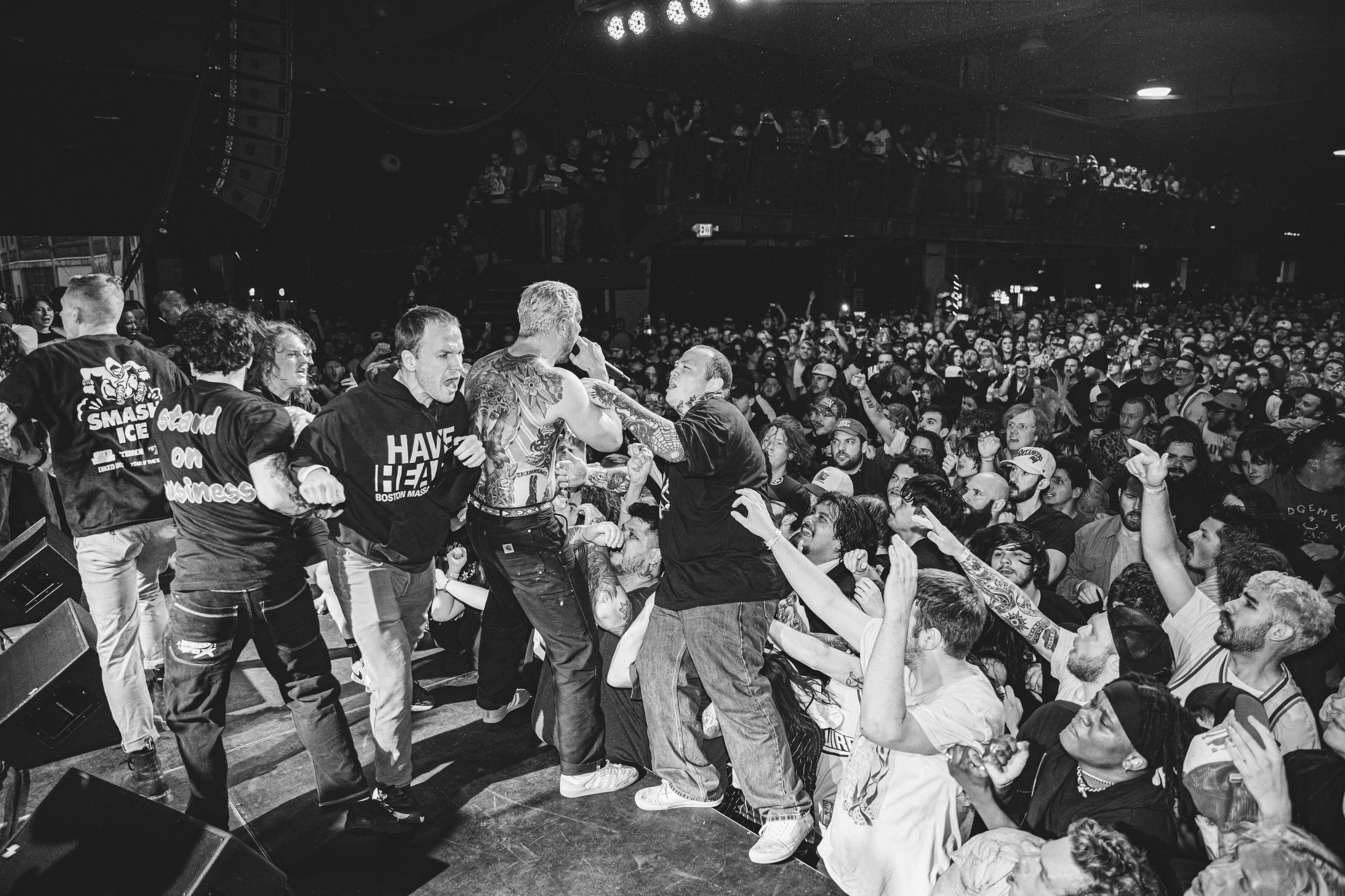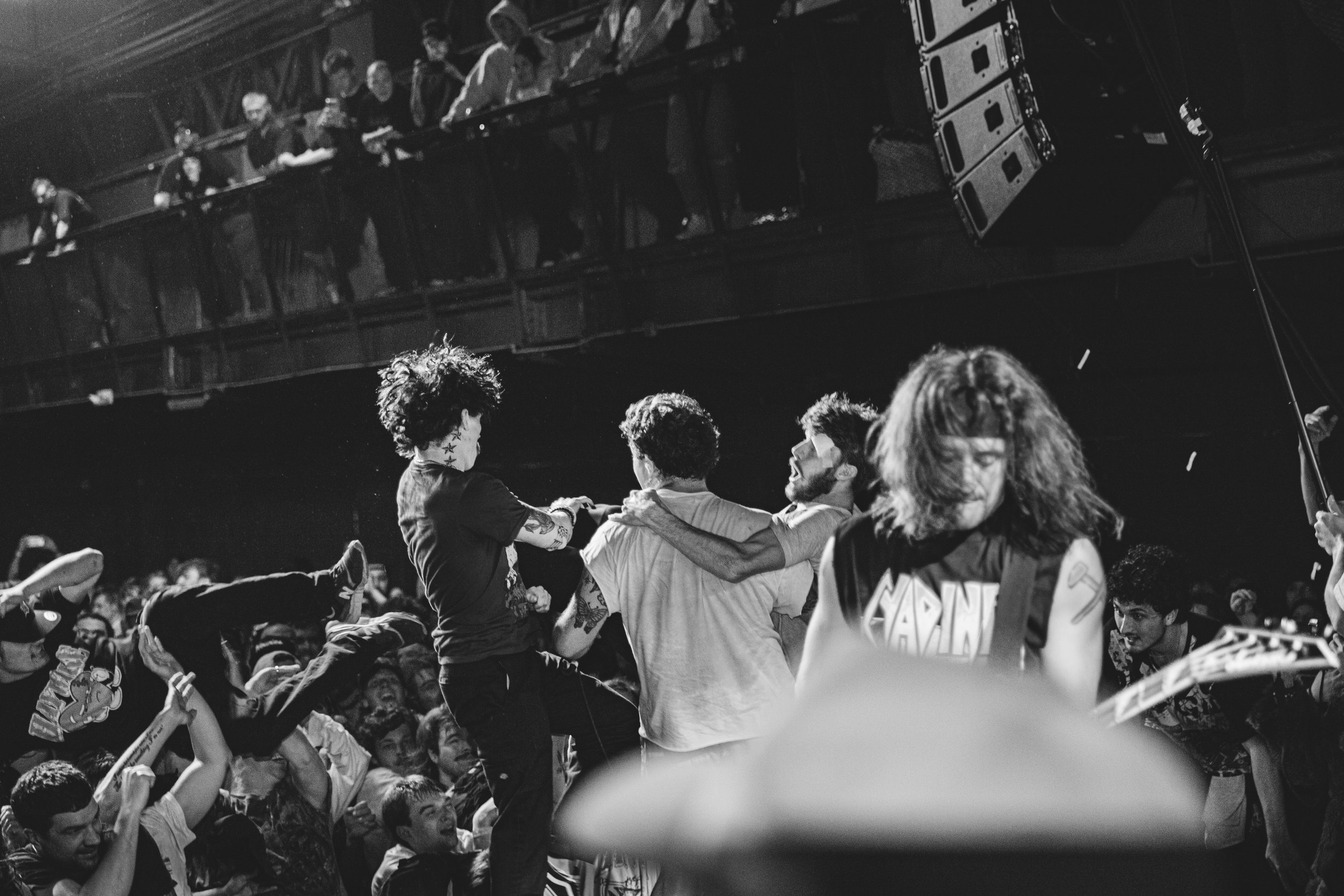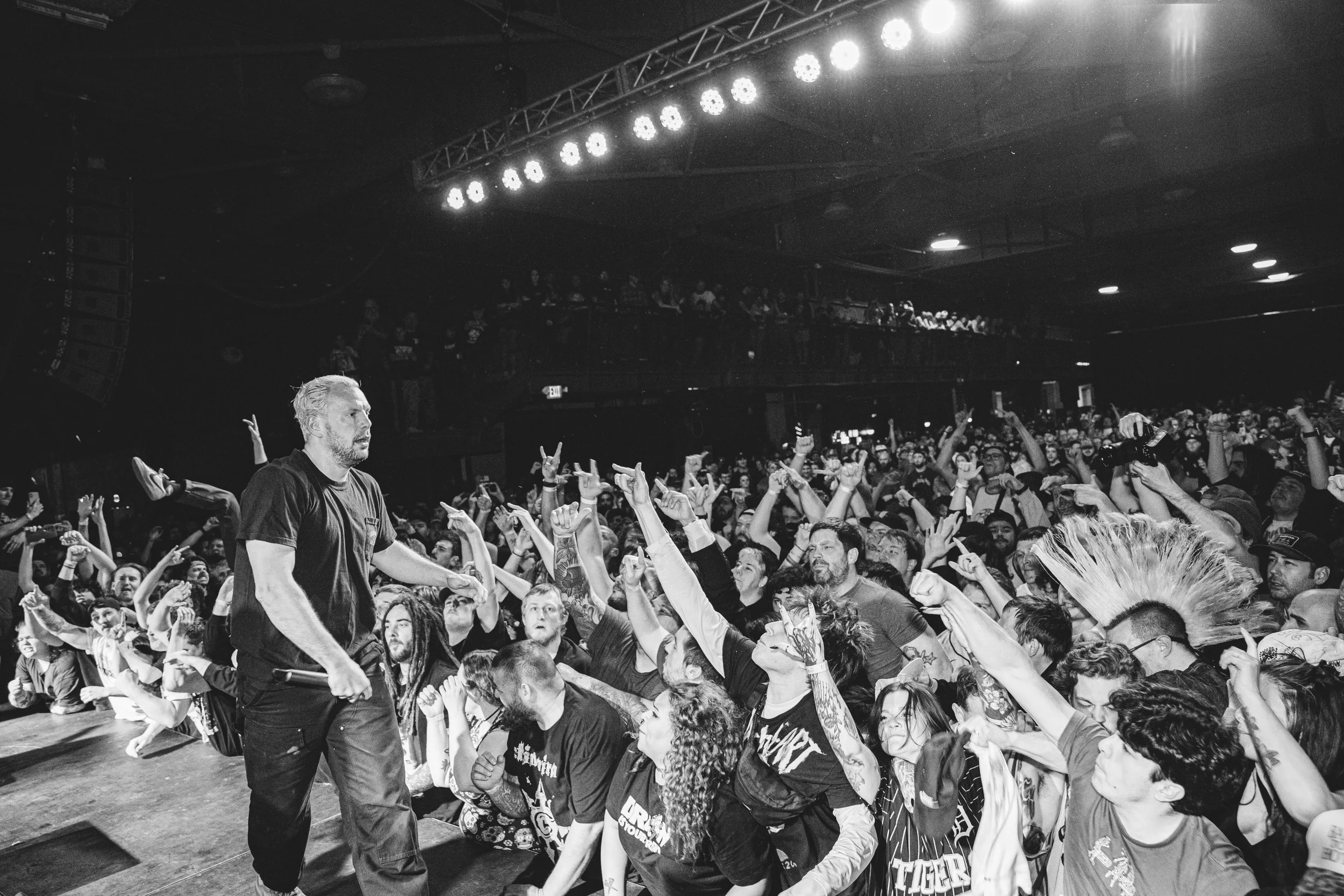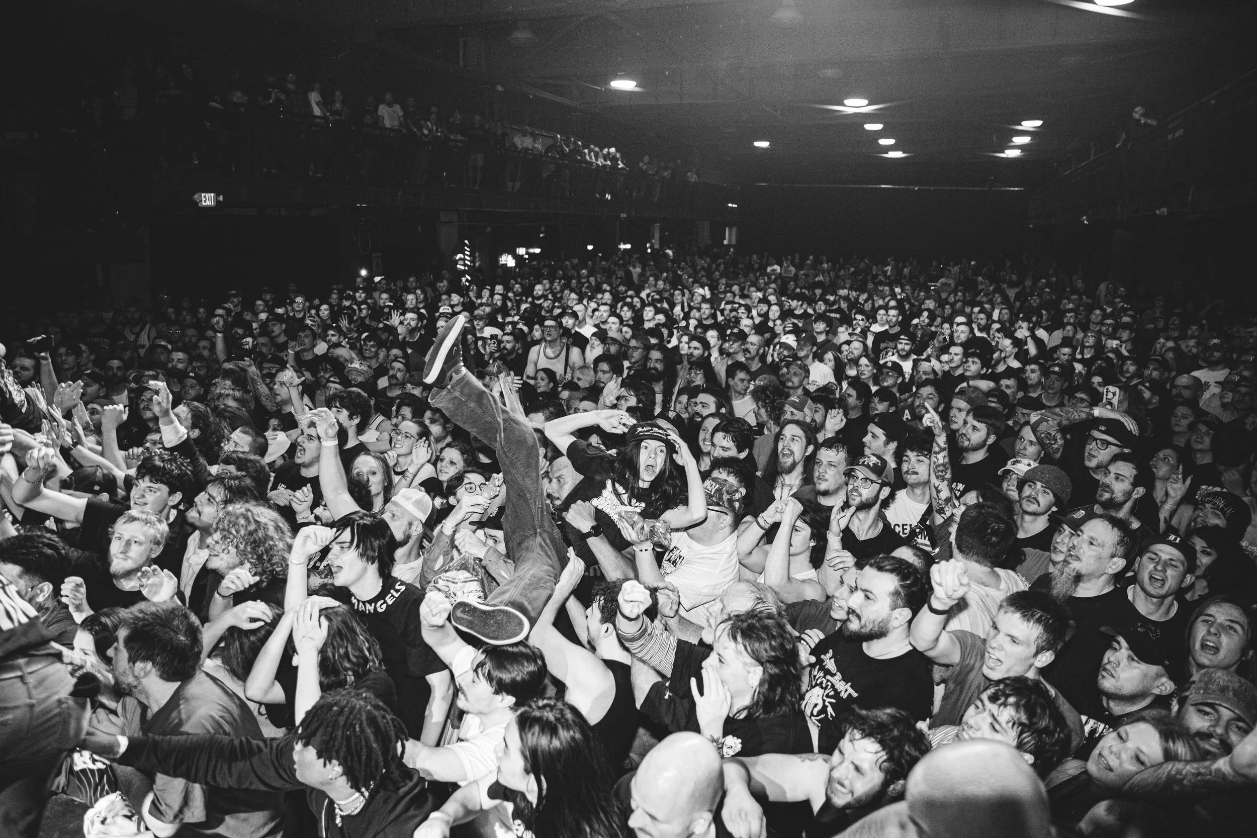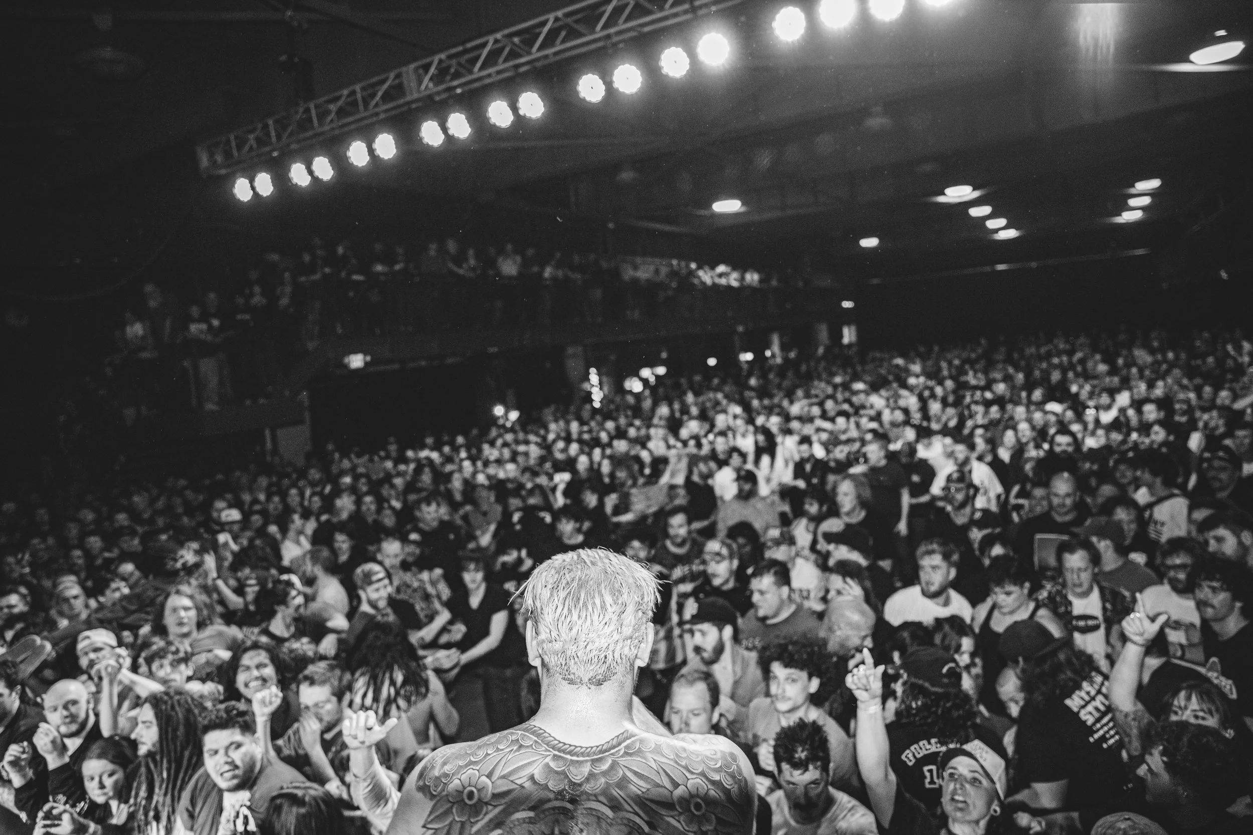 No Pressure brought so many stage dives. I took a moment to just count the stage dives for a moment, and it was laughable how many SUCCESSFUL dives there were. Made me proud, Detroit. Not too many people βlaying downβ or βWaving at people to catch themβ. After watching videos this week of other shows, it made me feel better about things in that regard.
