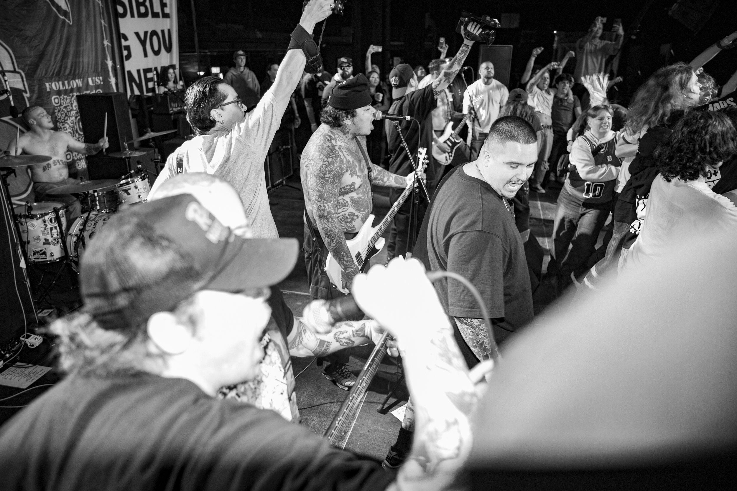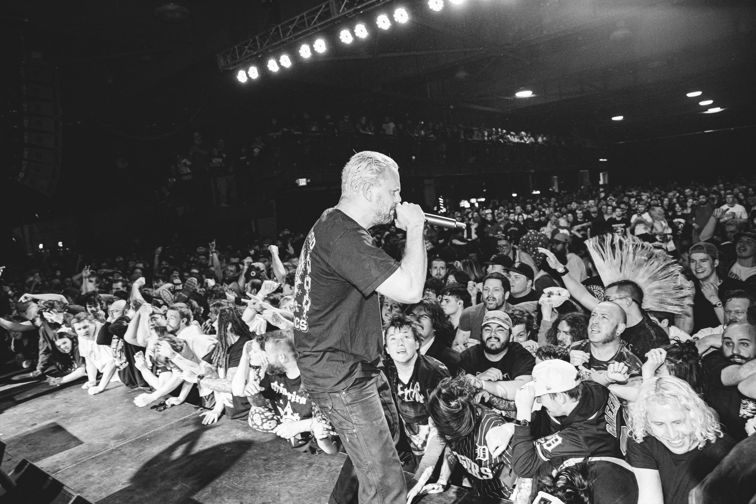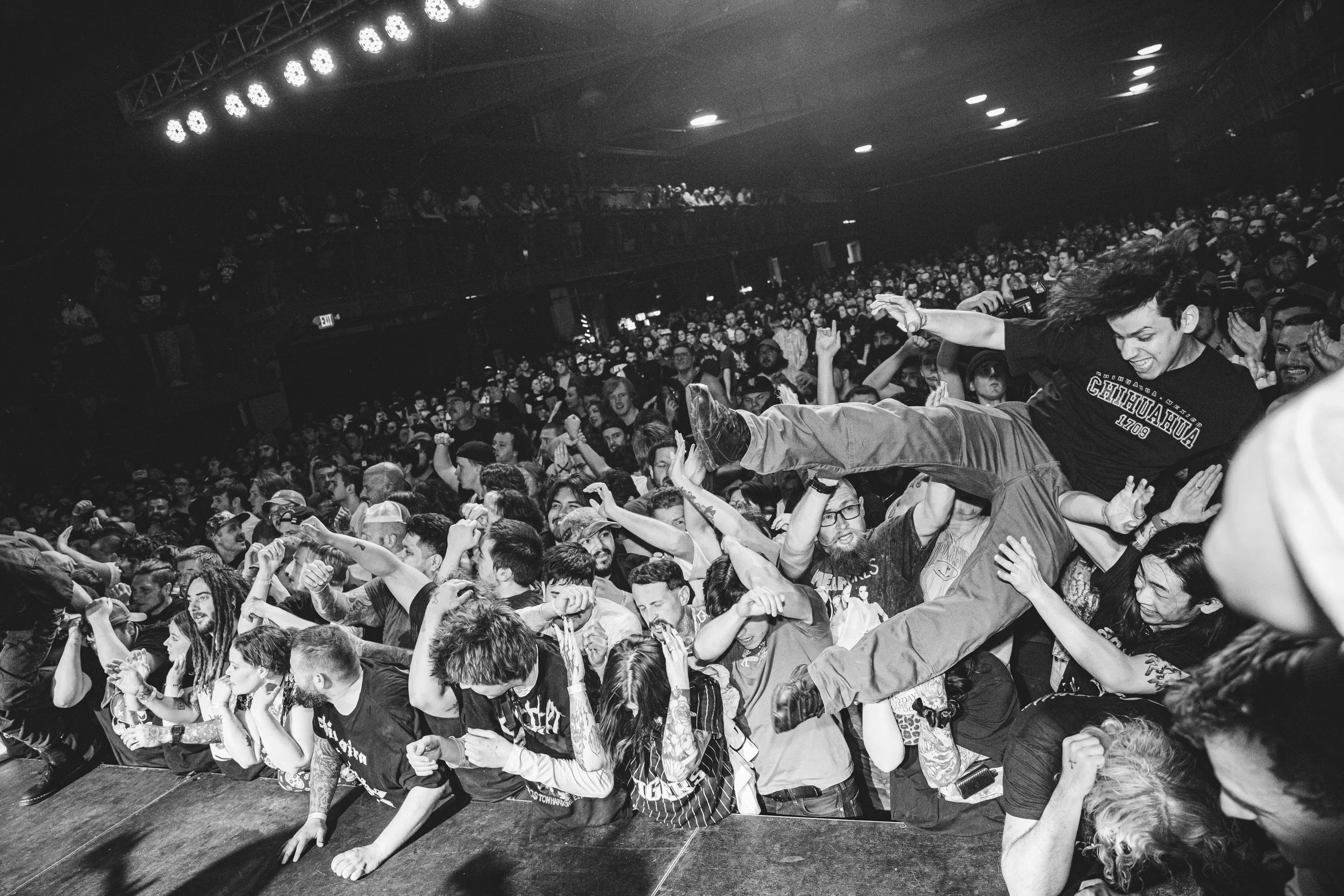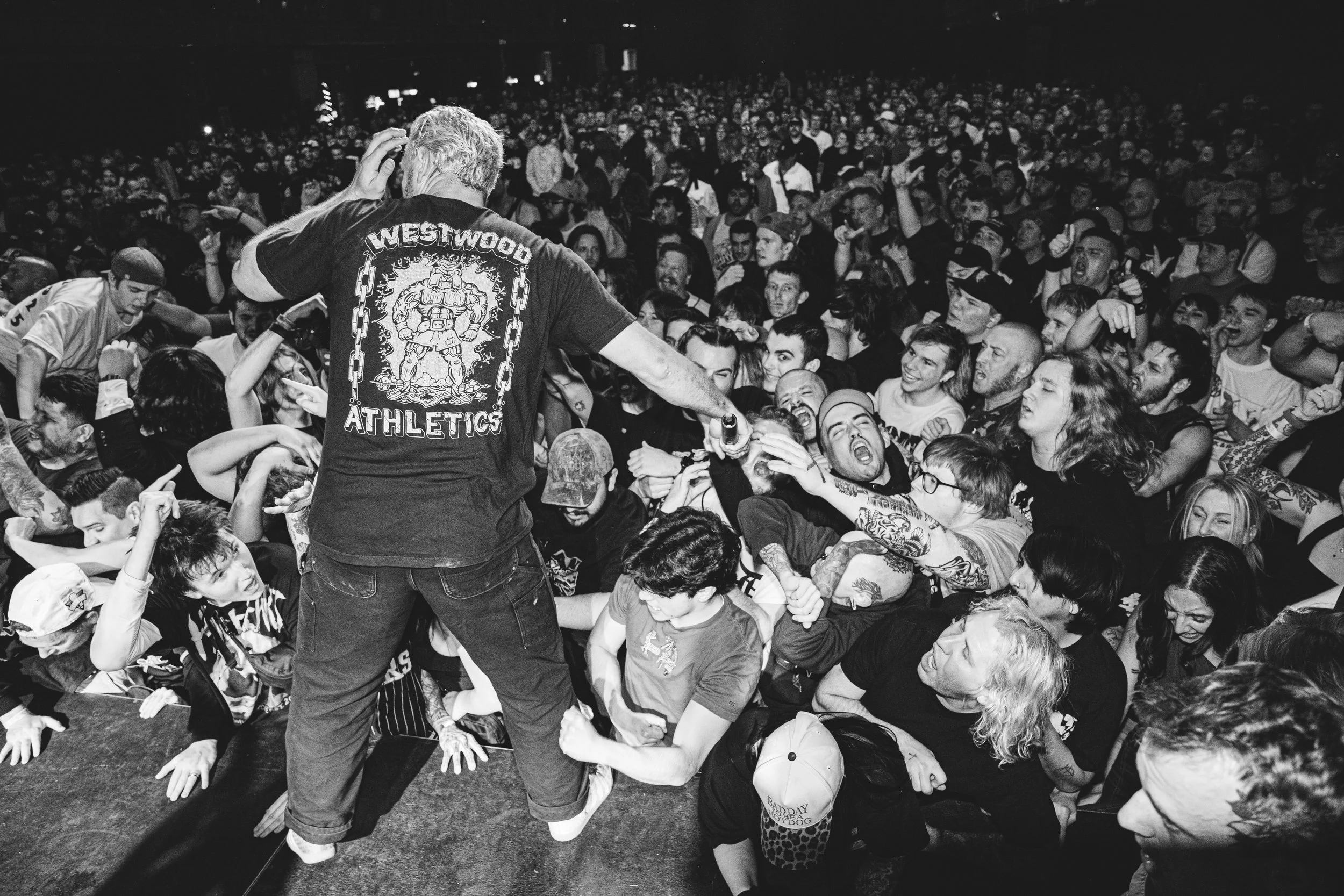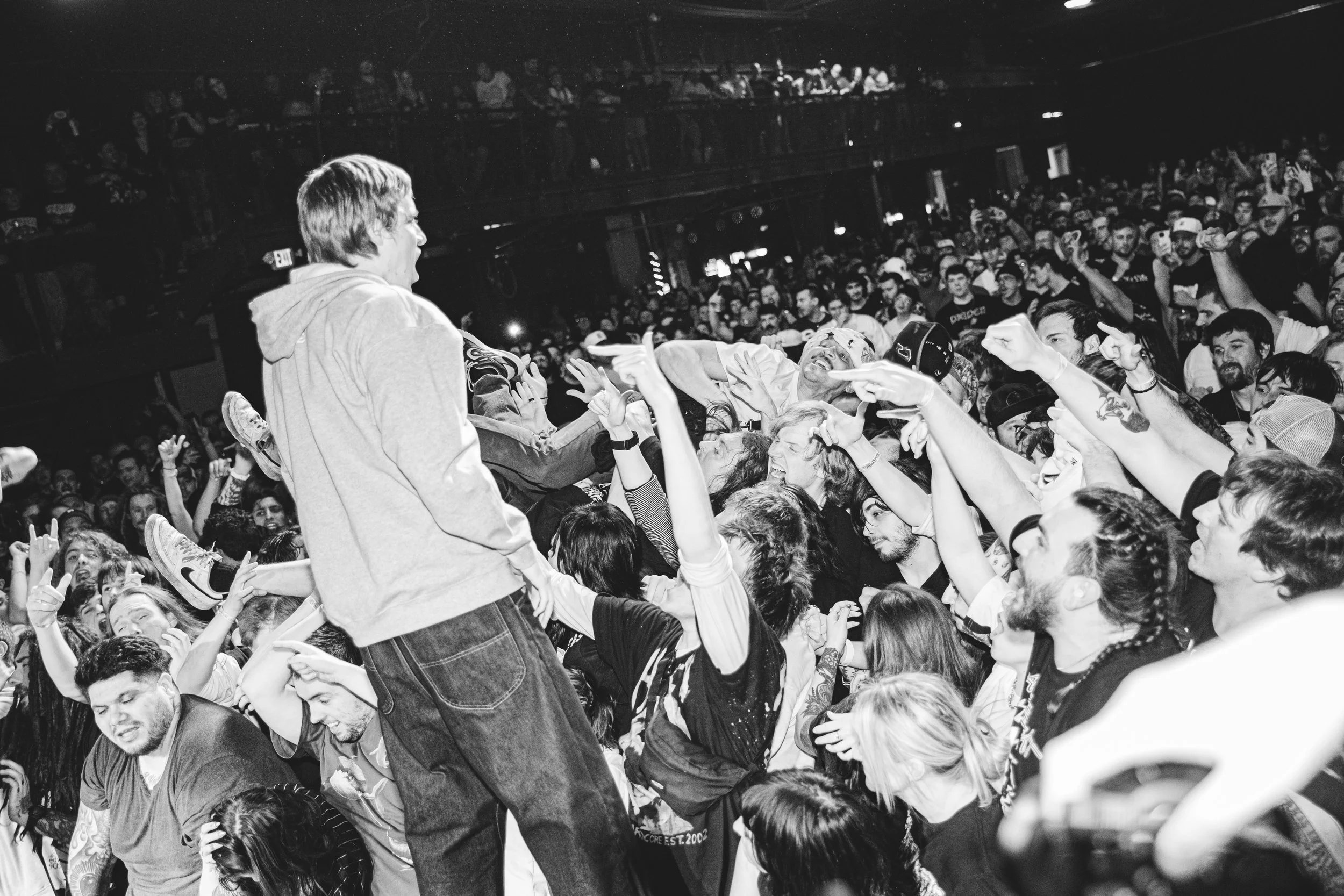 No Pressure brought so many stage dives. I took a moment to just count the stage dives for a moment, and it was laughable how many SUCCESSFUL dives there were. Made me proud, Detroit. Not too many people βlaying downβ or βWaving at people to catch themβ. After watching videos this week of other shows, it made me feel better about things in that regard.