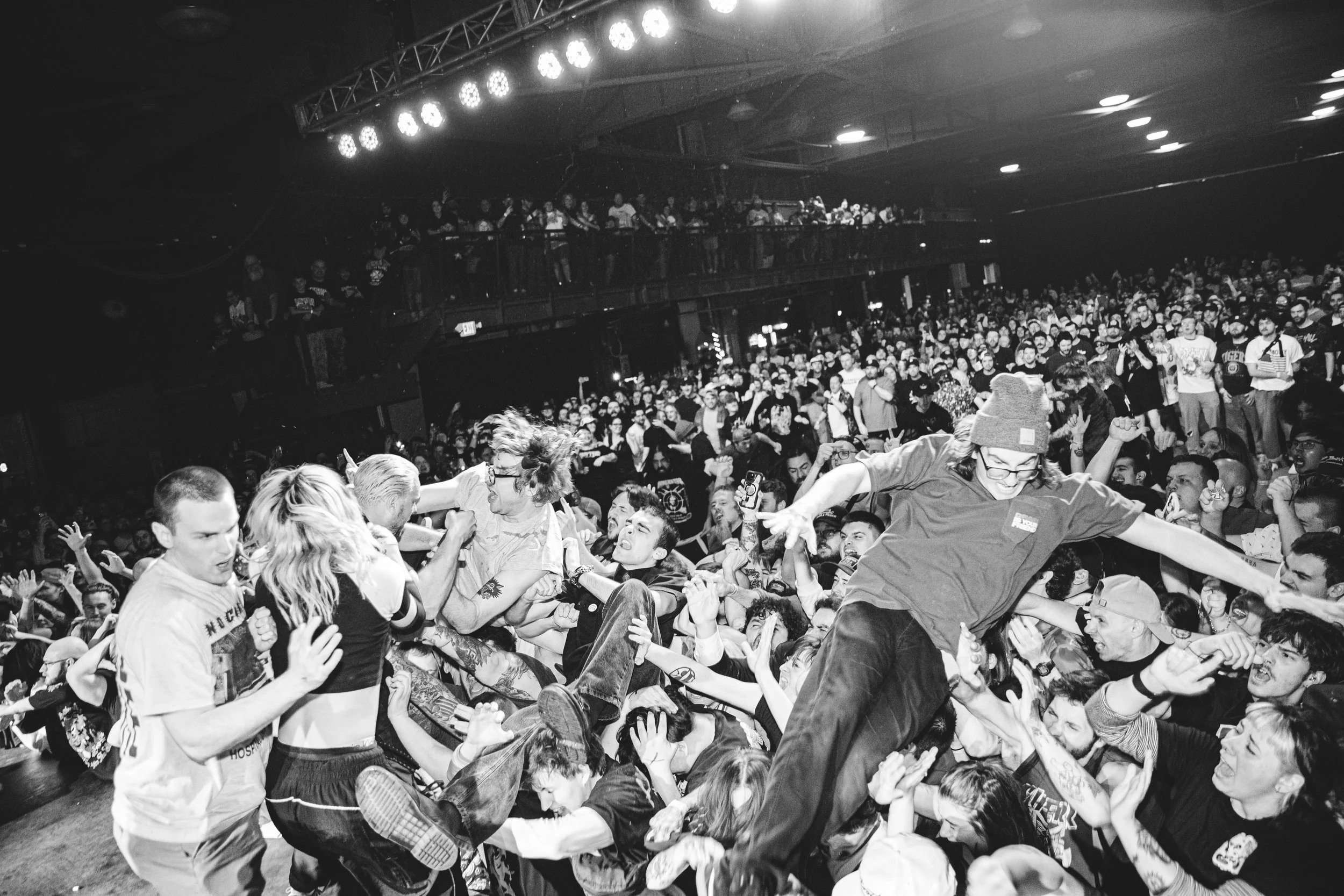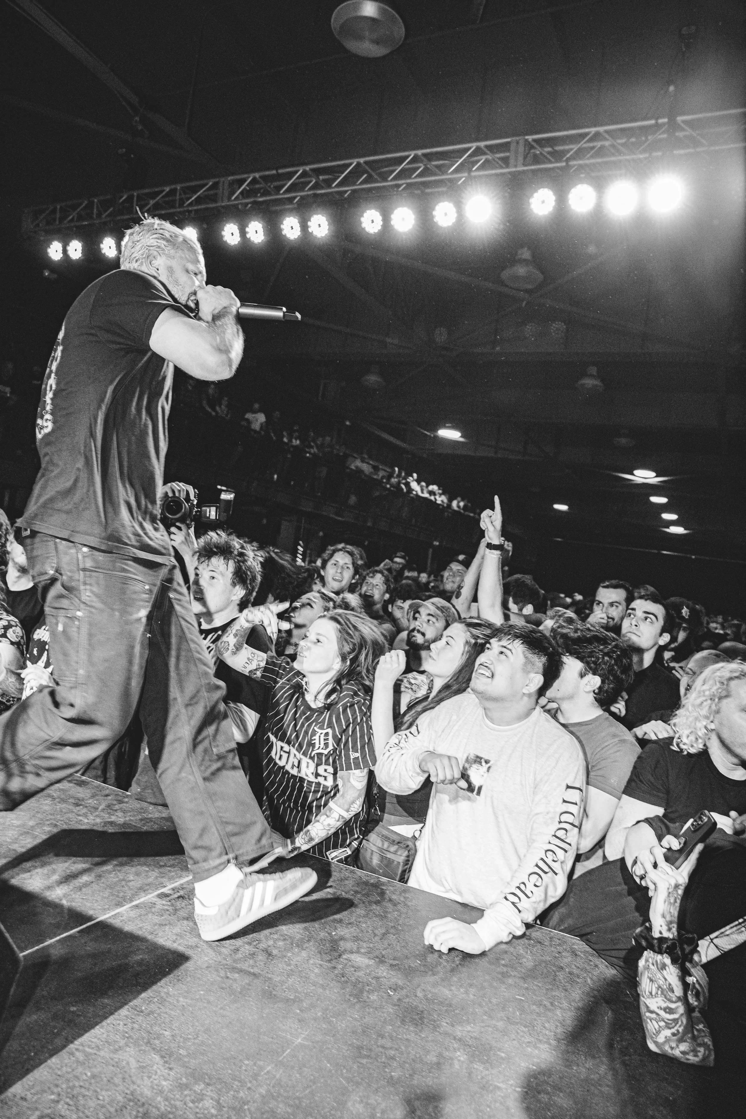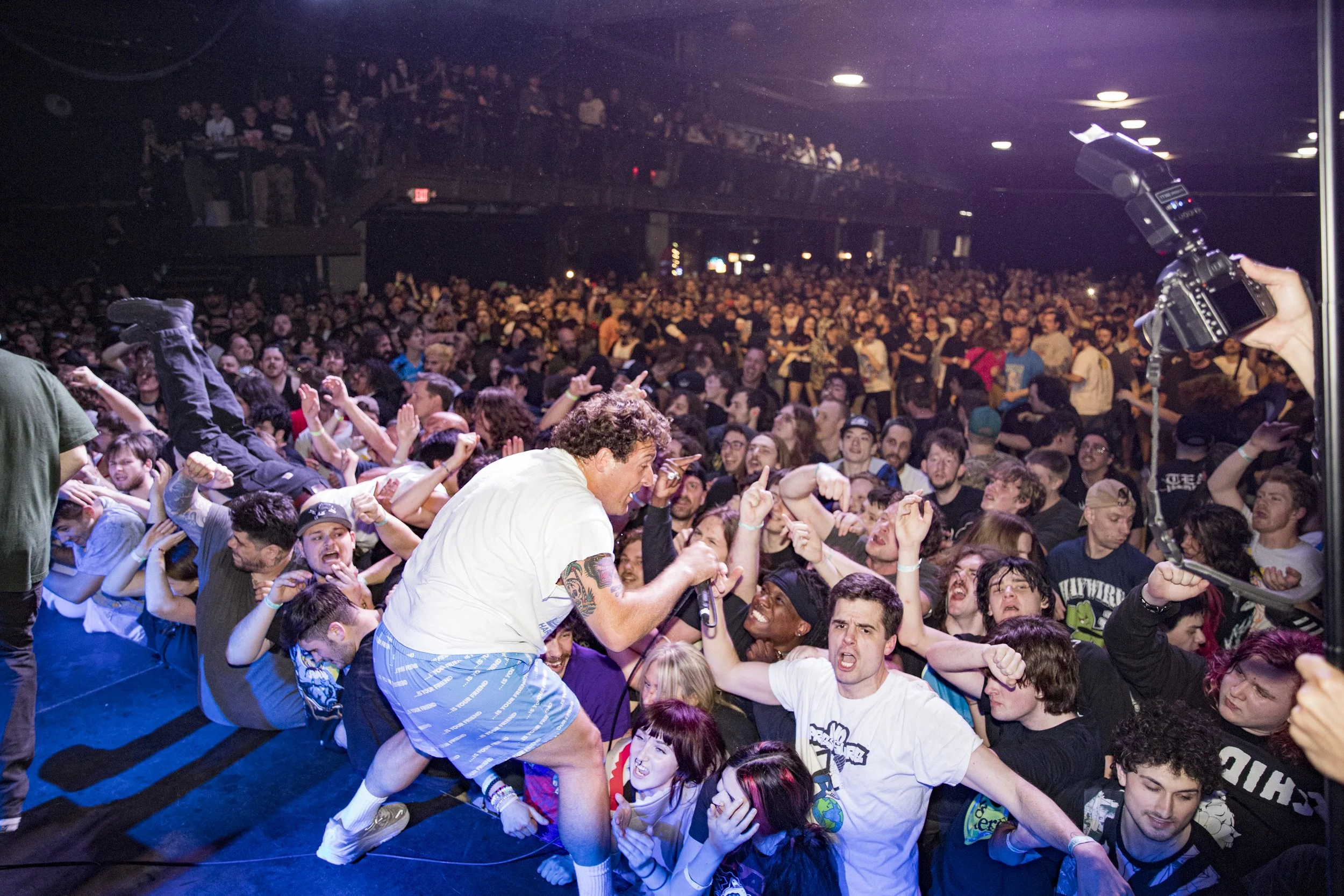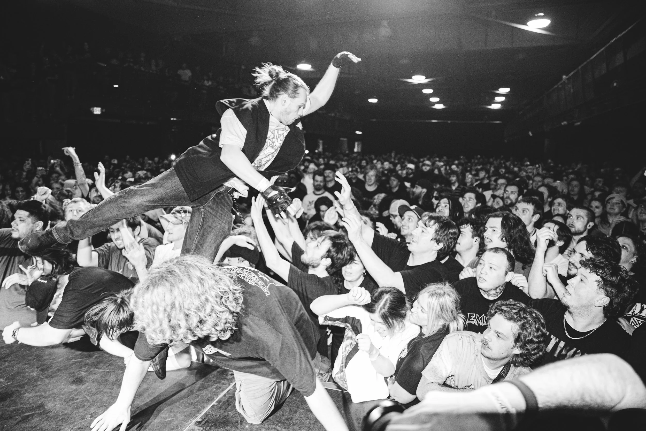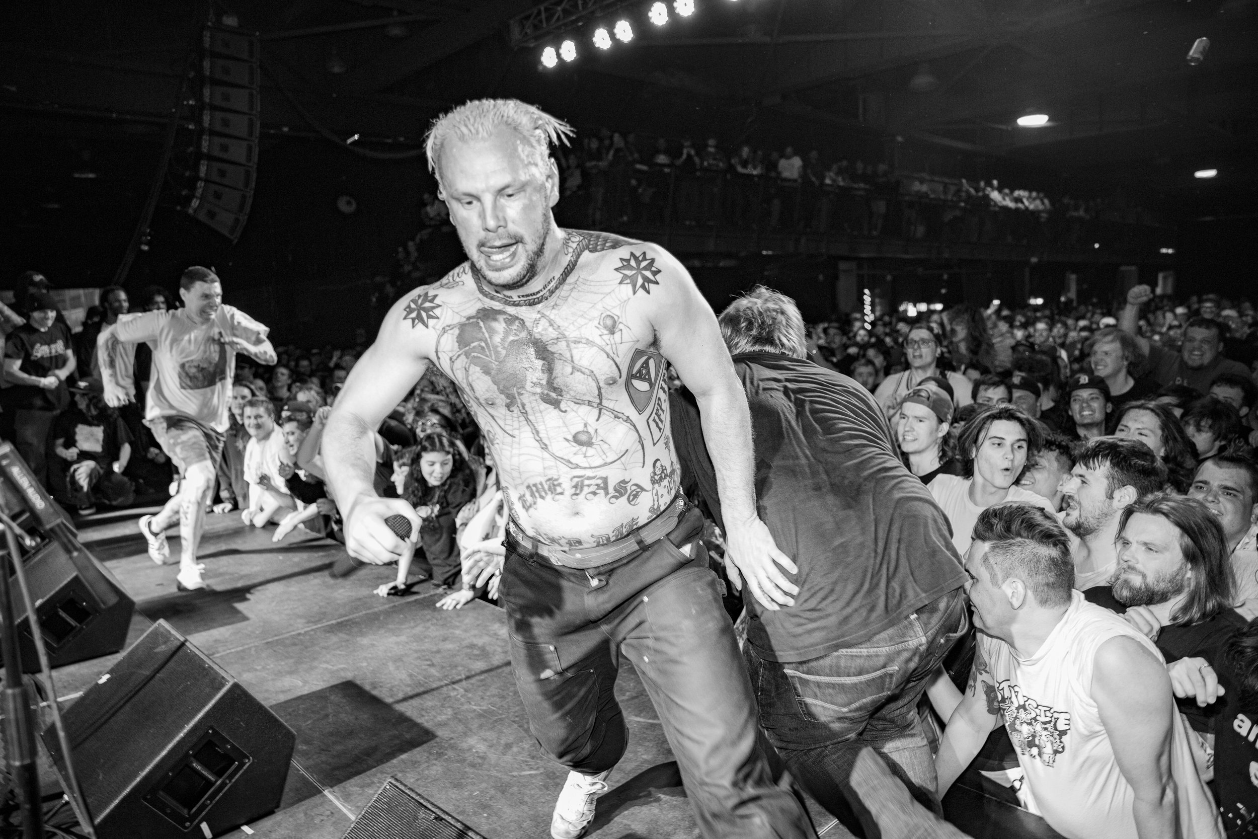 No Pressure brought so many stage dives. I took a moment to just count the stage dives for a moment, and it was laughable how many SUCCESSFUL dives there were. Made me proud, Detroit. Not too many people βlaying downβ or βWaving at people to catch themβ. After watching videos this week of other shows, it made me feel better about things in that regard.