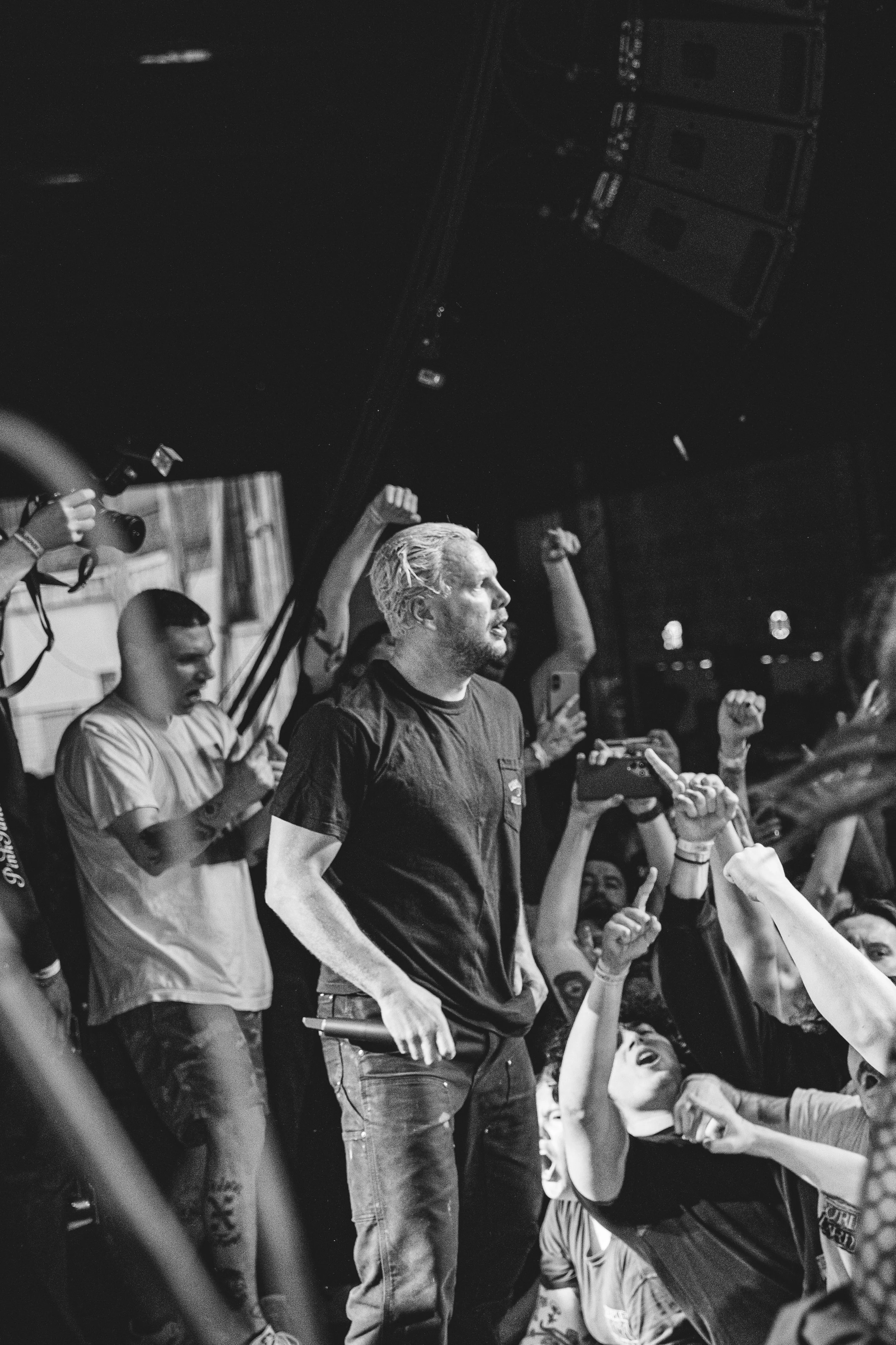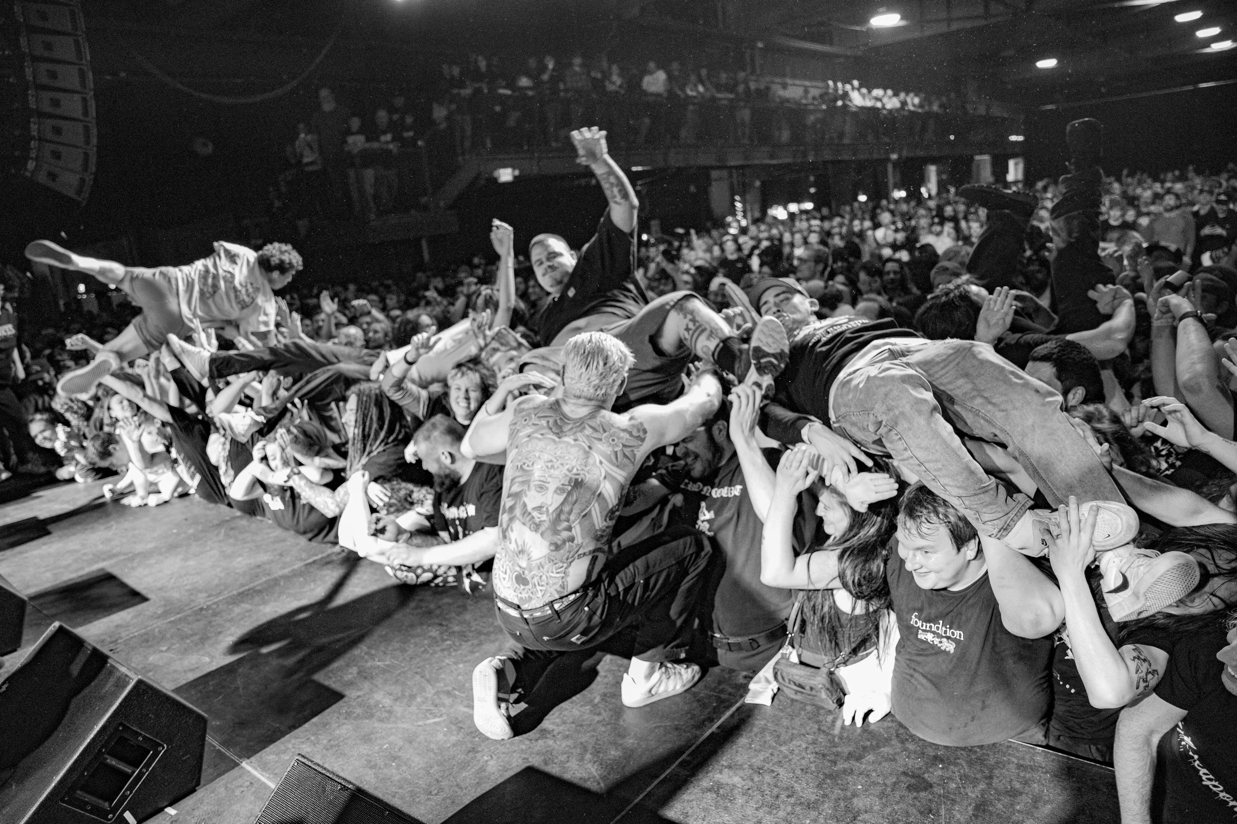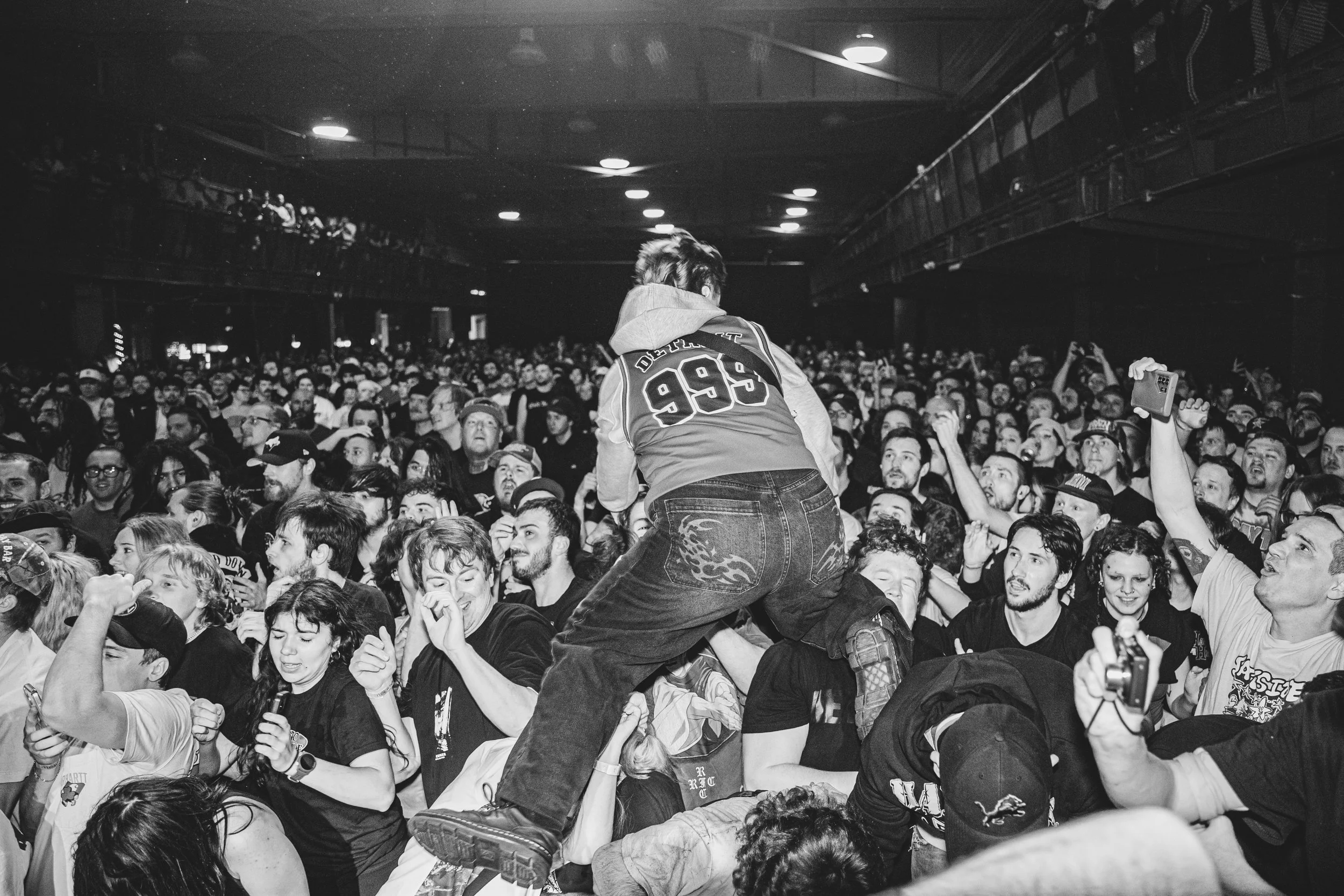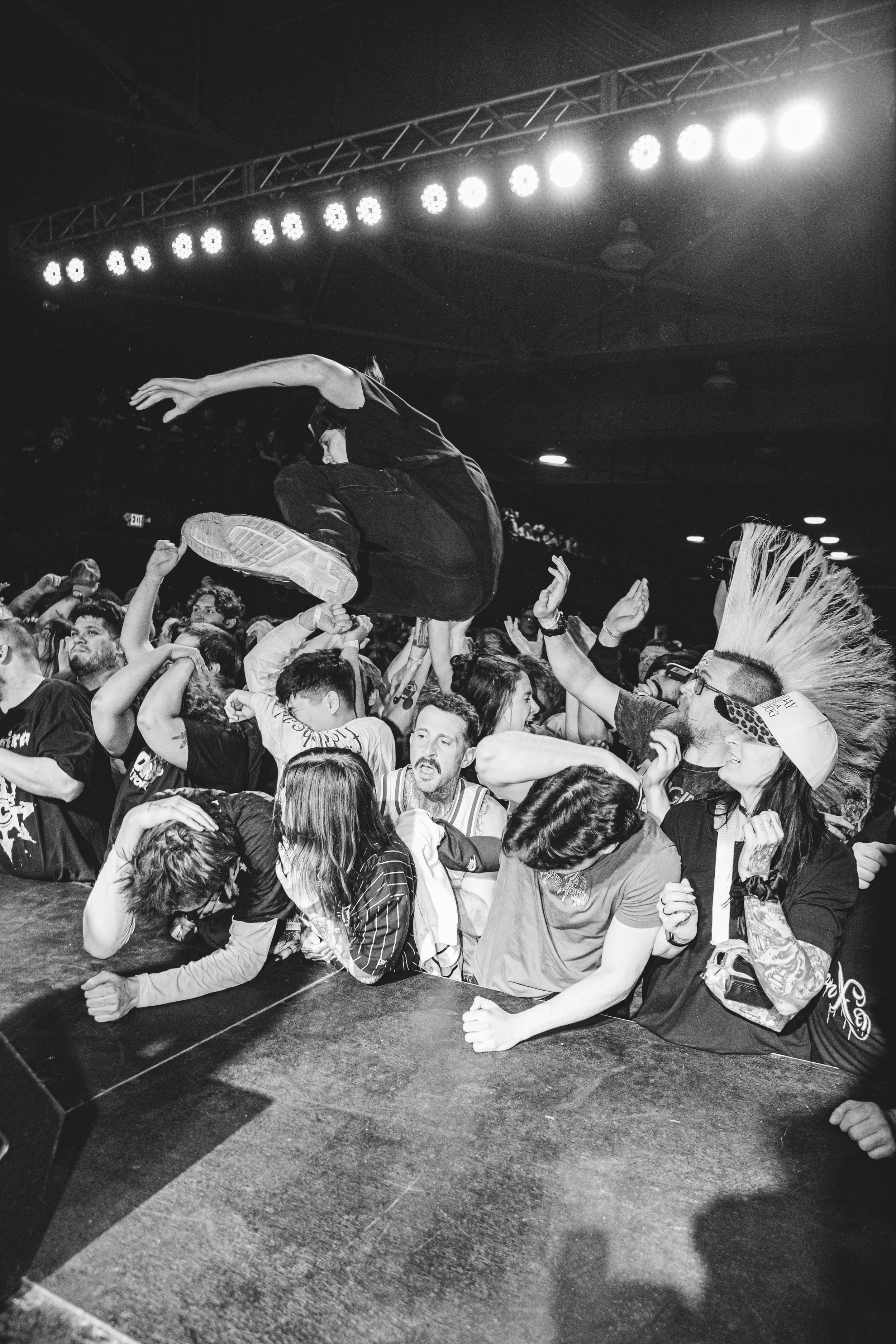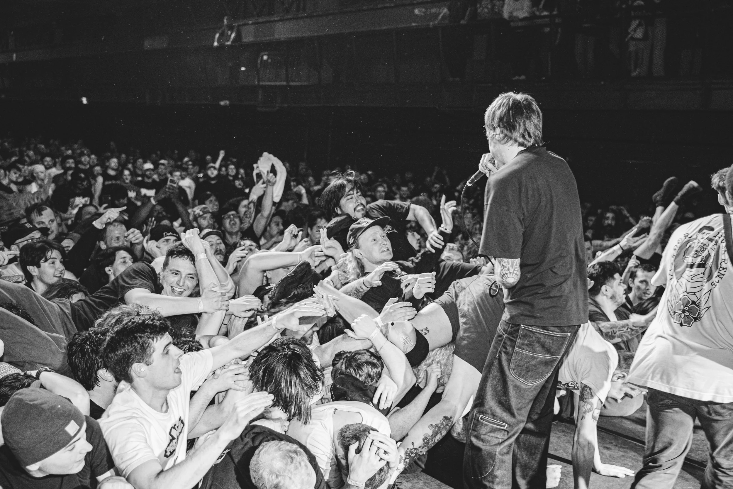 No Pressure brought so many stage dives. I took a moment to just count the stage dives for a moment, and it was laughable how many SUCCESSFUL dives there were. Made me proud, Detroit. Not too many people βlaying downβ or βWaving at people to catch themβ. After watching videos this week of other shows, it made me feel better about things in that regard.