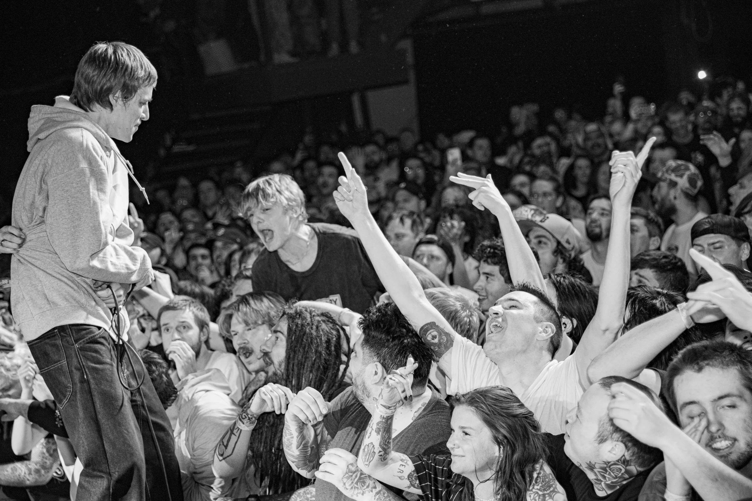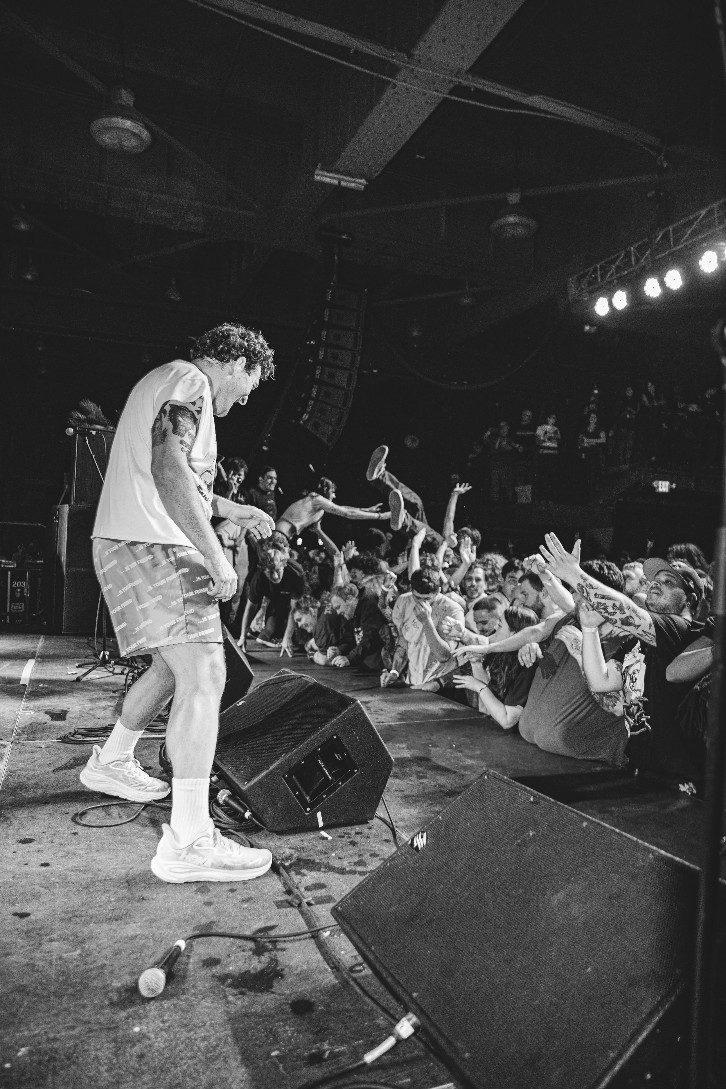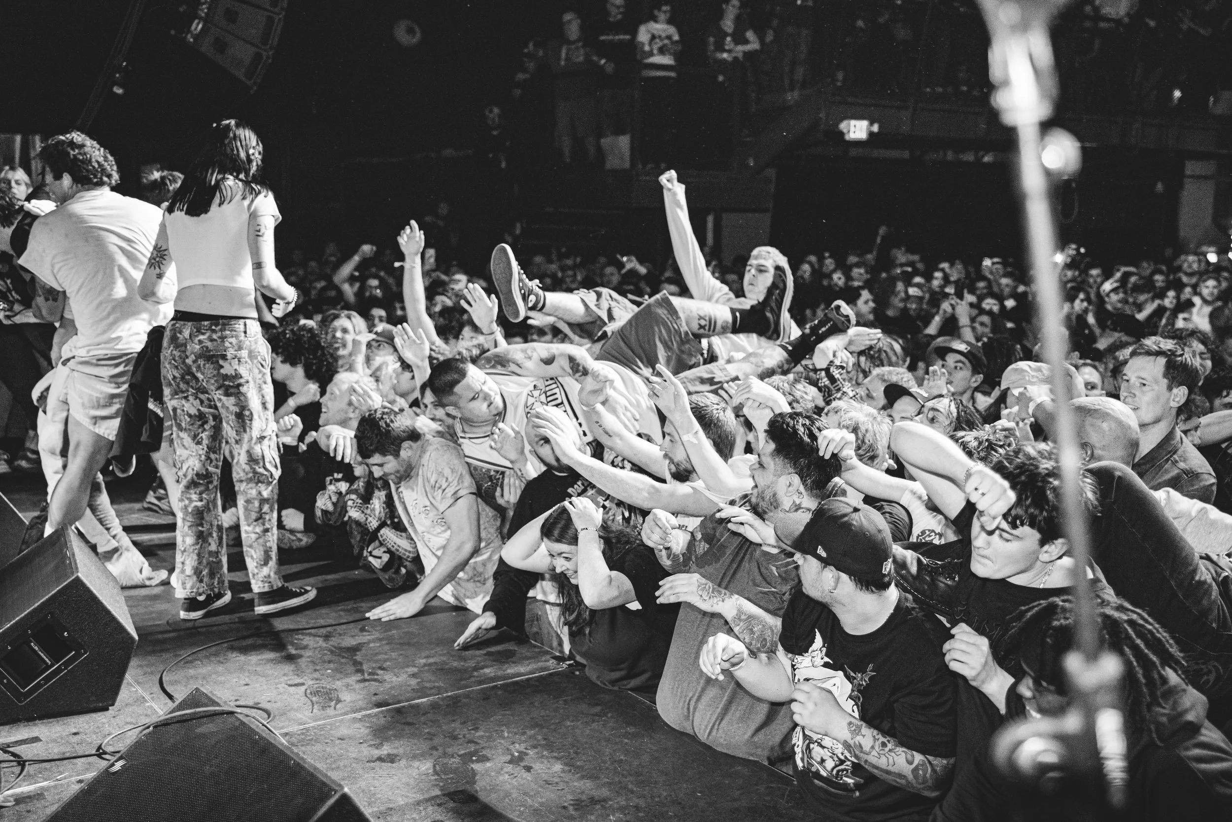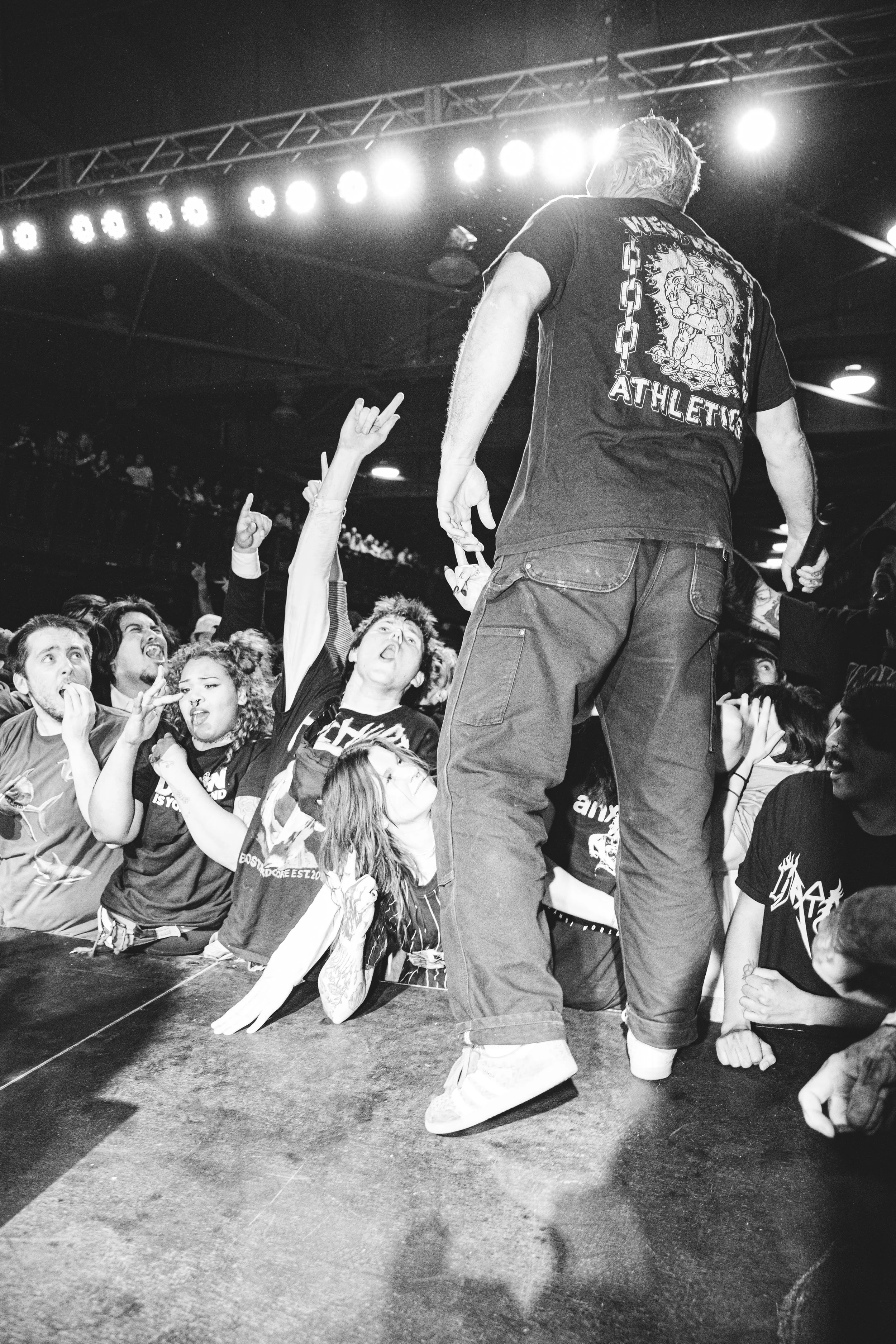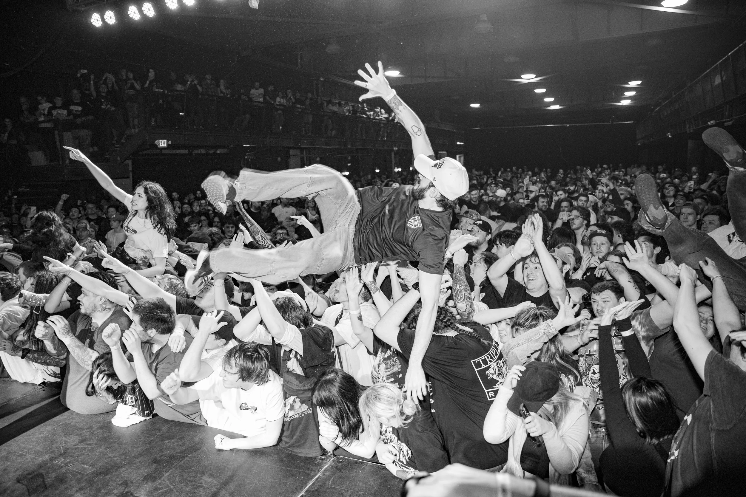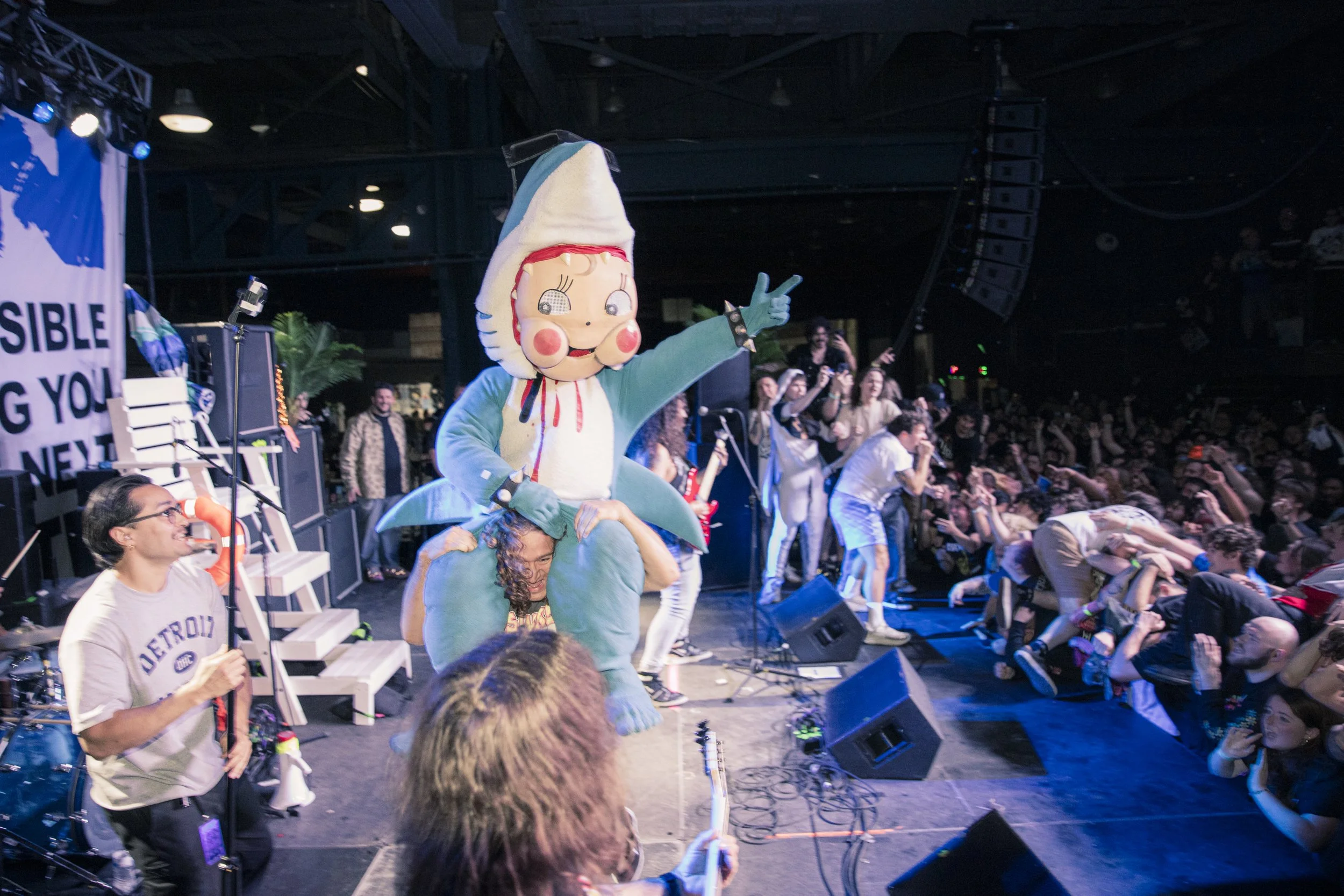 No Pressure brought so many stage dives. I took a moment to just count the stage dives for a moment, and it was laughable how many SUCCESSFUL dives there were. Made me proud, Detroit. Not too many people βlaying downβ or βWaving at people to catch themβ. After watching videos this week of other shows, it made me feel better about things in that regard.