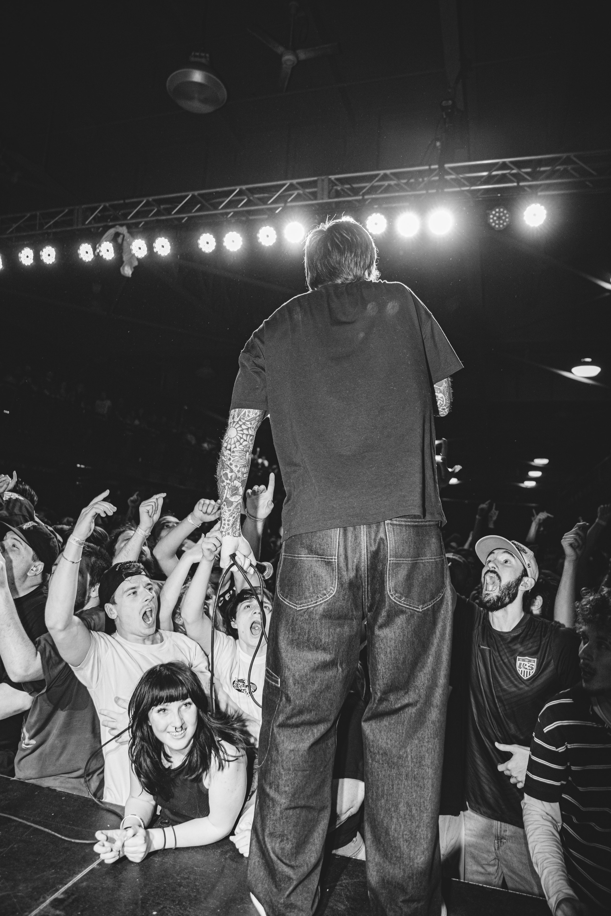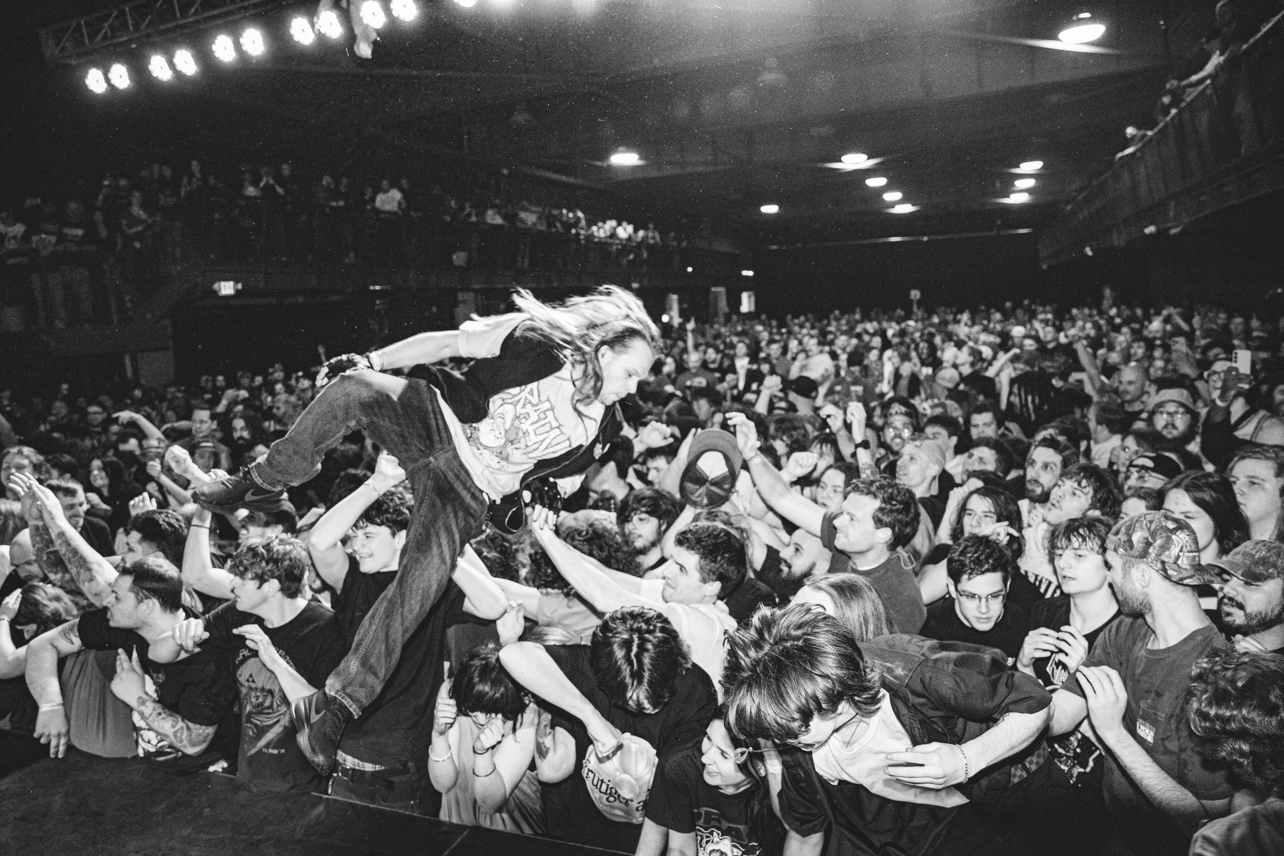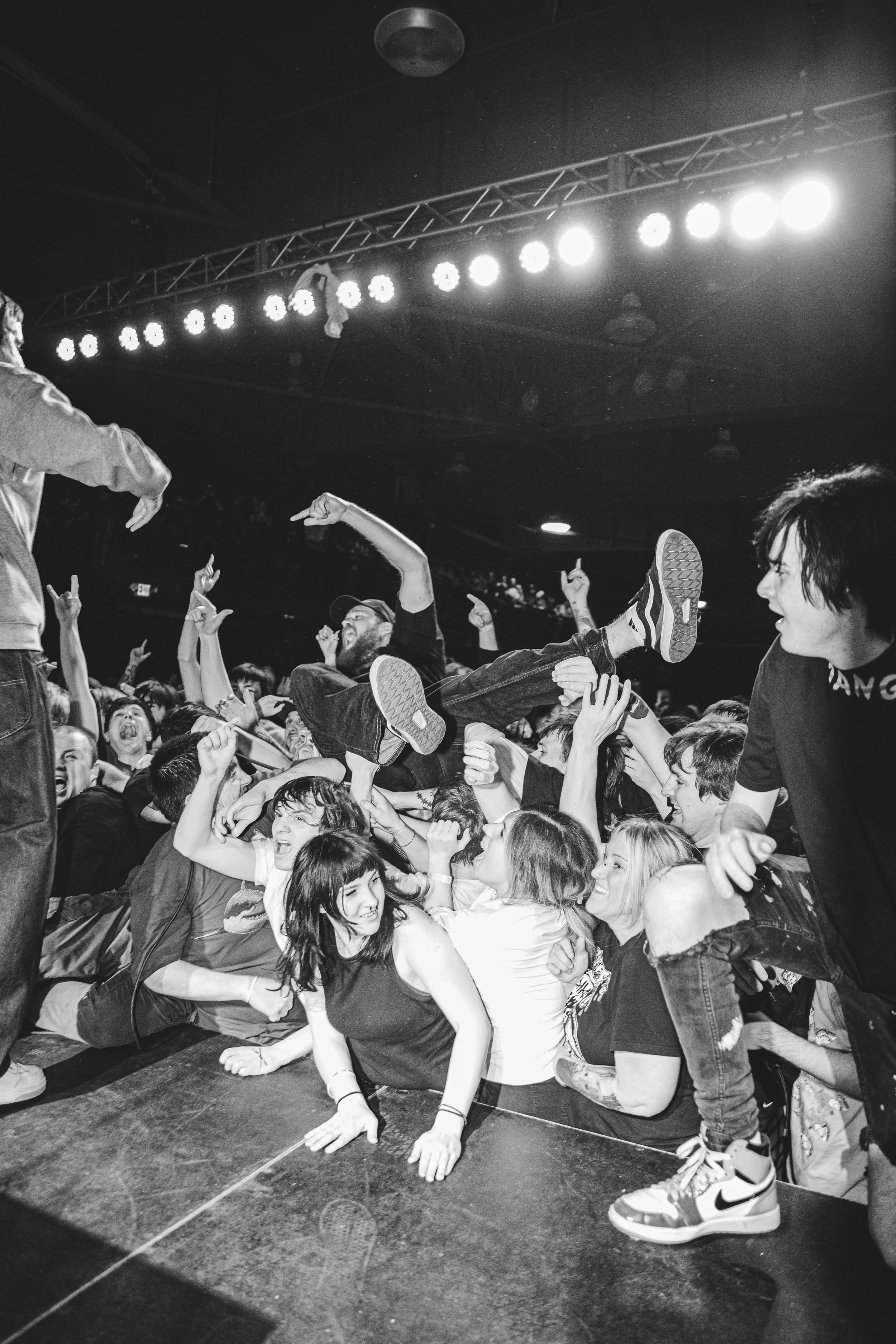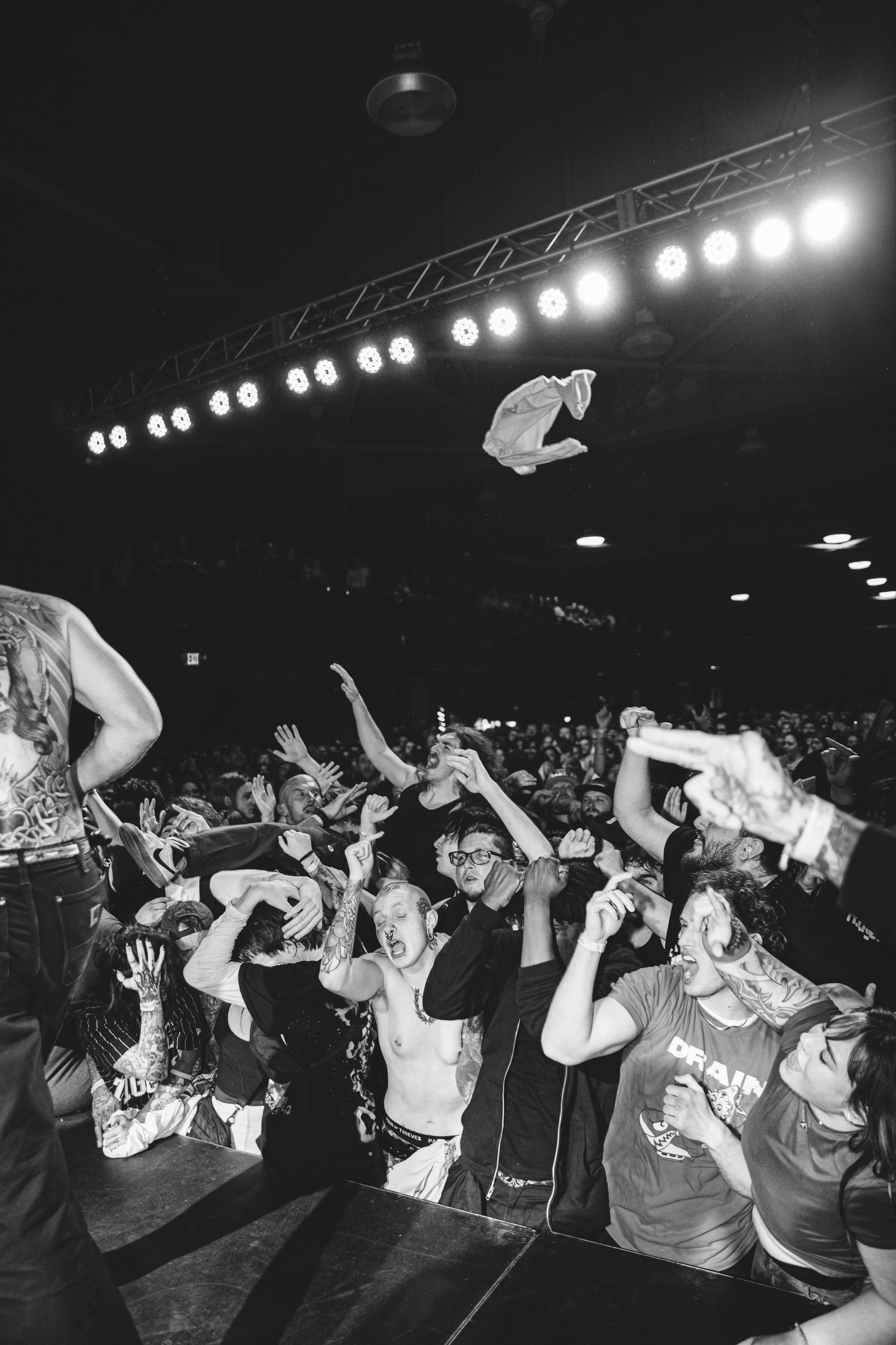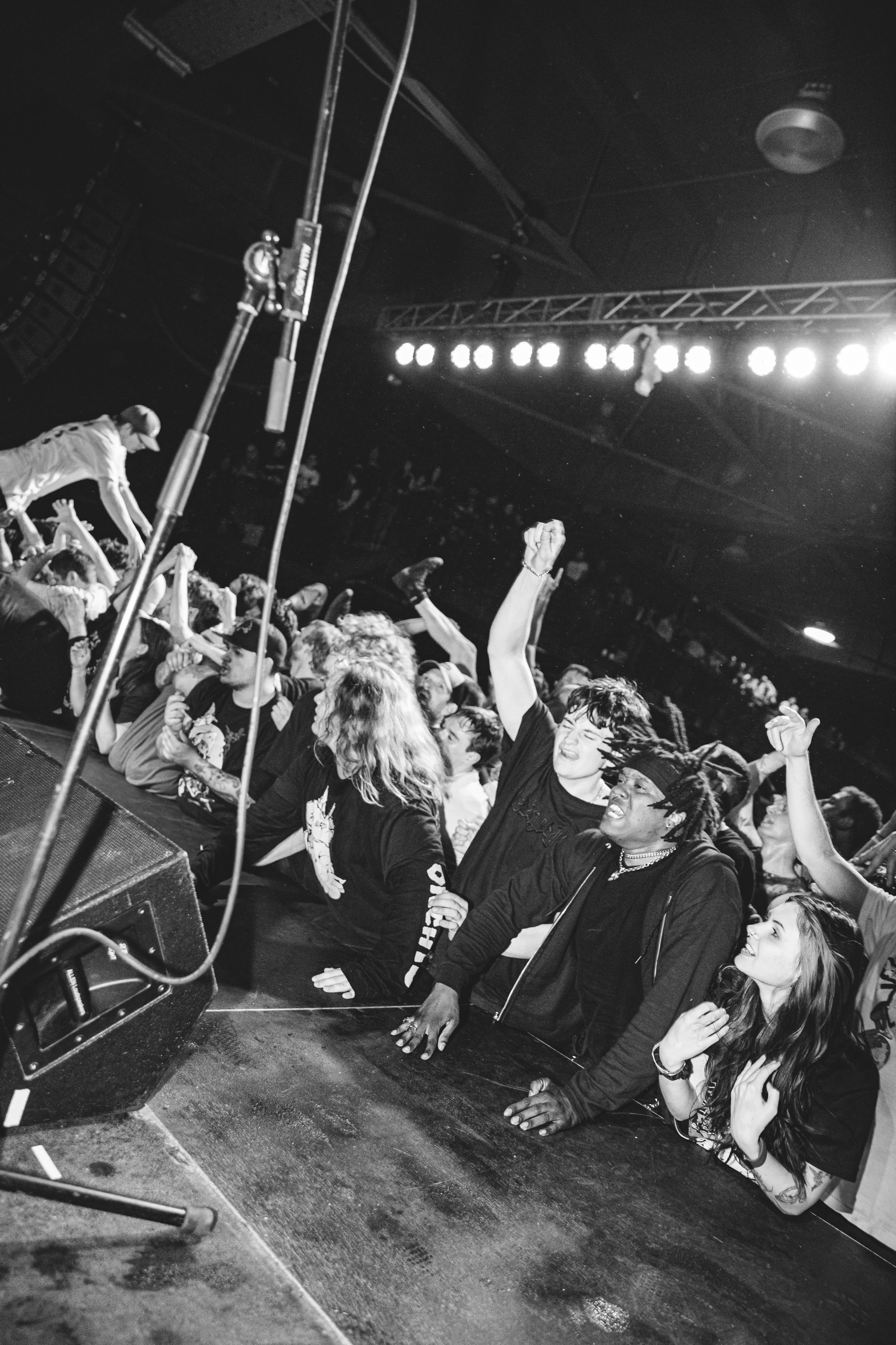 No Pressure brought so many stage dives. I took a moment to just count the stage dives for a moment, and it was laughable how many SUCCESSFUL dives there were. Made me proud, Detroit. Not too many people βlaying downβ or βWaving at people to catch themβ. After watching videos this week of other shows, it made me feel better about things in that regard.