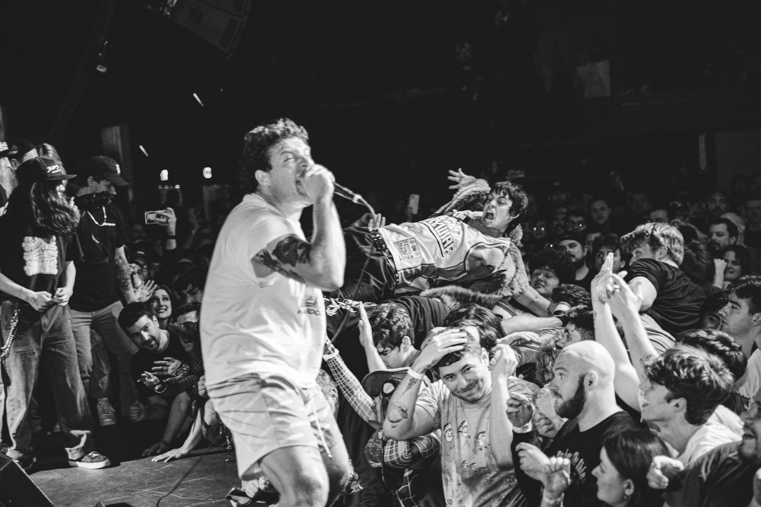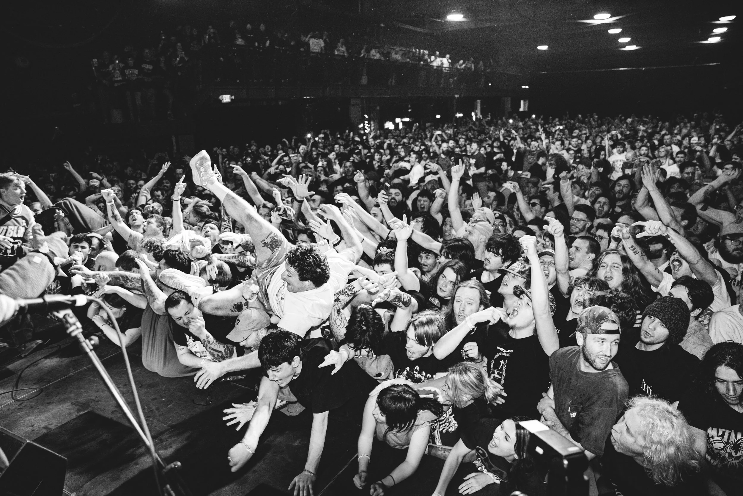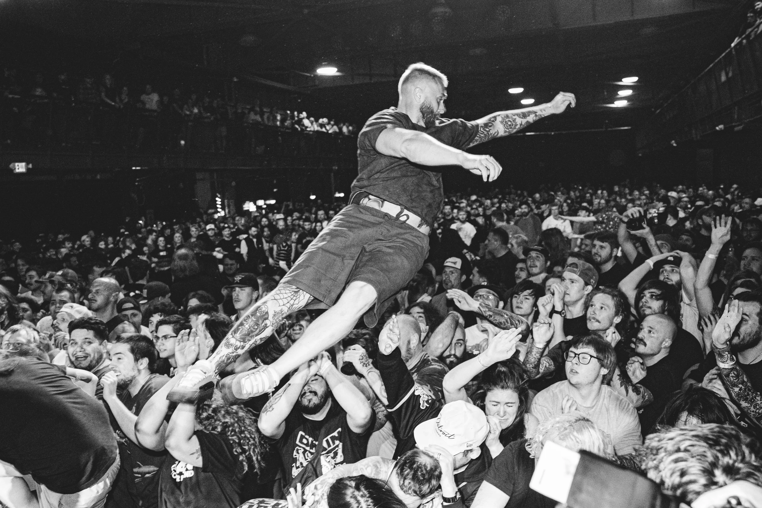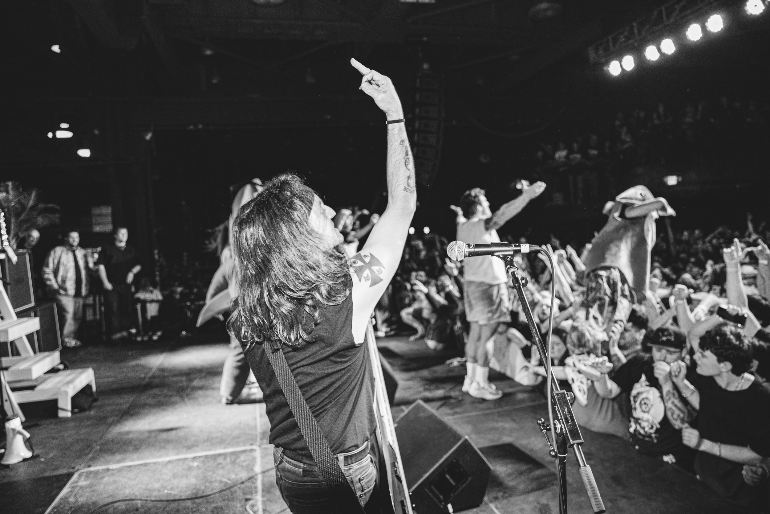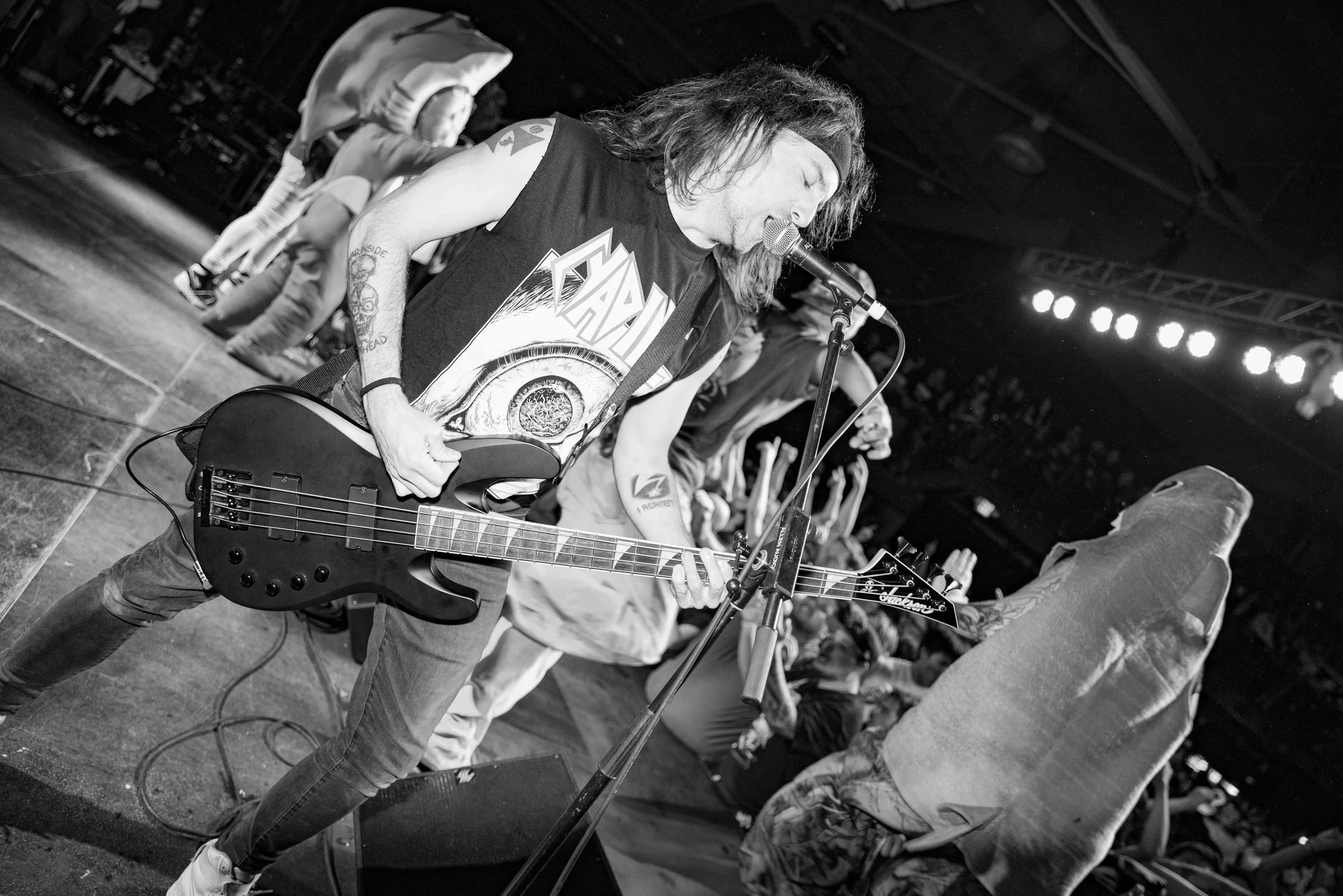 No Pressure brought so many stage dives. I took a moment to just count the stage dives for a moment, and it was laughable how many SUCCESSFUL dives there were. Made me proud, Detroit. Not too many people βlaying downβ or βWaving at people to catch themβ. After watching videos this week of other shows, it made me feel better about things in that regard.