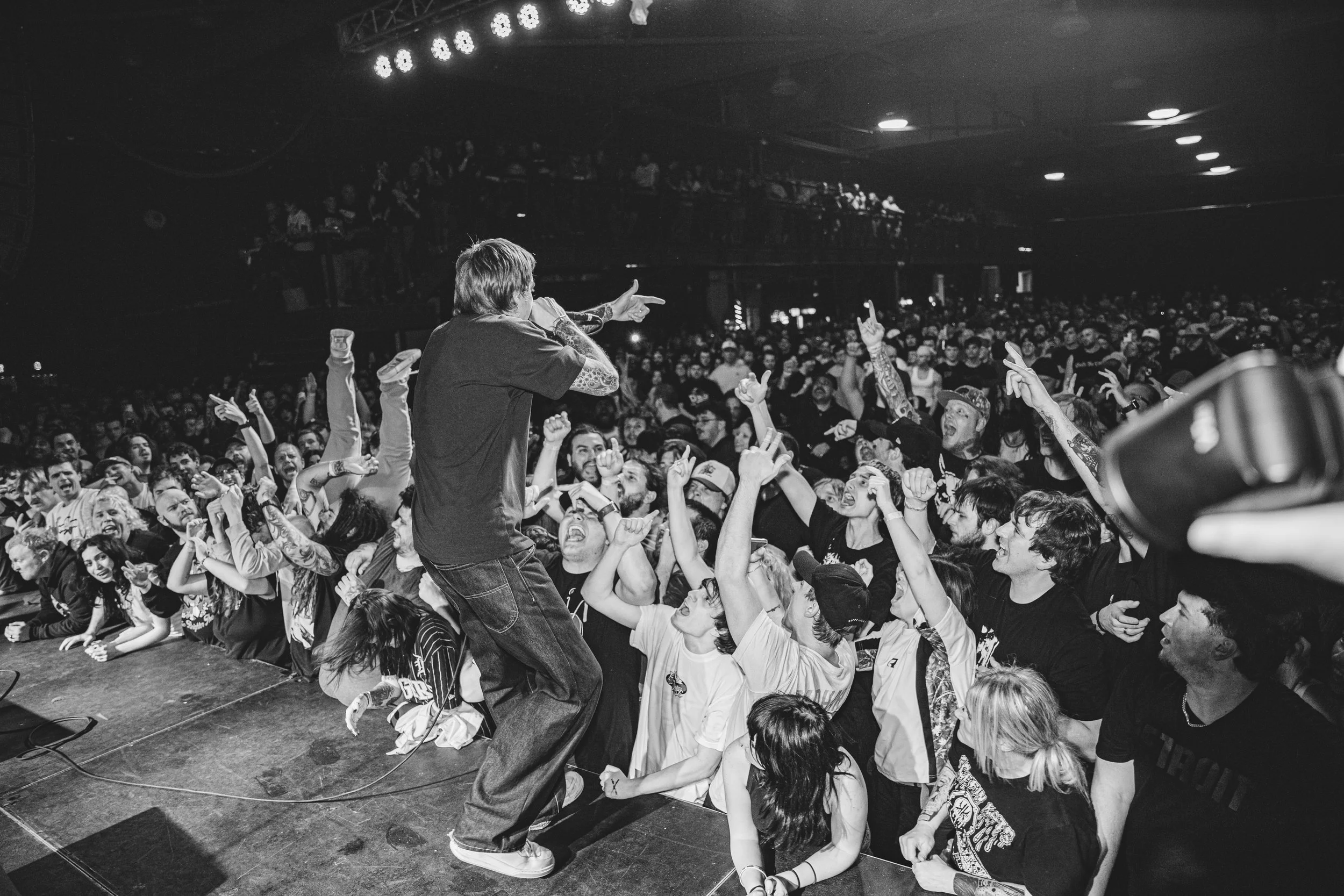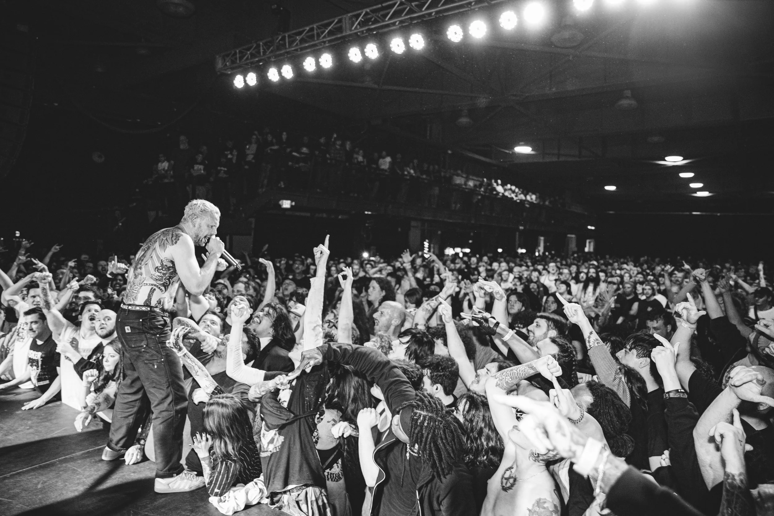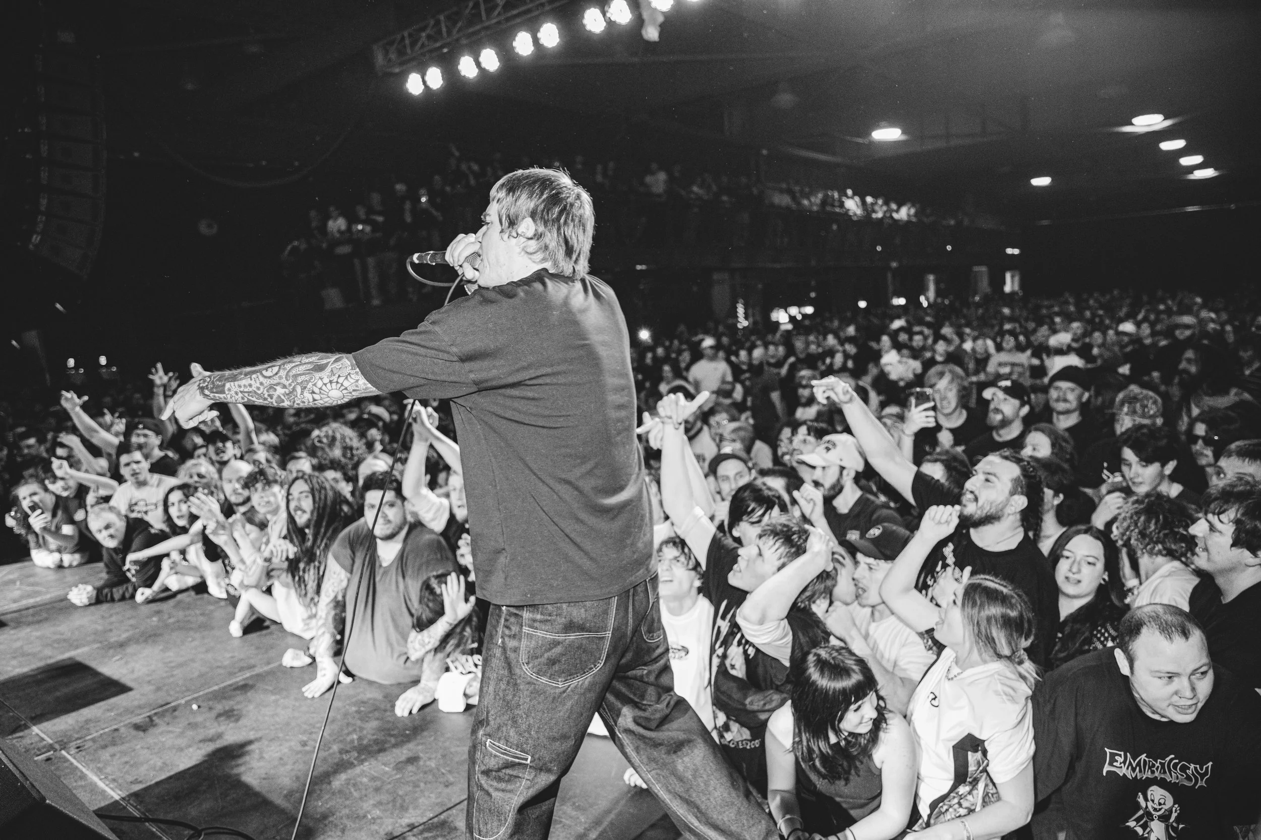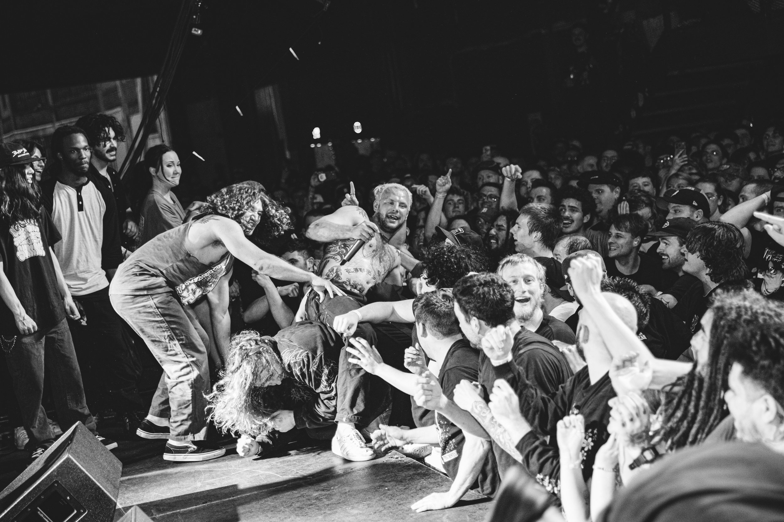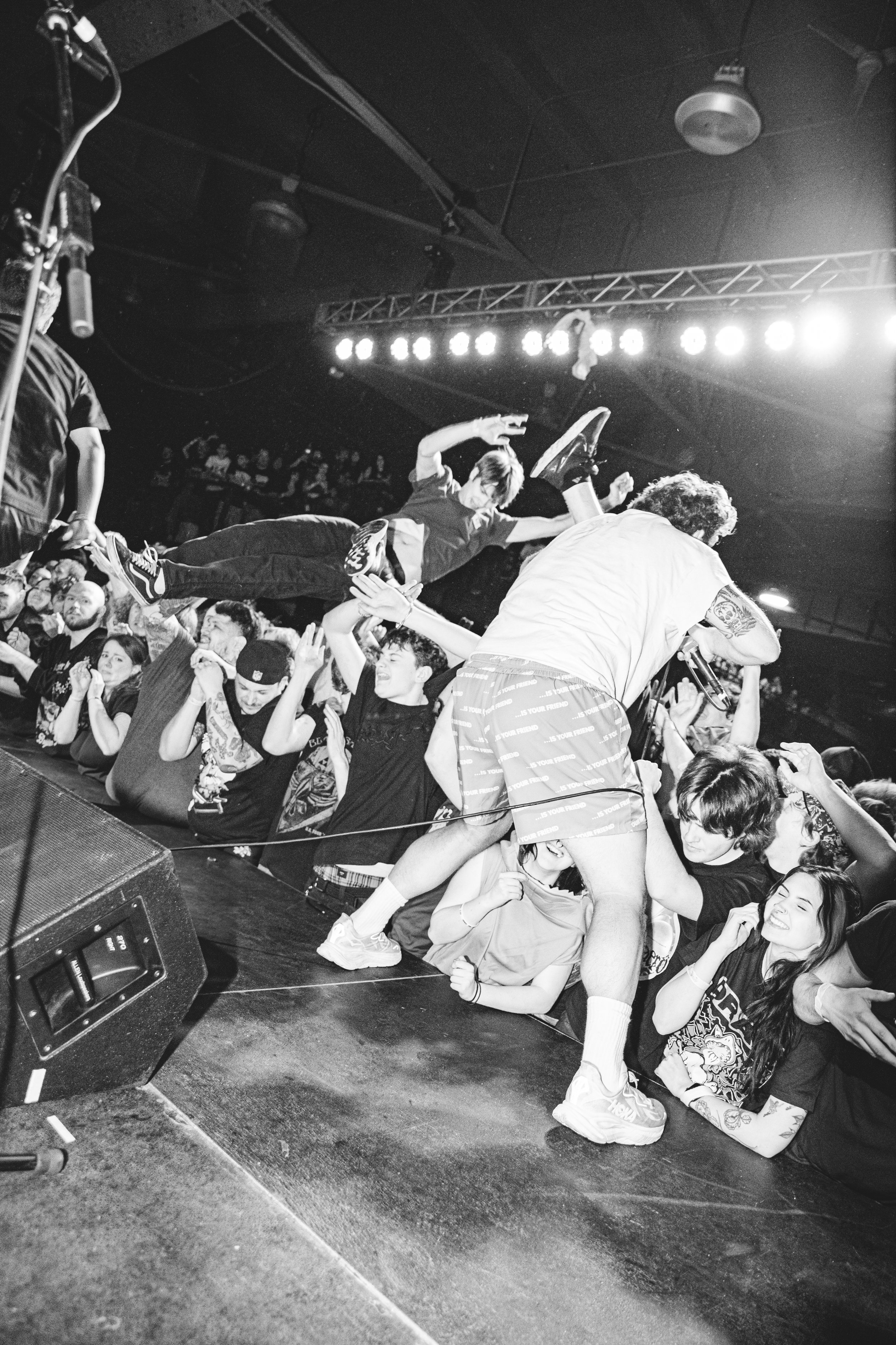 No Pressure brought so many stage dives. I took a moment to just count the stage dives for a moment, and it was laughable how many SUCCESSFUL dives there were. Made me proud, Detroit. Not too many people βlaying downβ or βWaving at people to catch themβ. After watching videos this week of other shows, it made me feel better about things in that regard.