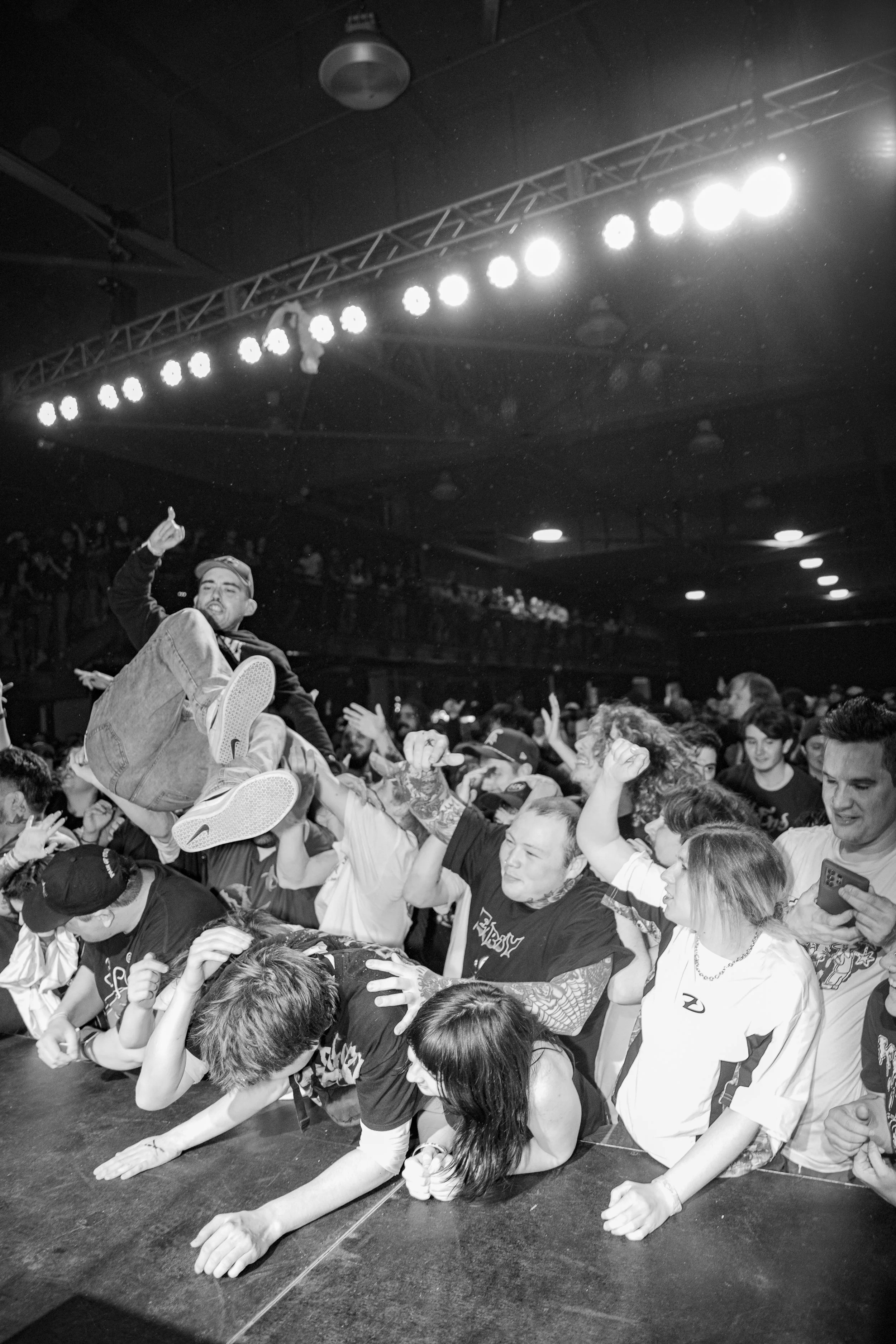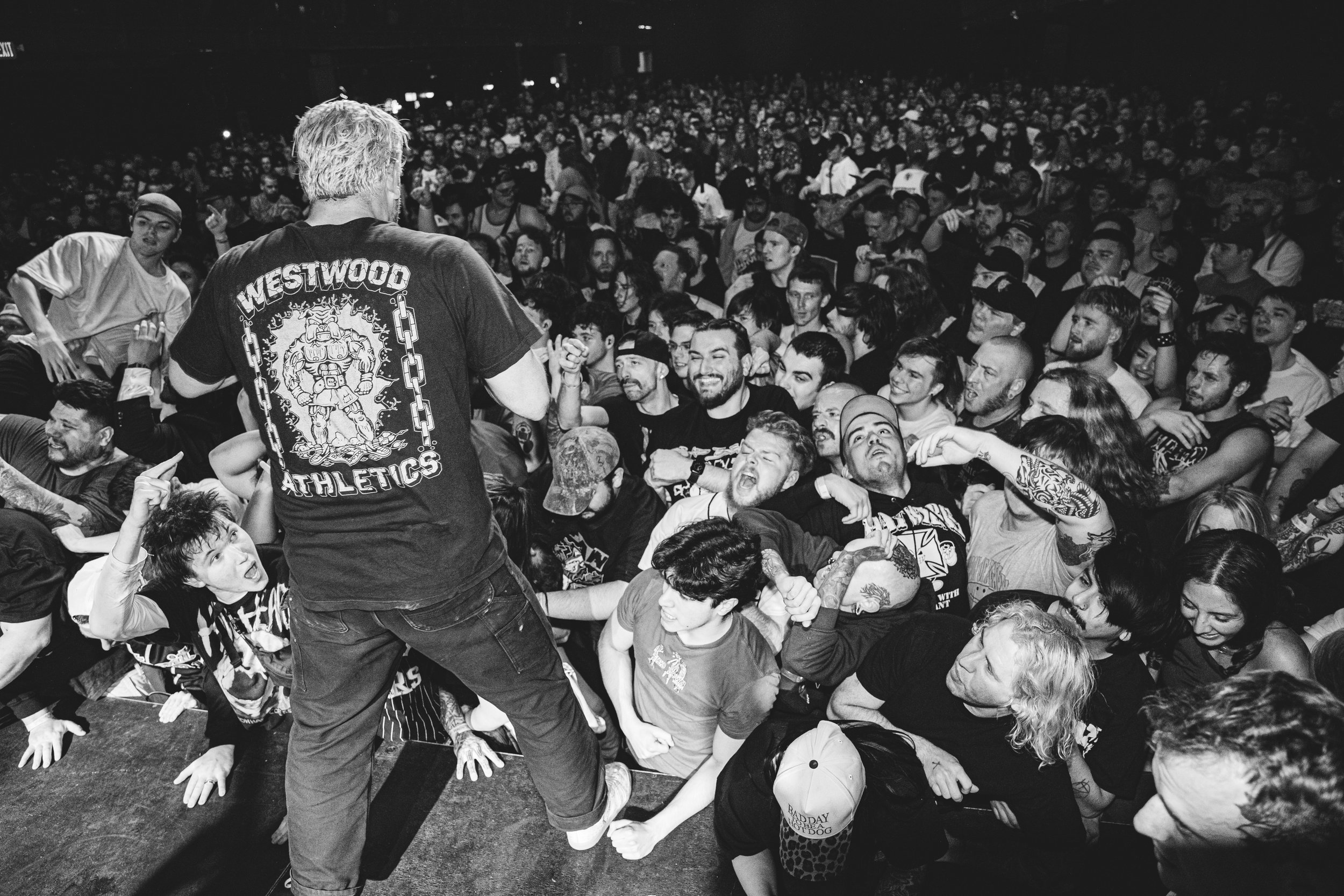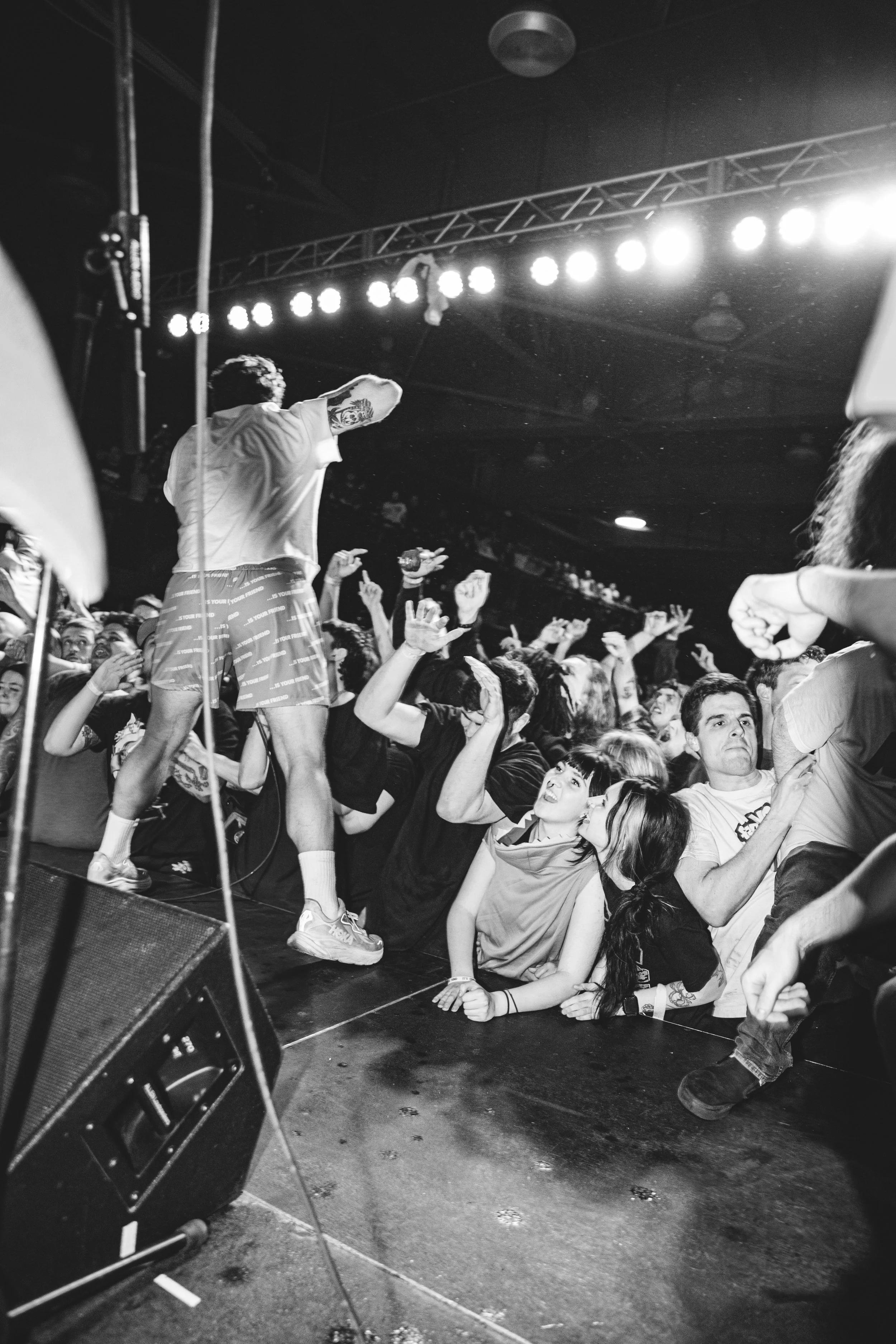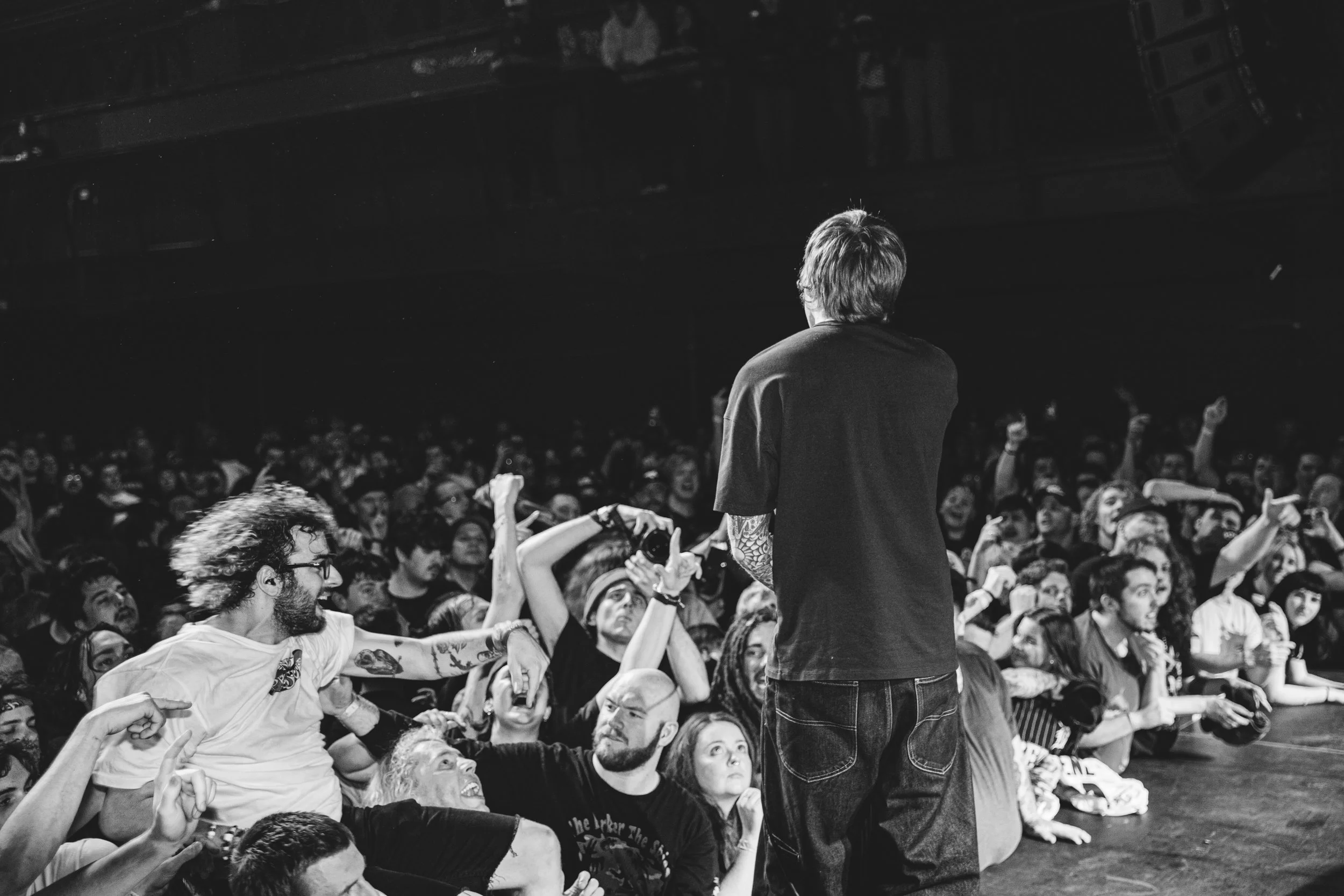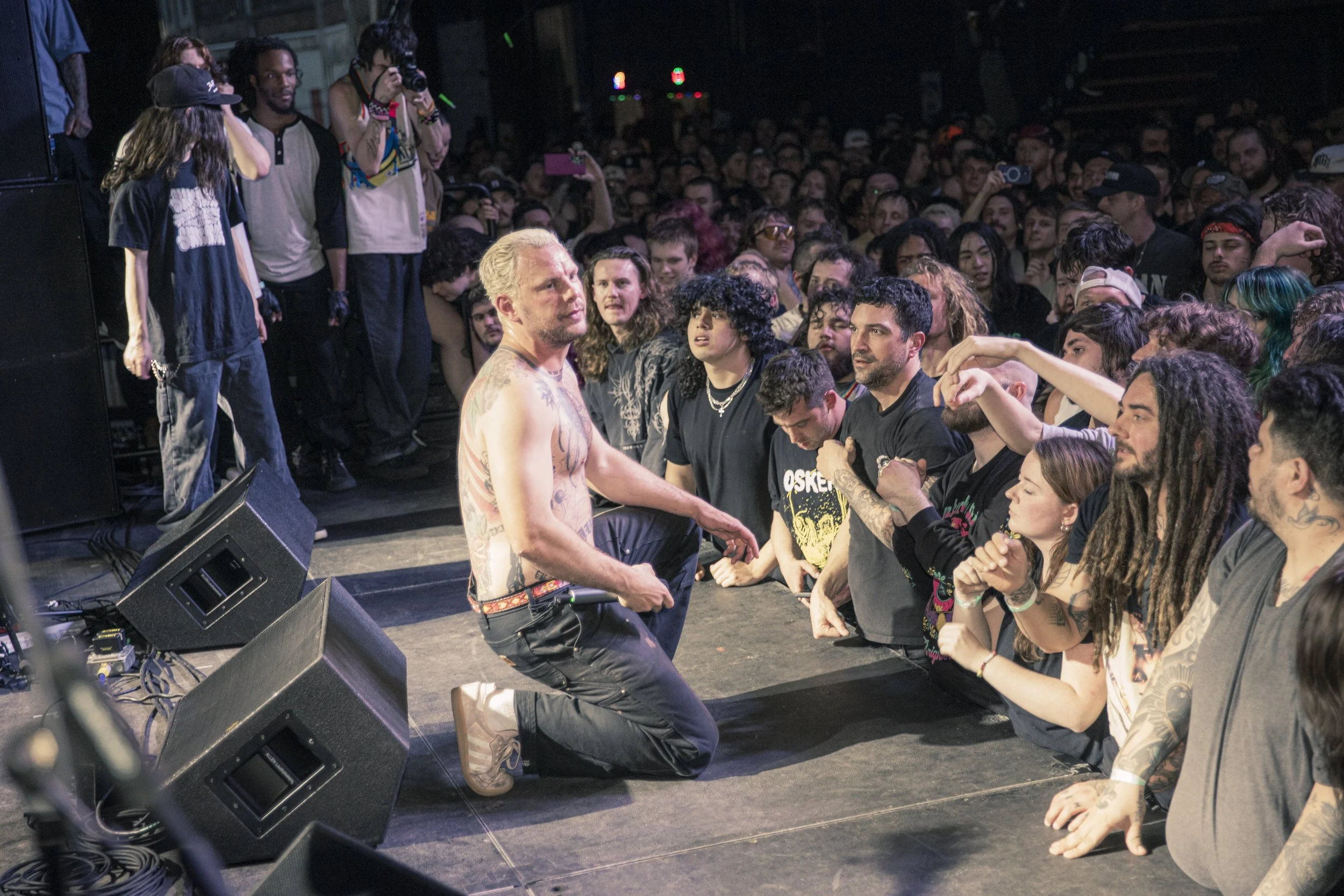 No Pressure brought so many stage dives. I took a moment to just count the stage dives for a moment, and it was laughable how many SUCCESSFUL dives there were. Made me proud, Detroit. Not too many people βlaying downβ or βWaving at people to catch themβ. After watching videos this week of other shows, it made me feel better about things in that regard.