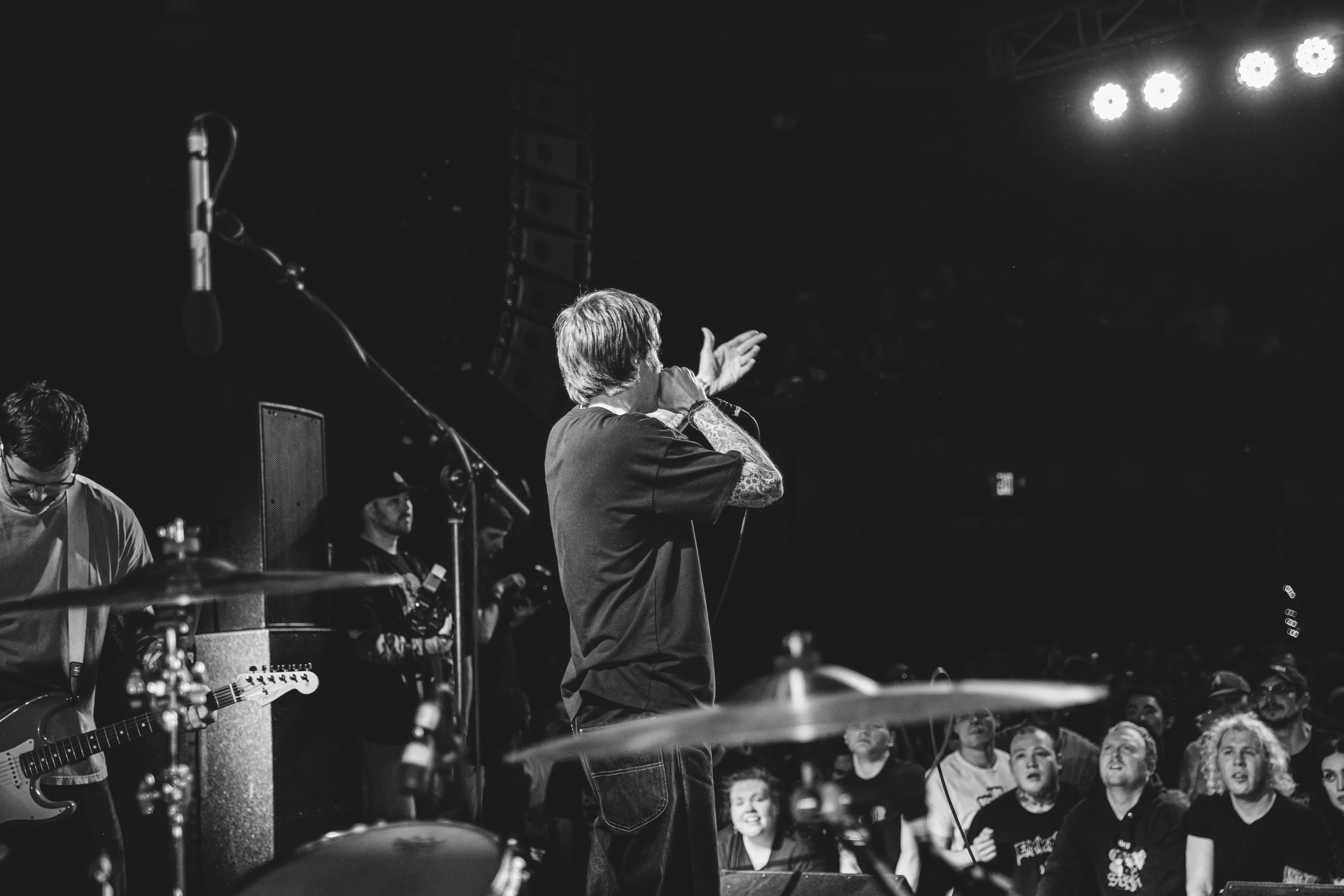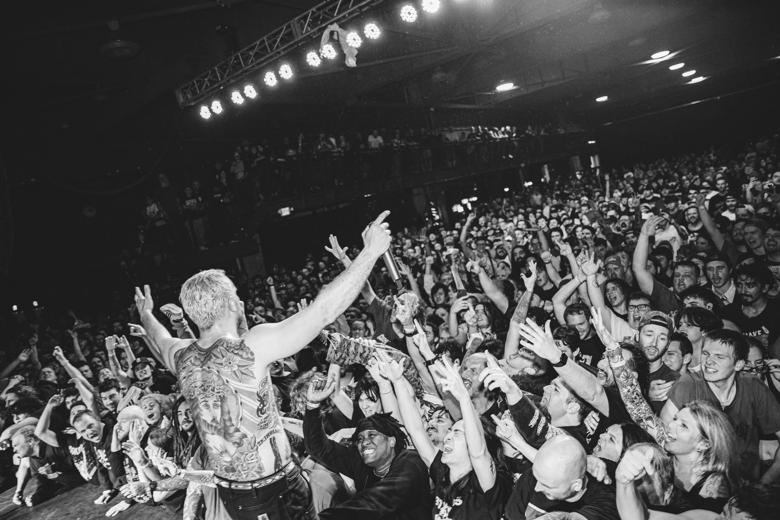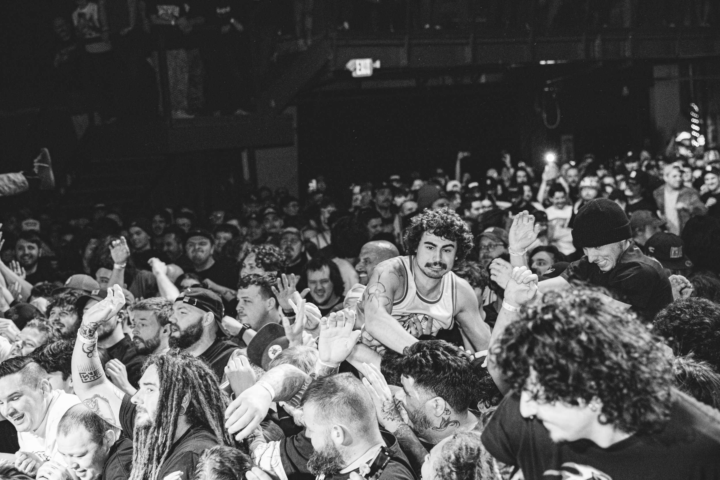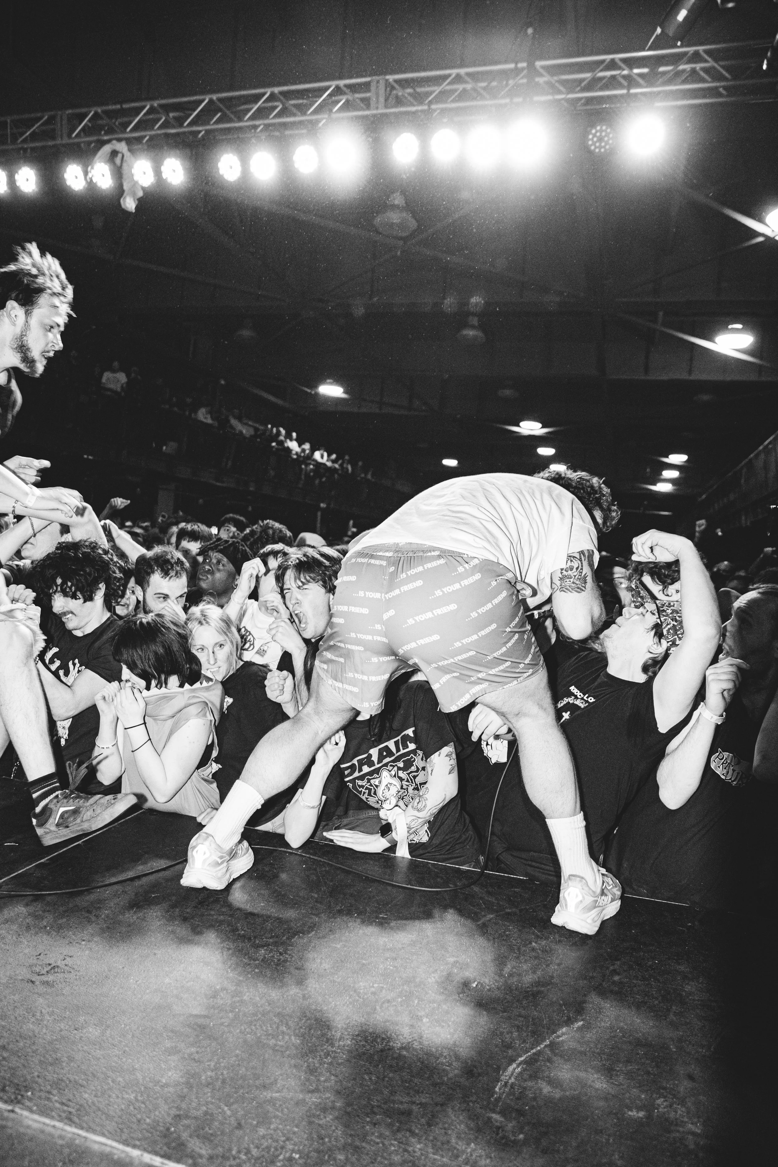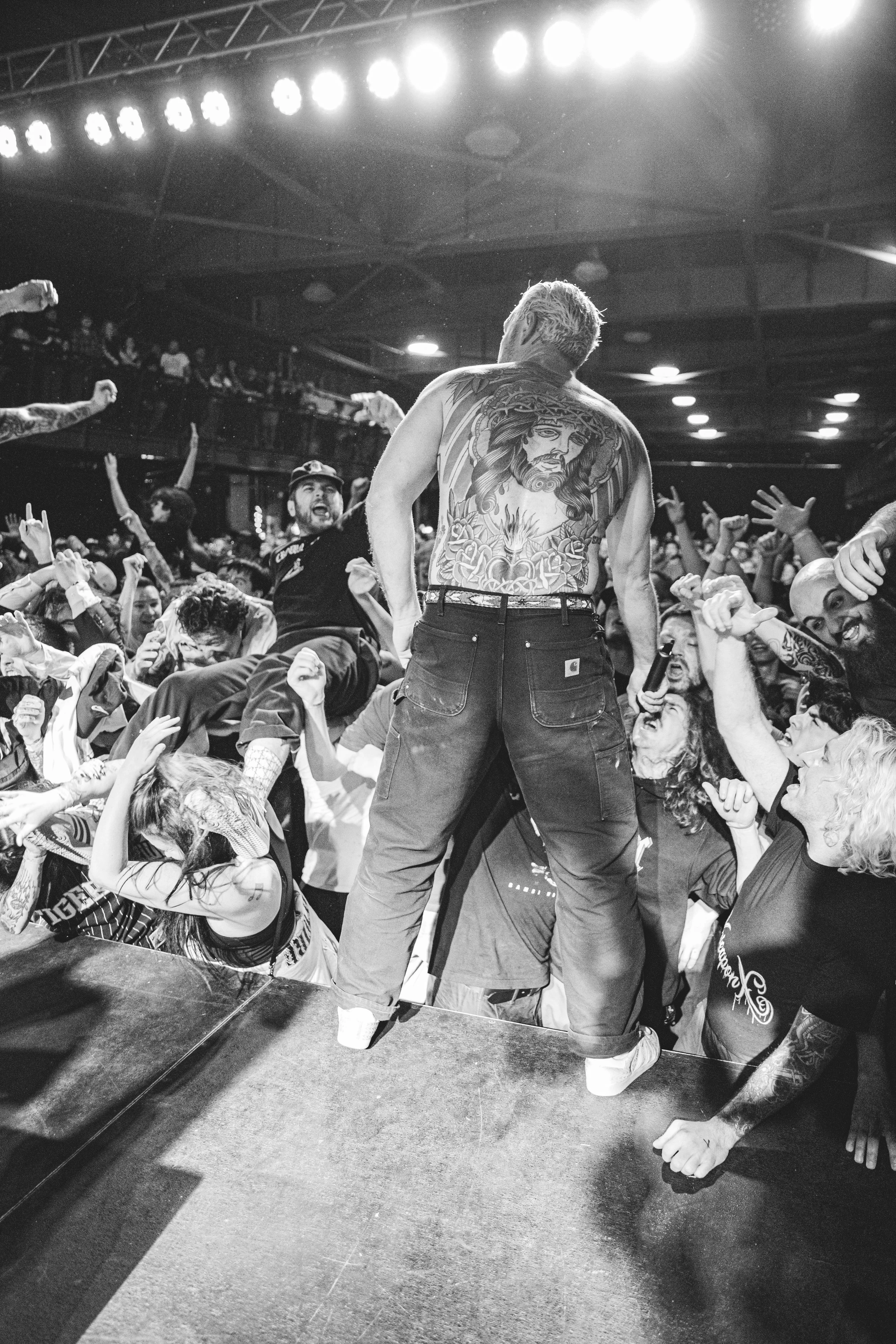 No Pressure brought so many stage dives. I took a moment to just count the stage dives for a moment, and it was laughable how many SUCCESSFUL dives there were. Made me proud, Detroit. Not too many people βlaying downβ or βWaving at people to catch themβ. After watching videos this week of other shows, it made me feel better about things in that regard.