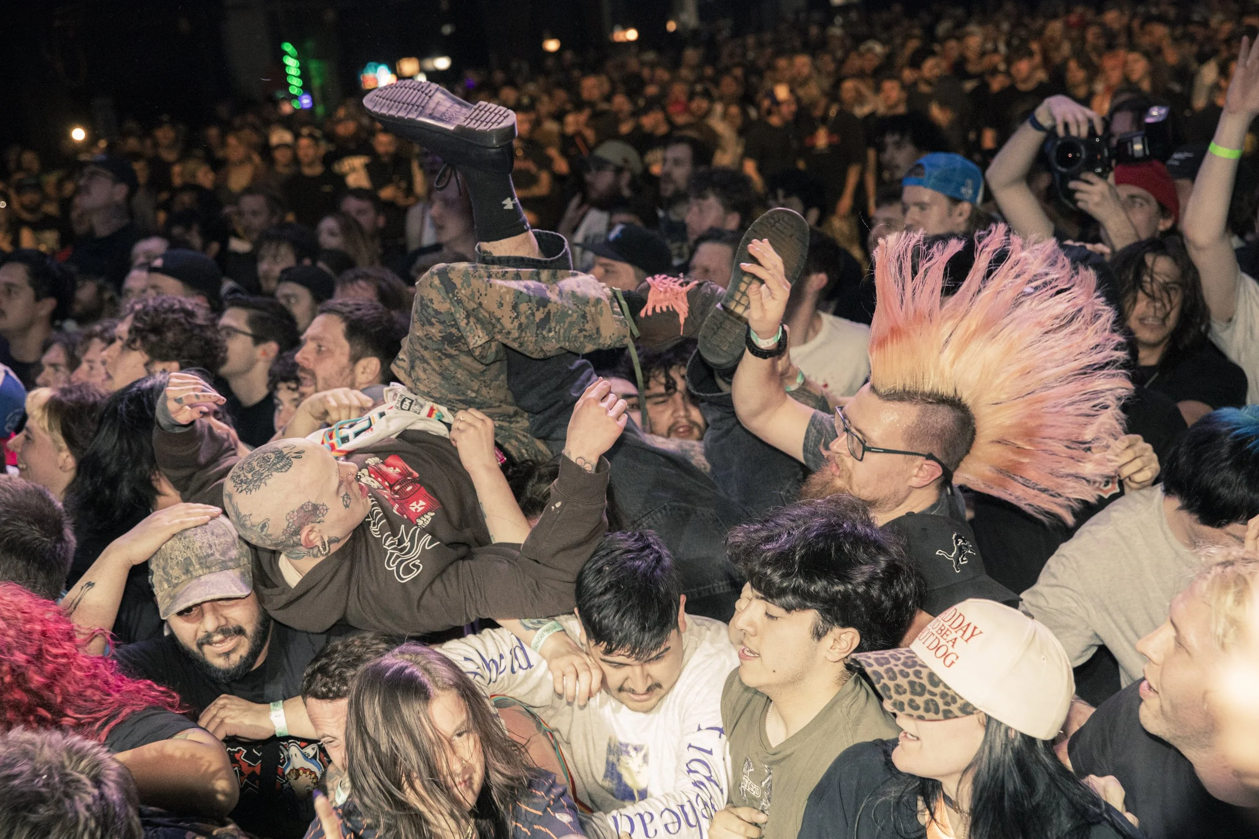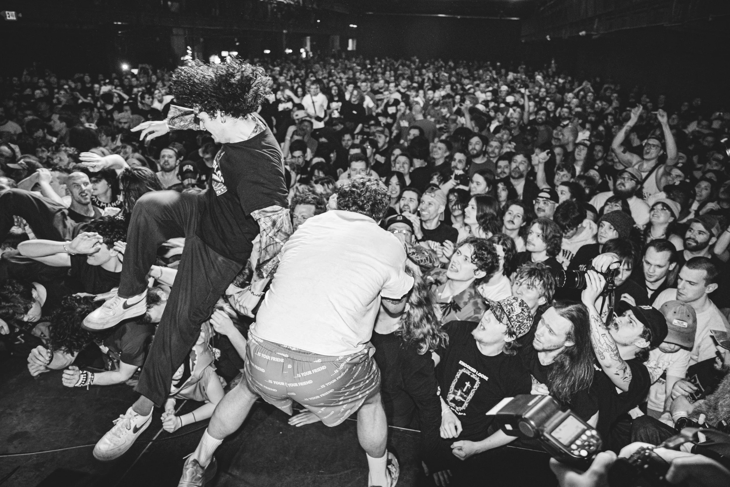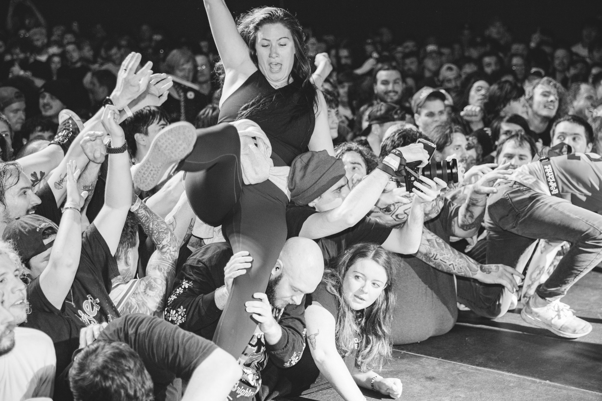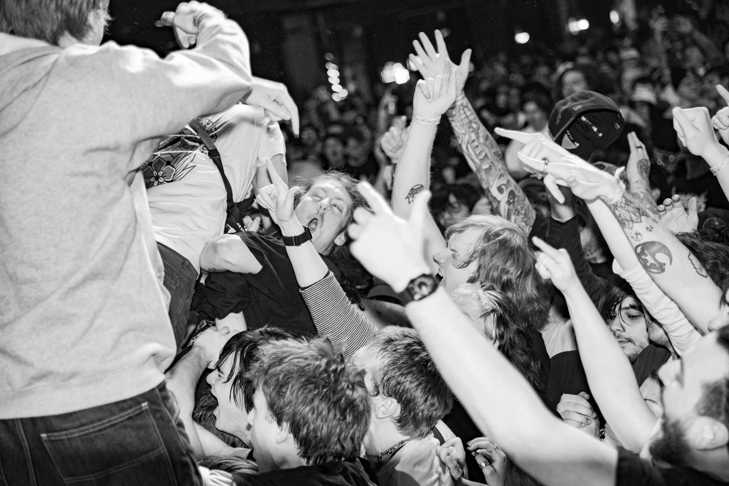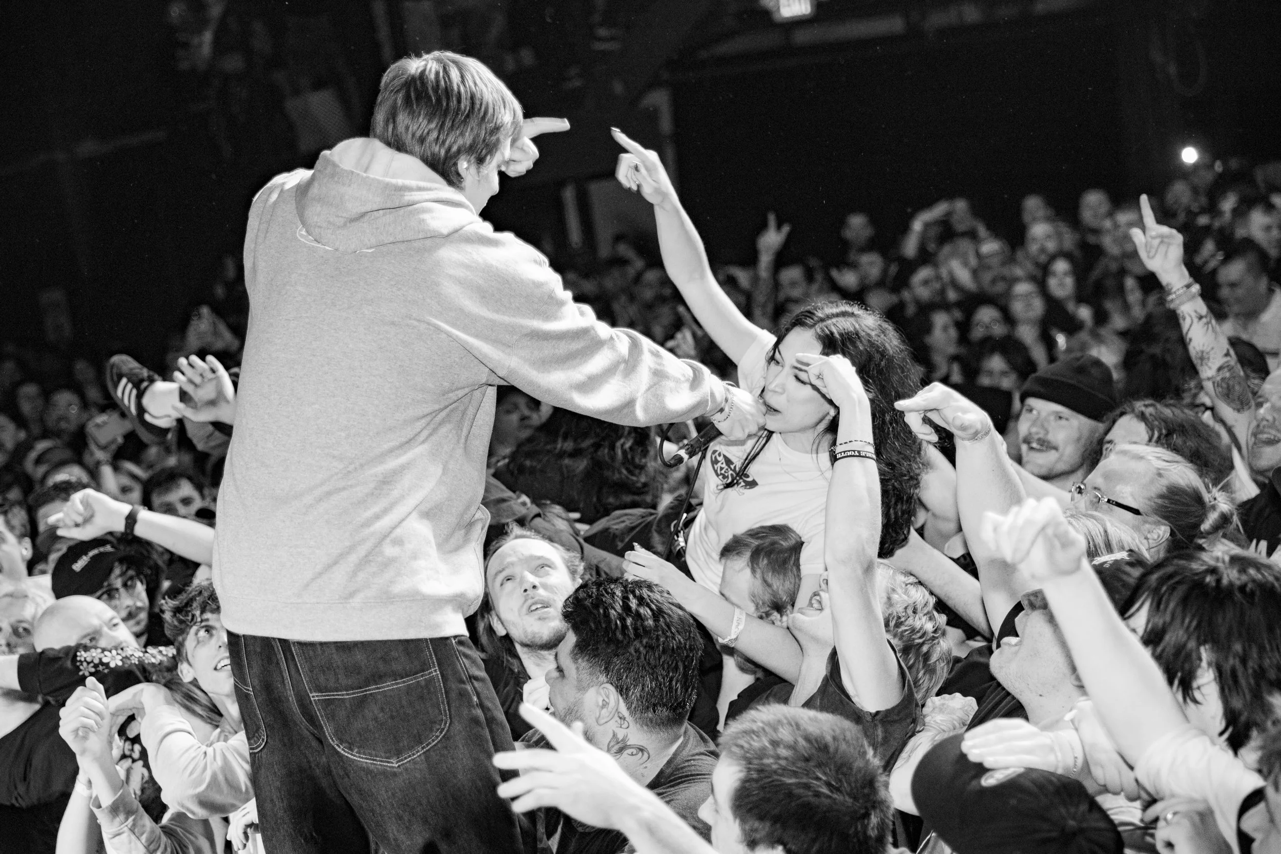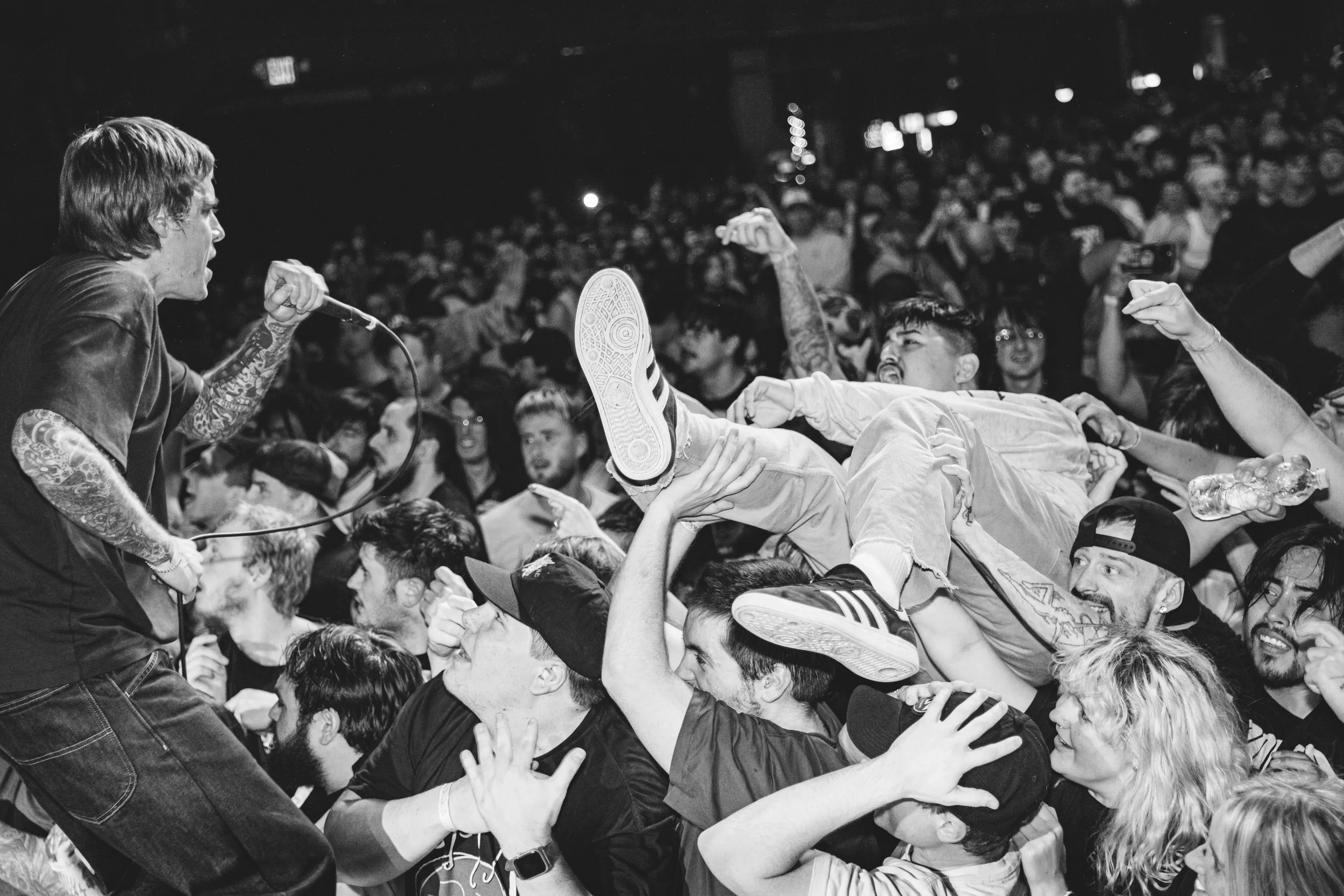 No Pressure brought so many stage dives. I took a moment to just count the stage dives for a moment, and it was laughable how many SUCCESSFUL dives there were. Made me proud, Detroit. Not too many people βlaying downβ or βWaving at people to catch themβ. After watching videos this week of other shows, it made me feel better about things in that regard.