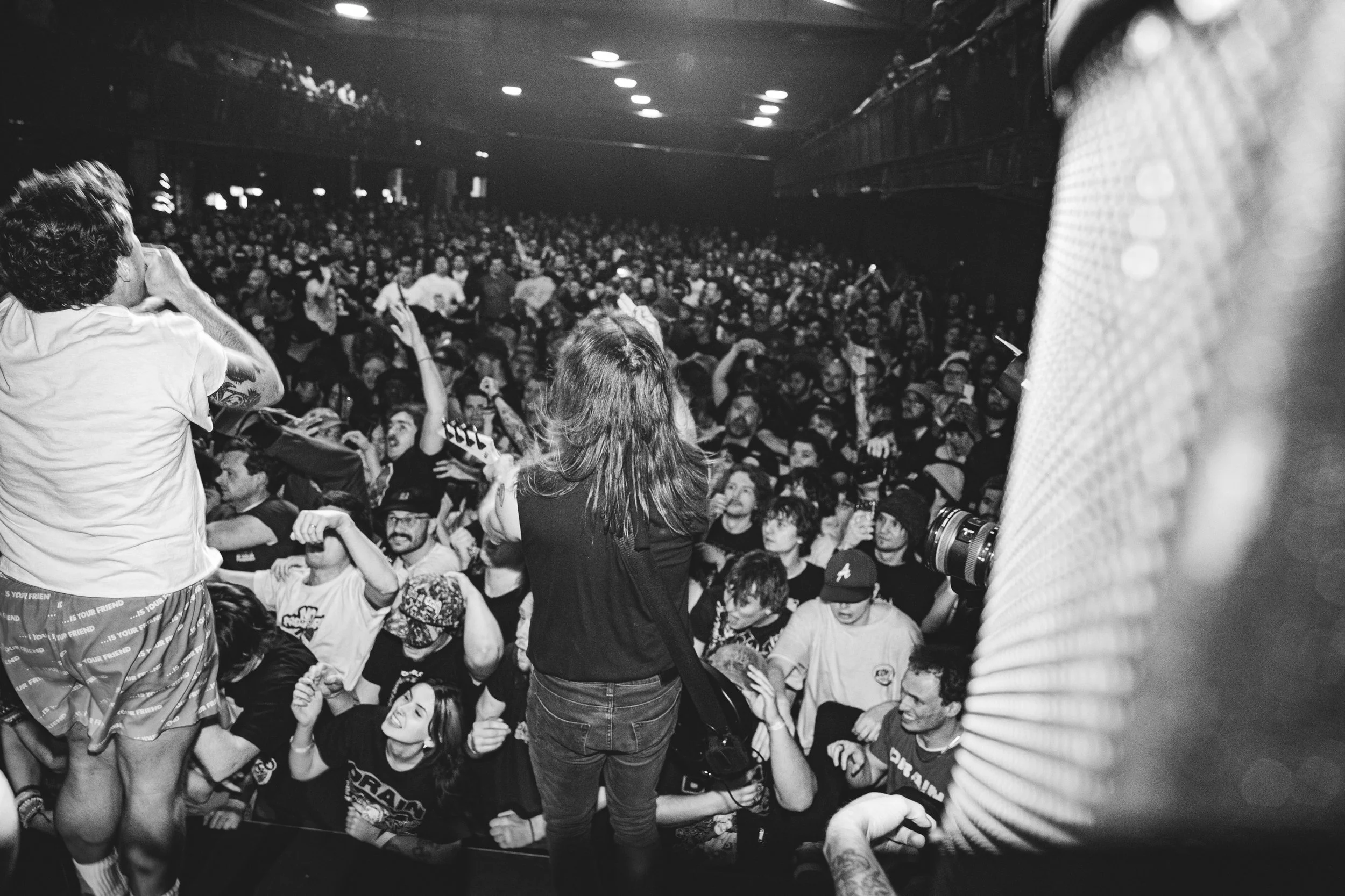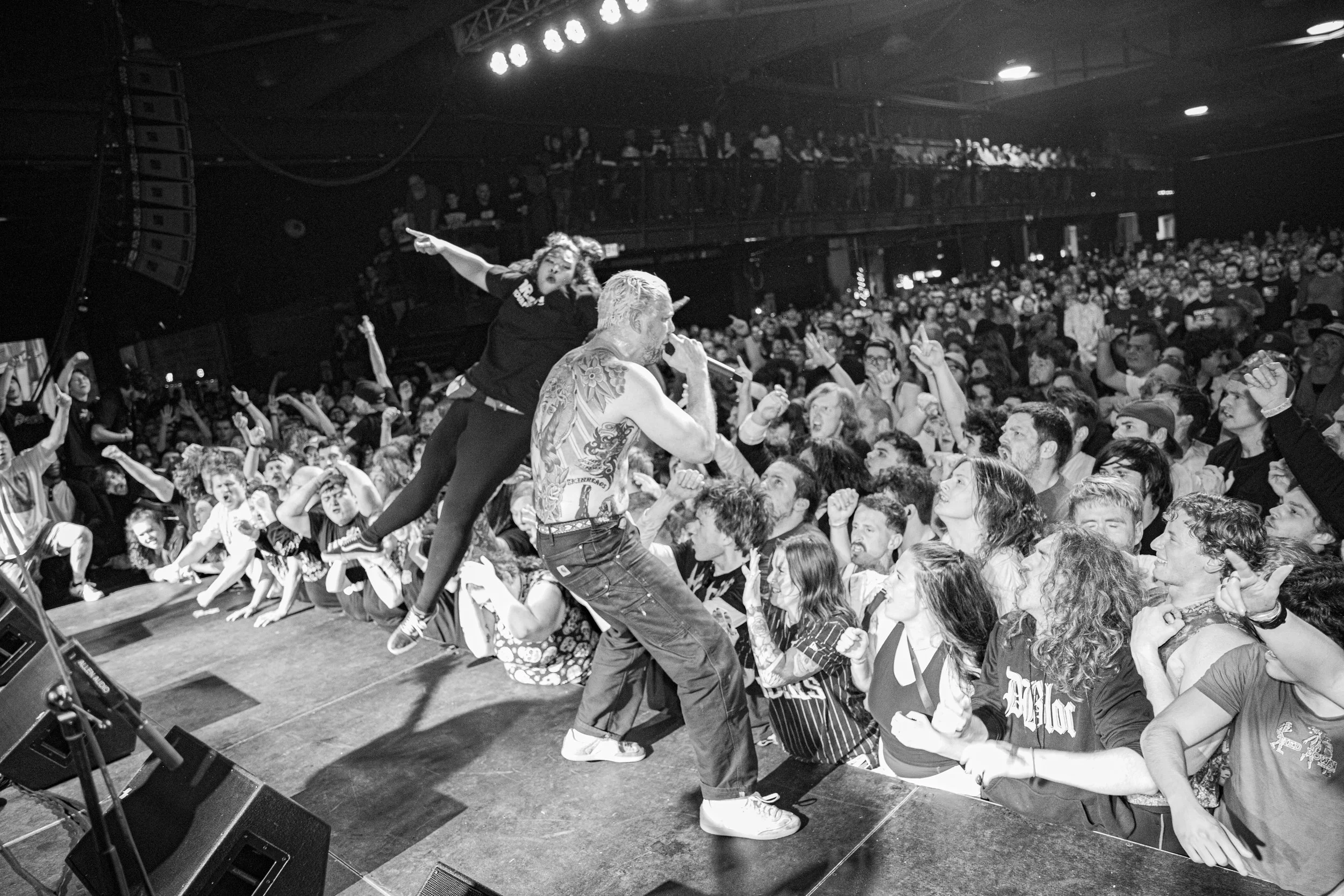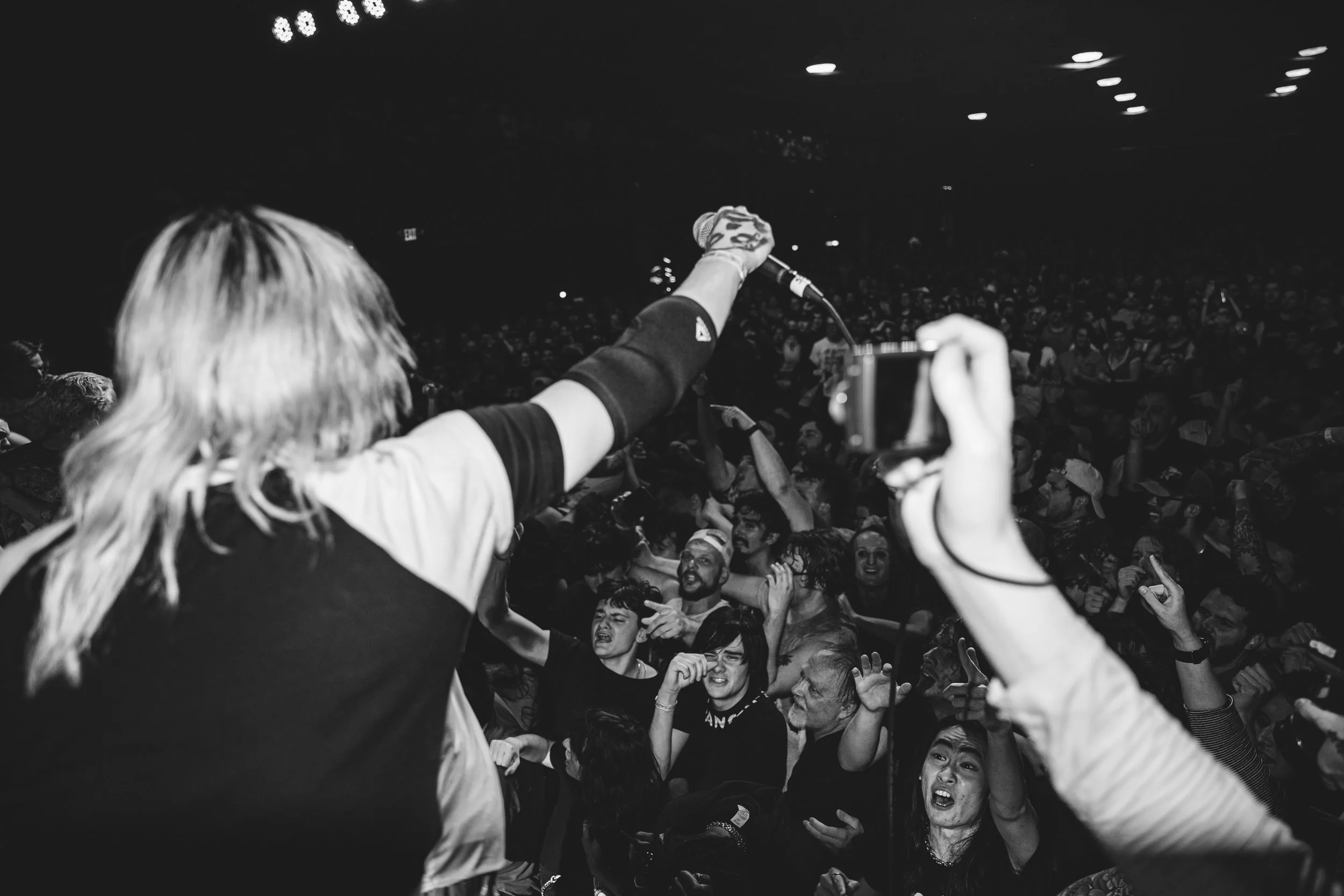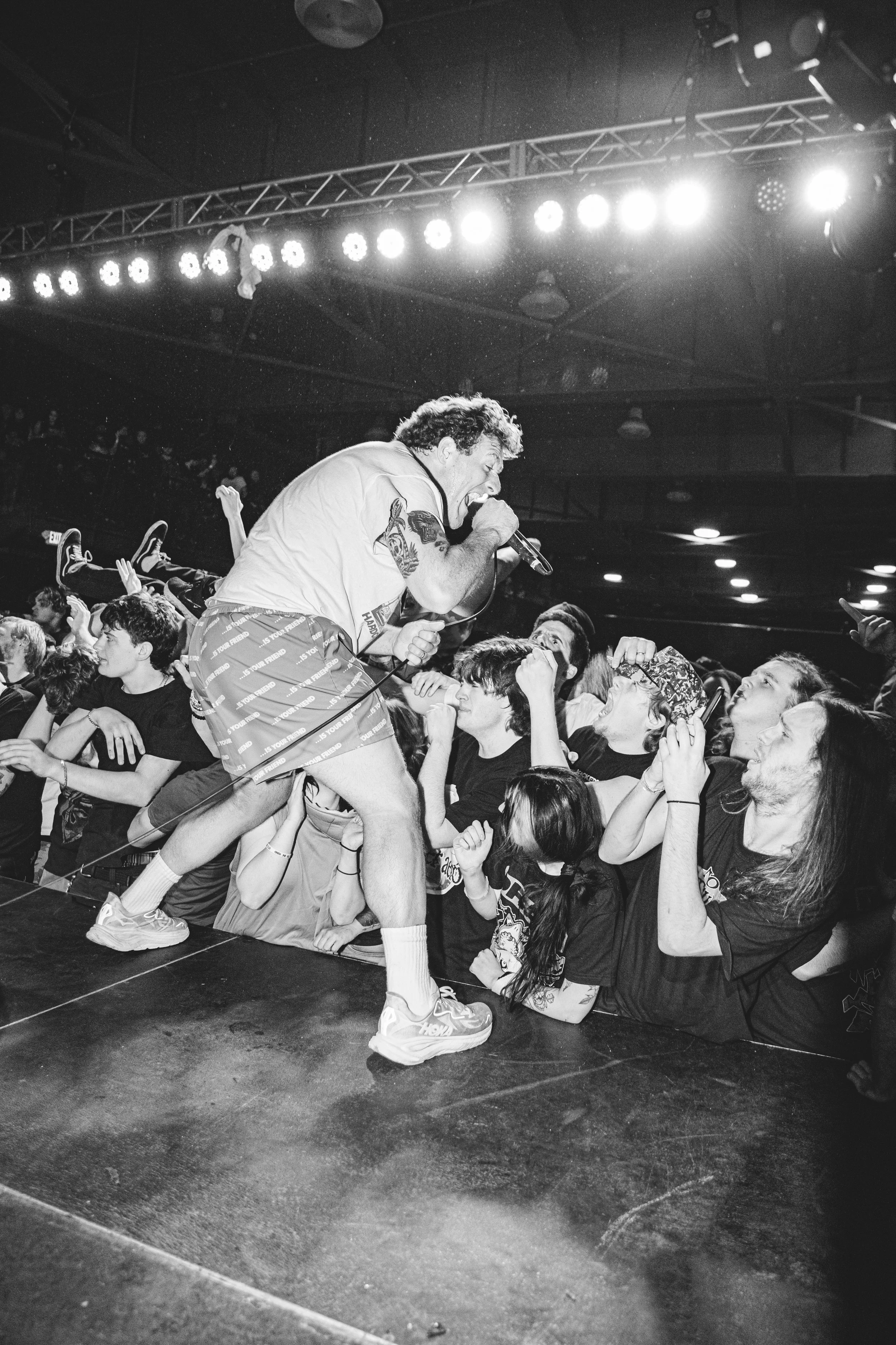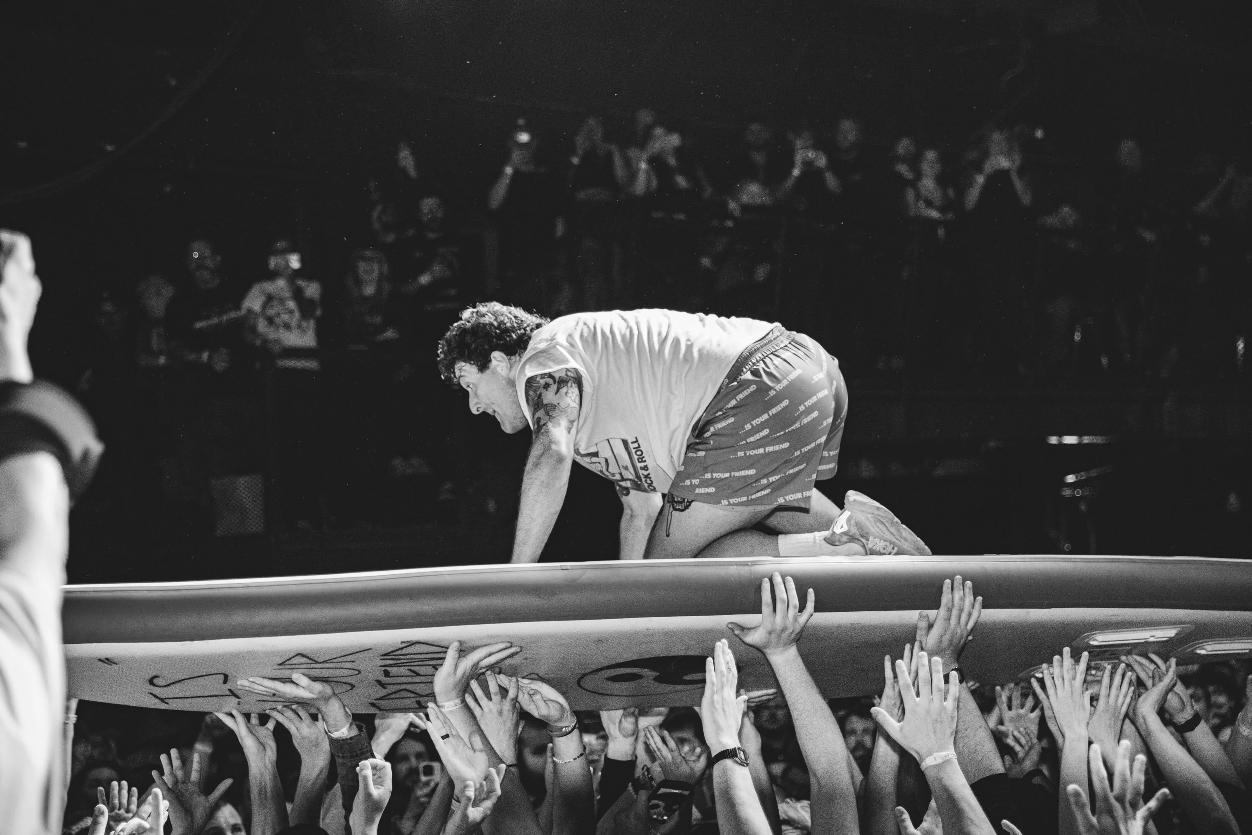 No Pressure brought so many stage dives. I took a moment to just count the stage dives for a moment, and it was laughable how many SUCCESSFUL dives there were. Made me proud, Detroit. Not too many people βlaying downβ or βWaving at people to catch themβ. After watching videos this week of other shows, it made me feel better about things in that regard.