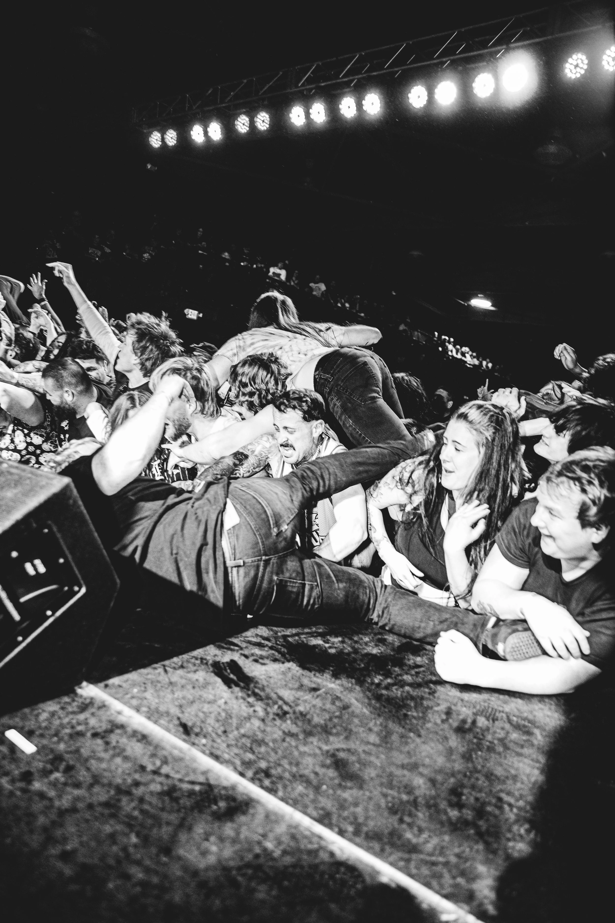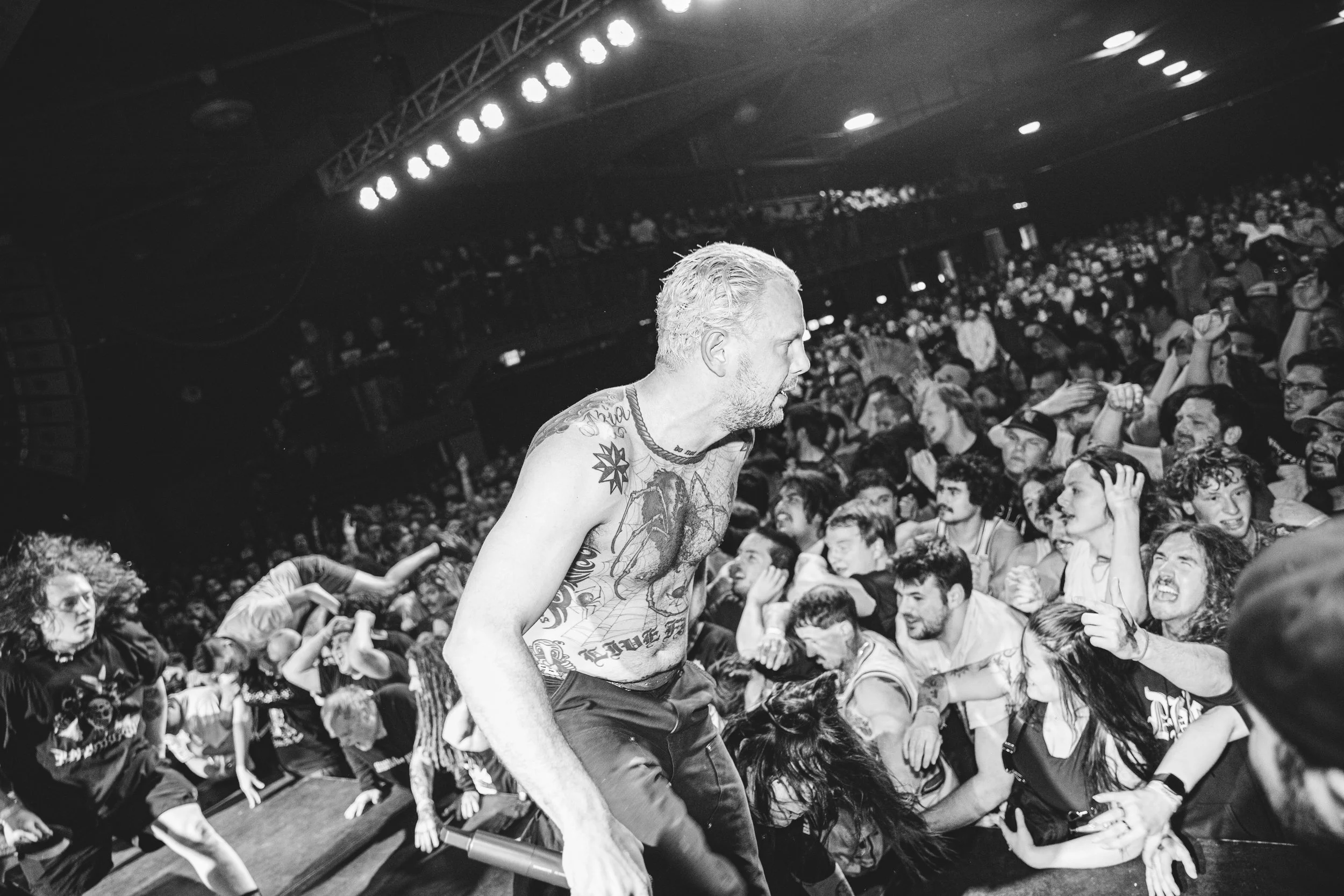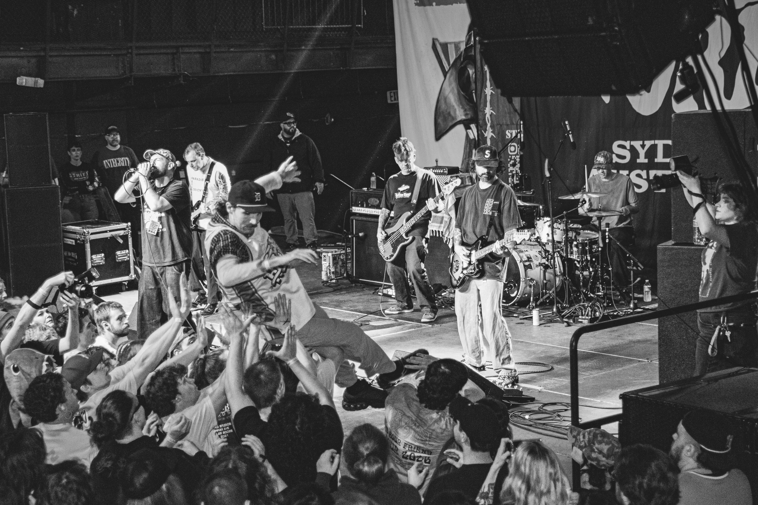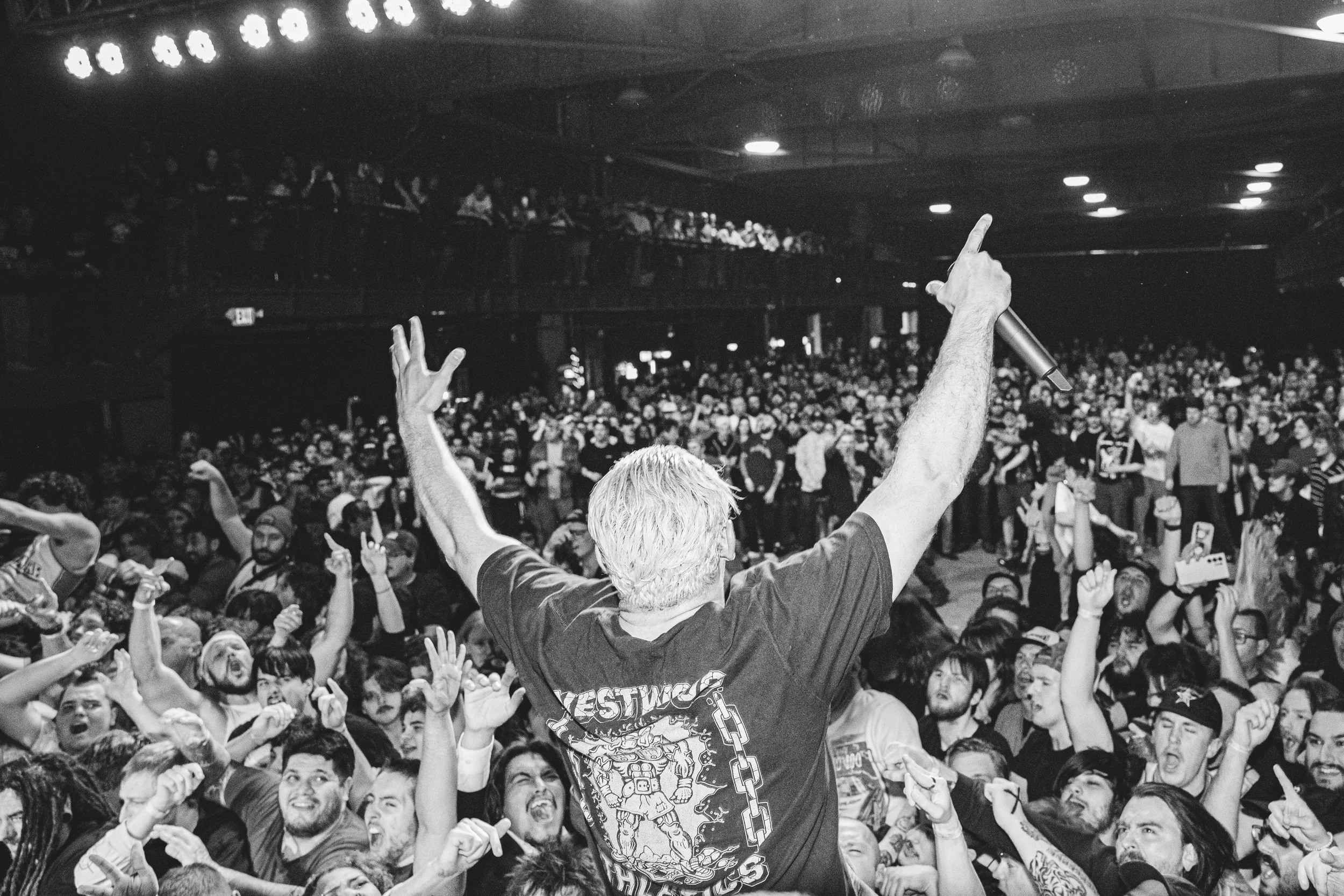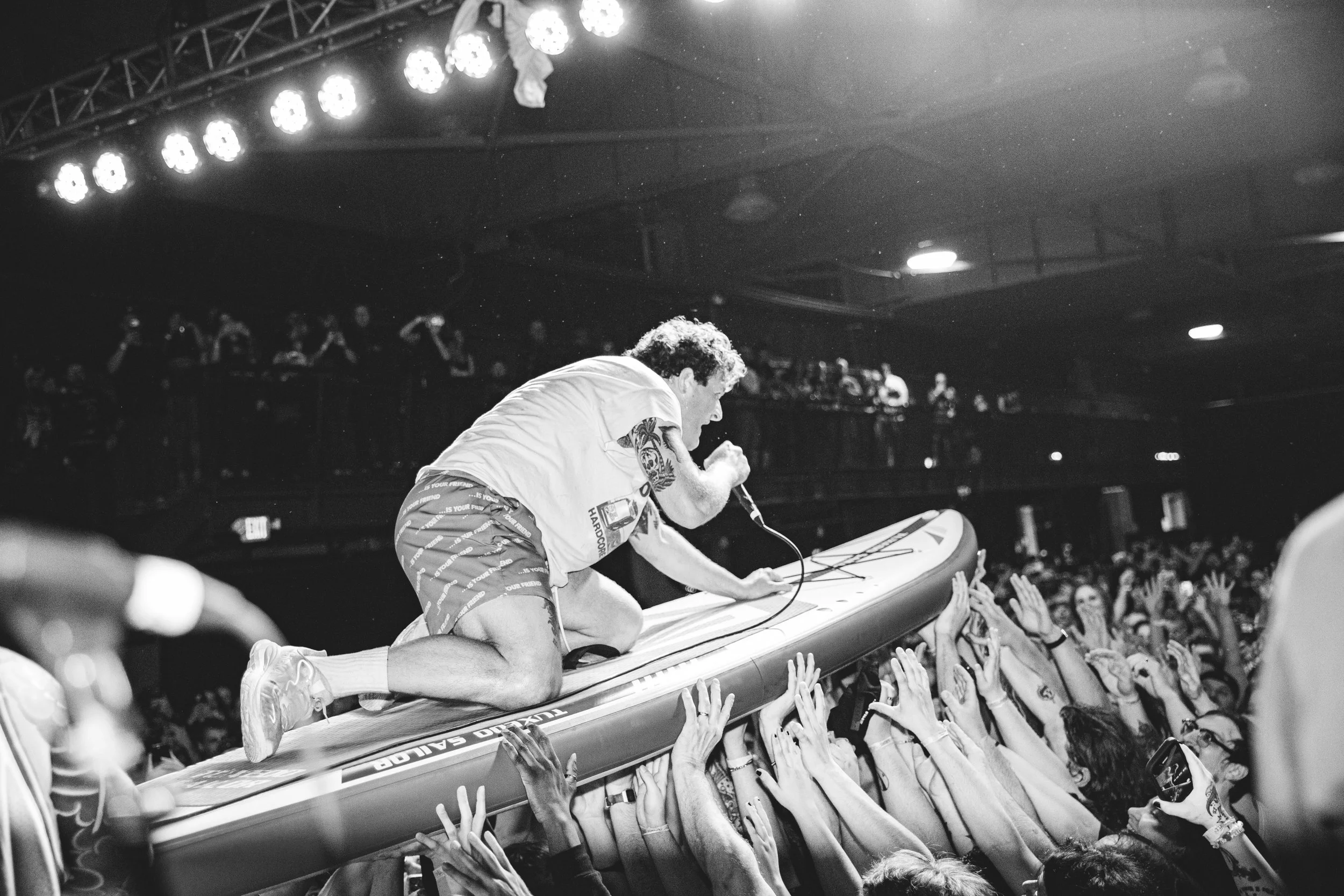 No Pressure brought so many stage dives. I took a moment to just count the stage dives for a moment, and it was laughable how many SUCCESSFUL dives there were. Made me proud, Detroit. Not too many people βlaying downβ or βWaving at people to catch themβ. After watching videos this week of other shows, it made me feel better about things in that regard.
