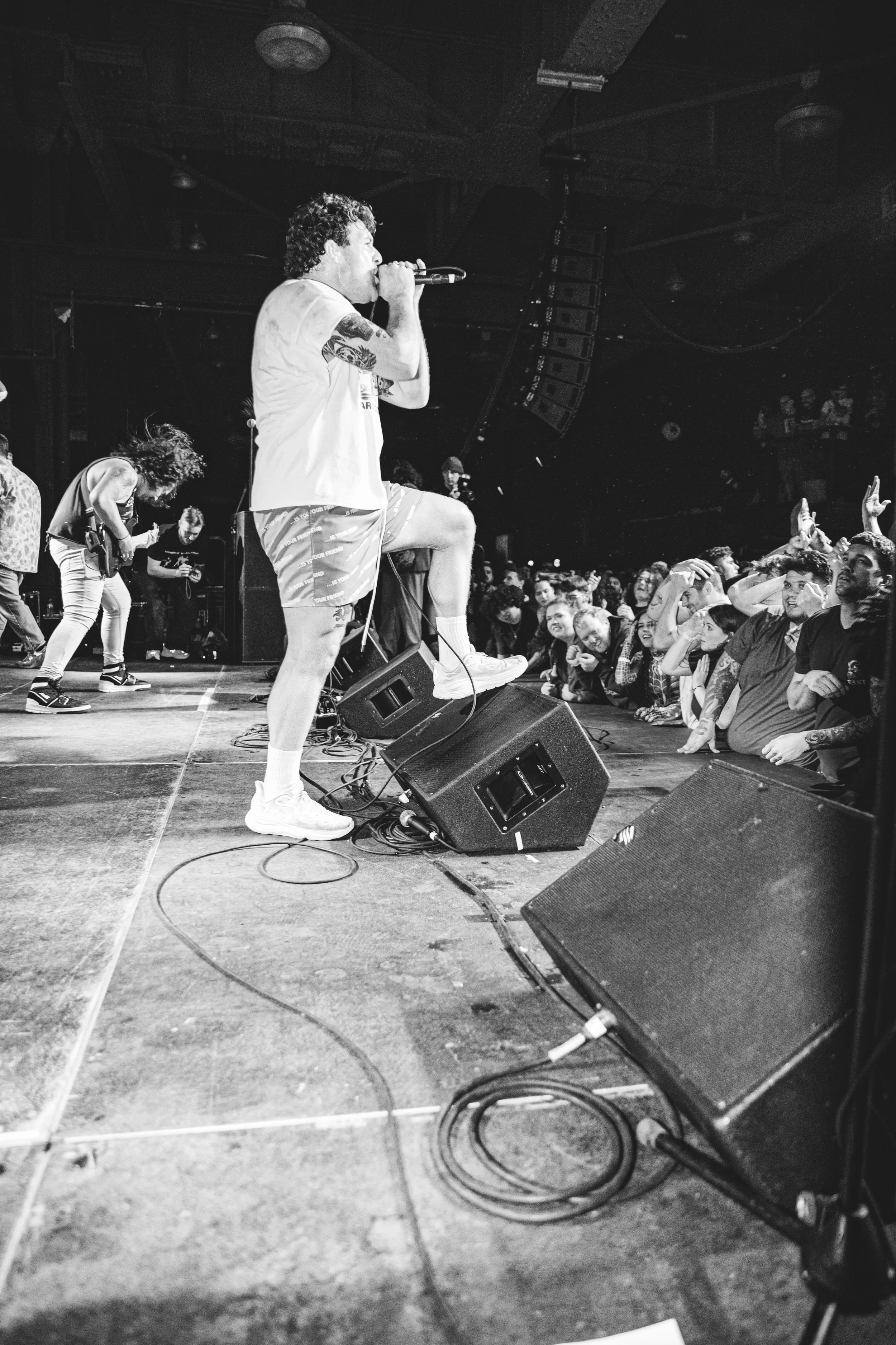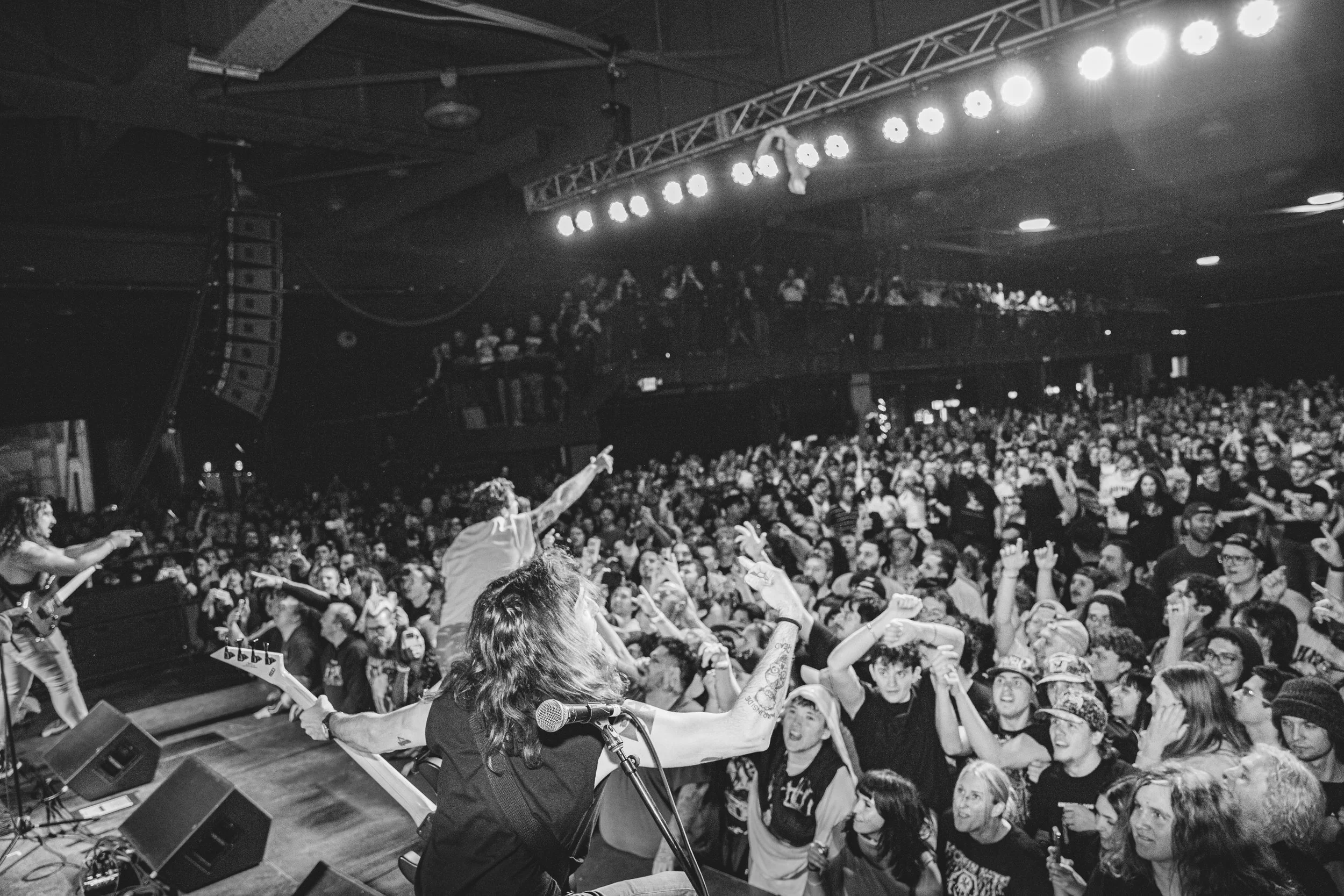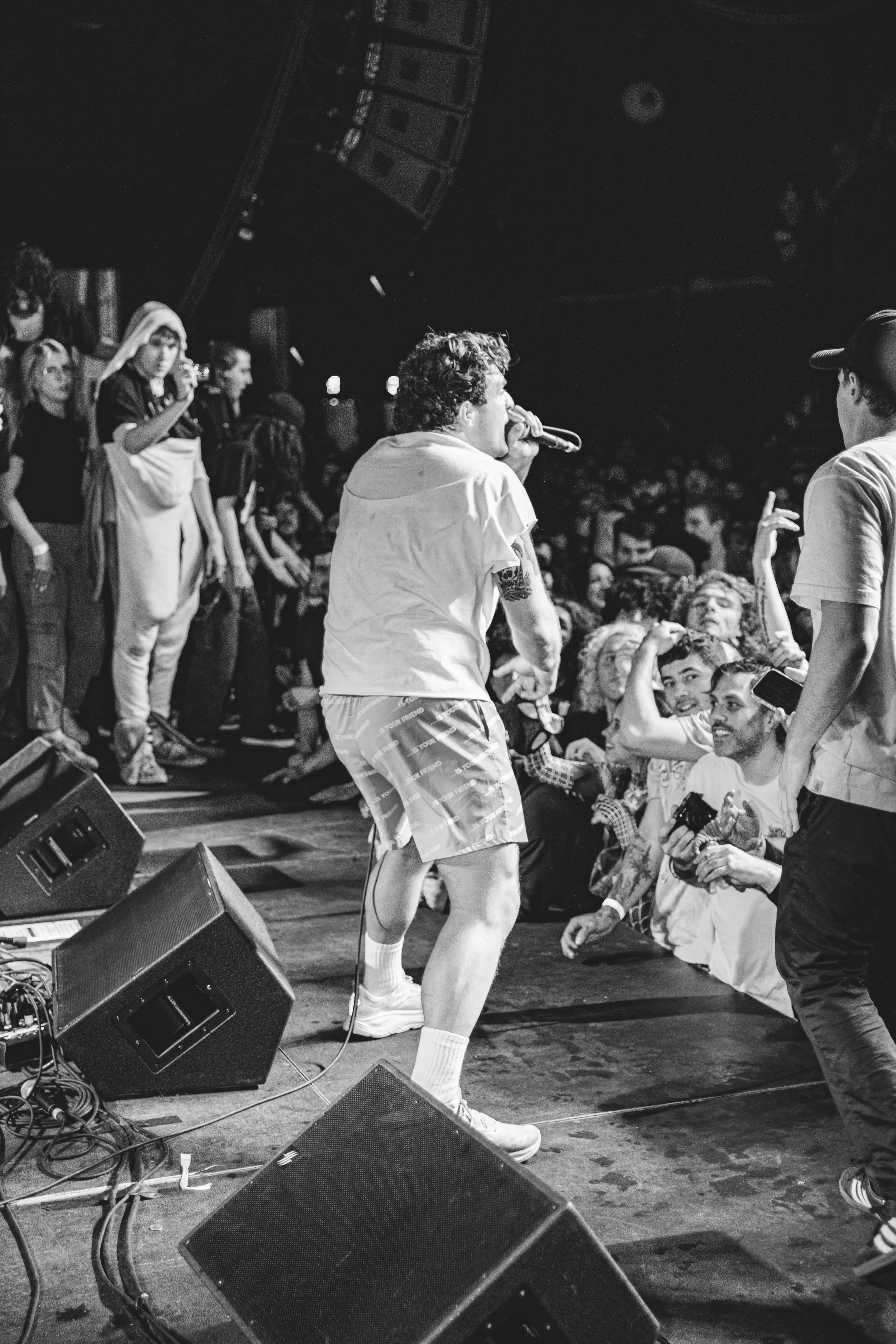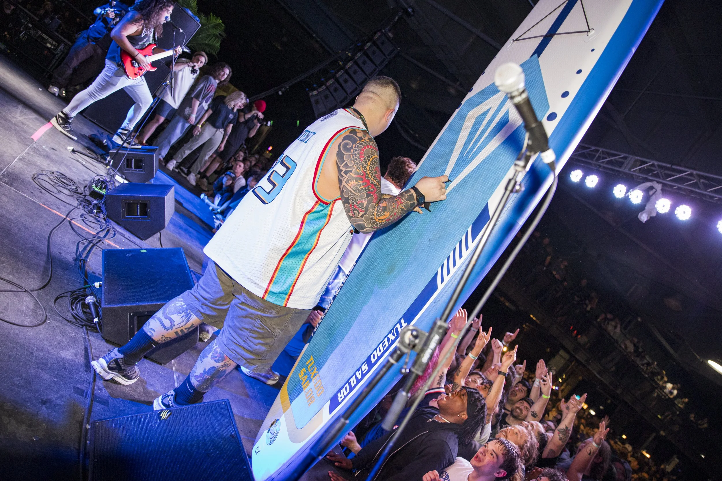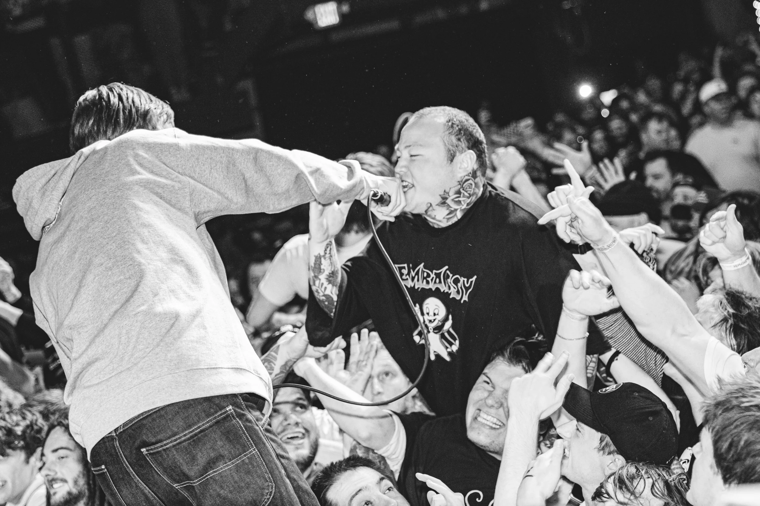 No Pressure brought so many stage dives. I took a moment to just count the stage dives for a moment, and it was laughable how many SUCCESSFUL dives there were. Made me proud, Detroit. Not too many people βlaying downβ or βWaving at people to catch themβ. After watching videos this week of other shows, it made me feel better about things in that regard.