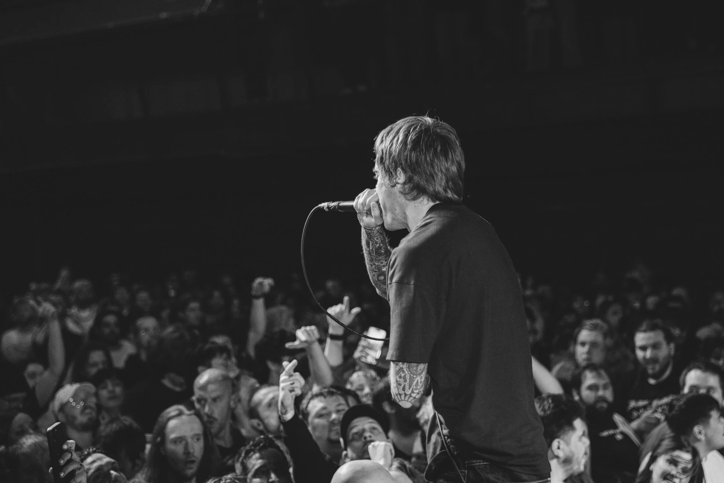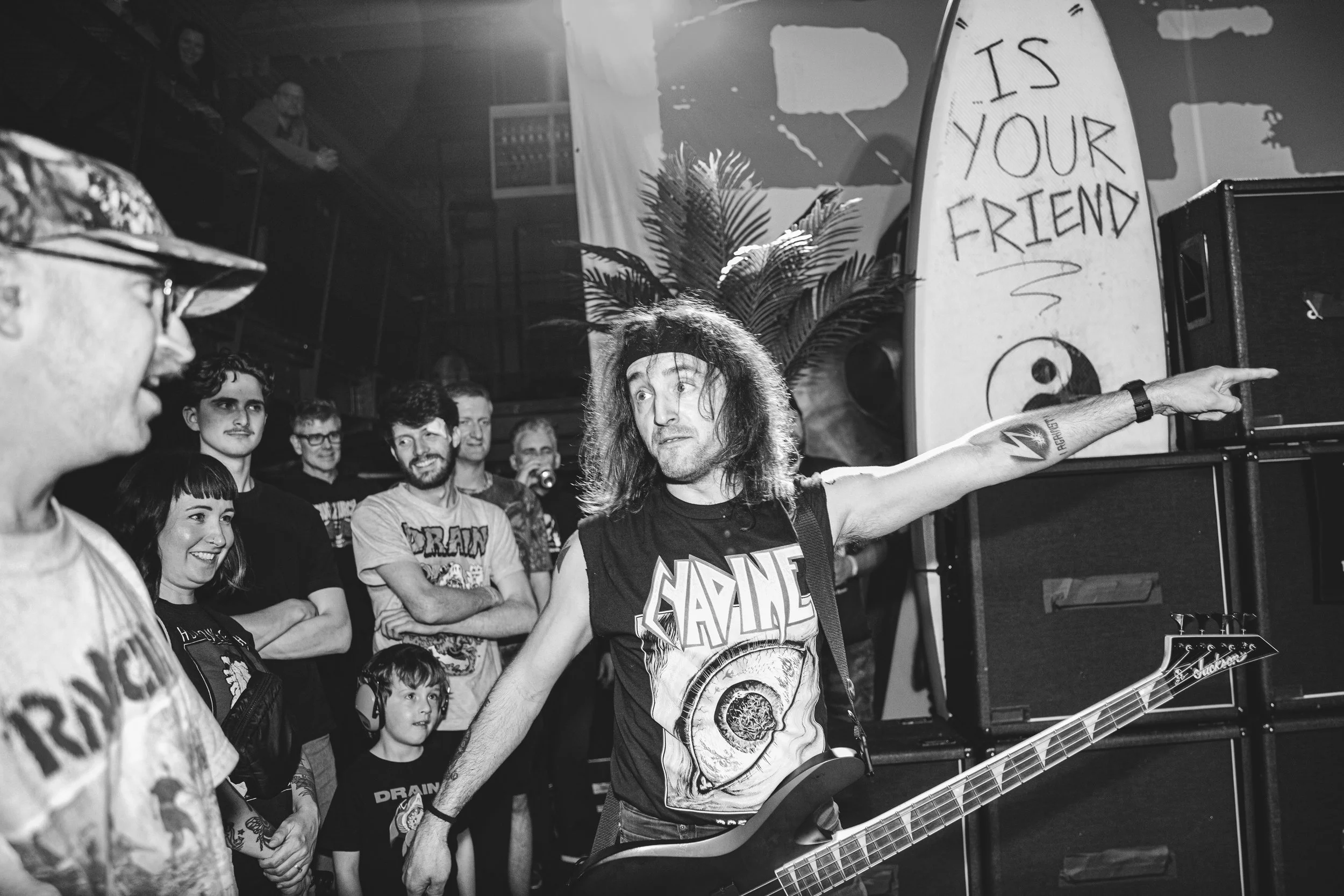 DRAIN dropped their newest album earlier this year, and to support ββ¦ Is Your Friendβ the homeys booked a tour with a lineup built for stage dives. Detroit was lucky enough to have it at a venue with no barricades and no need for extra security. No Pressure, Haywire, and Secret World are the main support with the locals for the Detroit show, being Cyadine, who set the tone high as fuck right out the gate. Which was needed as it felt like a joint weight was lifting off the collective shoulders of those in the room. Secret World made me get in my feels and into my pocket to find my vape pen and rip it about 13 times after their set to prepare for Haywire. I had a feeling that I wasnβt going to get many spots for them, and I was right. I had to stay in the same spot; sometimes thatβs the case. Unbelievable set, and I have all of Austinβs speech on video, which will be uploaded as a reel at some point this weekend on Instagram/Facebook.