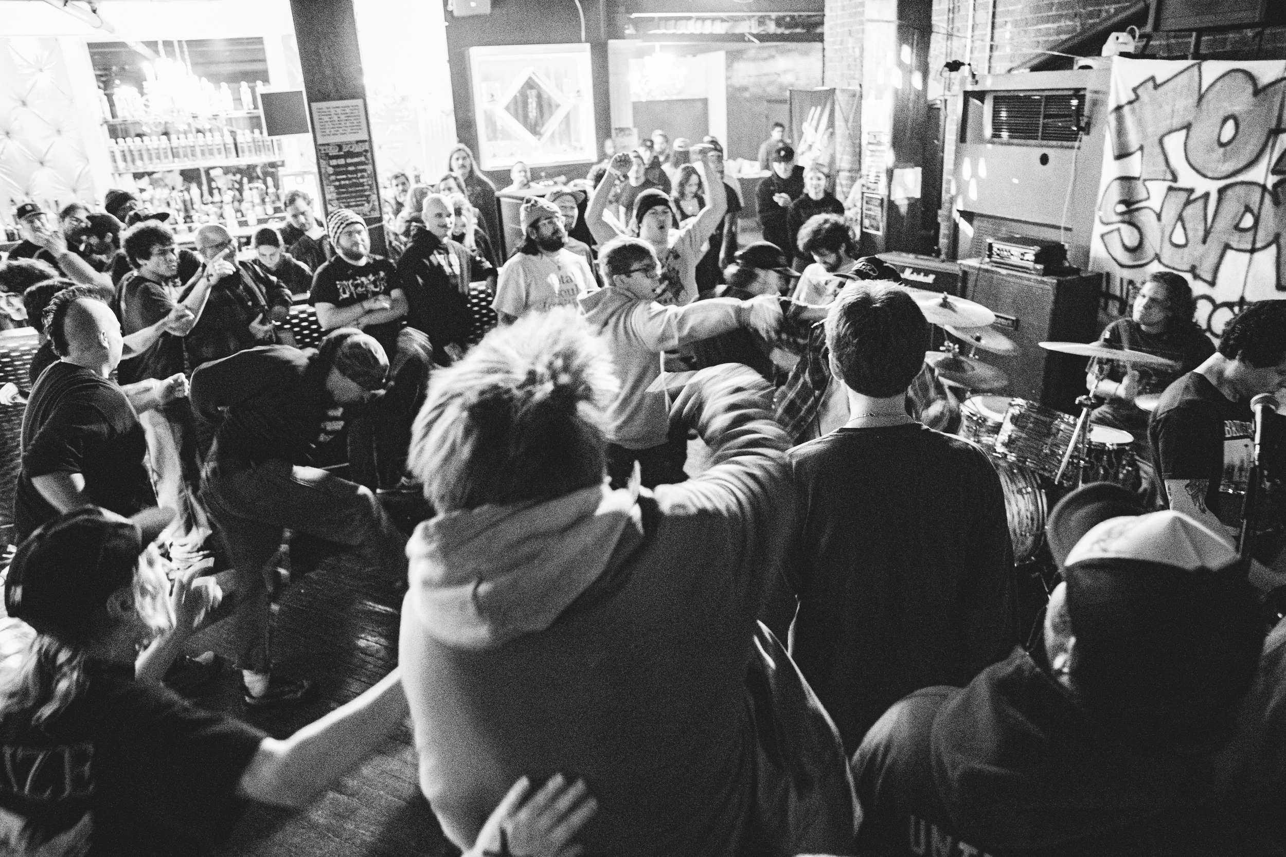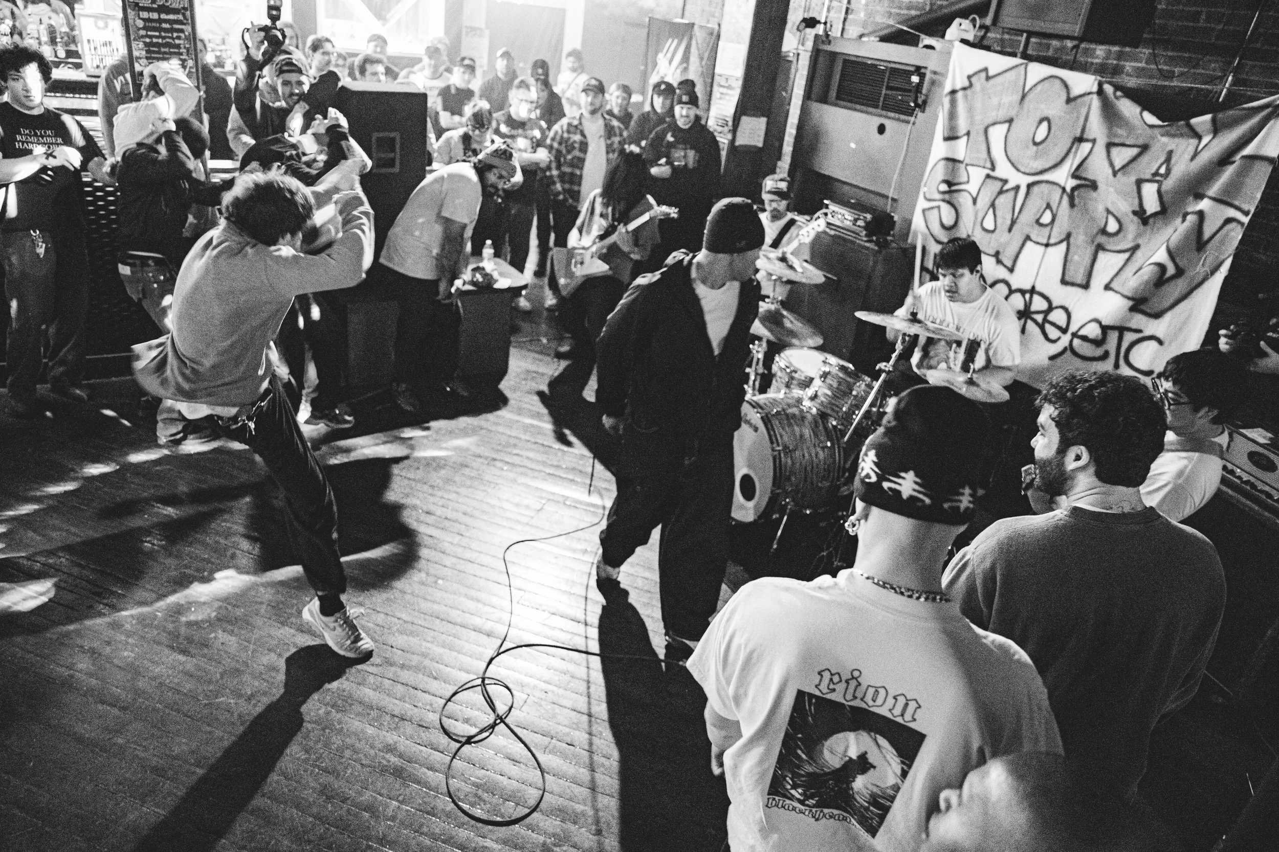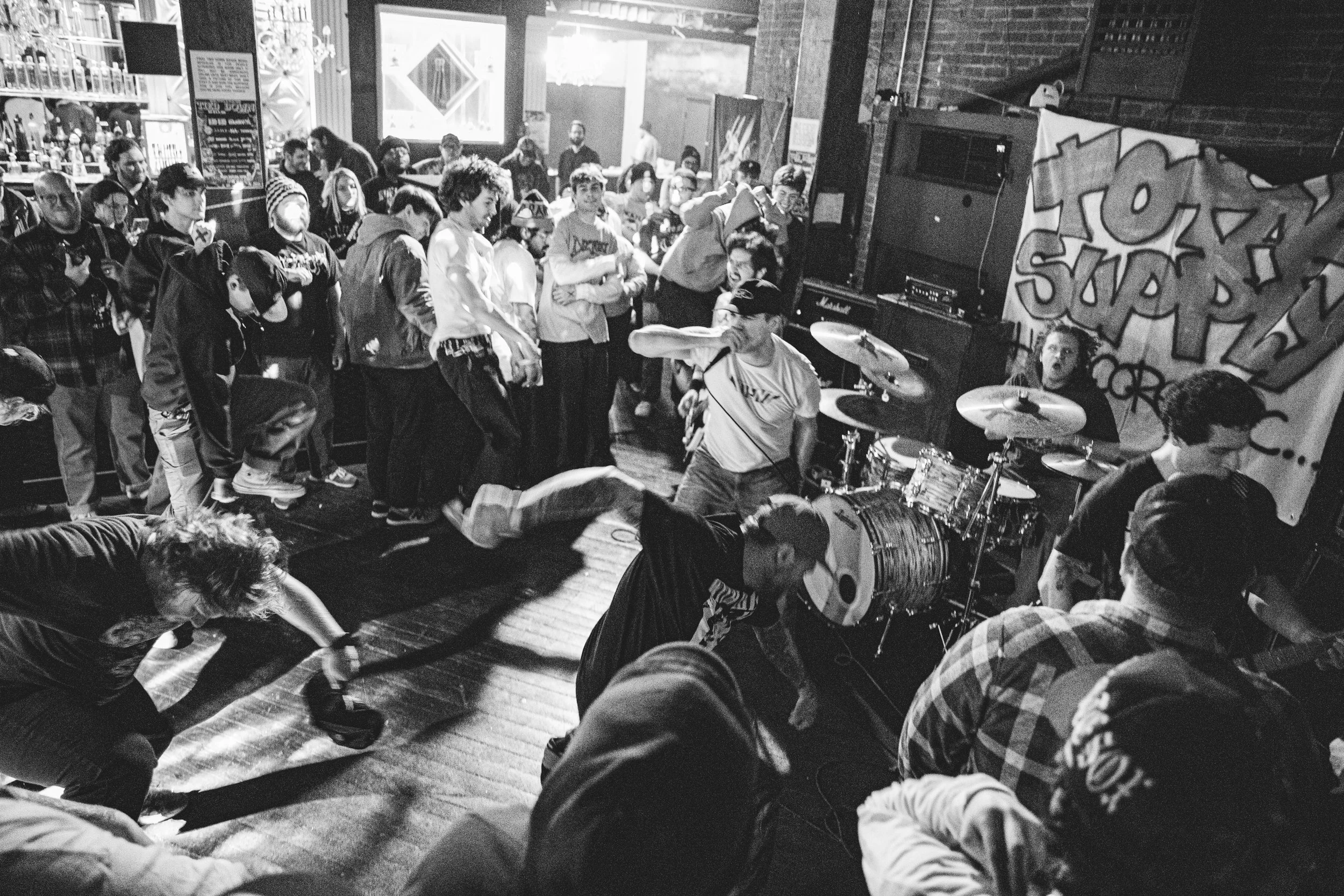 I never thought I would be at a hardcore show at Nikiβs Pizza. I mean, itβs a Detroit staple, but it doesnβt scream βbook a hardcore show here!β at all. I mean, I felt like I was in a wedding venue, or house music club, and then someone jumped off the sidewall in the middle of the roomβ¦ and then I was like we are no doubt gonna break something. But as far as I know, everything went off without any problems.